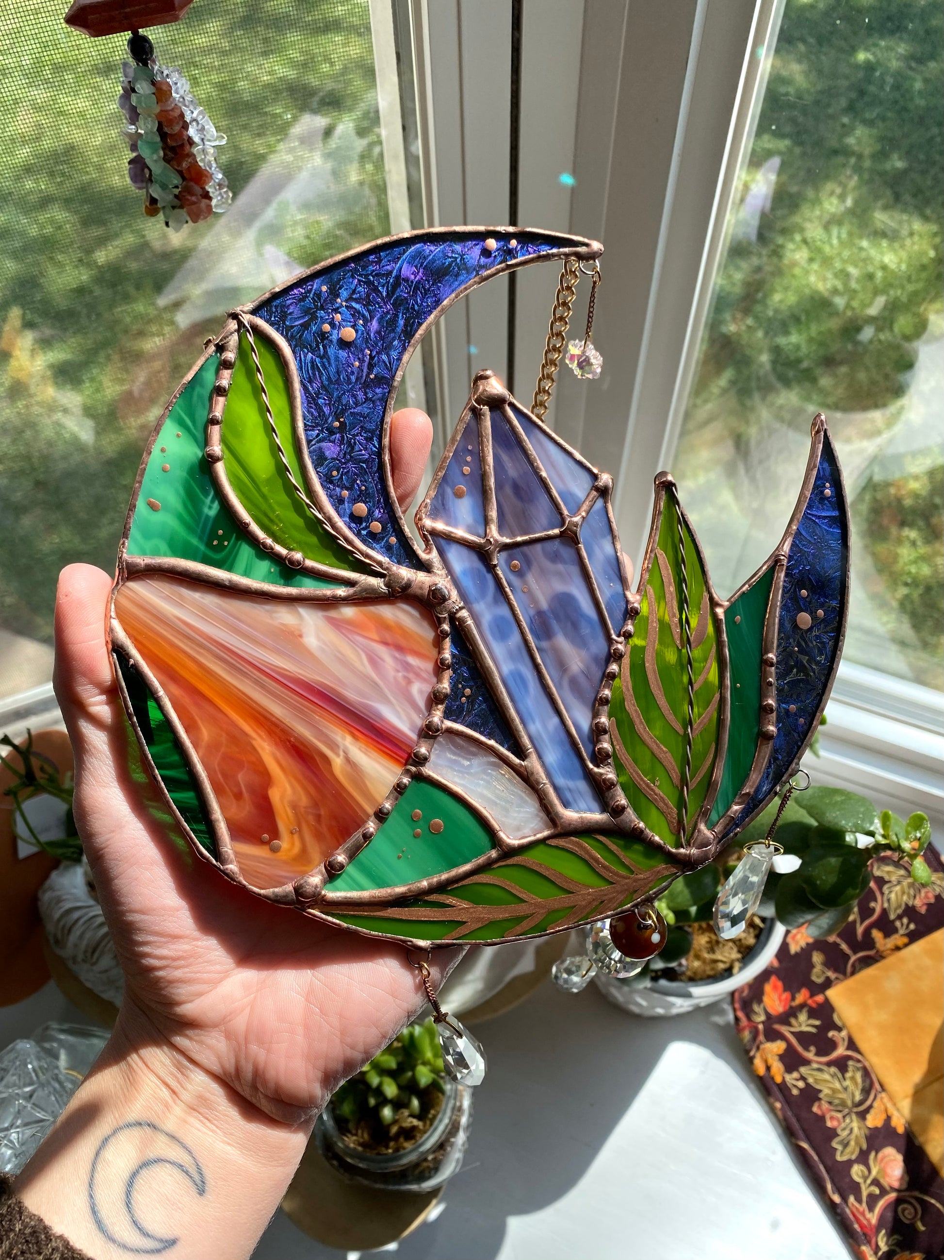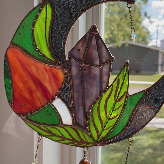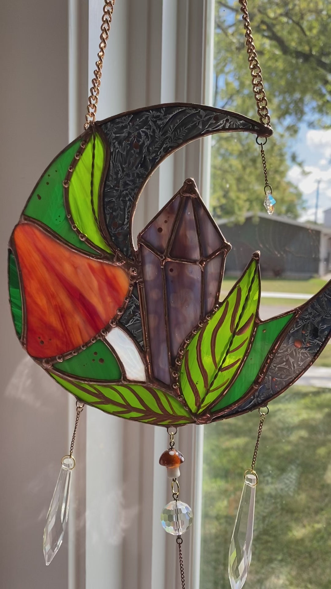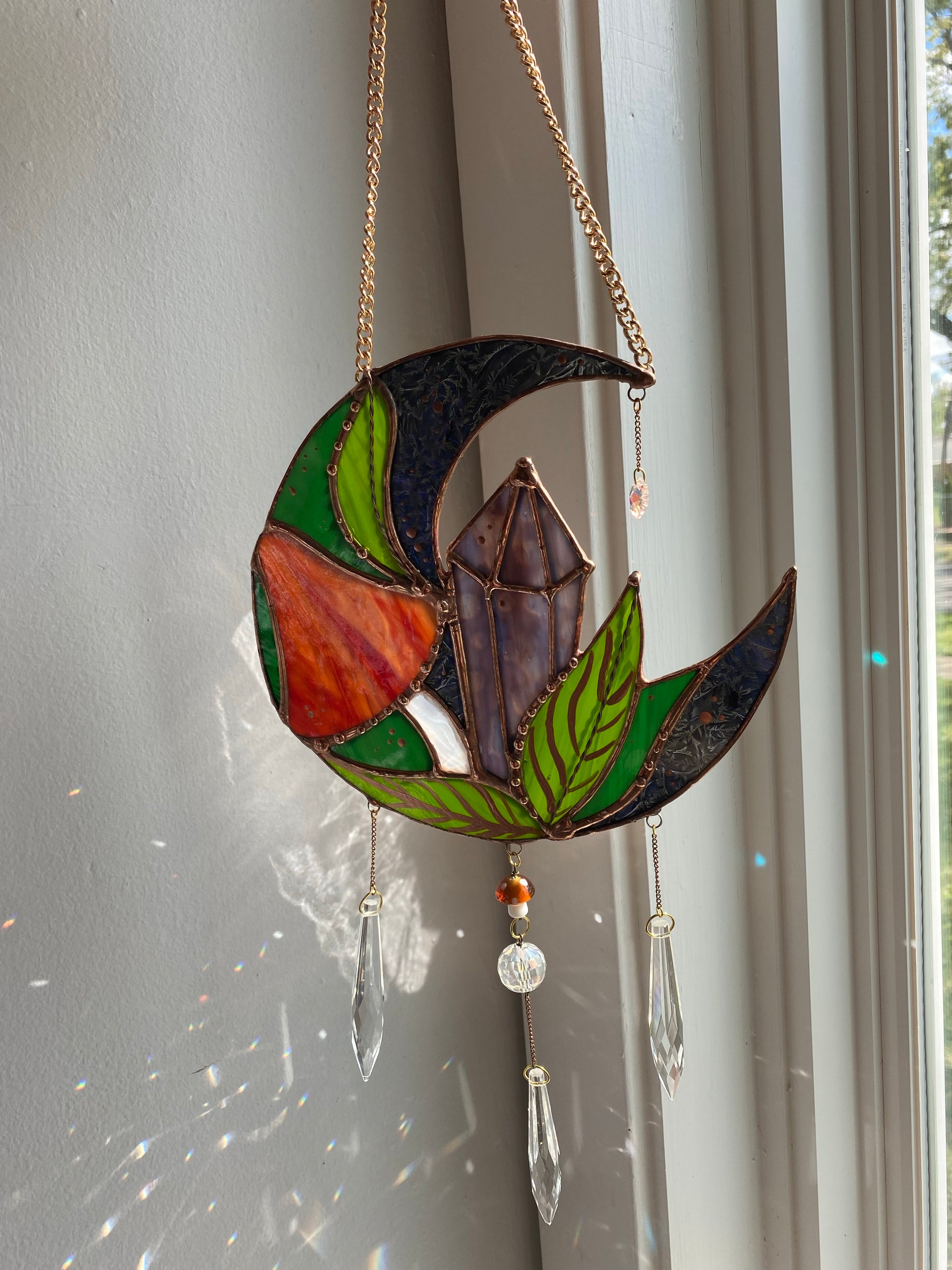 Glass measures 8" by 8". total length including chain and beads is around 15”.
