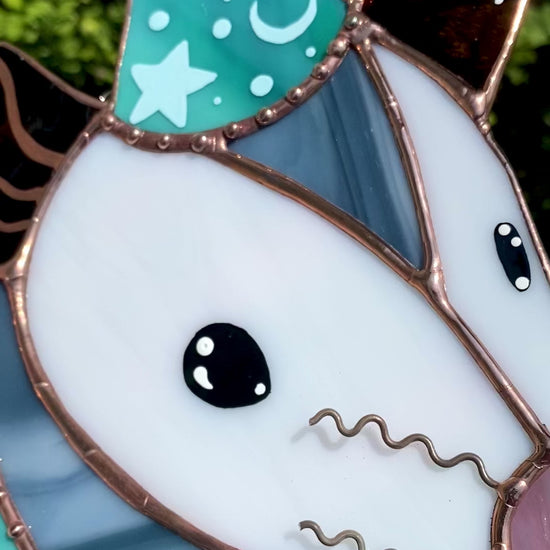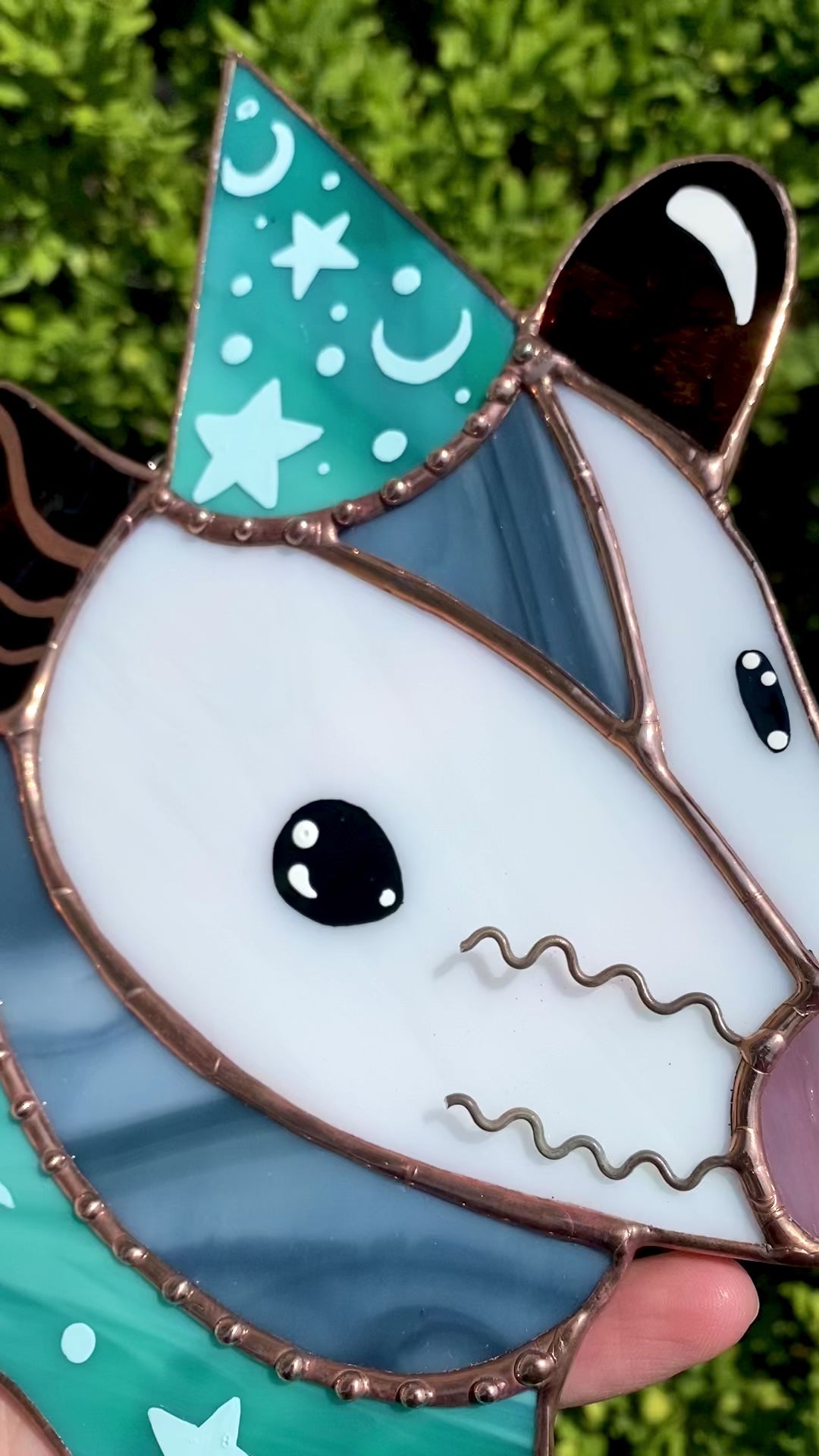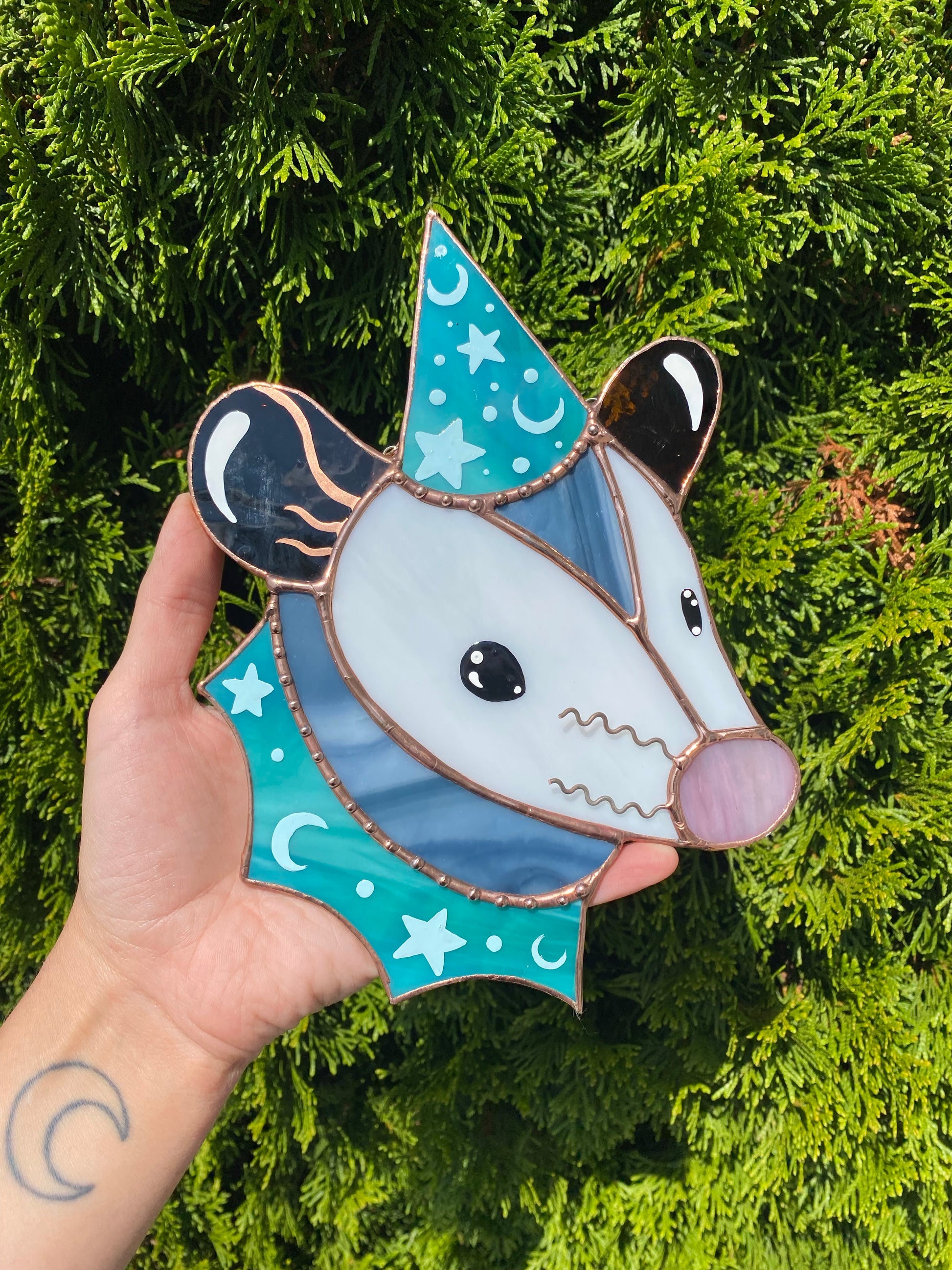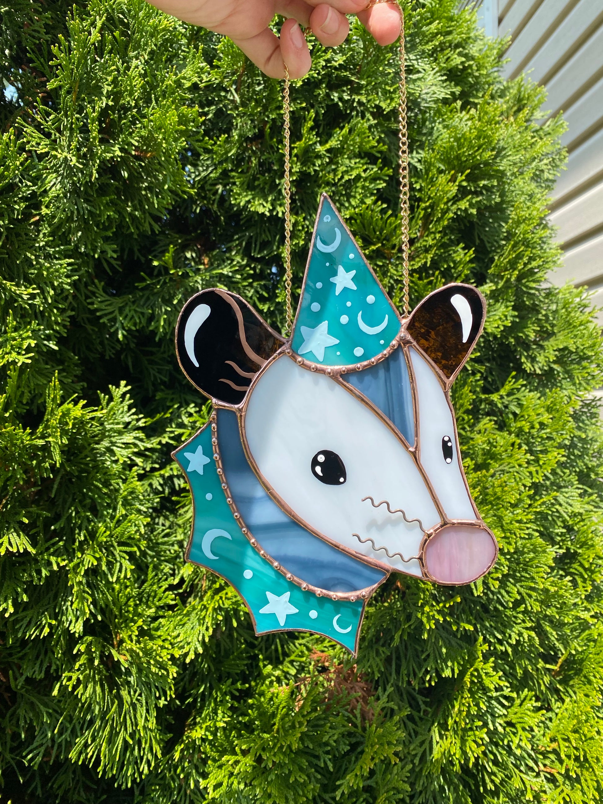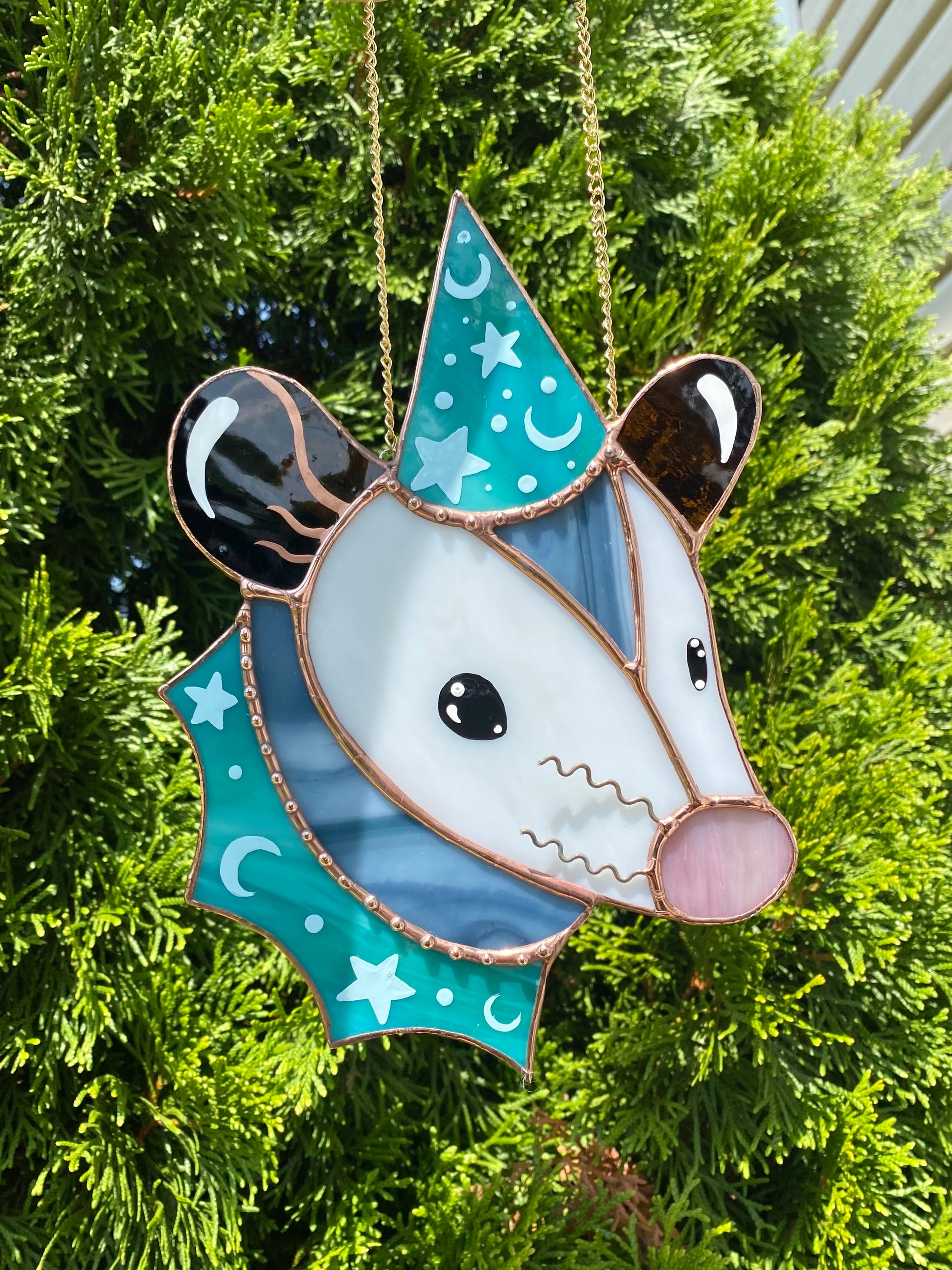 Blue Dream Wizard Opossum Stained Glass Suncatcher