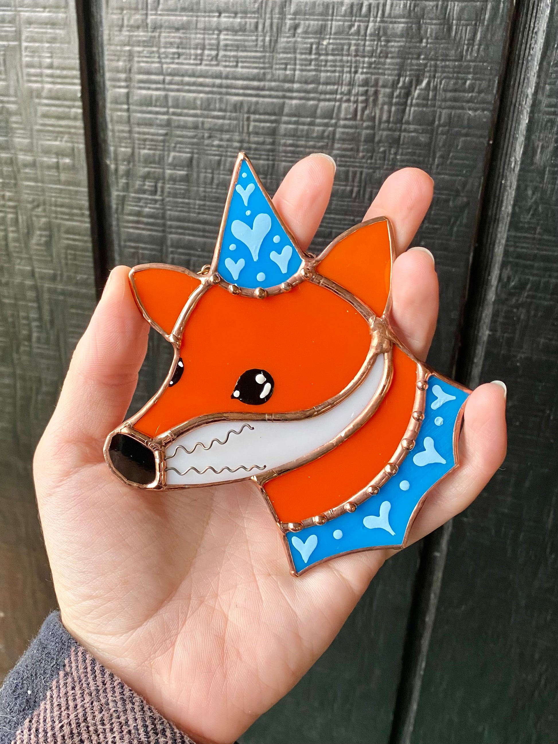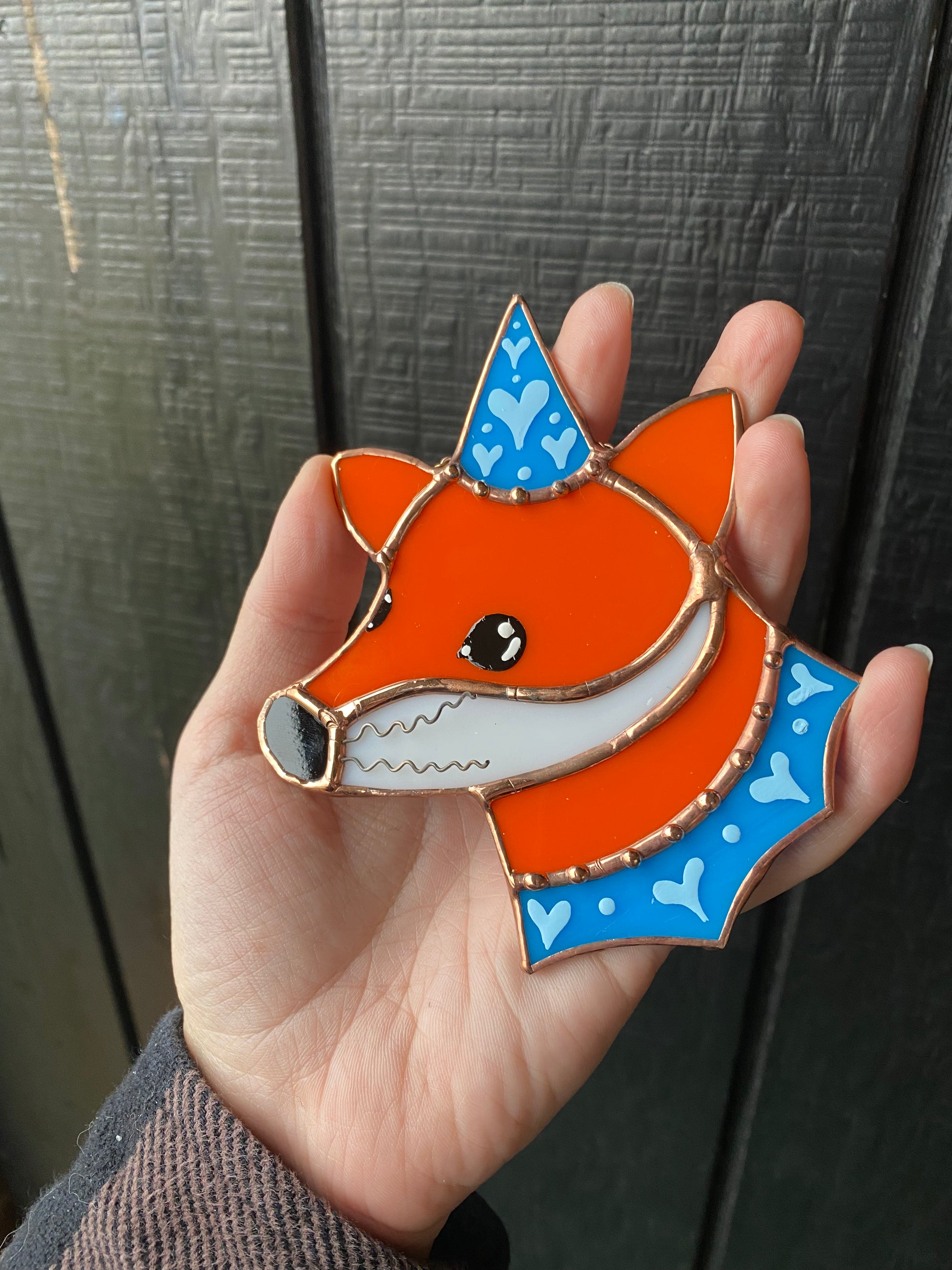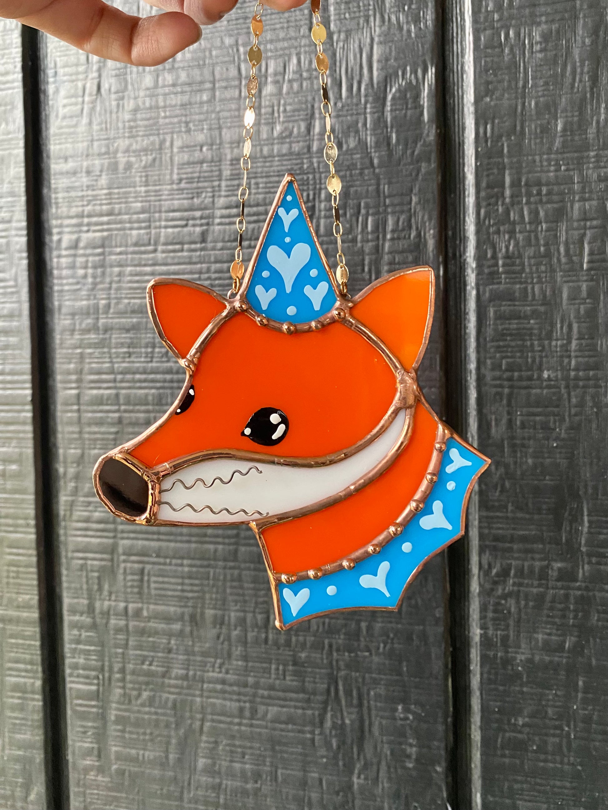Blue Wizard Fox Mini Stained Glass Suncatcher