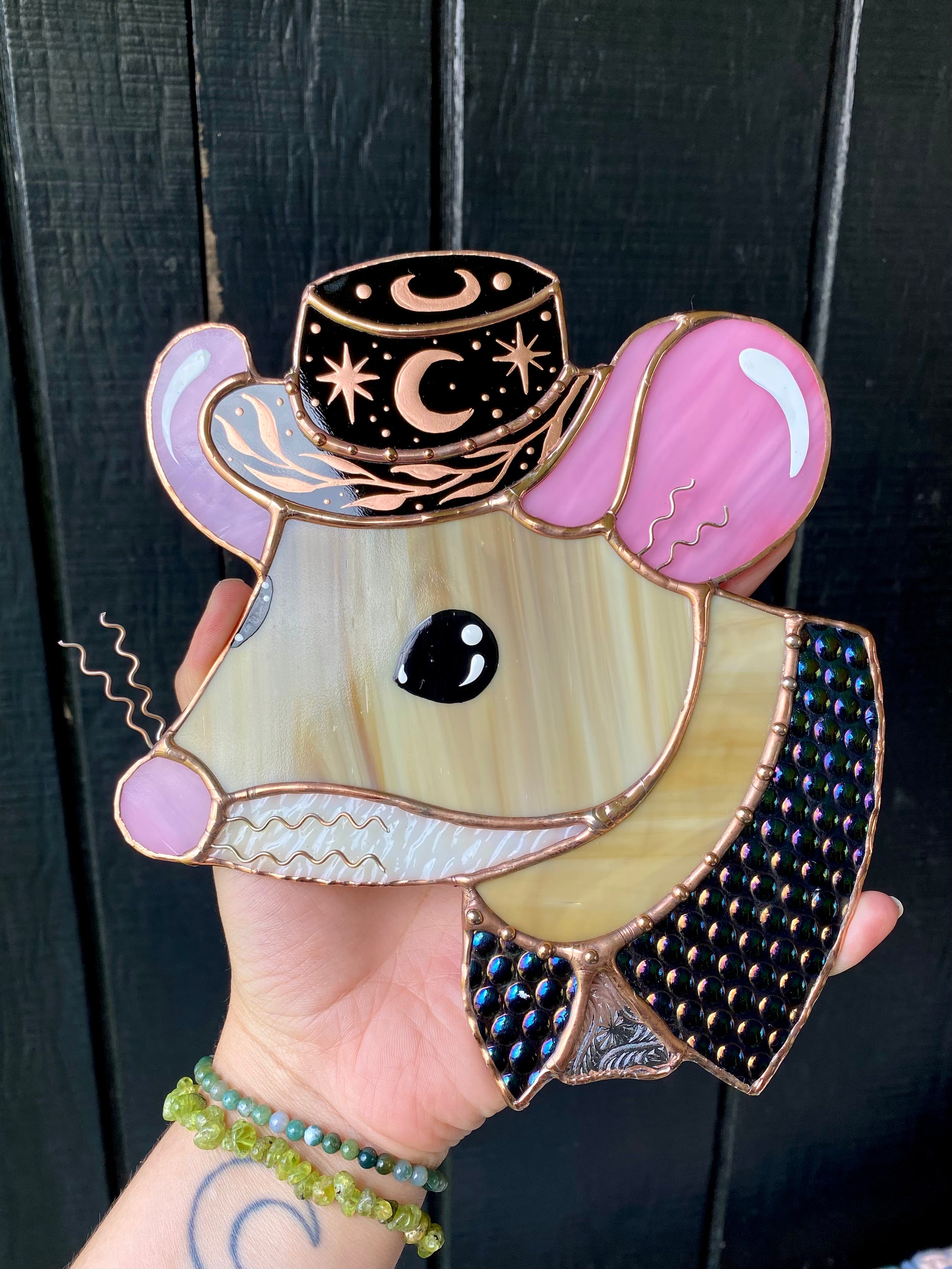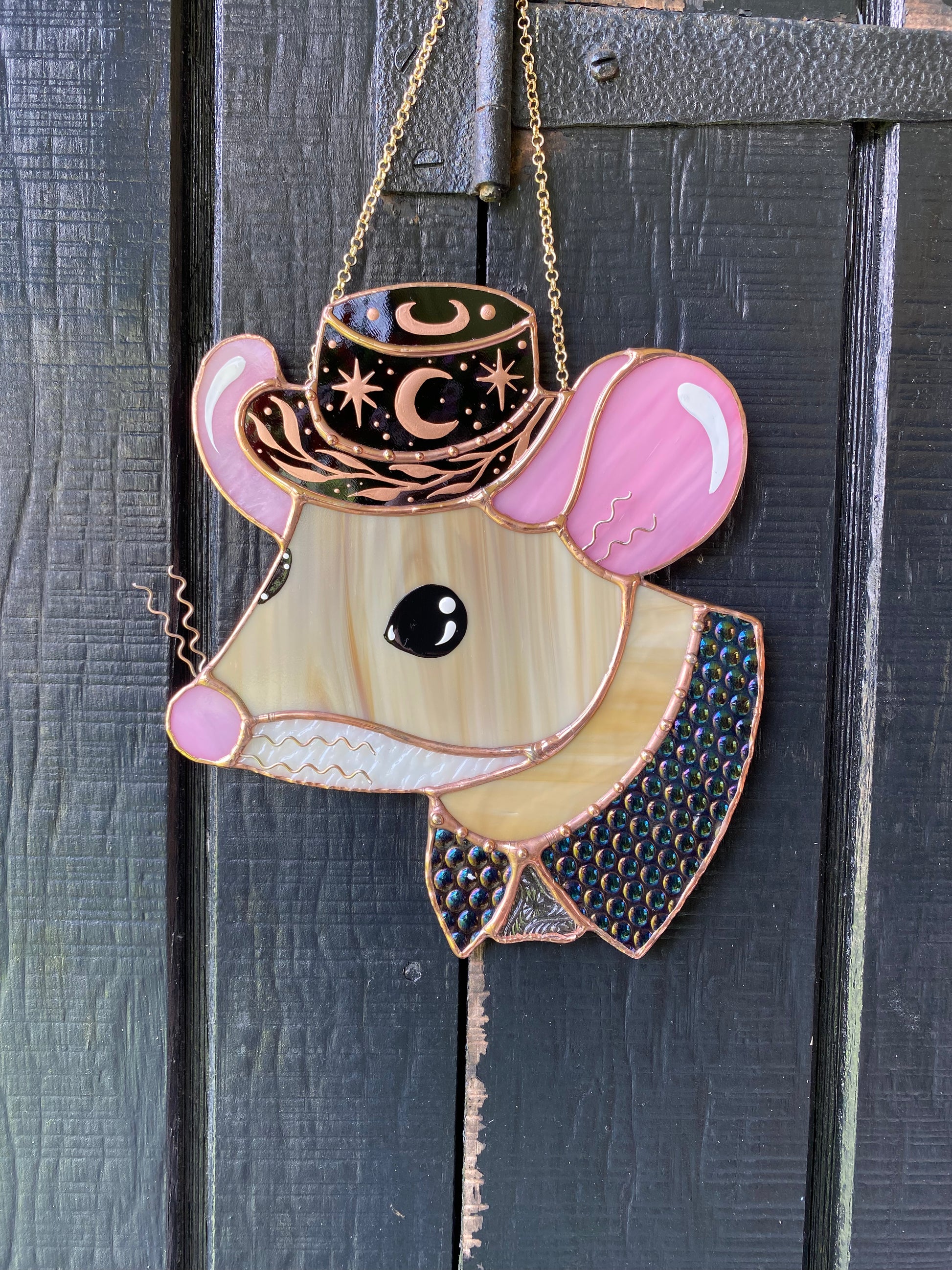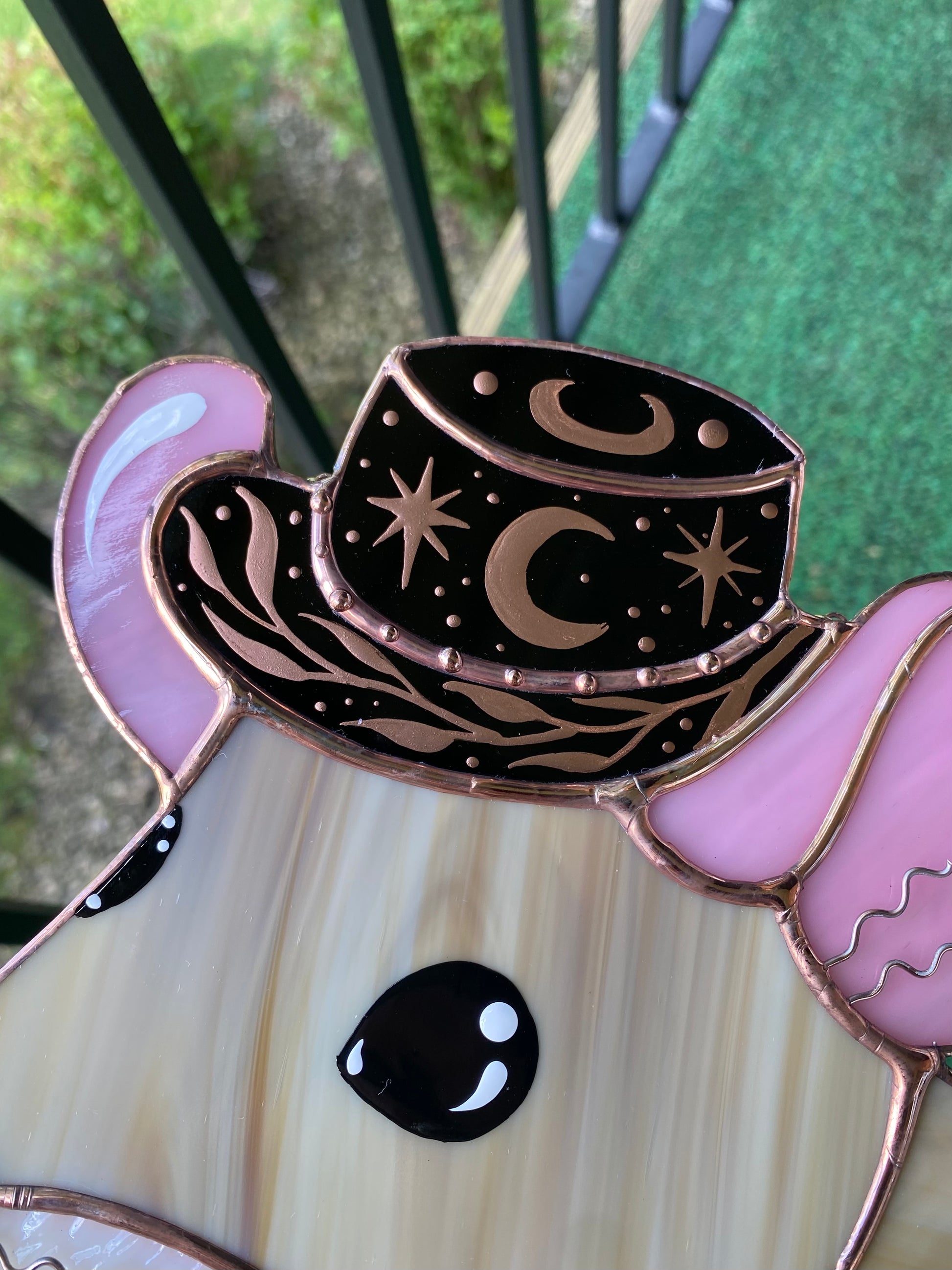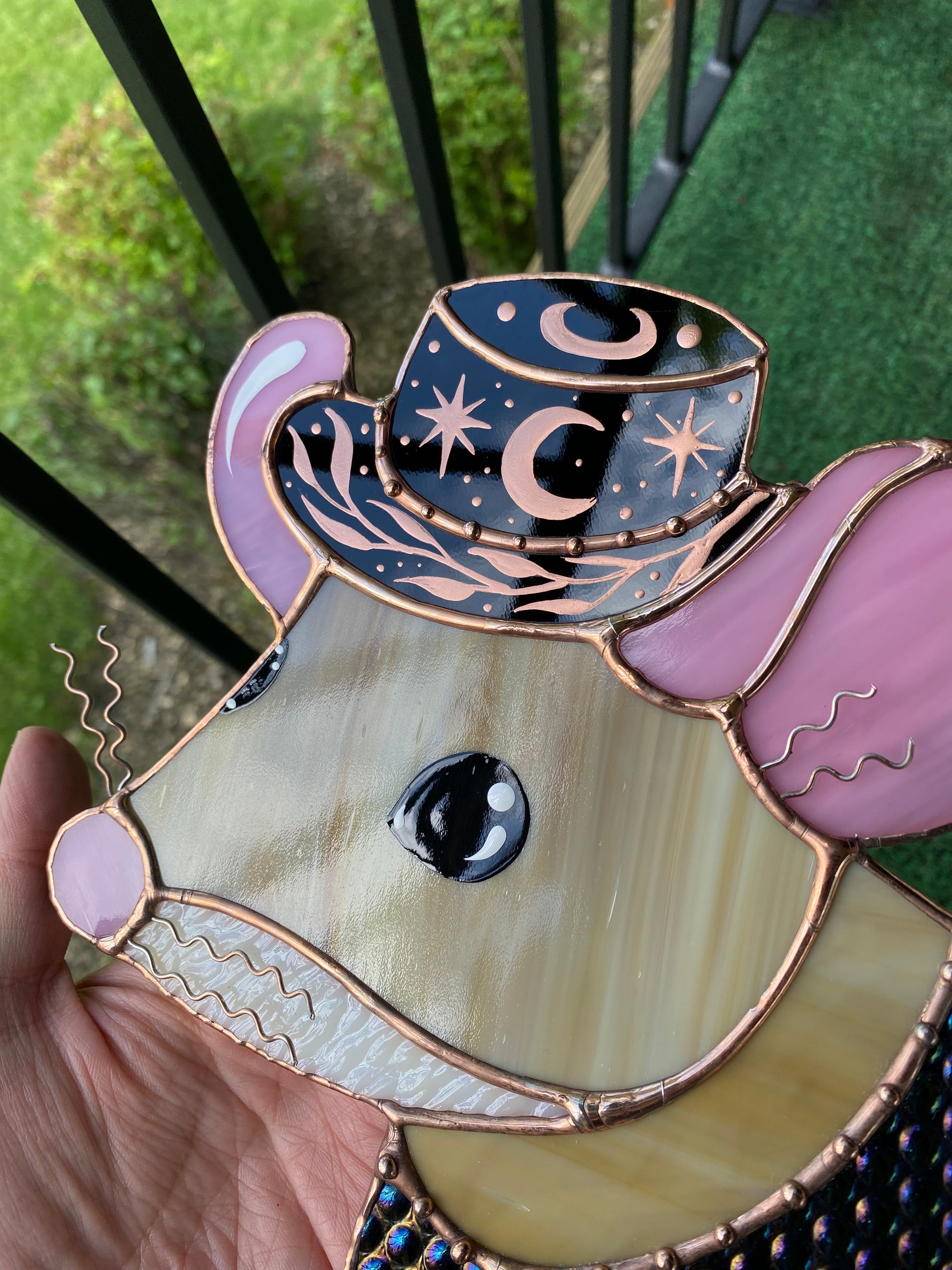 Celestial Cowboy Mouse Stained Glass Suncatcher