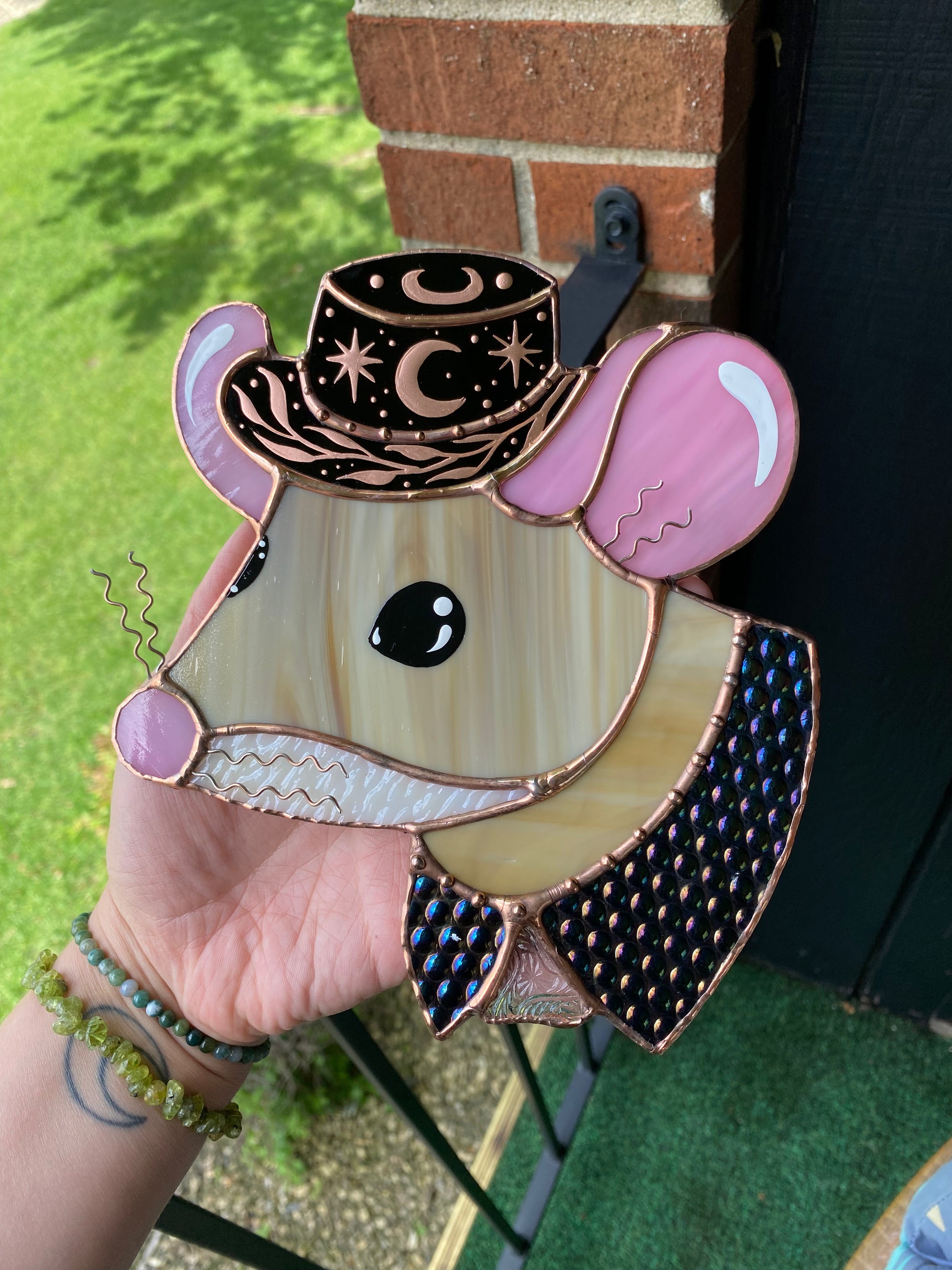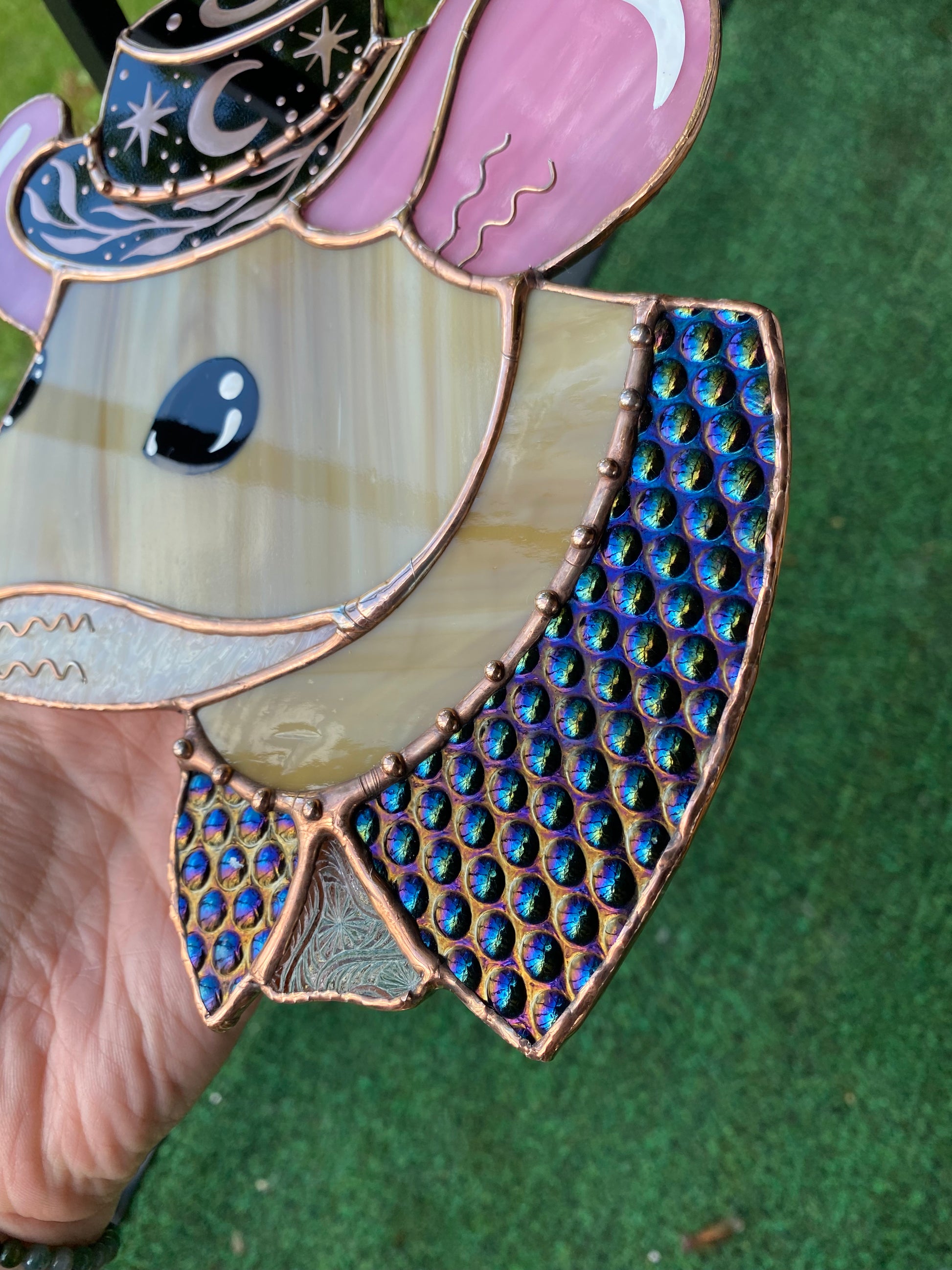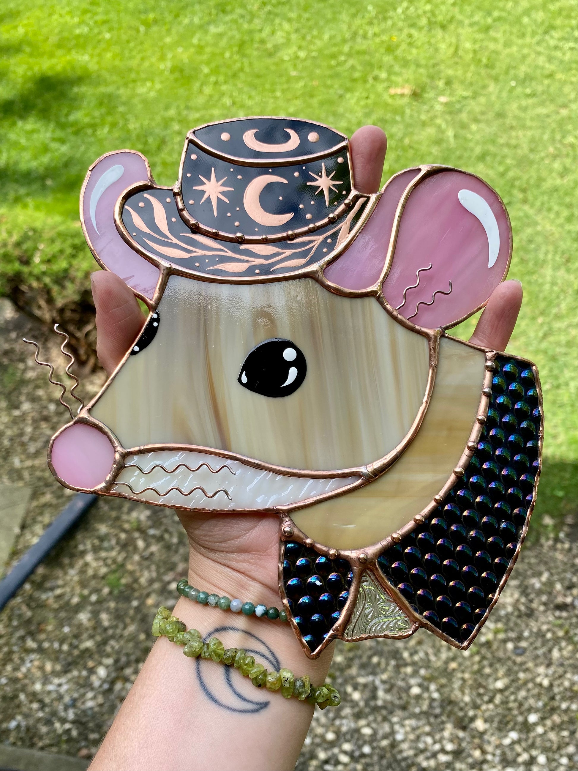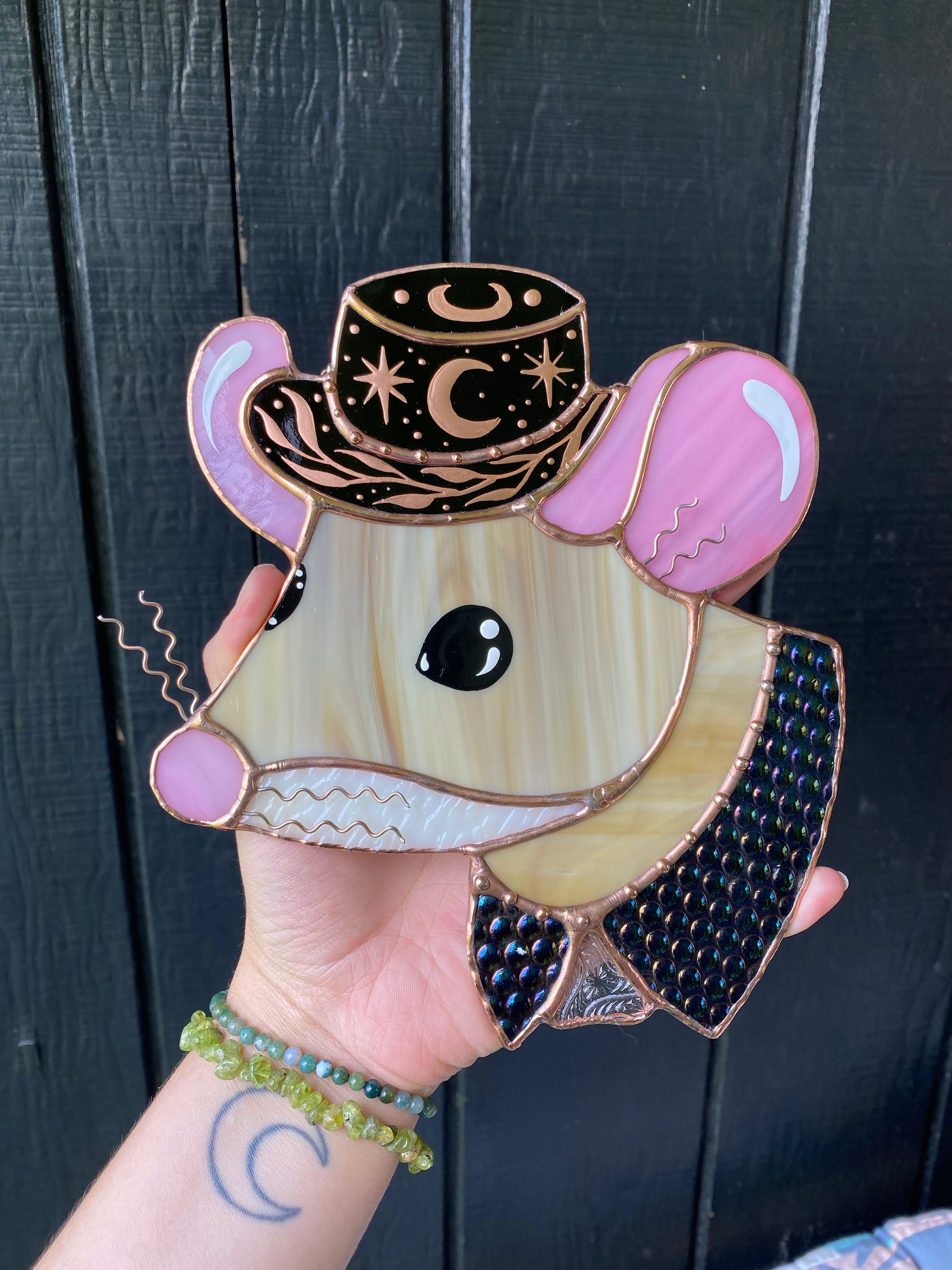 Celestial Cowboy Mouse Stained Glass Suncatcher