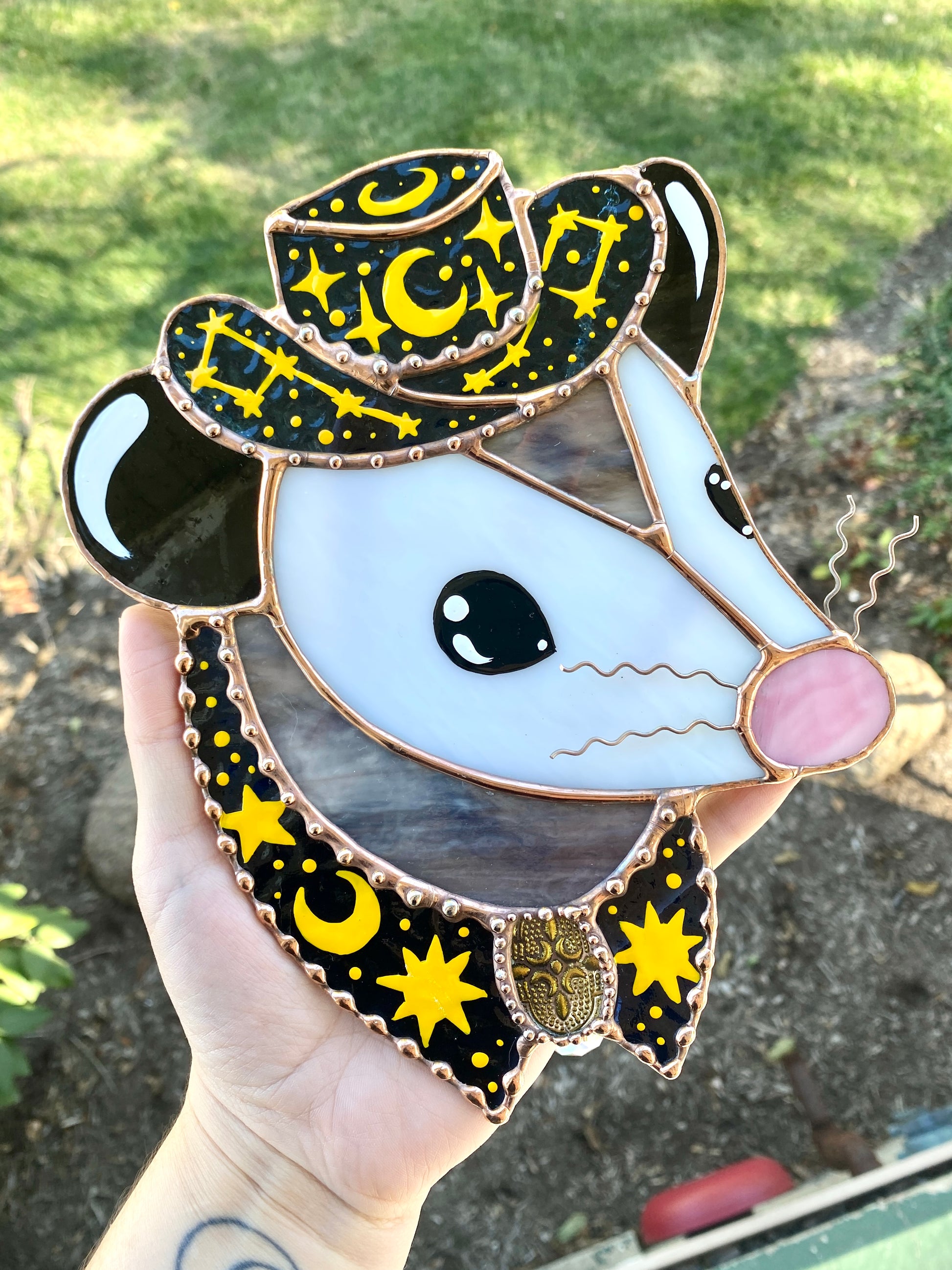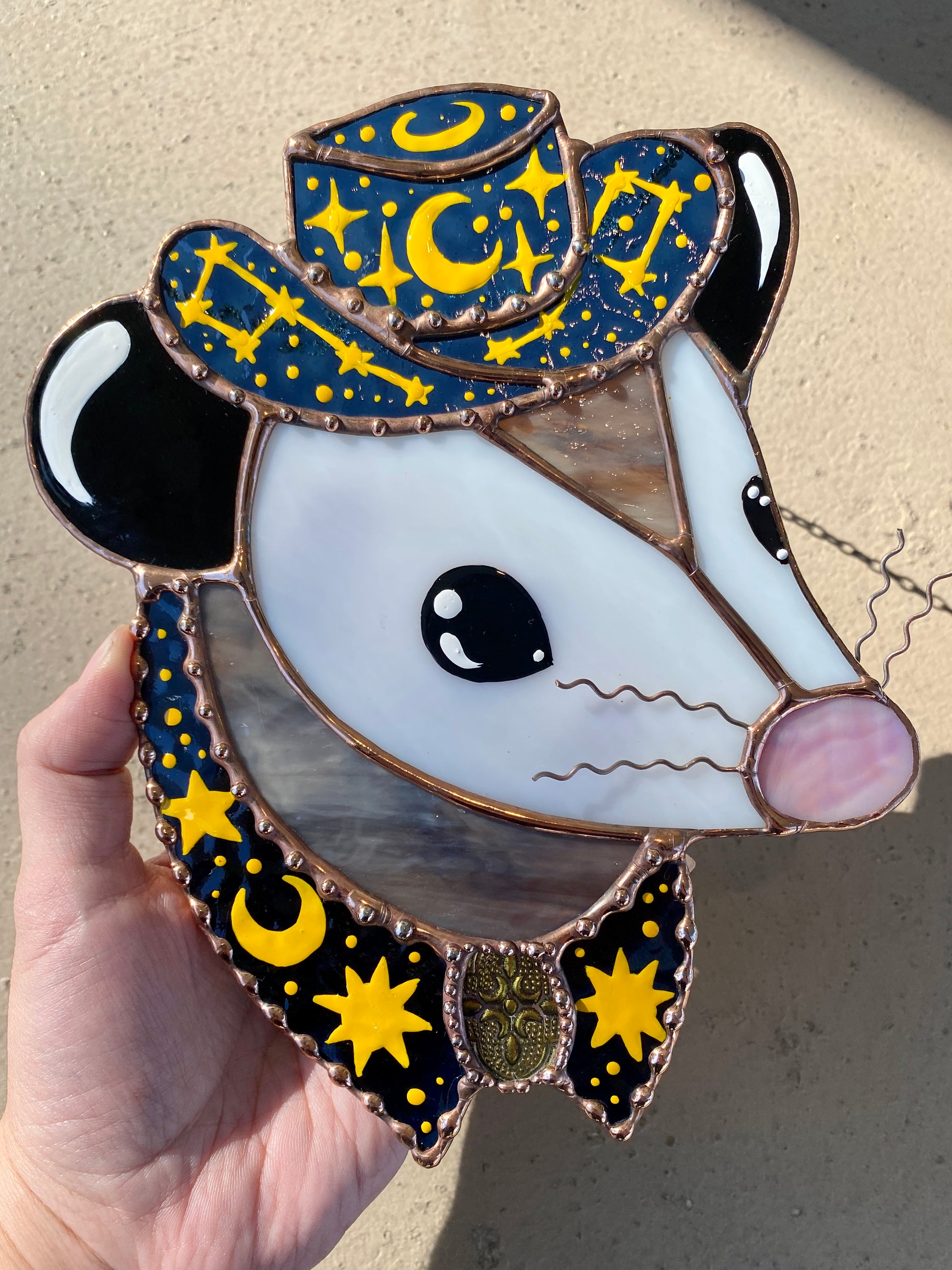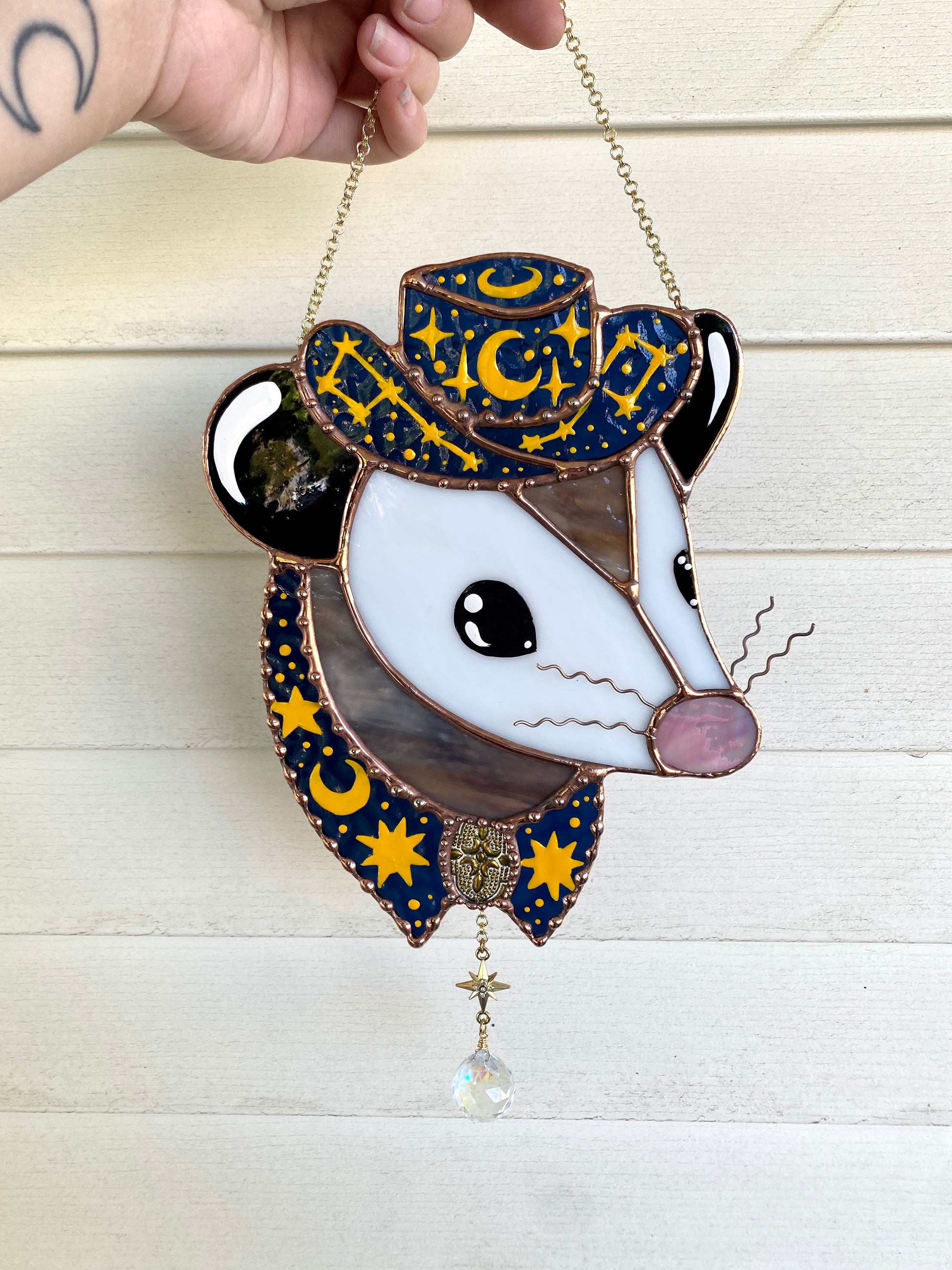 Celestial Cowboy Opossum Stained Glass Suncatcher
