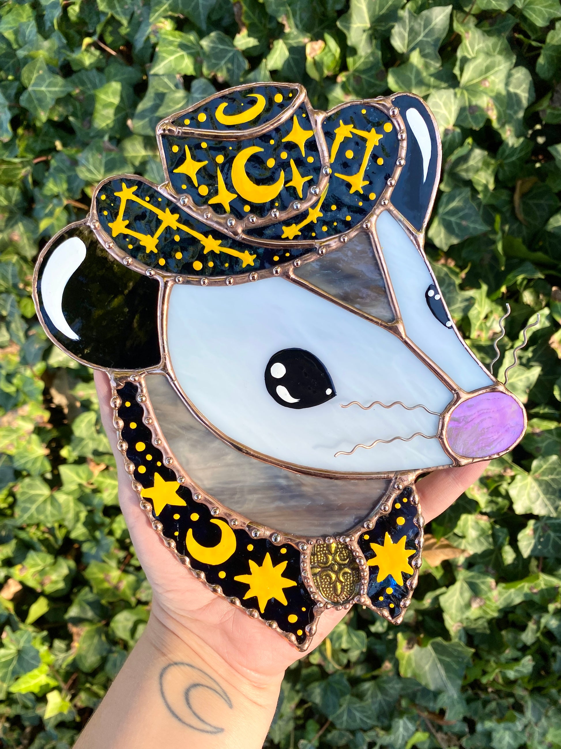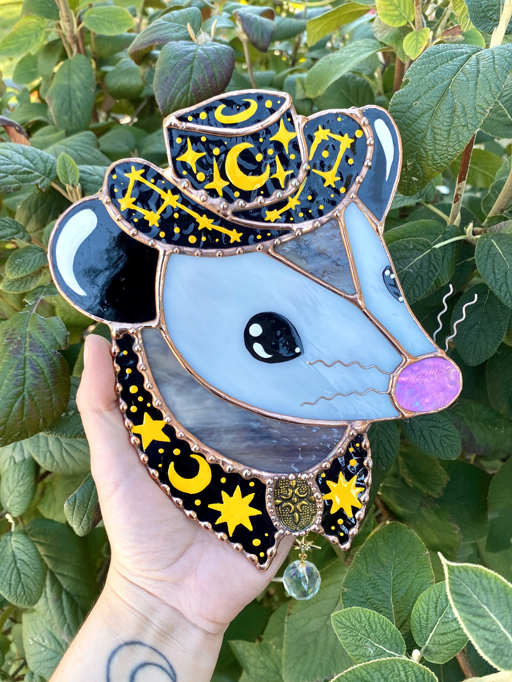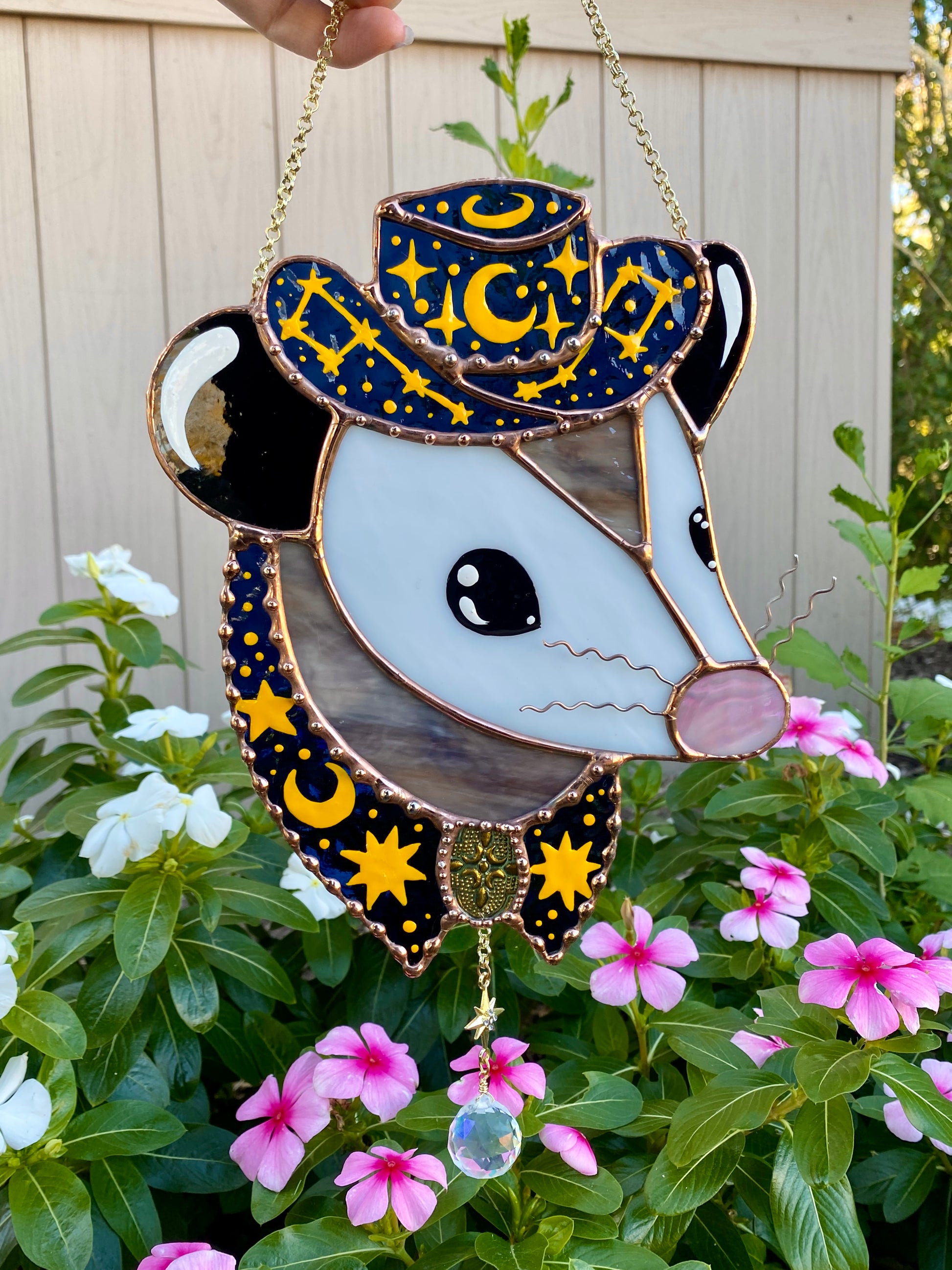 Celestial Cowboy Opossum Stained Glass Suncatcher