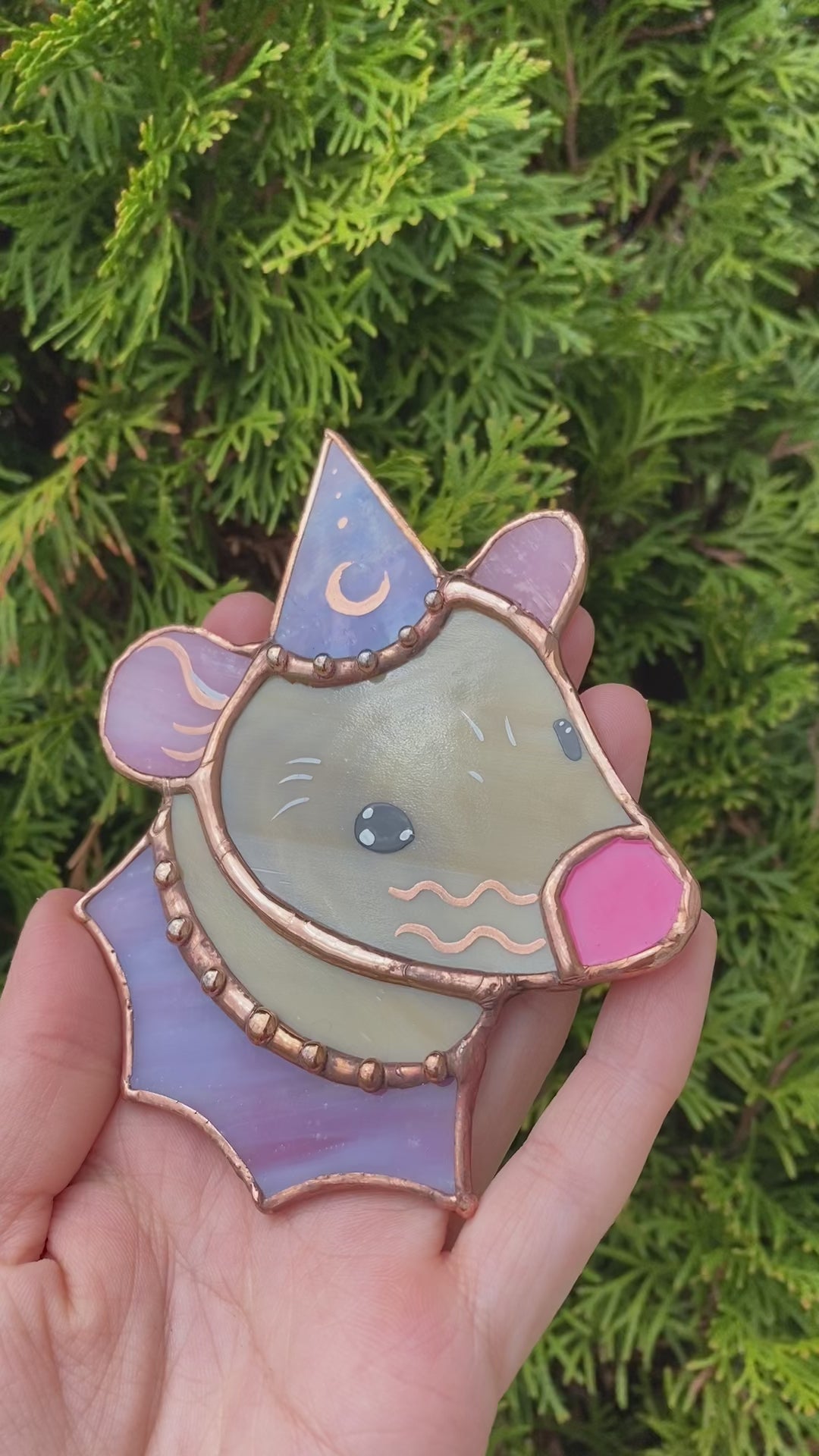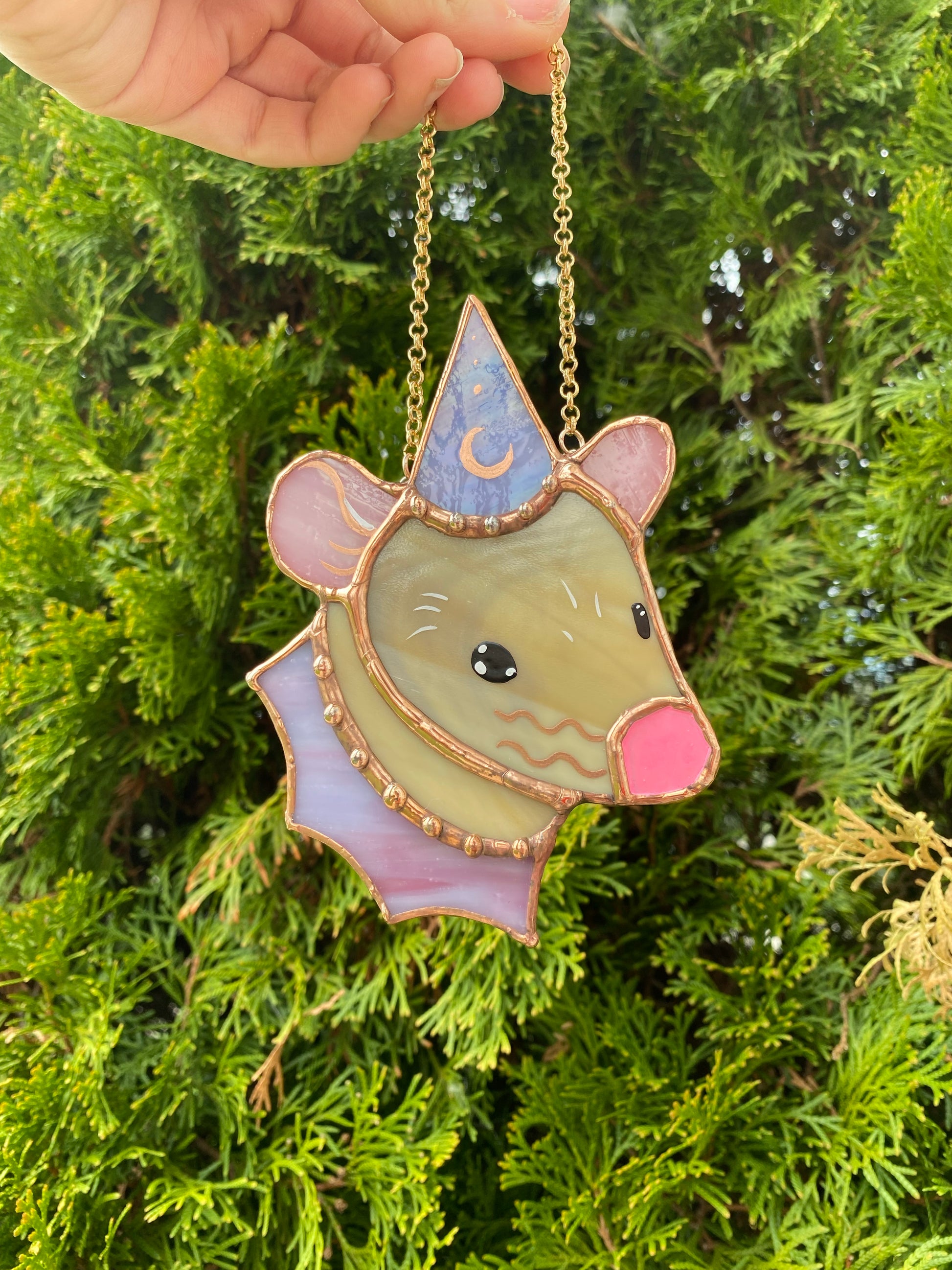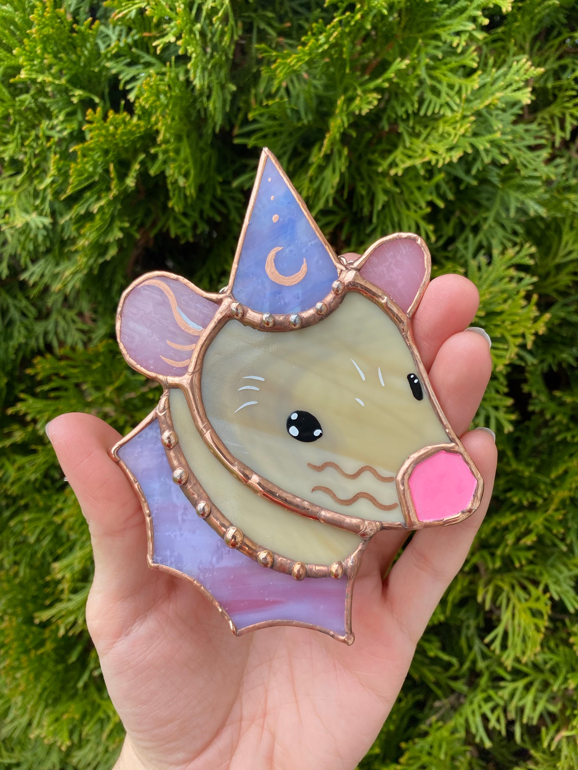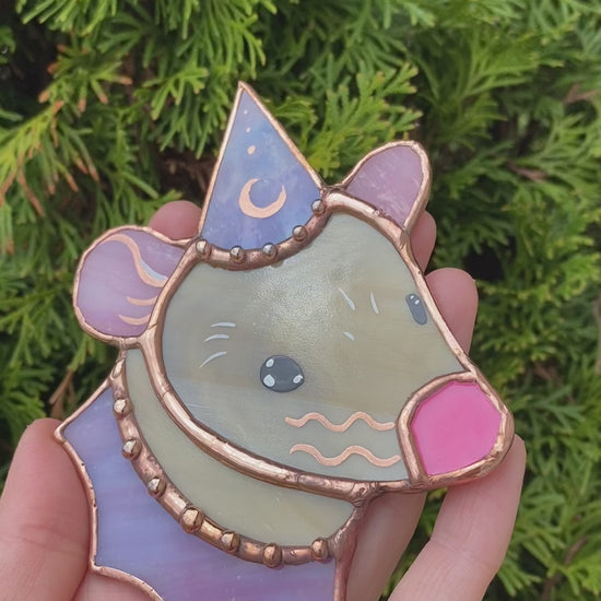 Copper and Pink Tan Wizard Rat Mini Stained Glass Suncatcher