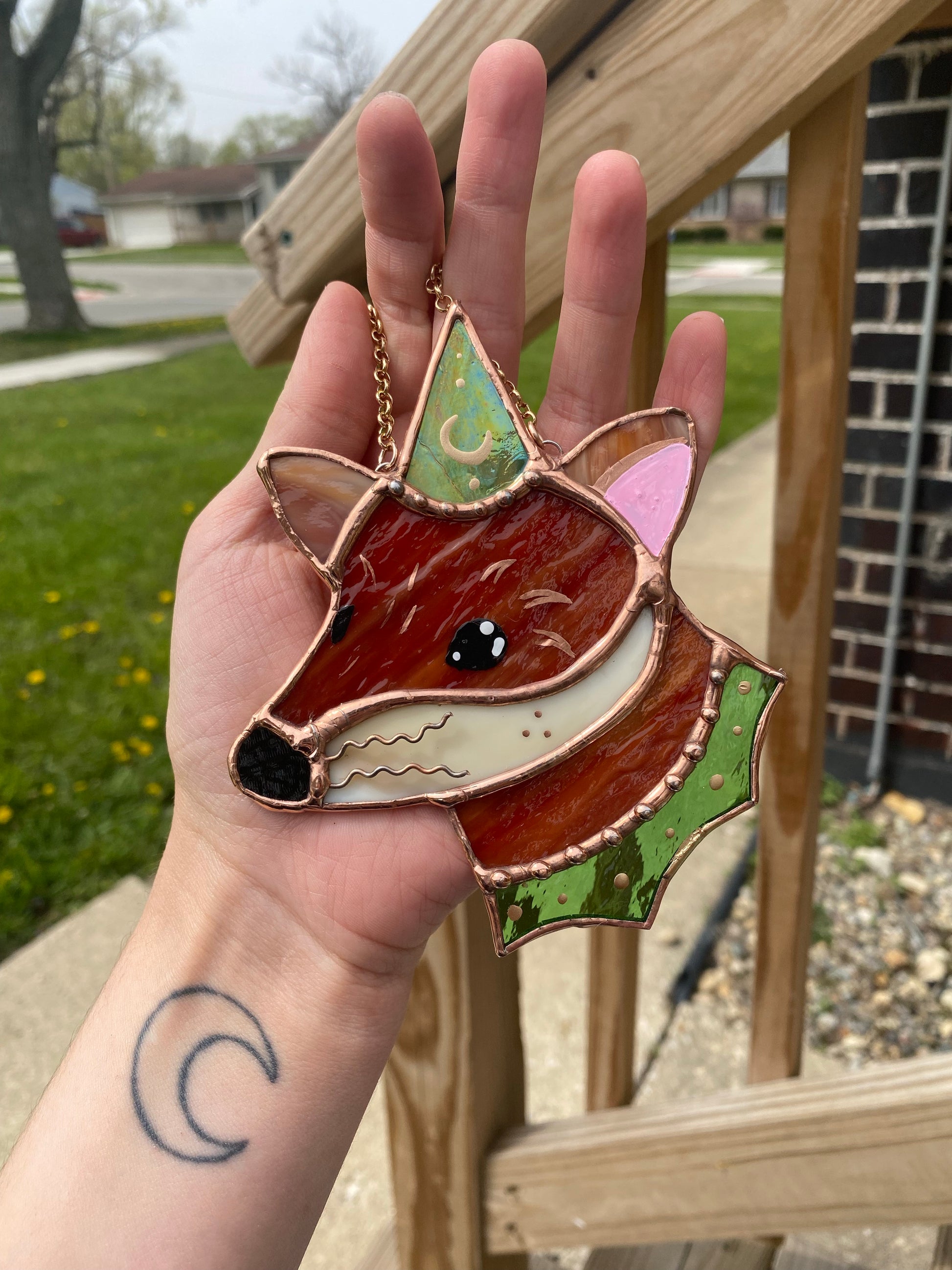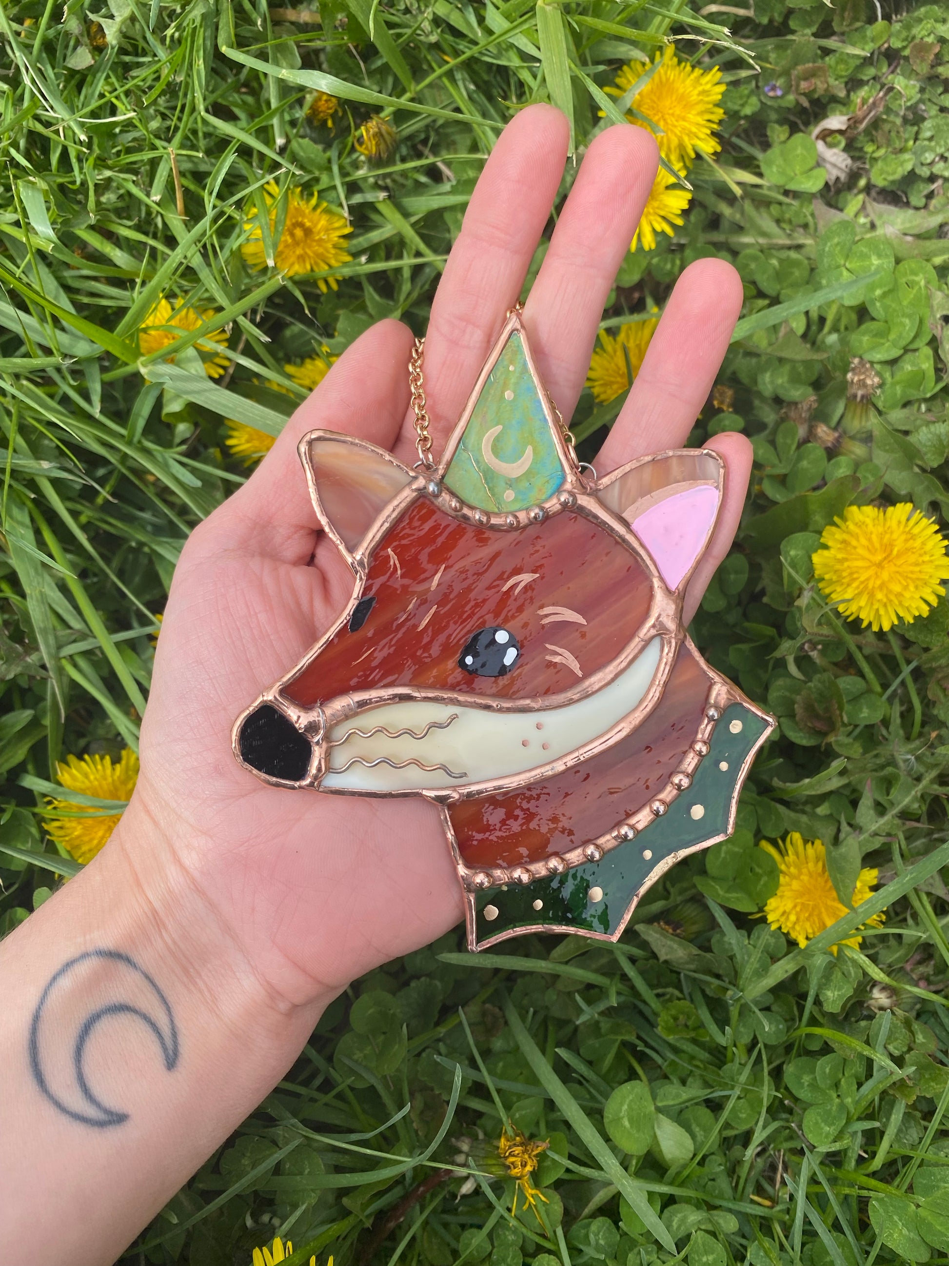 Light Green Mini Wizard Fox Stained Glass Suncatcher