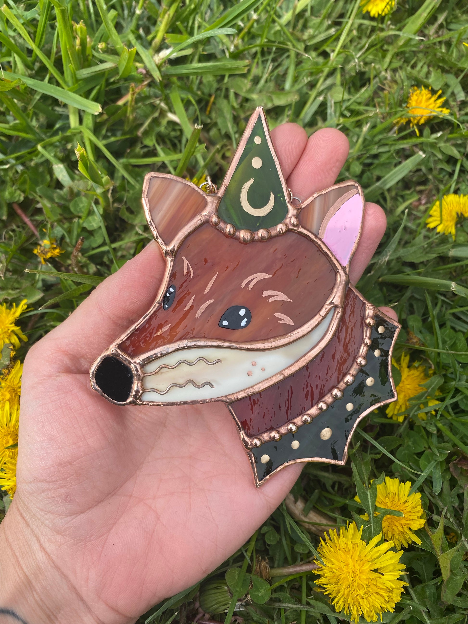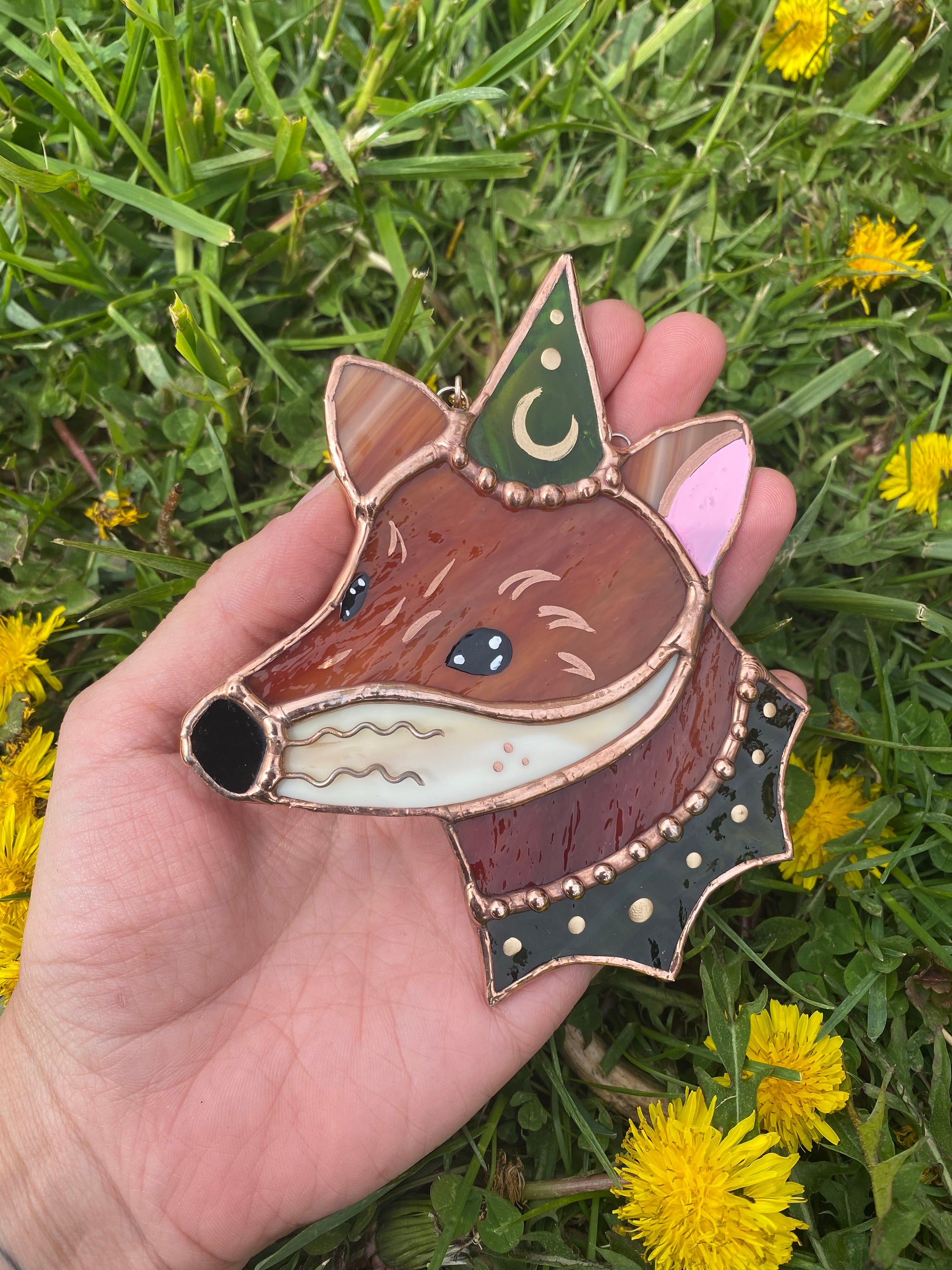 Dark Green Mini Wizard Fox Stained Glass Suncatcher