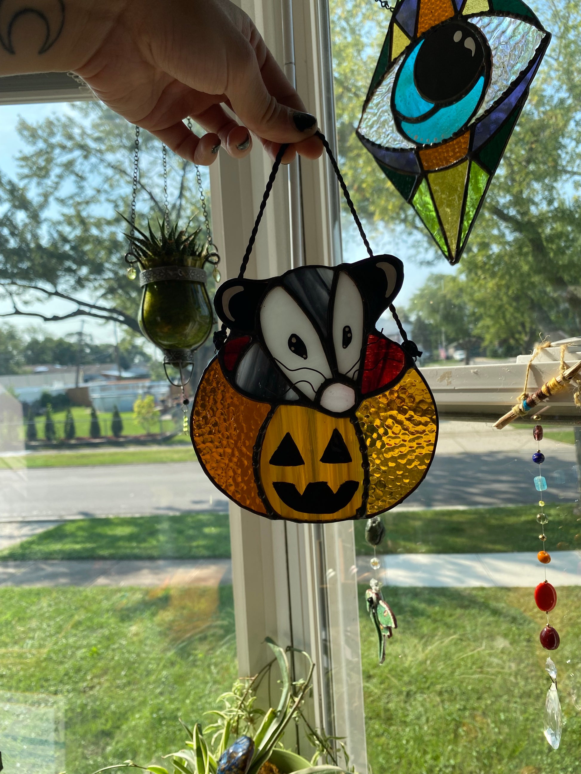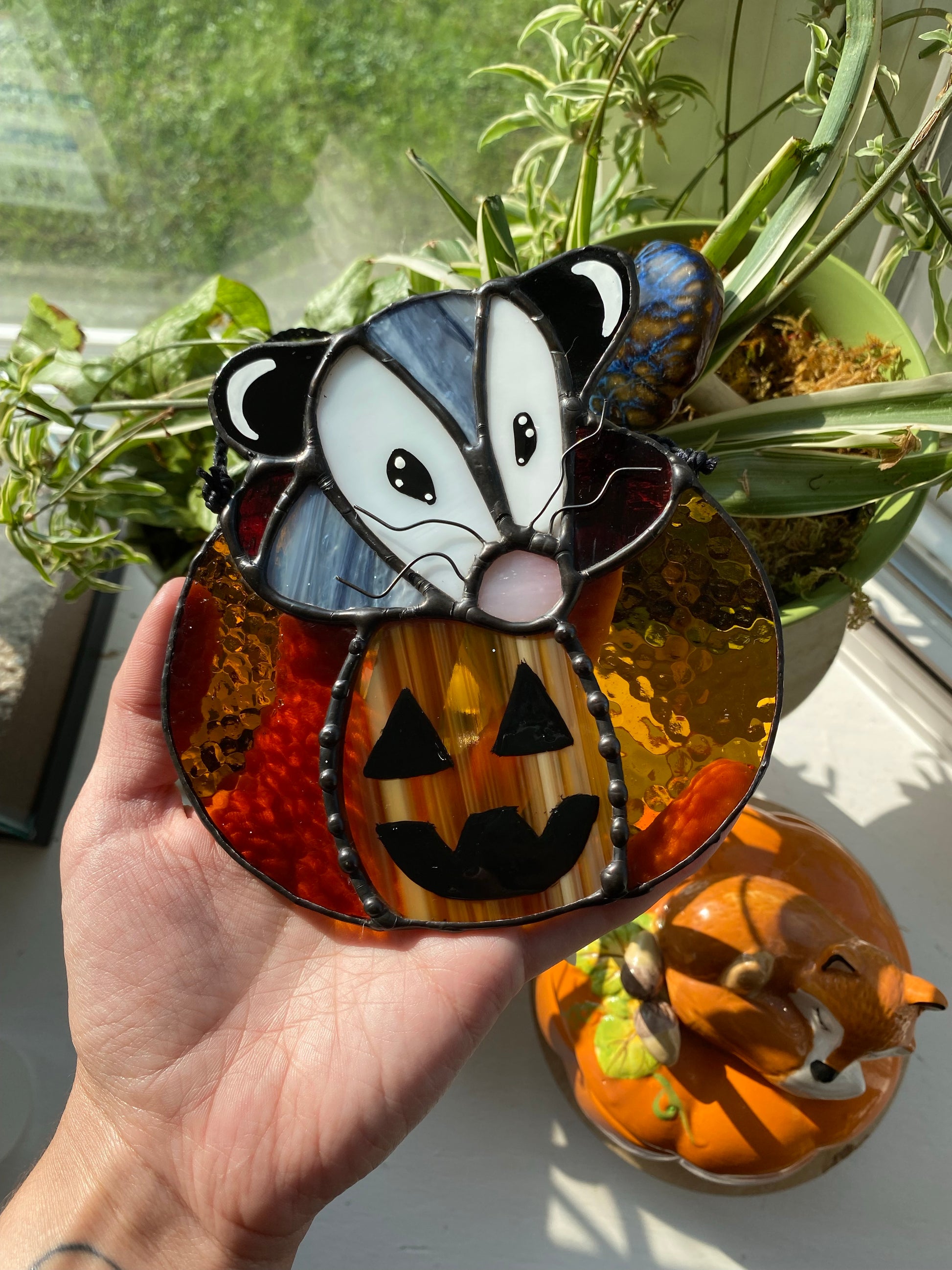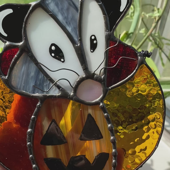 Mini Pumpkin Opossum Stained Glass Suncatcher