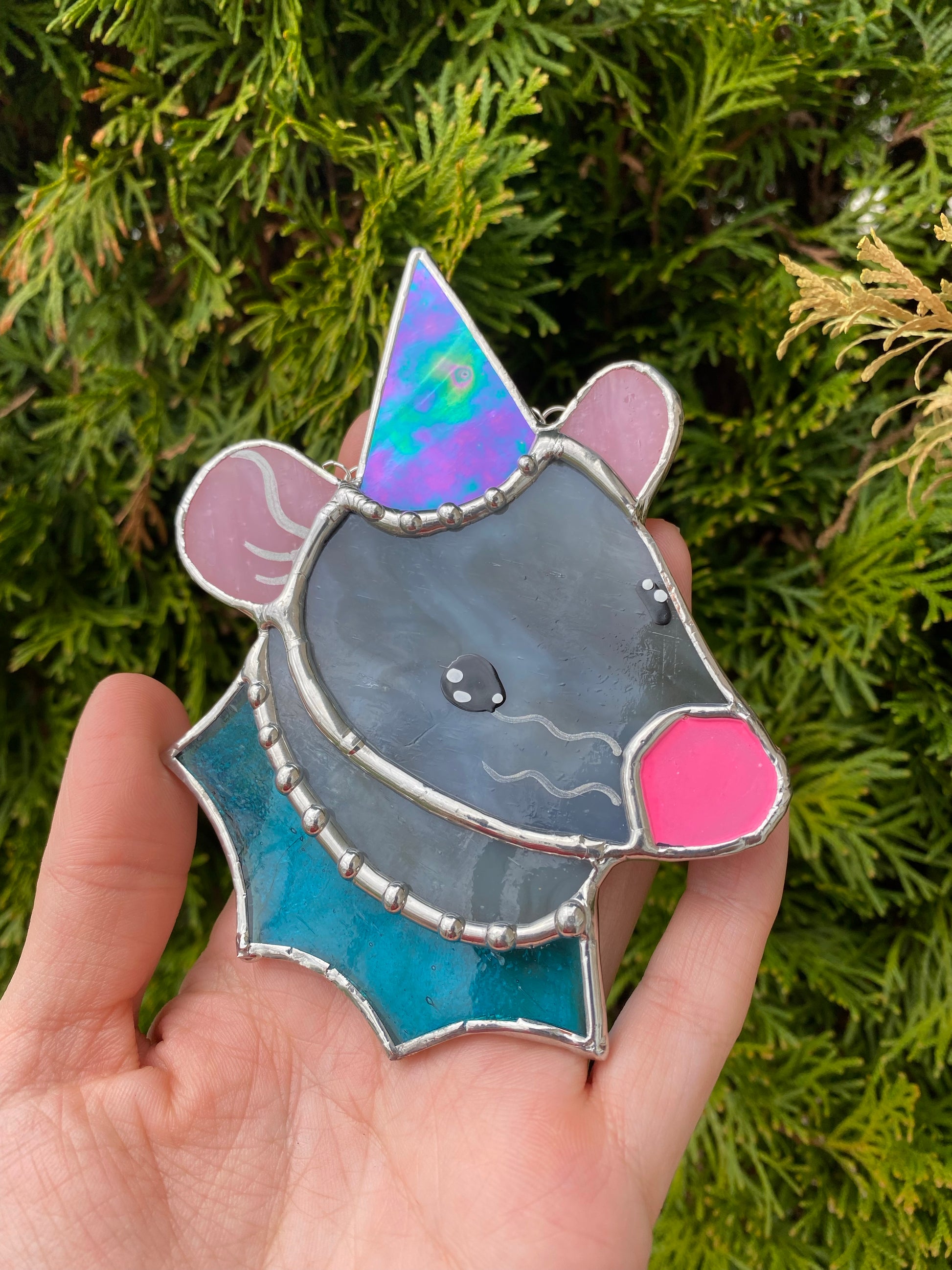 Blue and Gray Wizard Ray Mini Stained Glass Suncatcher