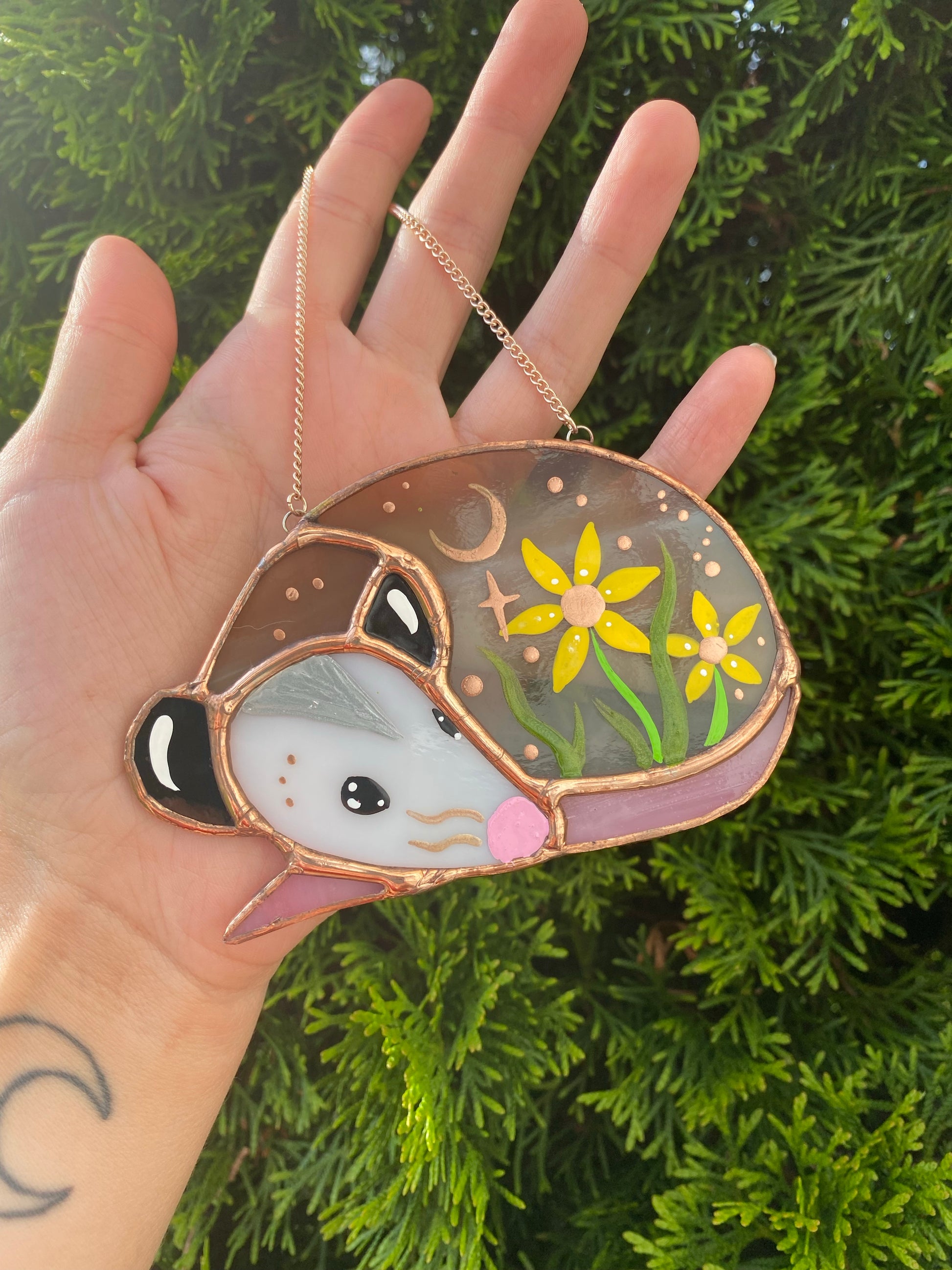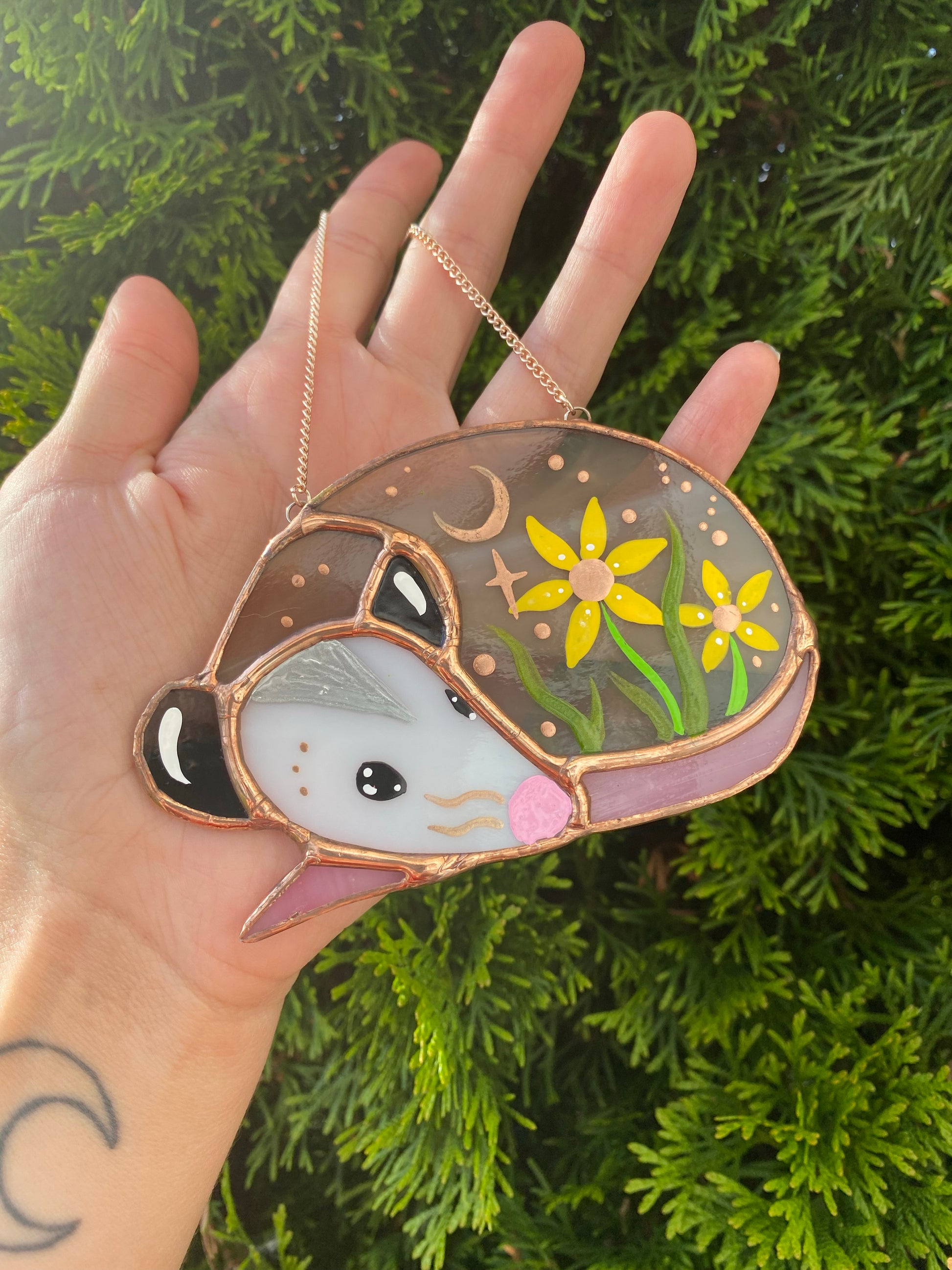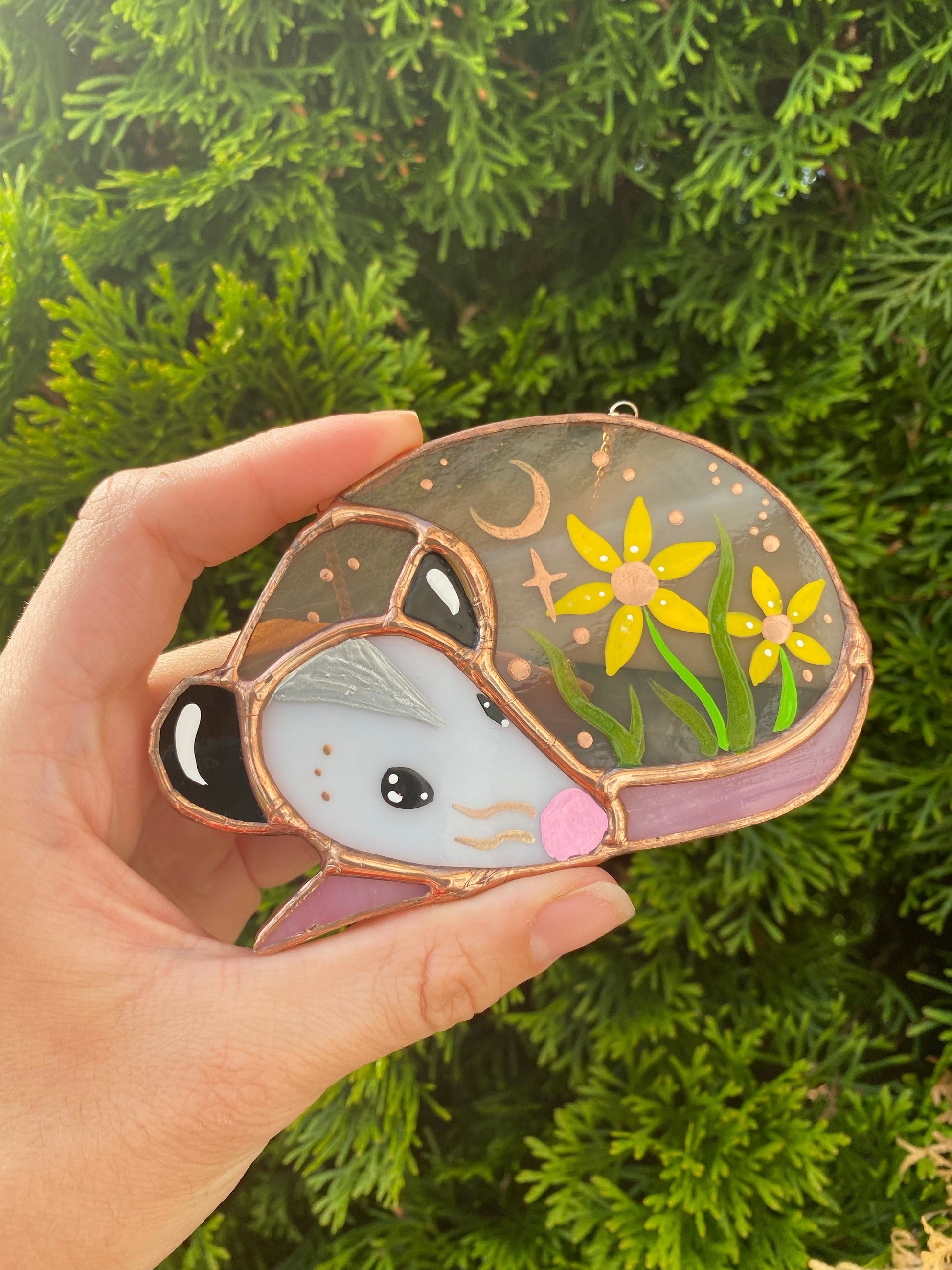Sunflower Sleepy Opossum Mini Stained Glass Suncatcher