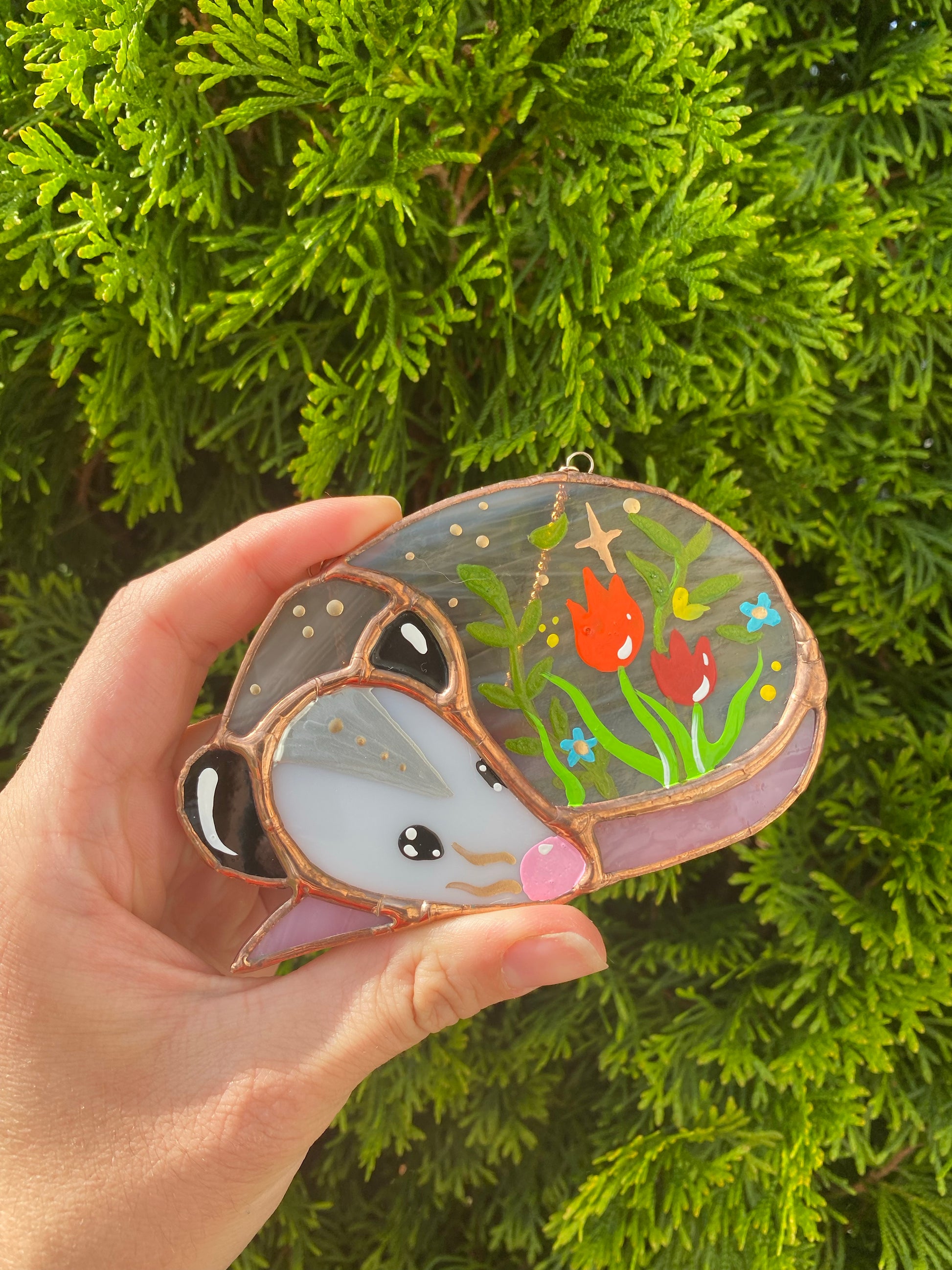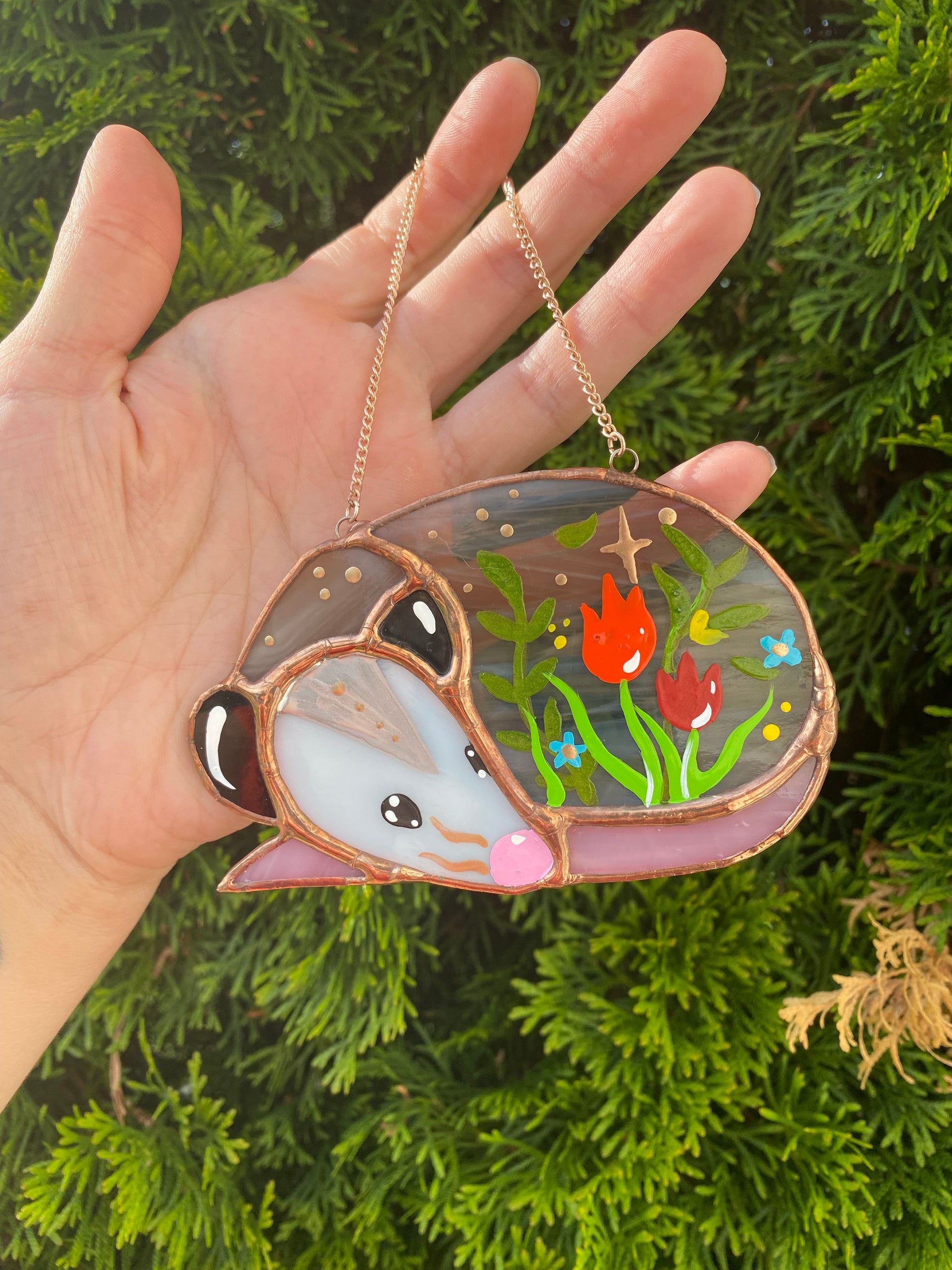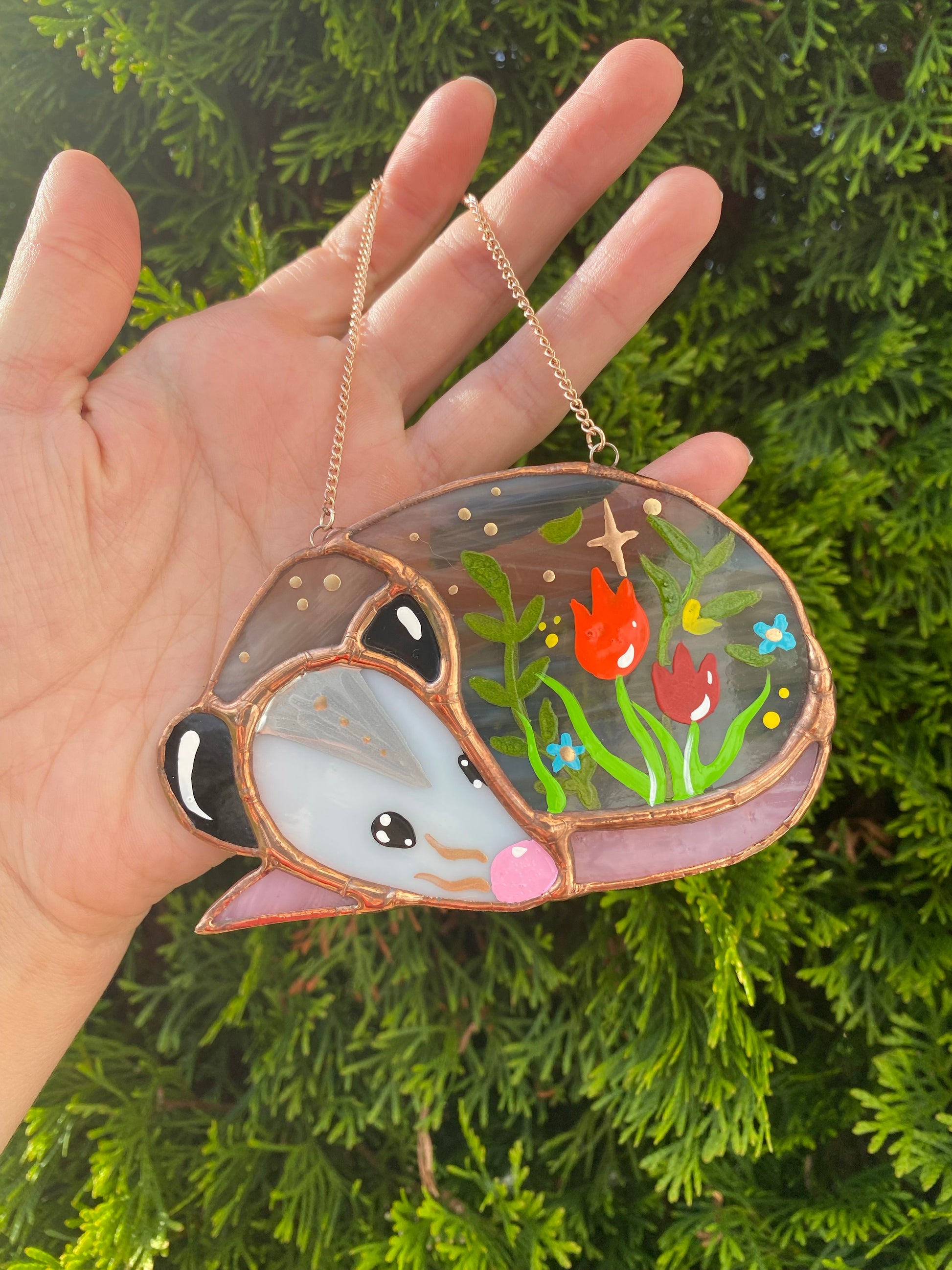Tulips (2) Sleepy Opossum Mini Stained Glass Suncatcher