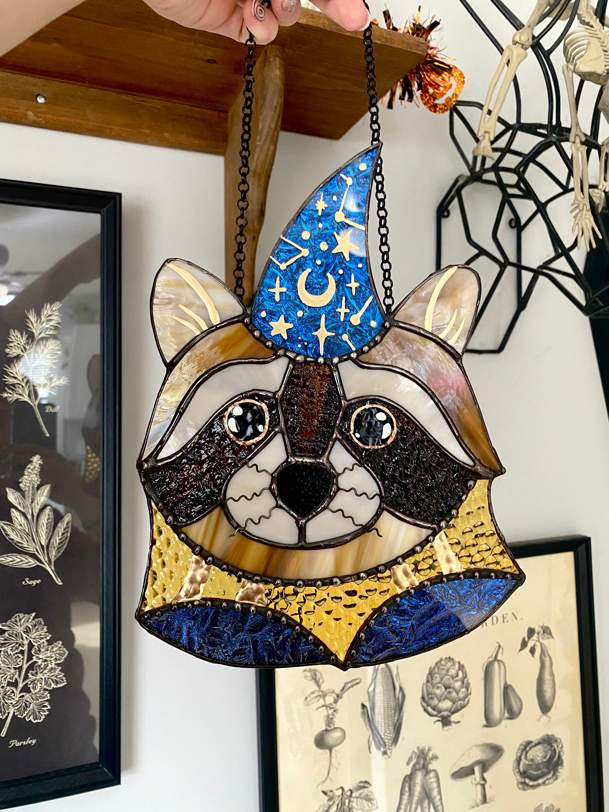 Wizard Raccoon Stained Glass Suncatcher