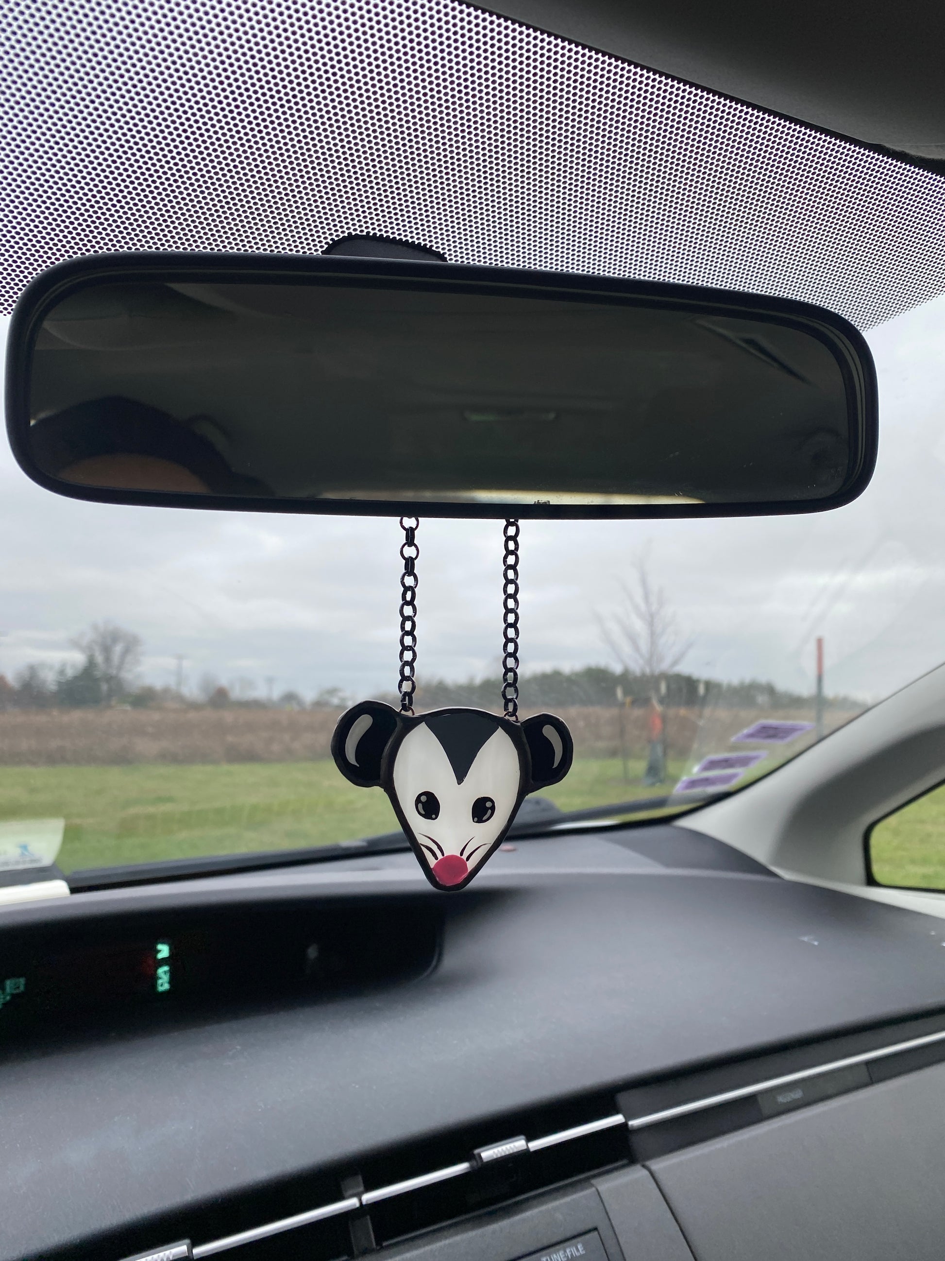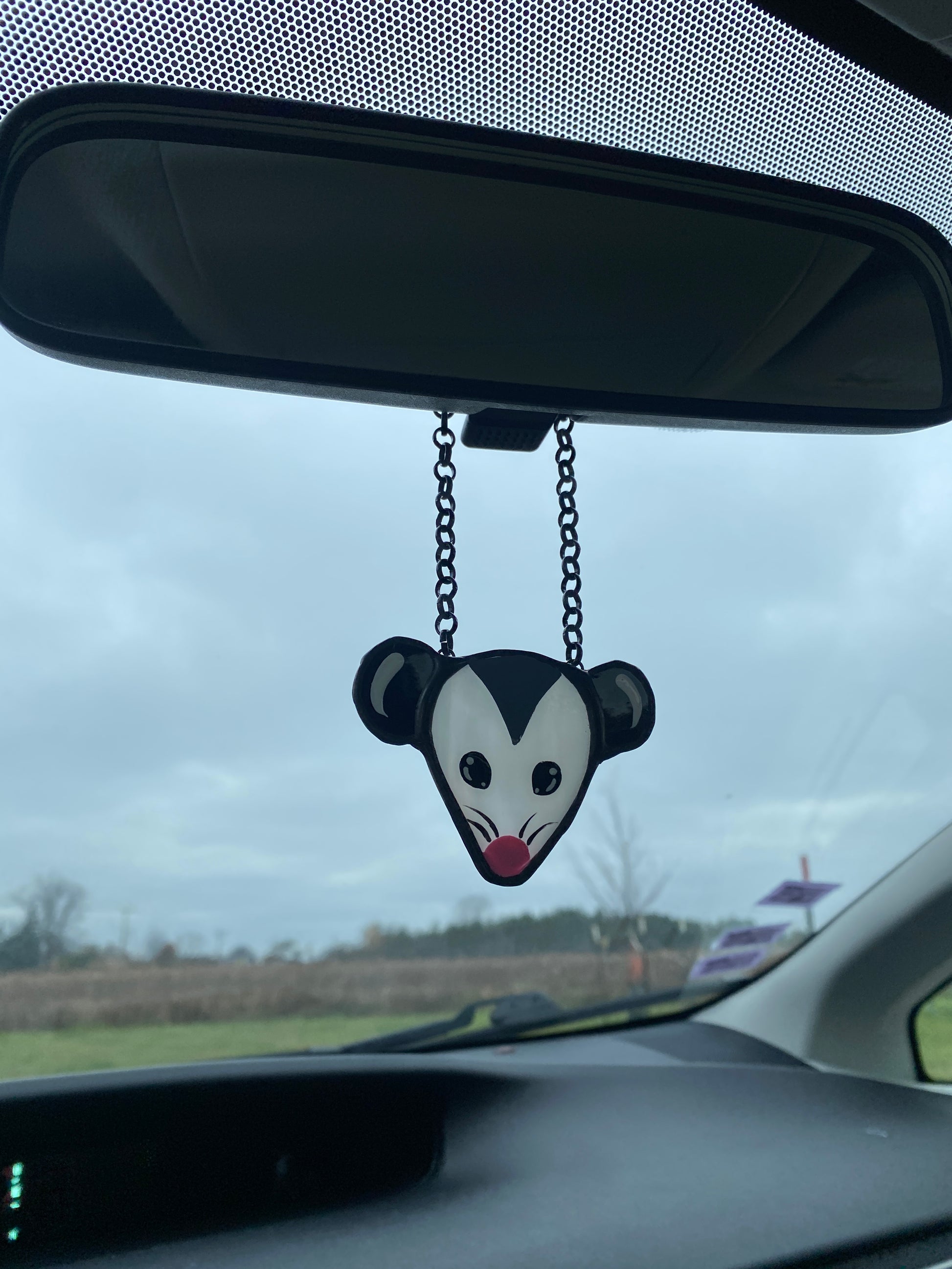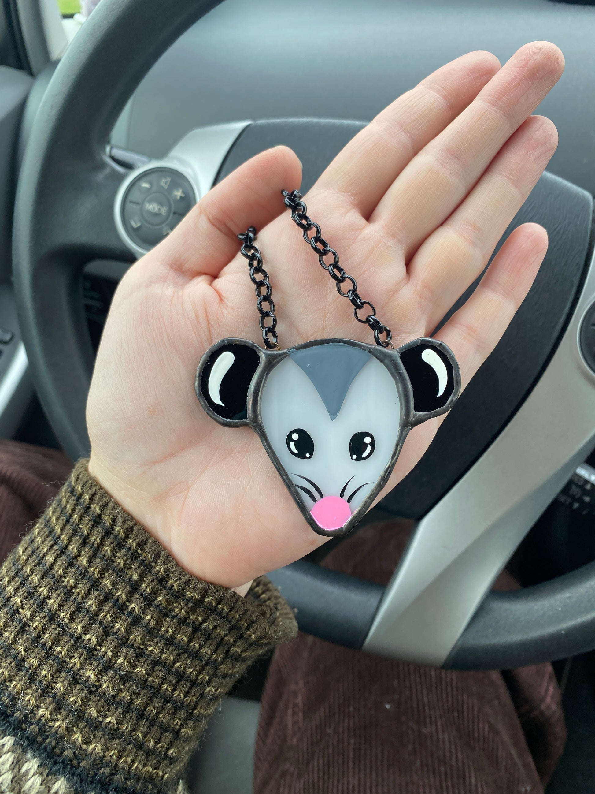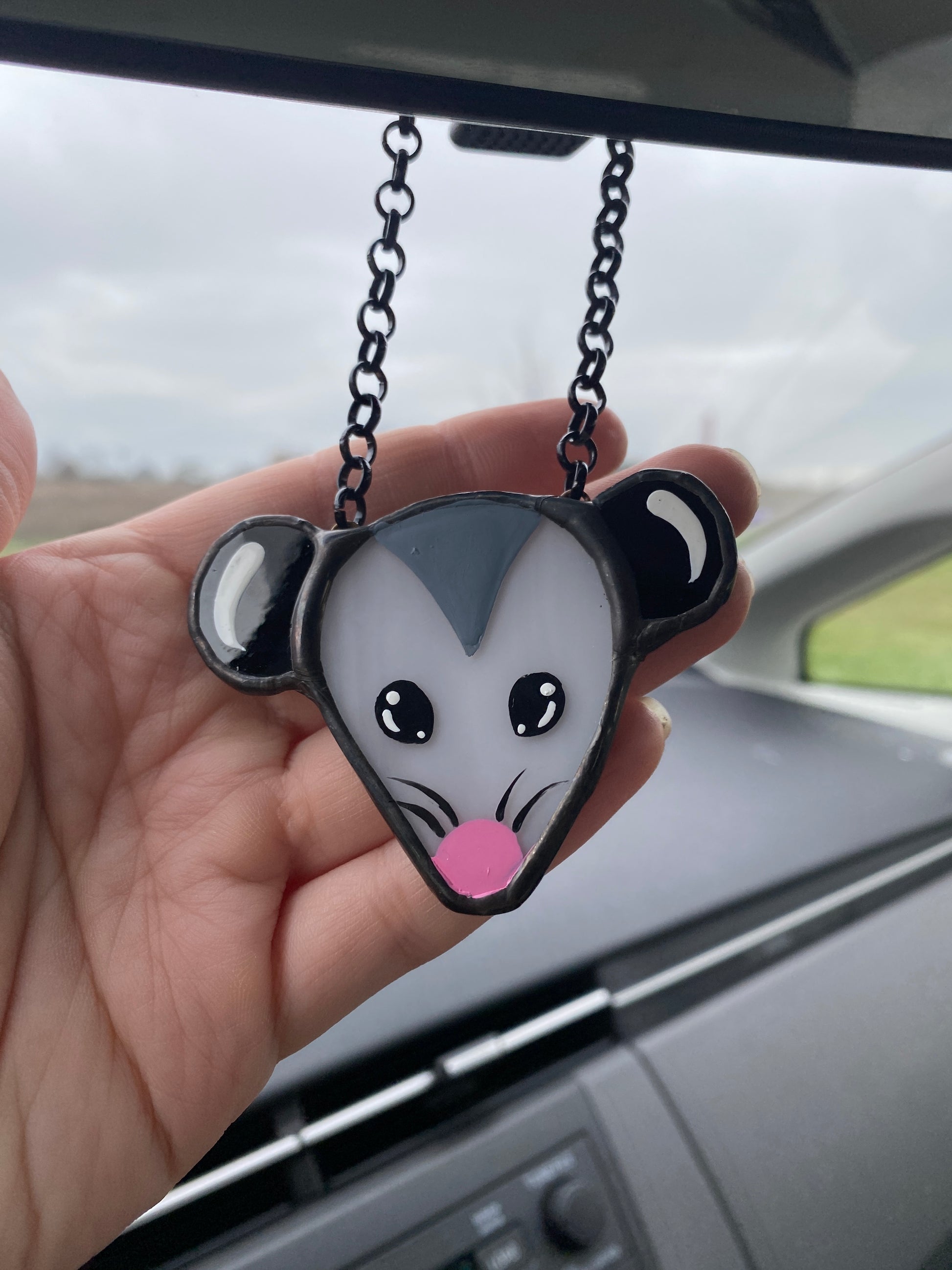 Simple Opossum Stained Glass Car Charm