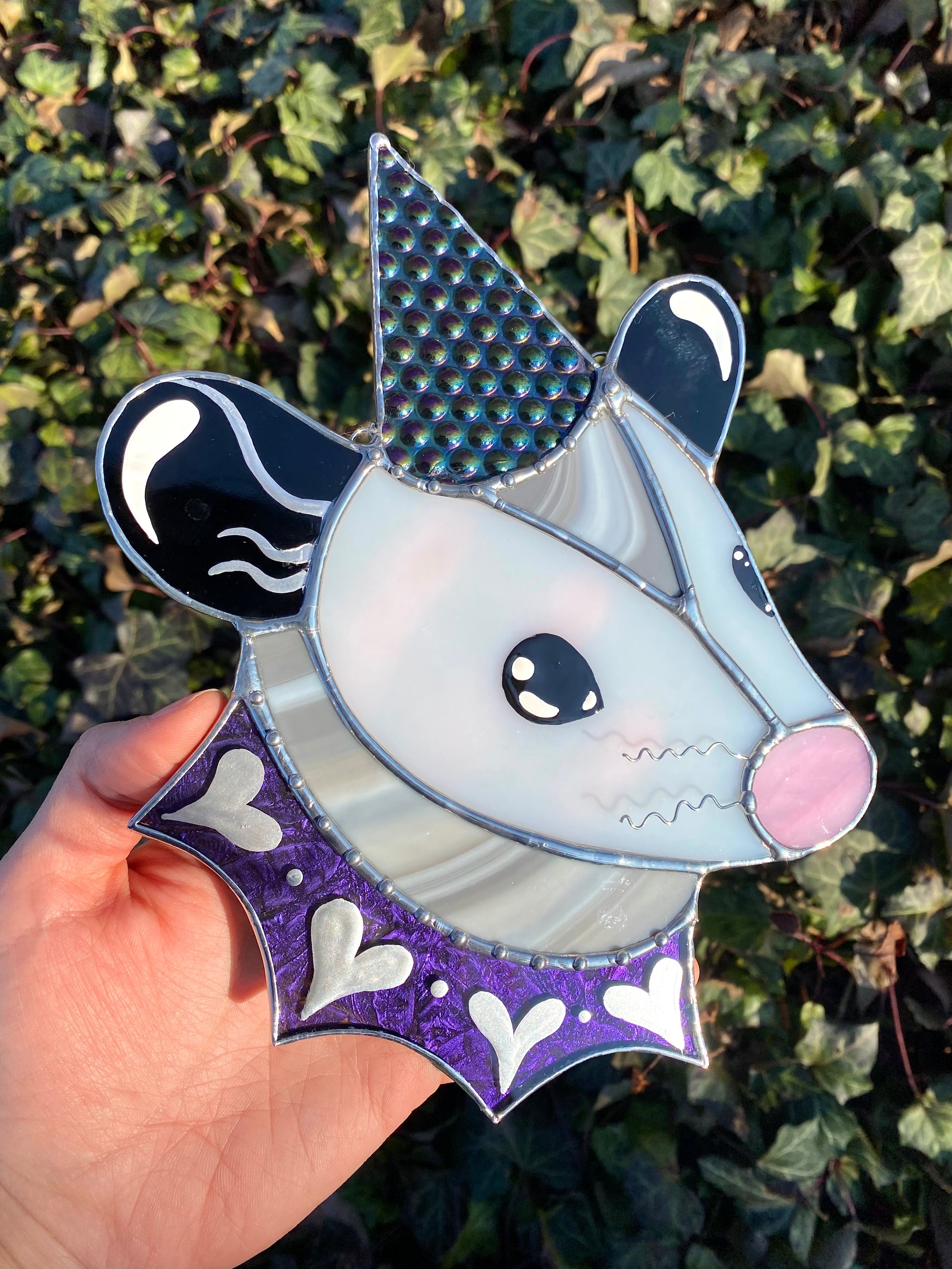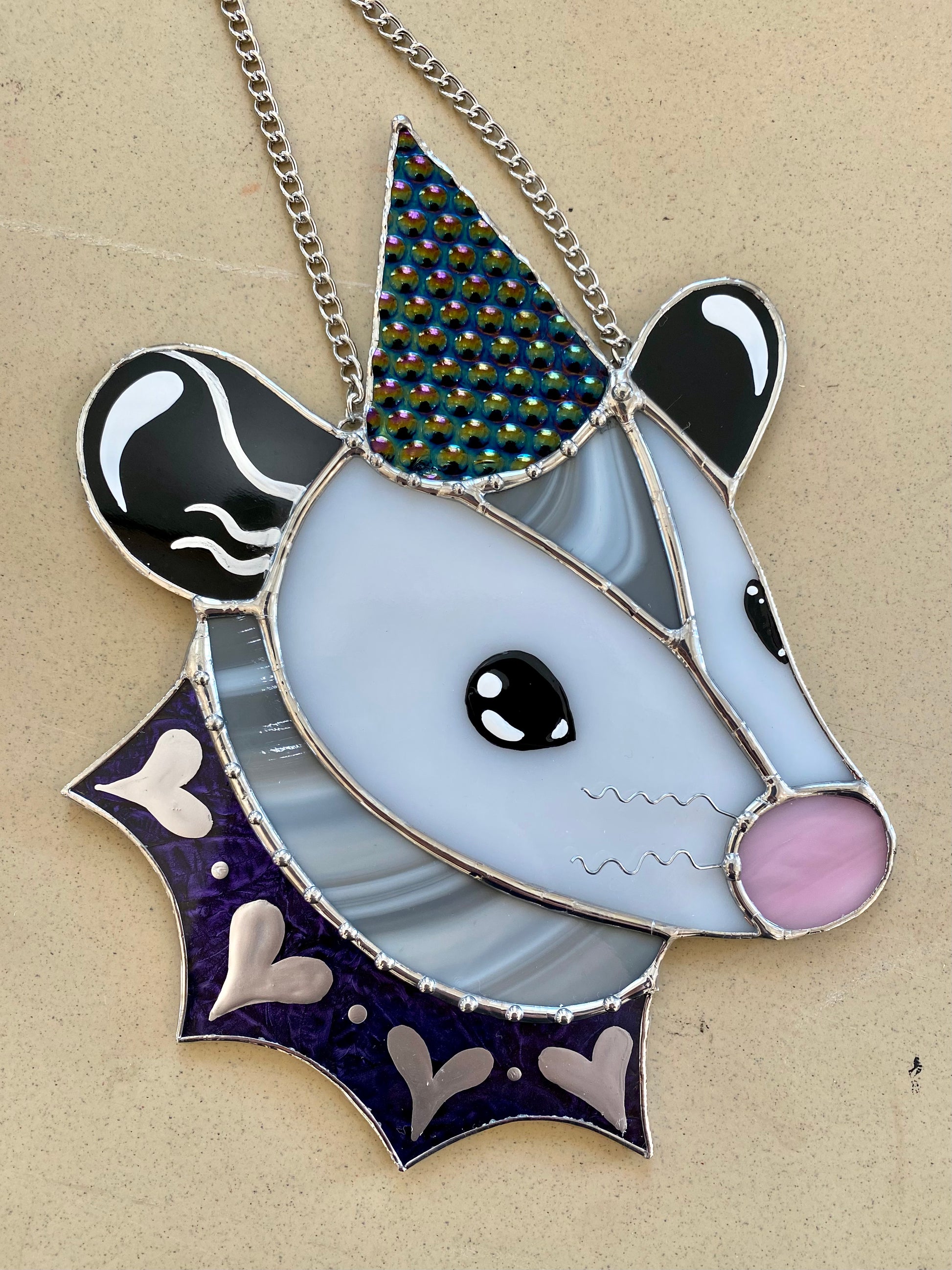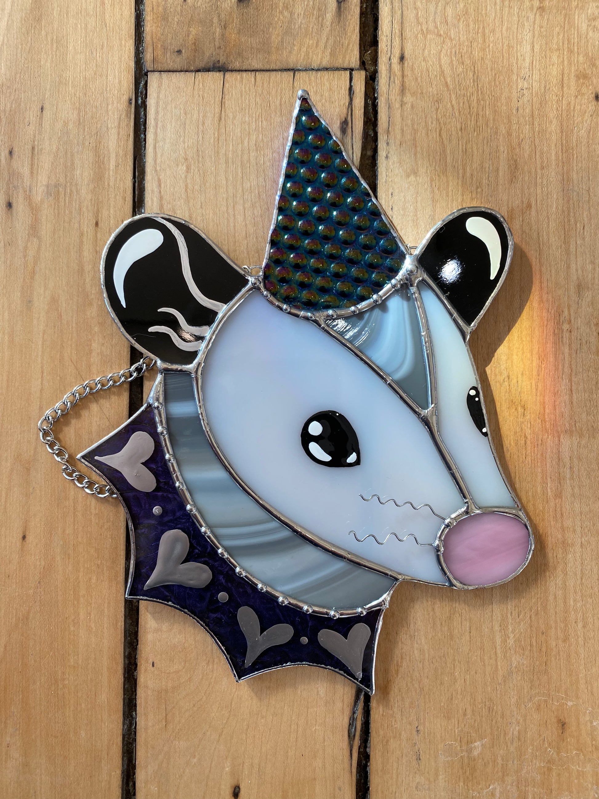 Cosmic Heart Wizard Opossum Stained Glass Suncatcher
