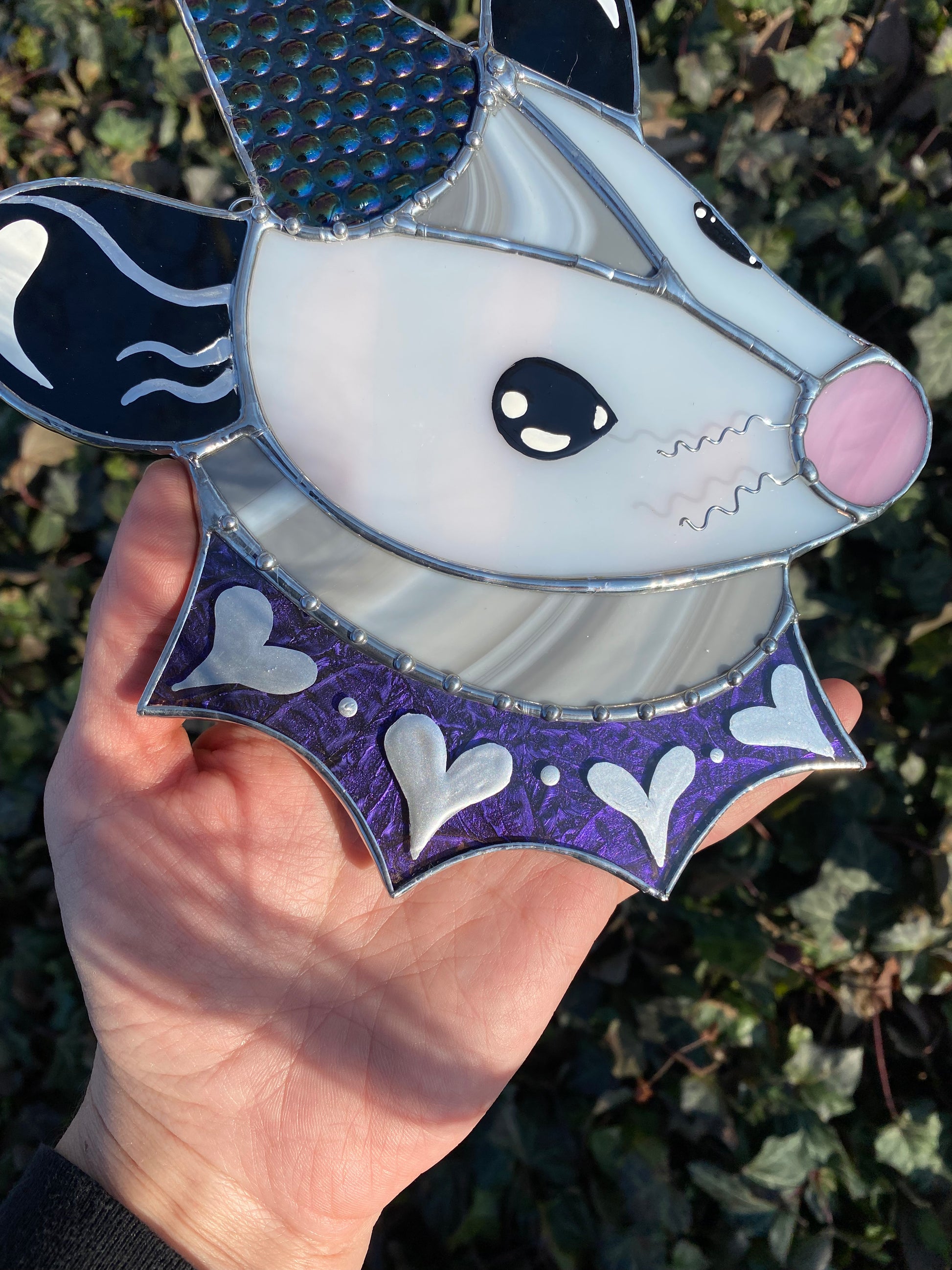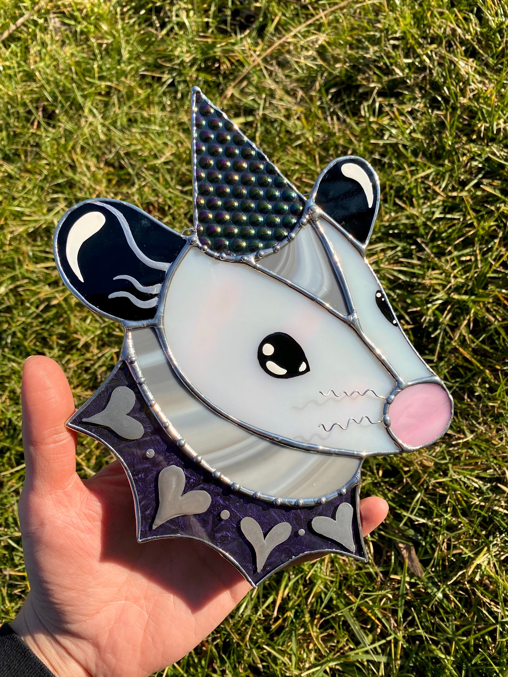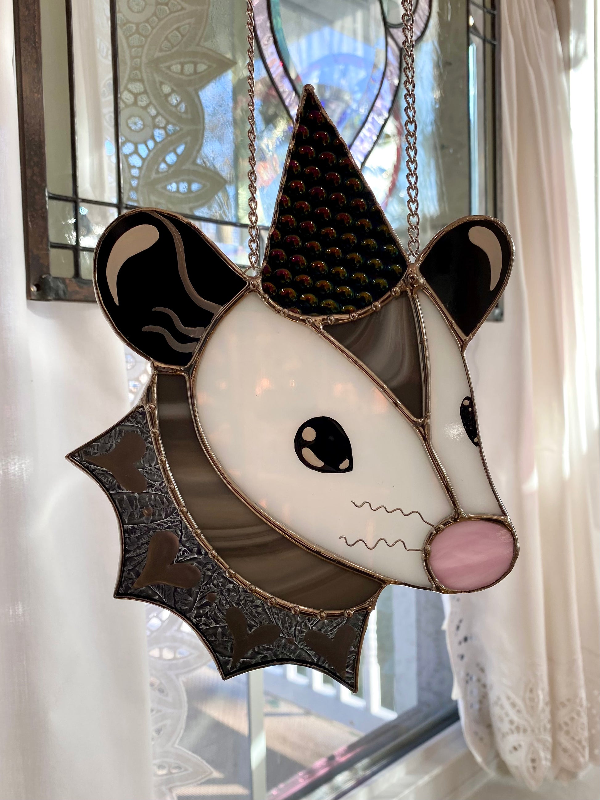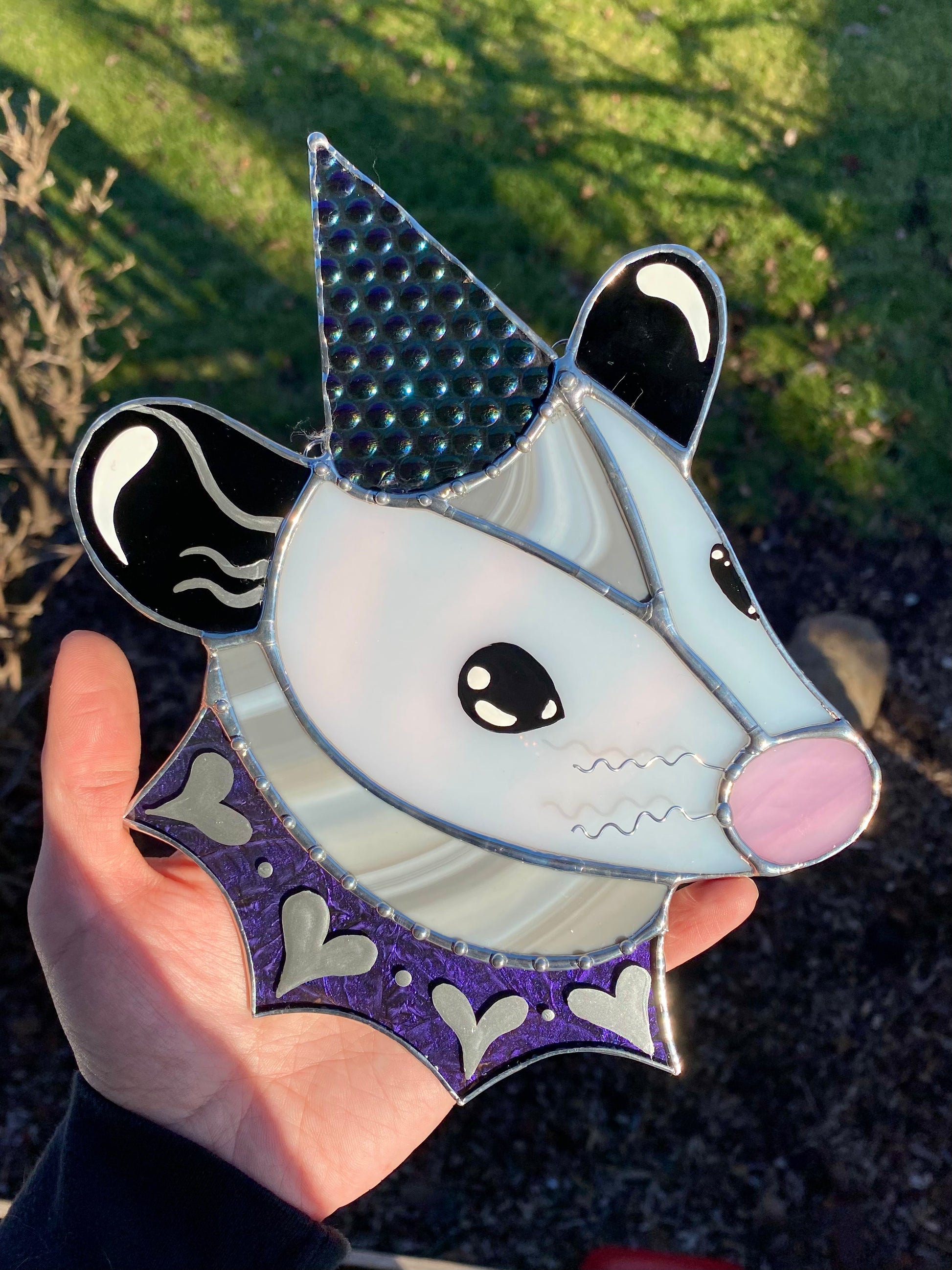 Cosmic Heart Wizard Opossum Stained Glass Suncatcher