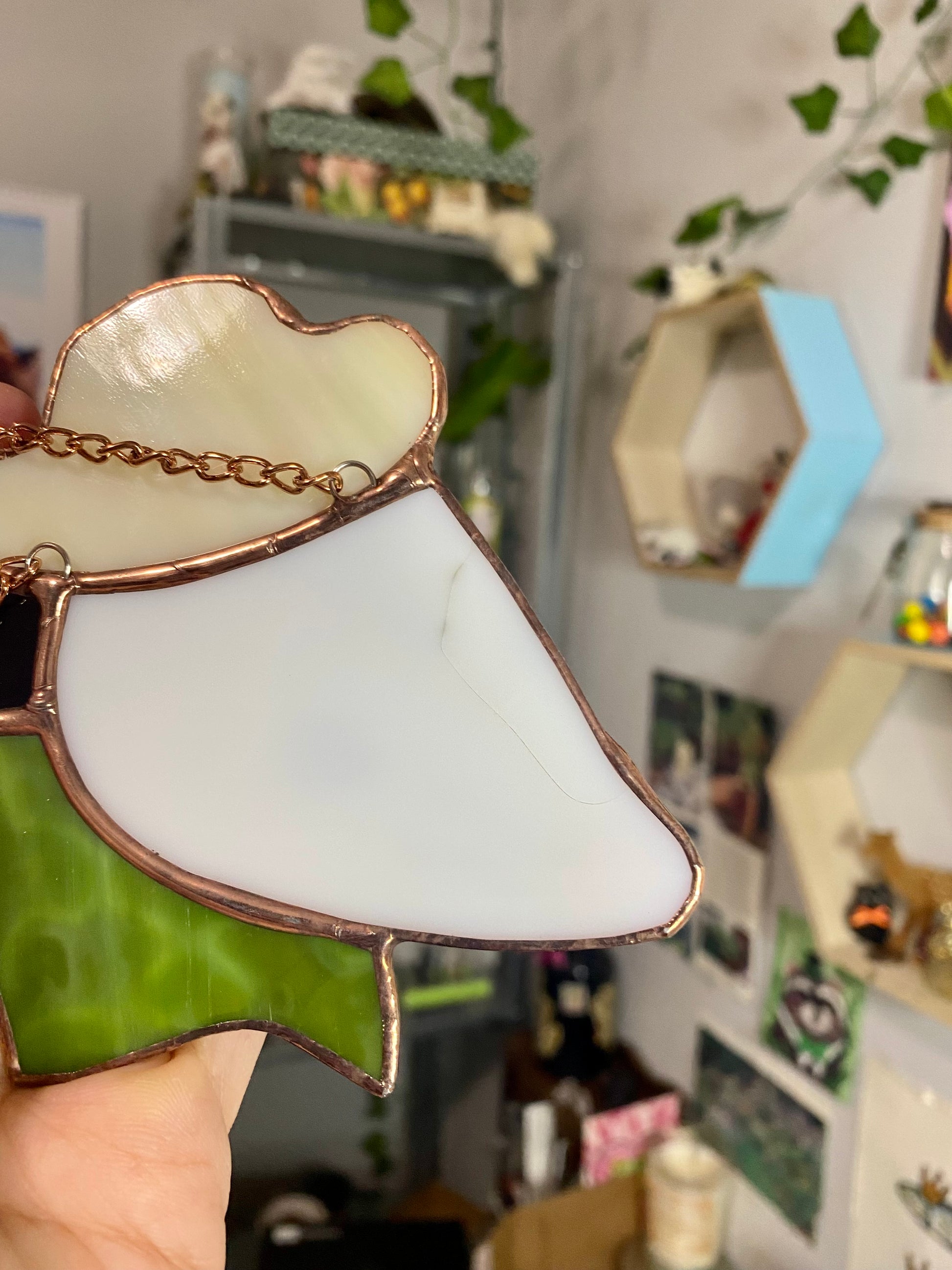 Cracked! Green Mini Cowboy Opossum Stained Glass Ornament