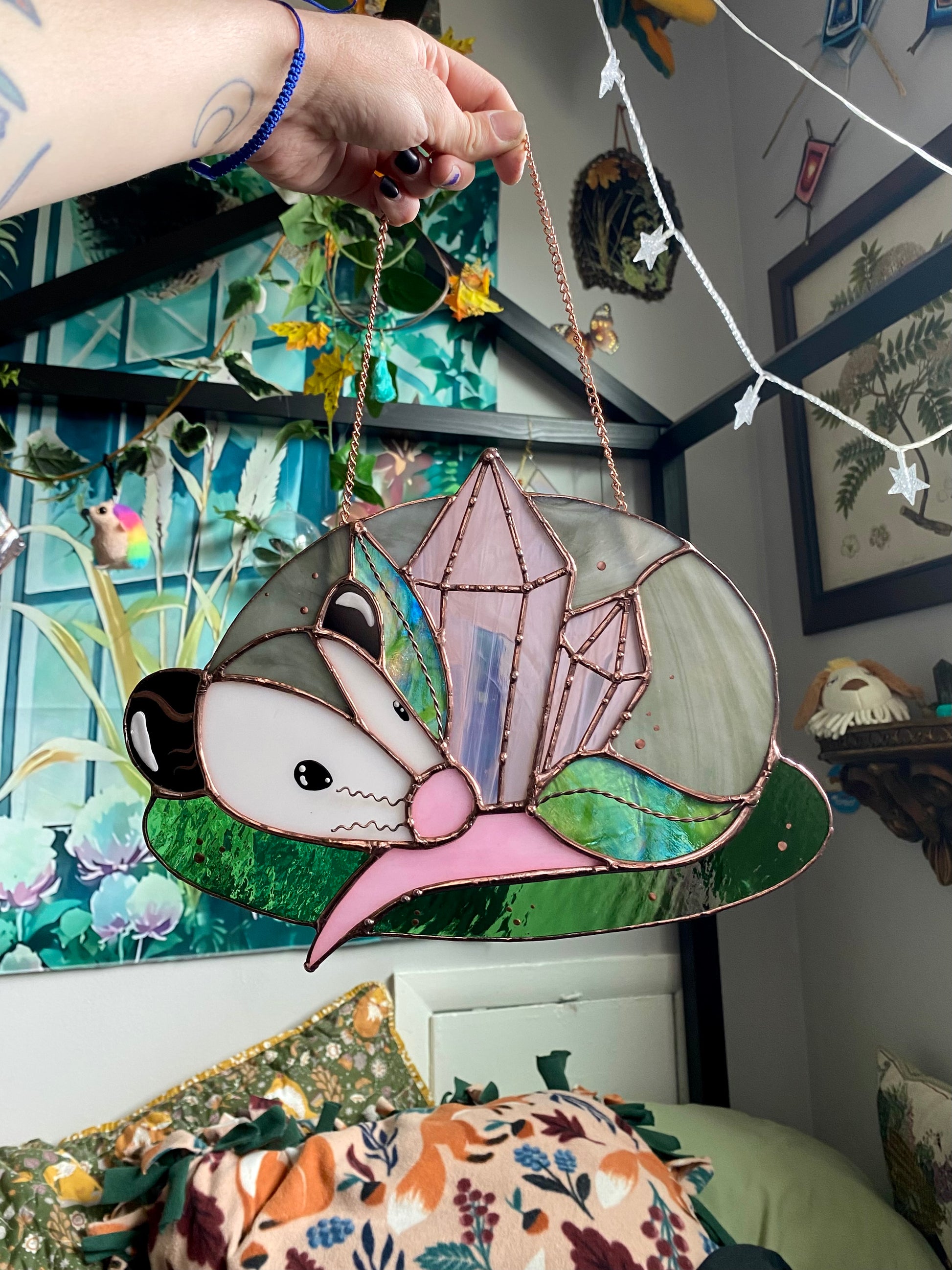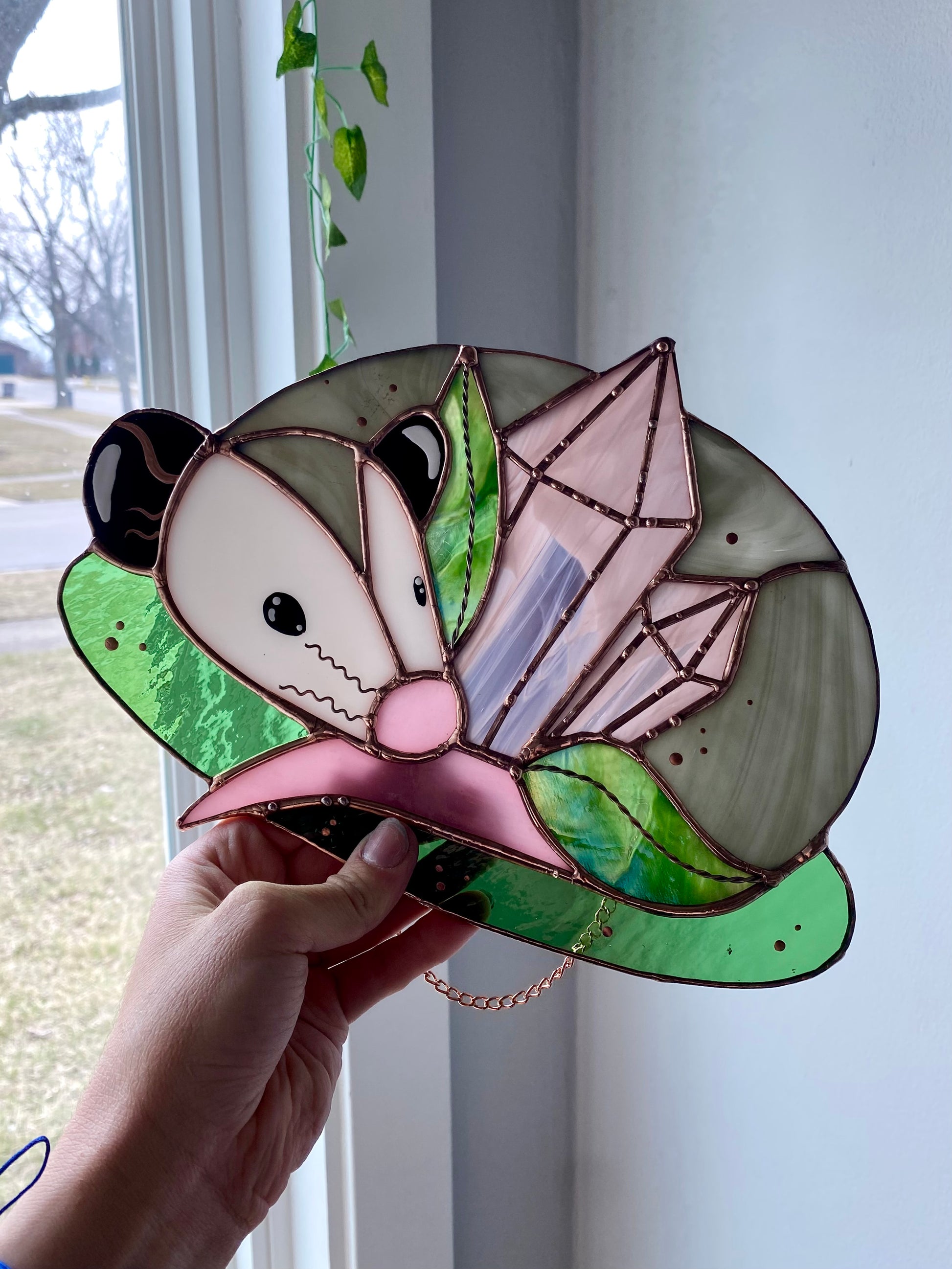 Crystal Guardian Opossum Stained Glass Suncatcher