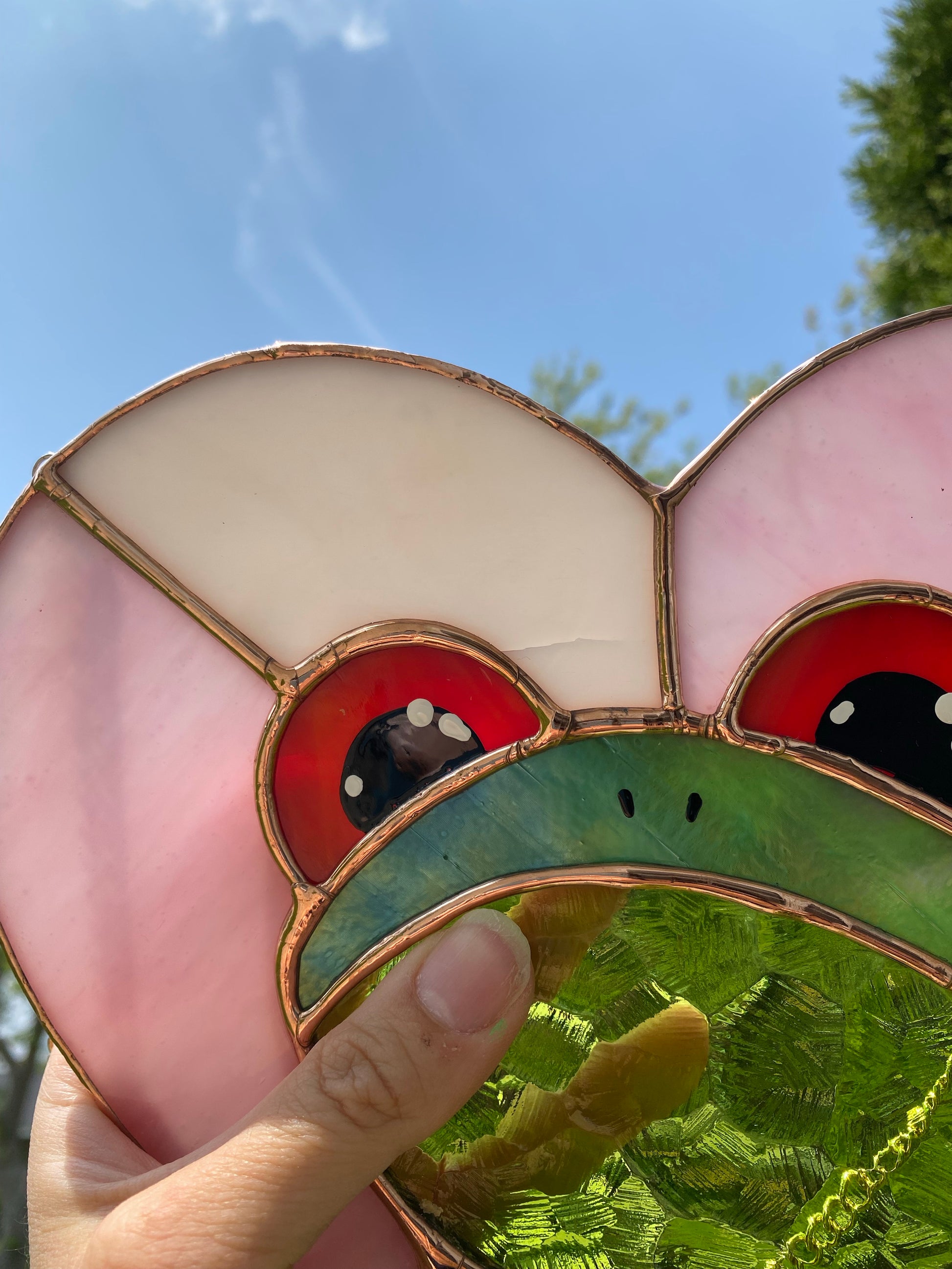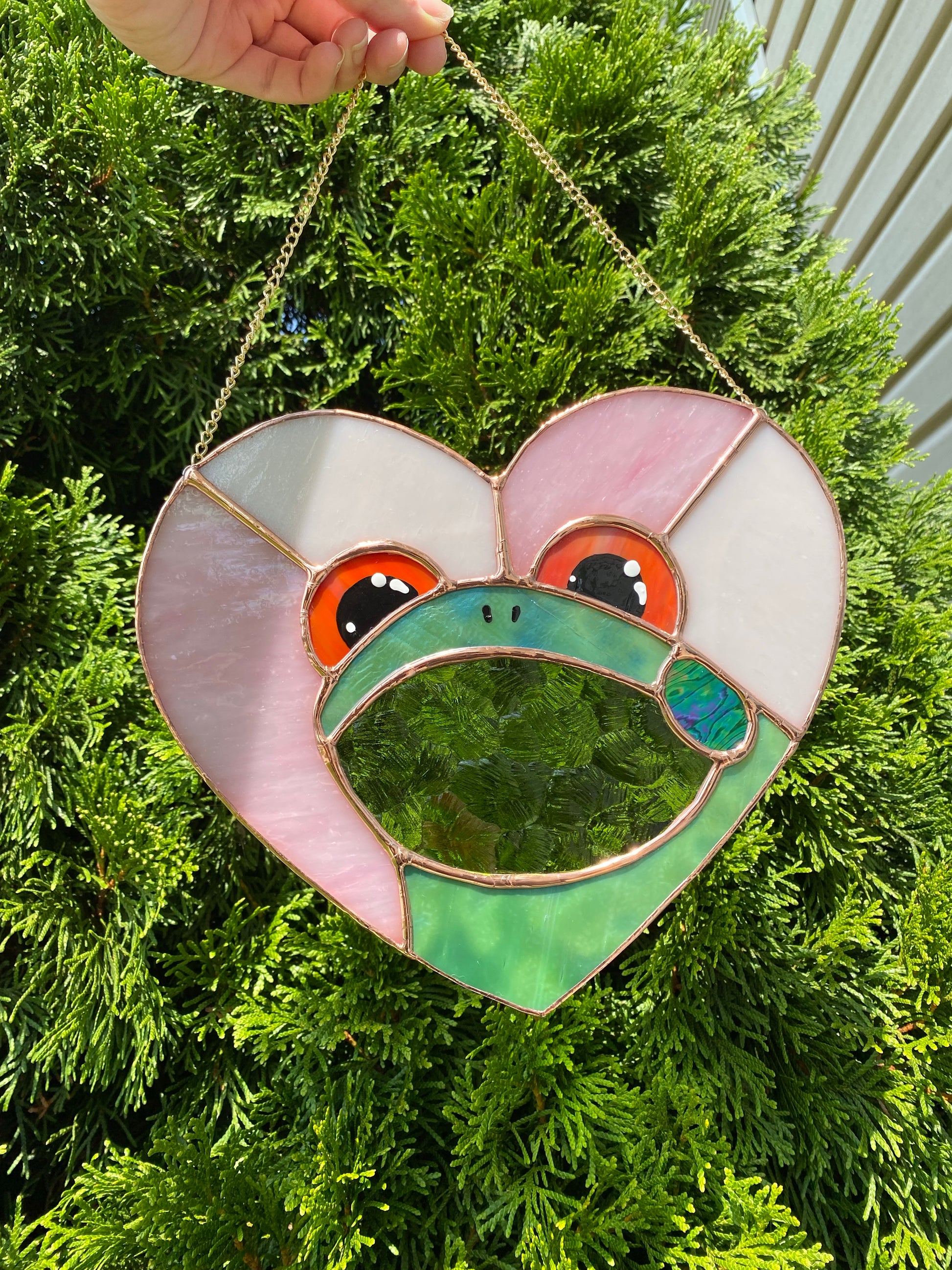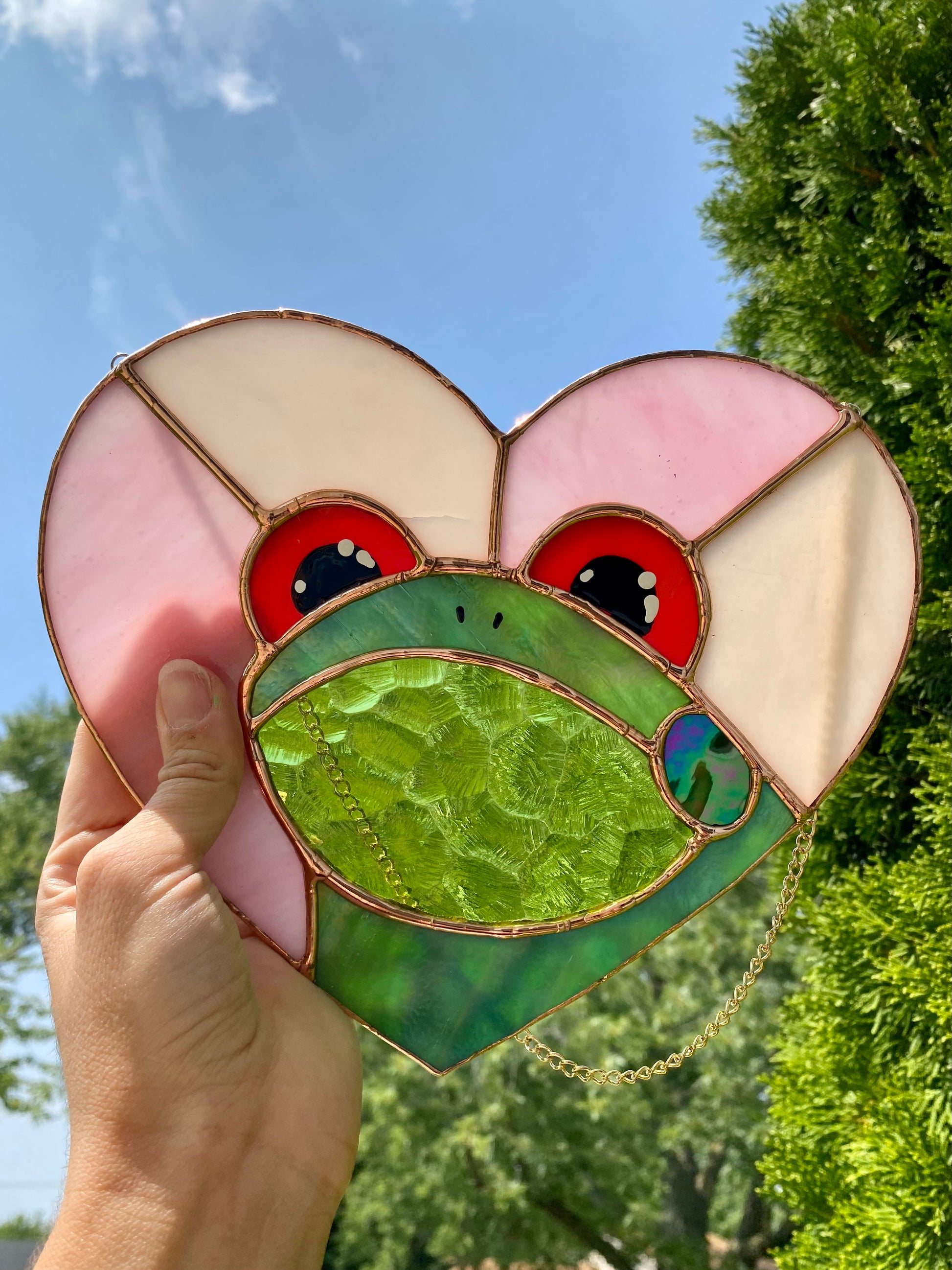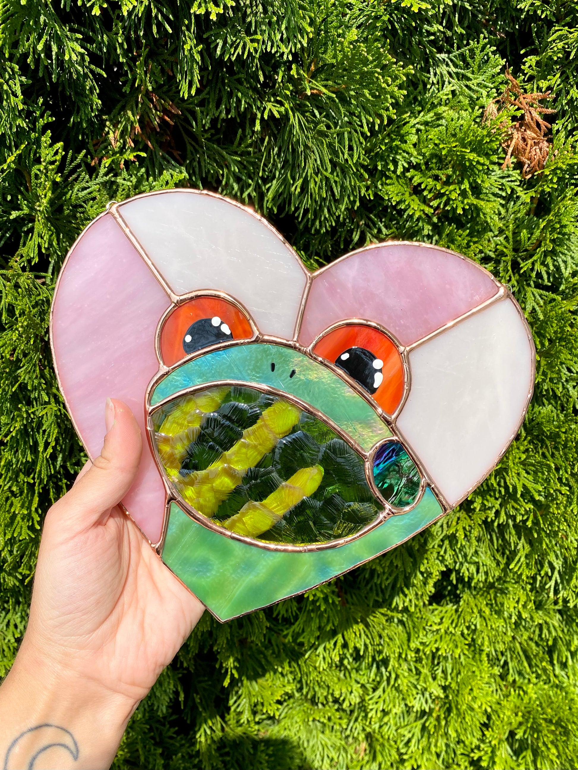 (discounted due to crack) Iridescent Lovely Frog Stained Glass Suncatcher