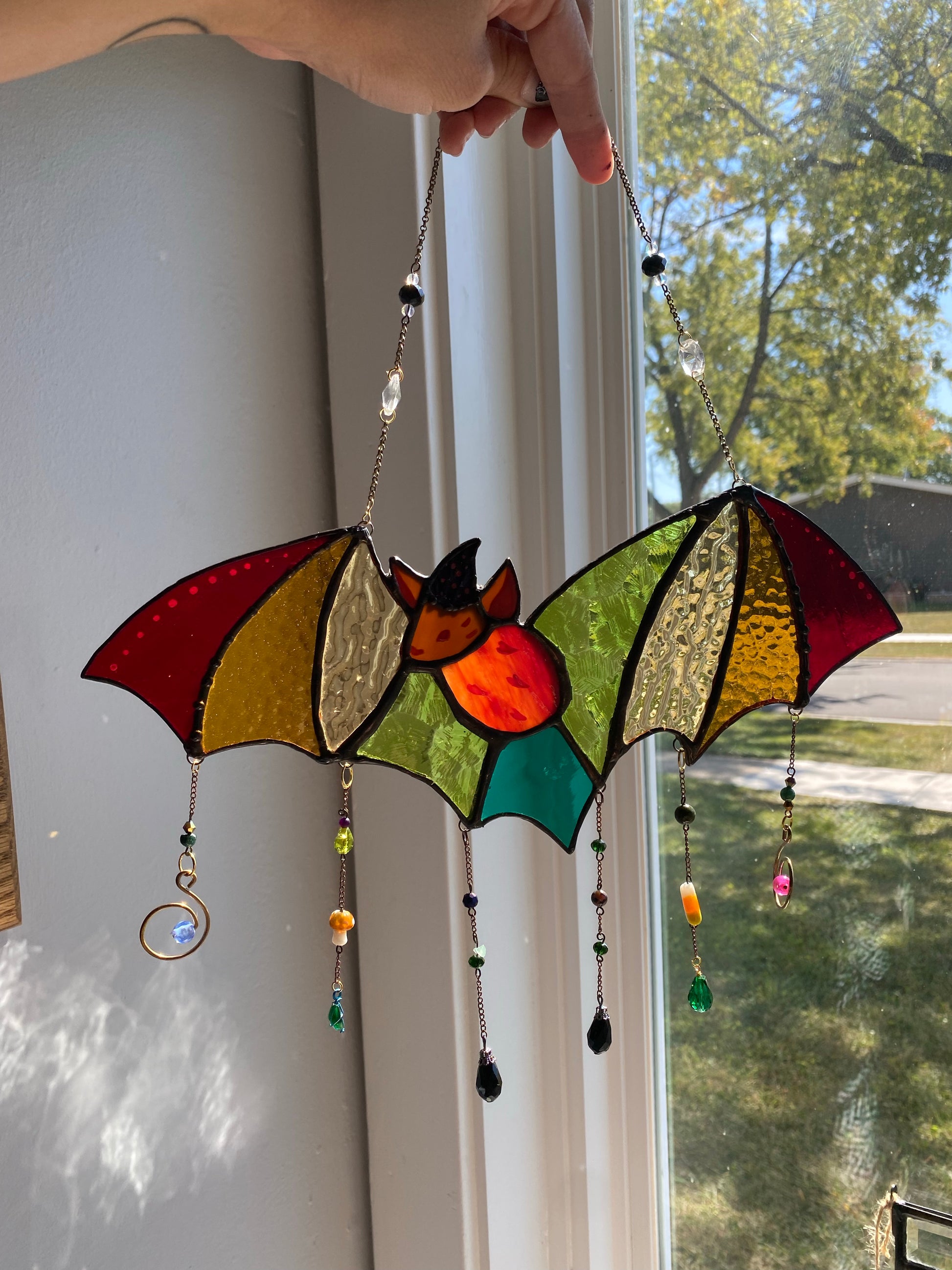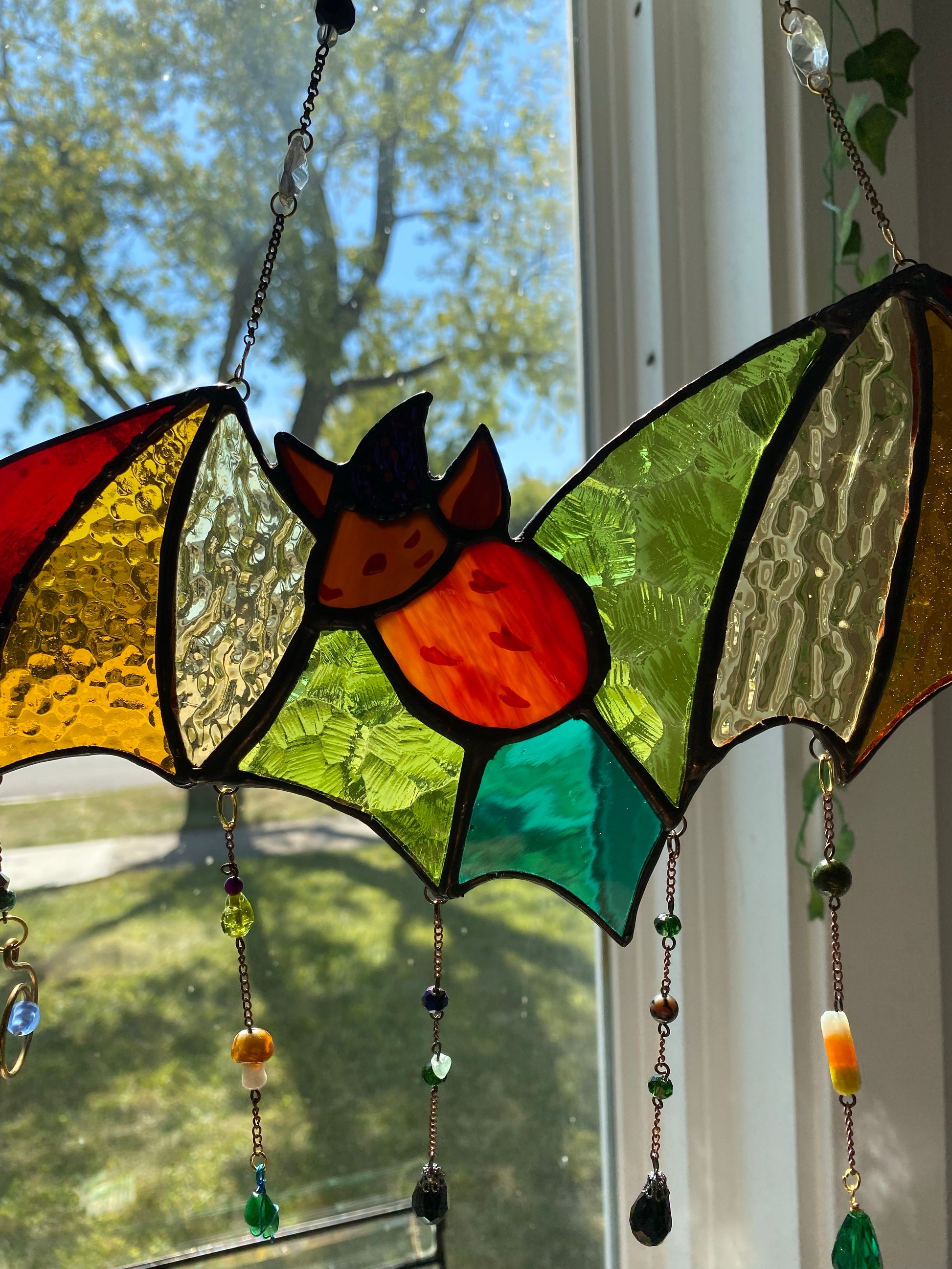 Fall Rainbow Wizard Bat Stained Glass Suncatcher