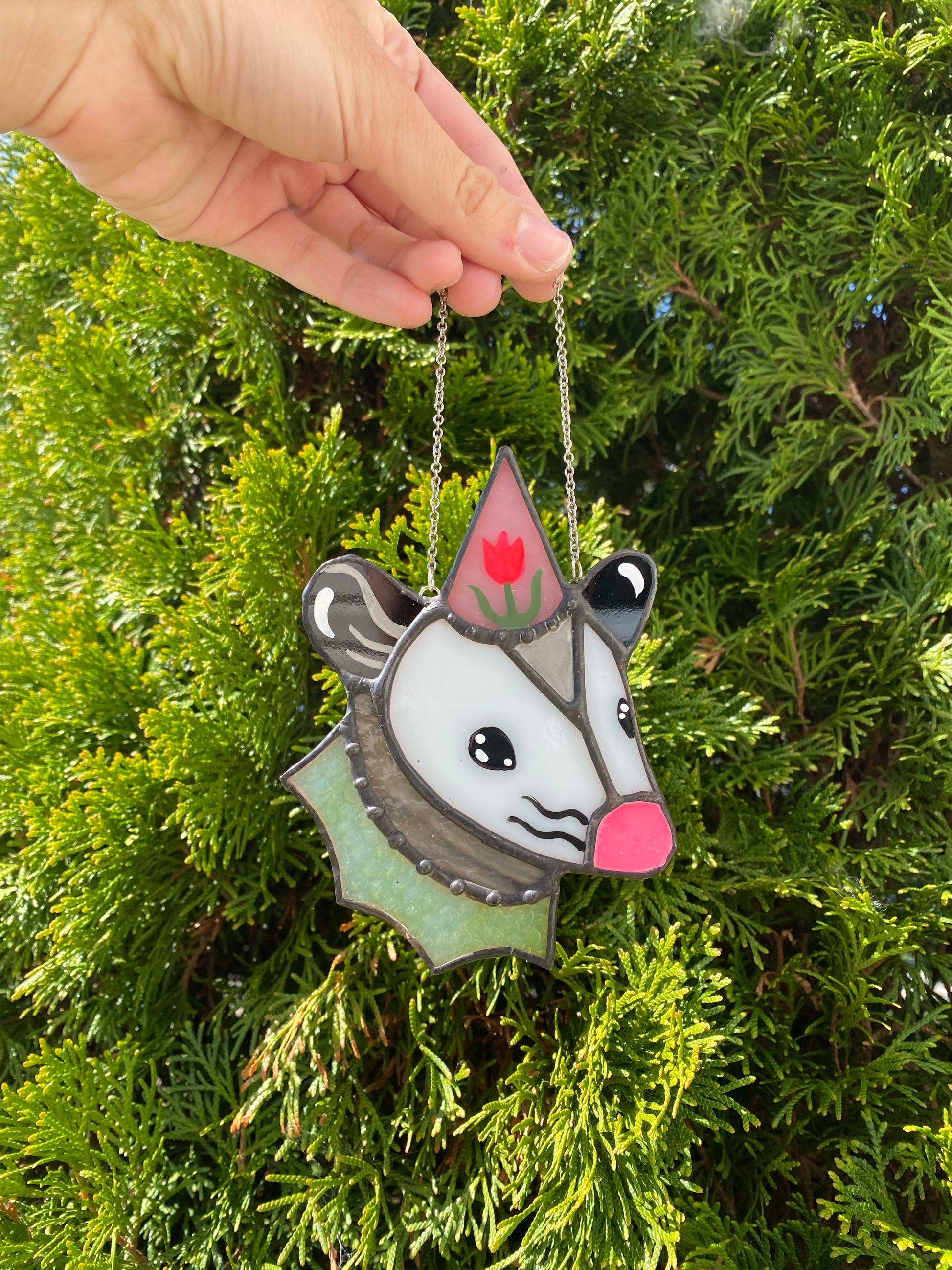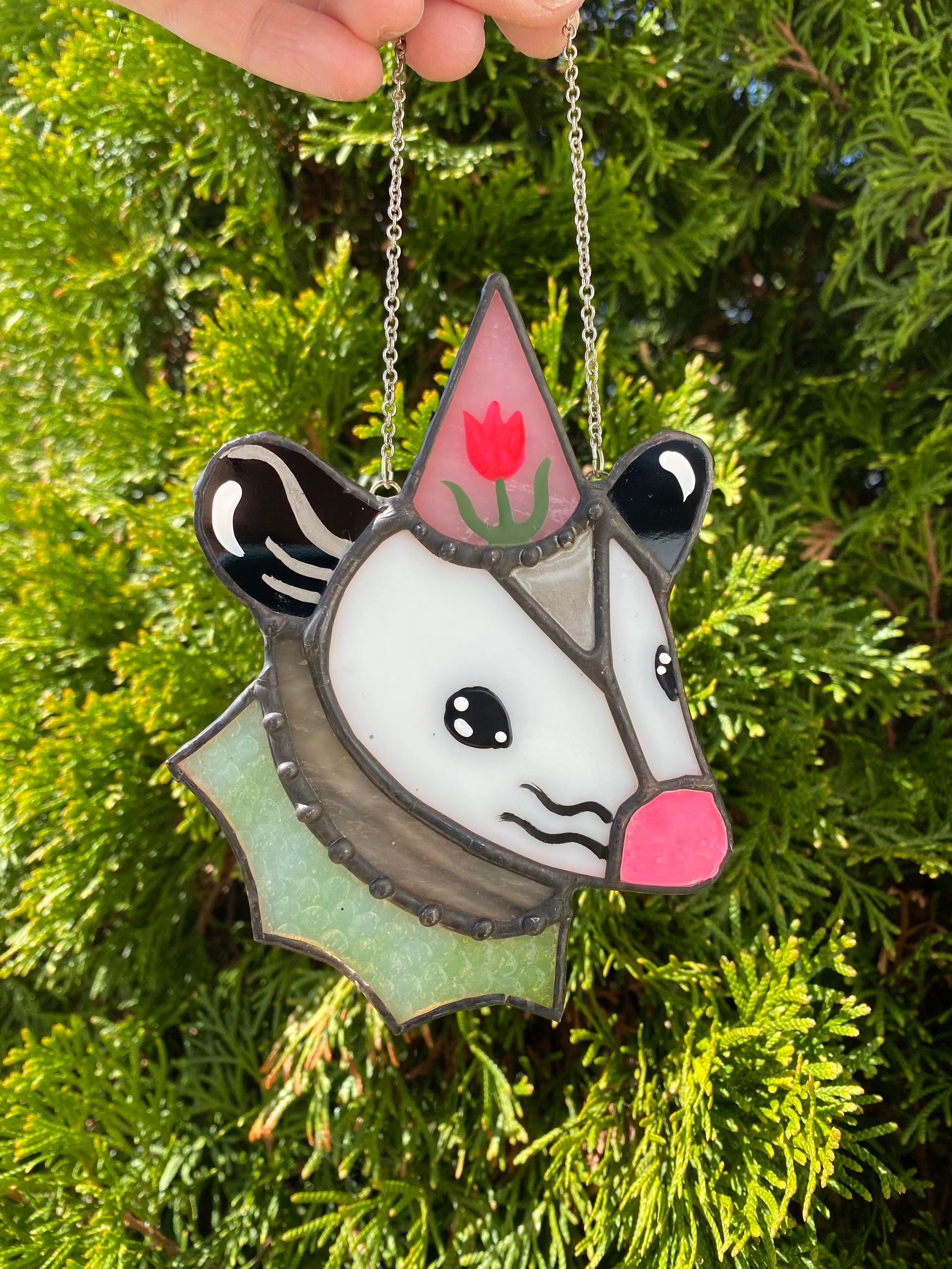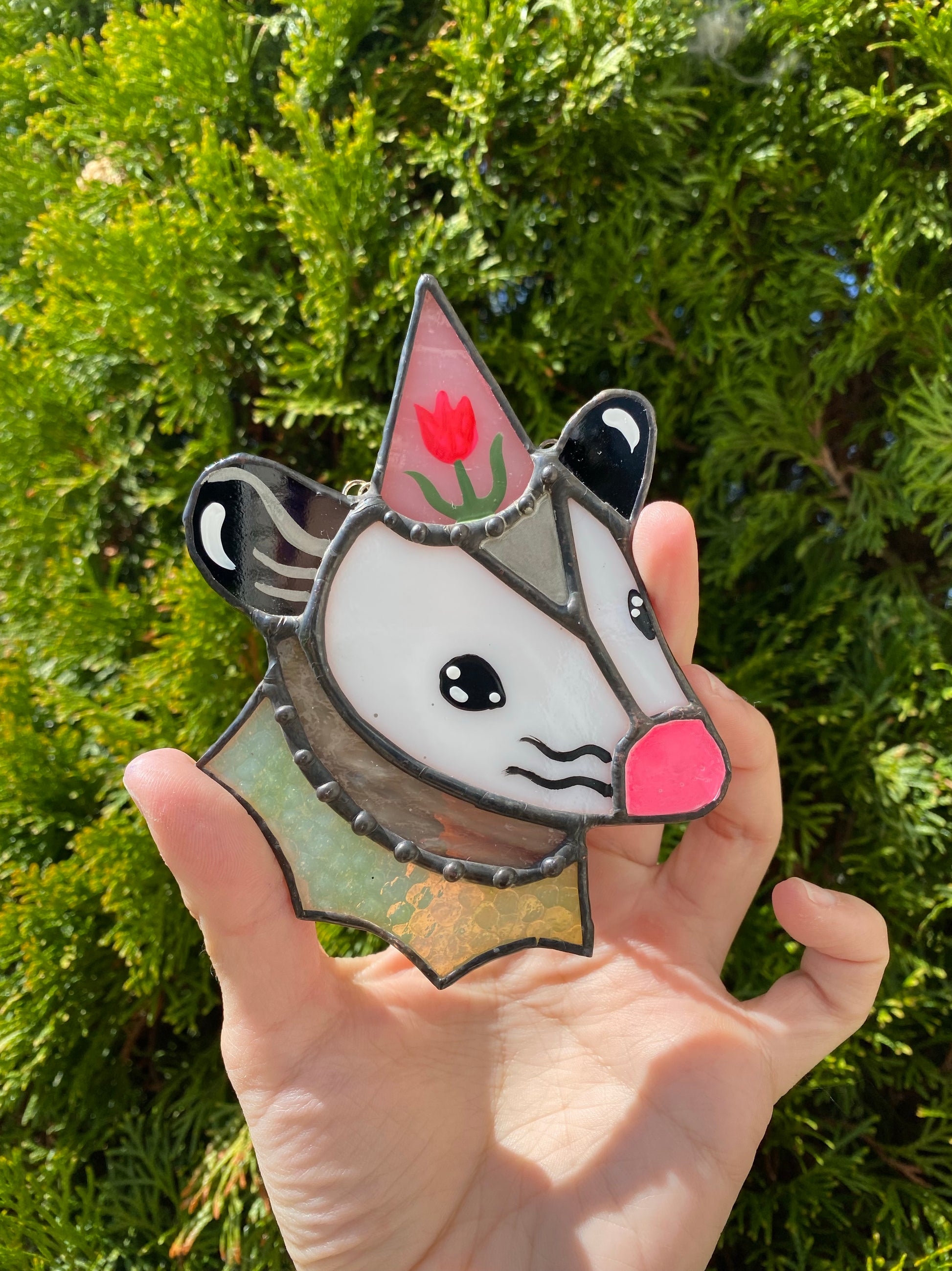 Flower Hat Opossum Mini Stained Glass Ornament