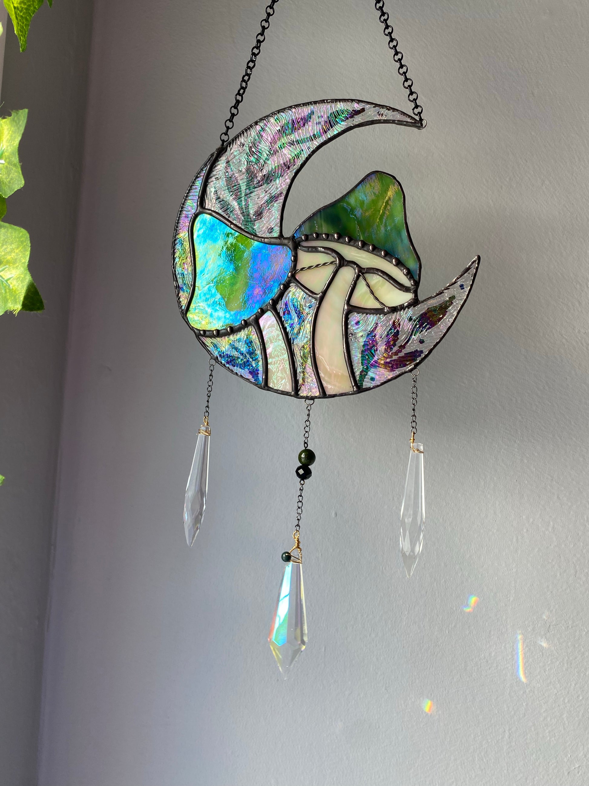 Full Iridescent Green Mushroom Moon Suncatcher