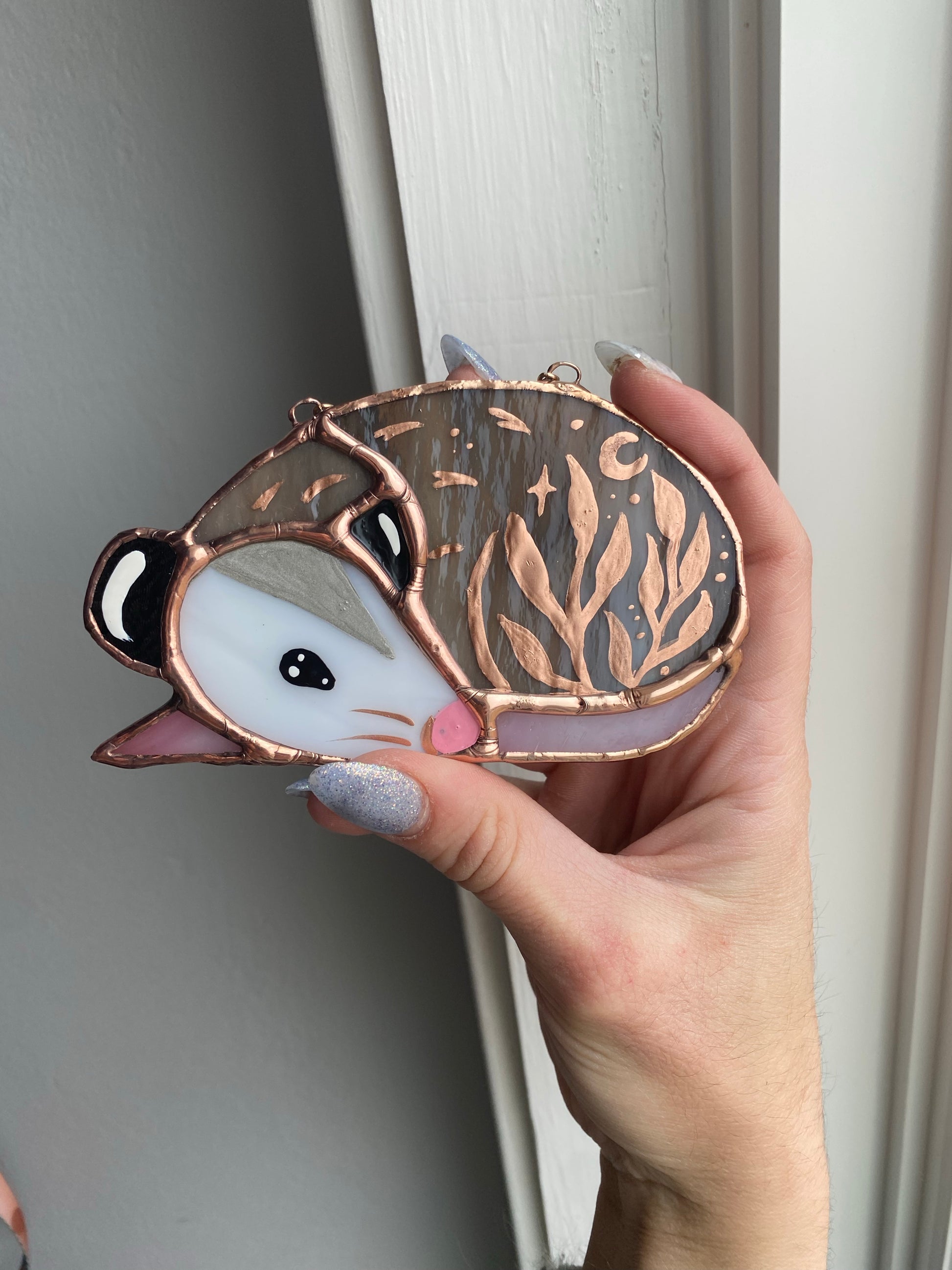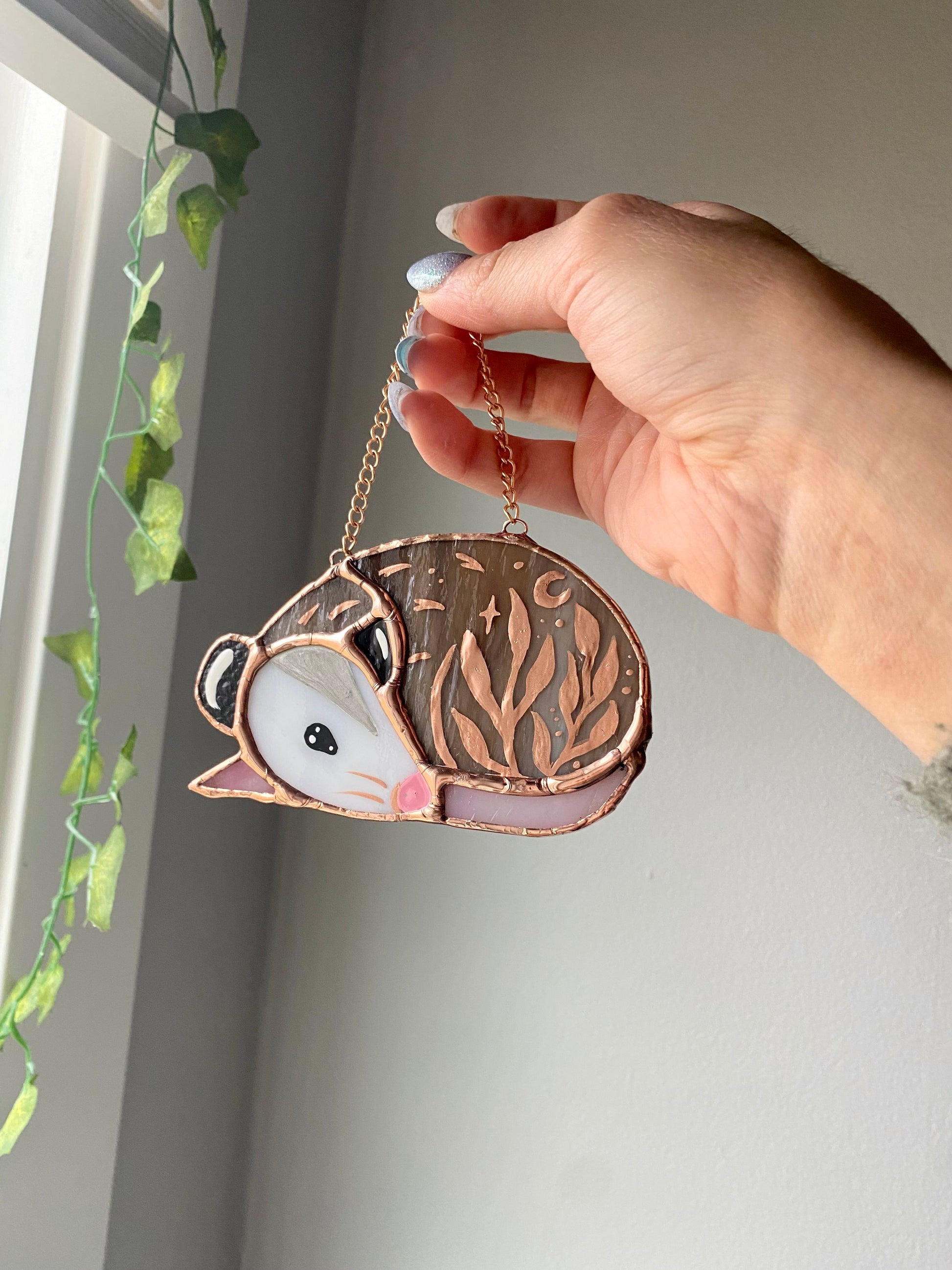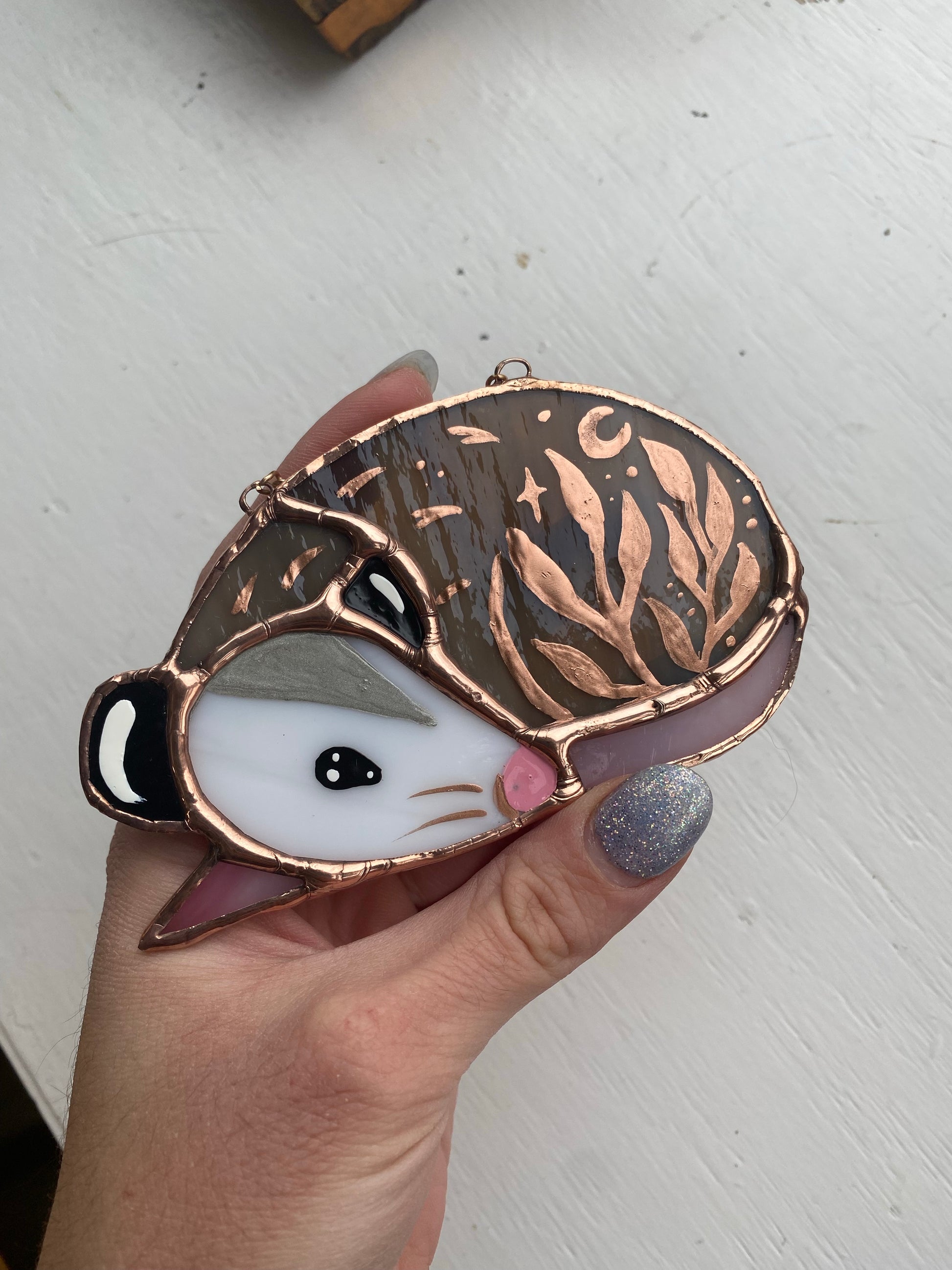 Gold Leaf Opossum Stained Glass Ornament