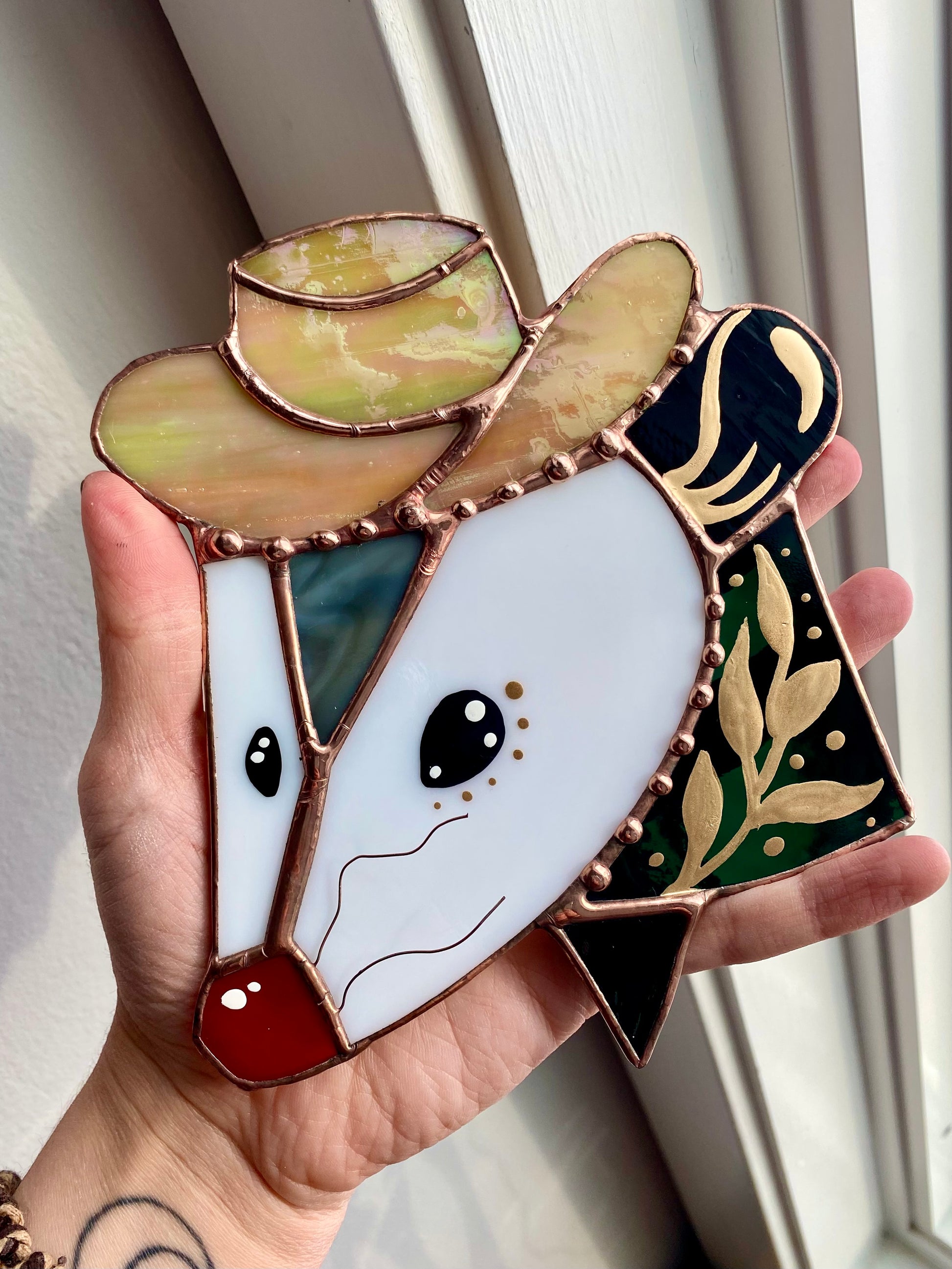 Golden Cowboy Opossum Suncatcher