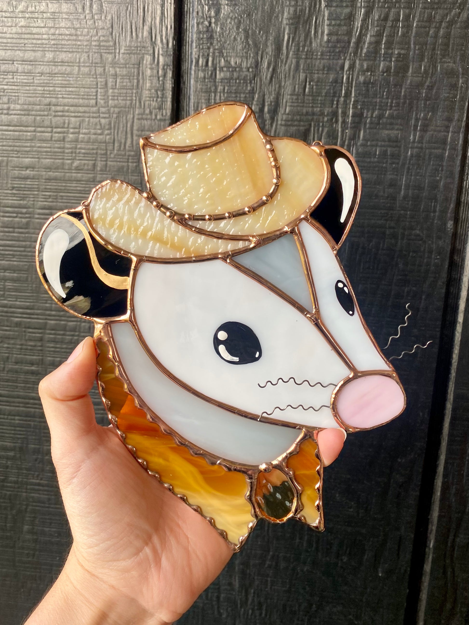 Golden Yellow Cowboy Opossum Stained Glass Suncatcher
