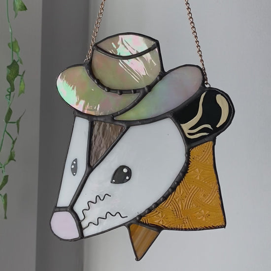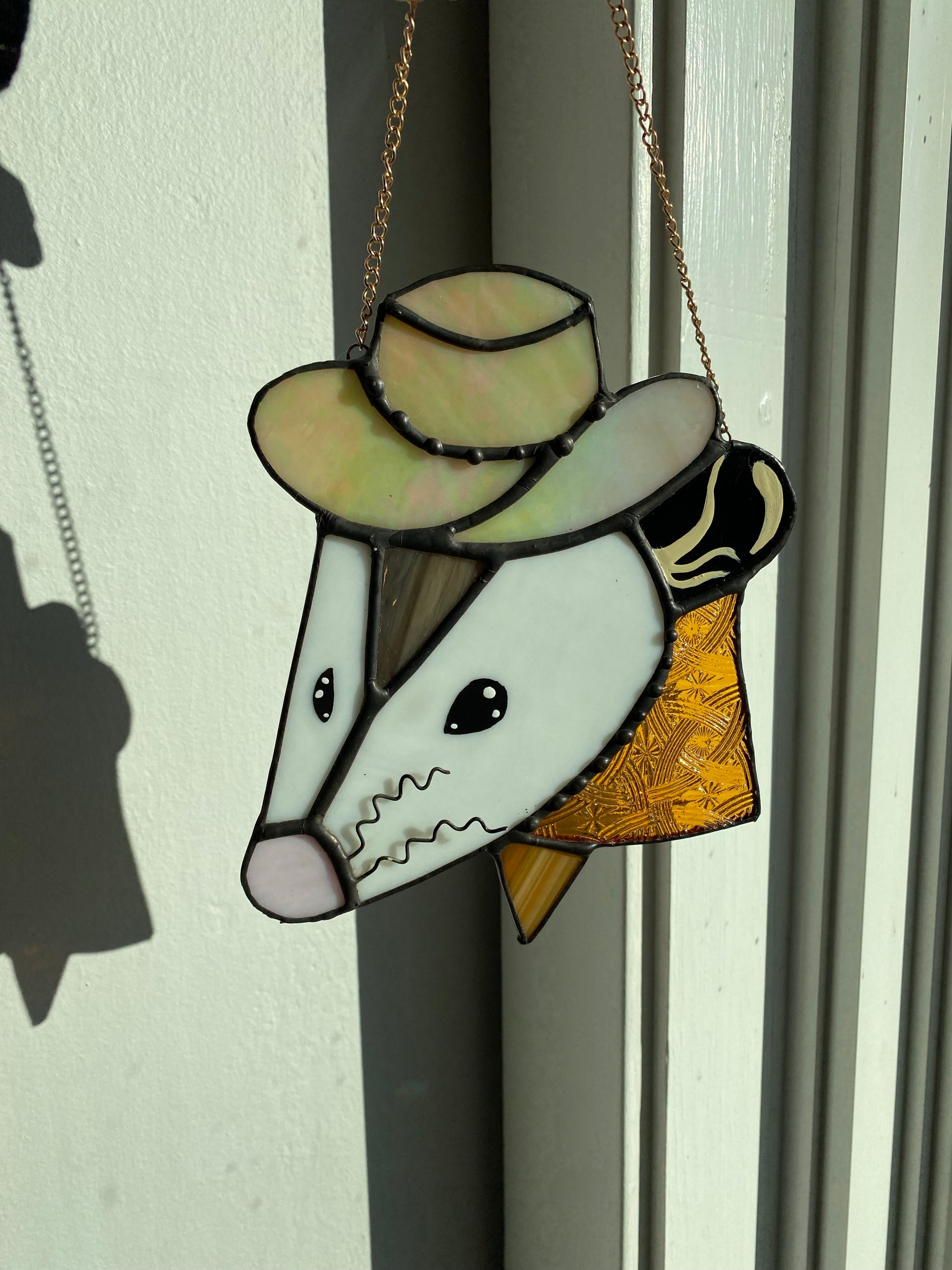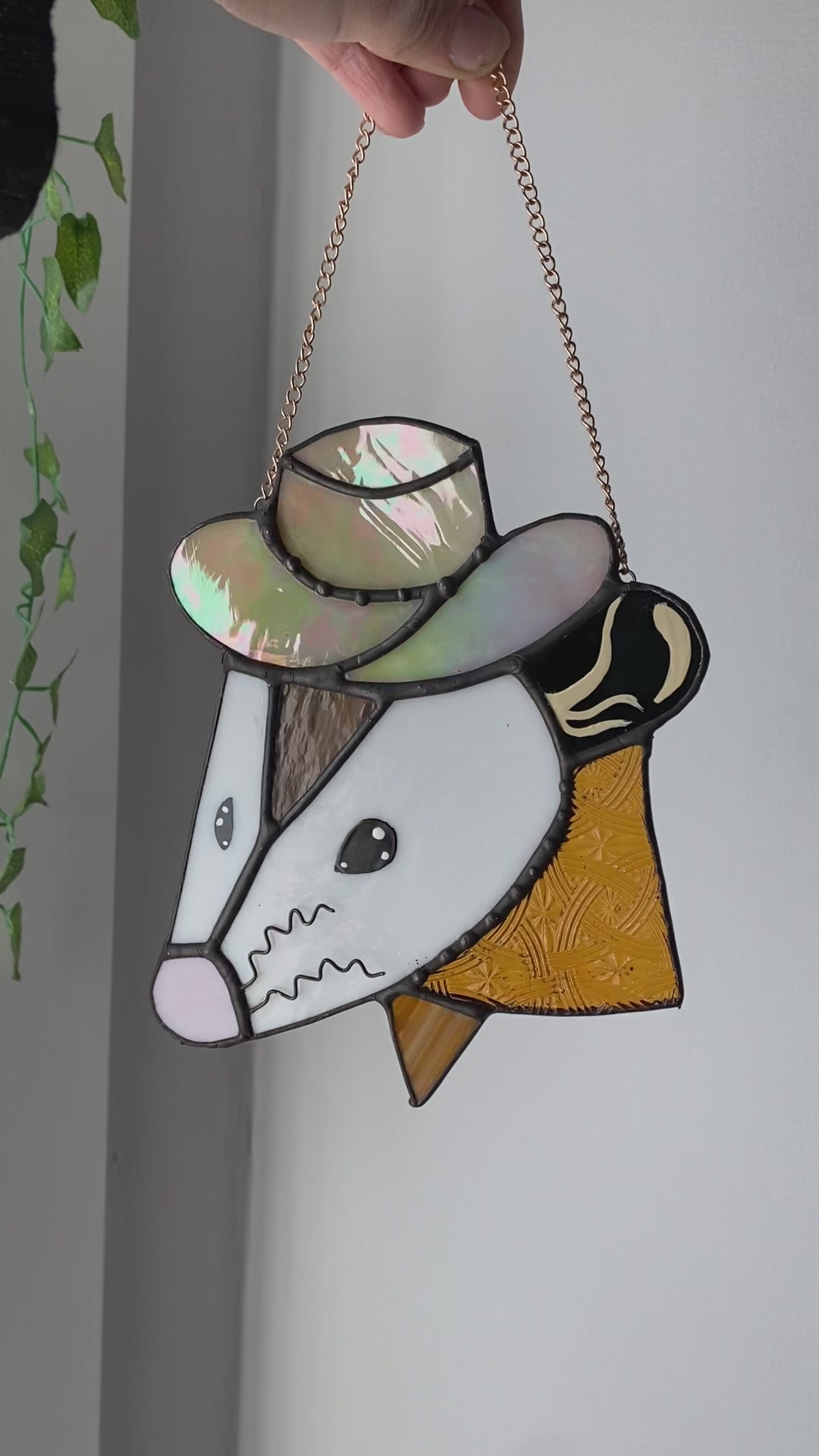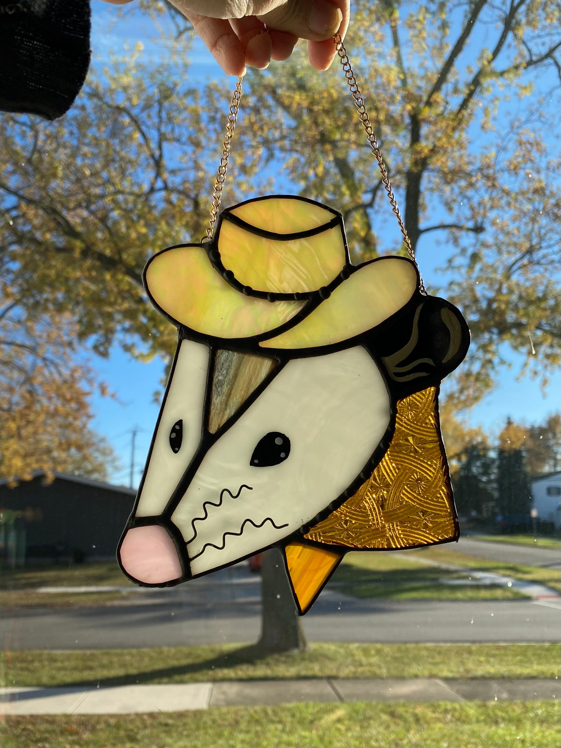 Measures 6.5” tall and 5” wide. Has a gold chain to hang him up wherever you please!