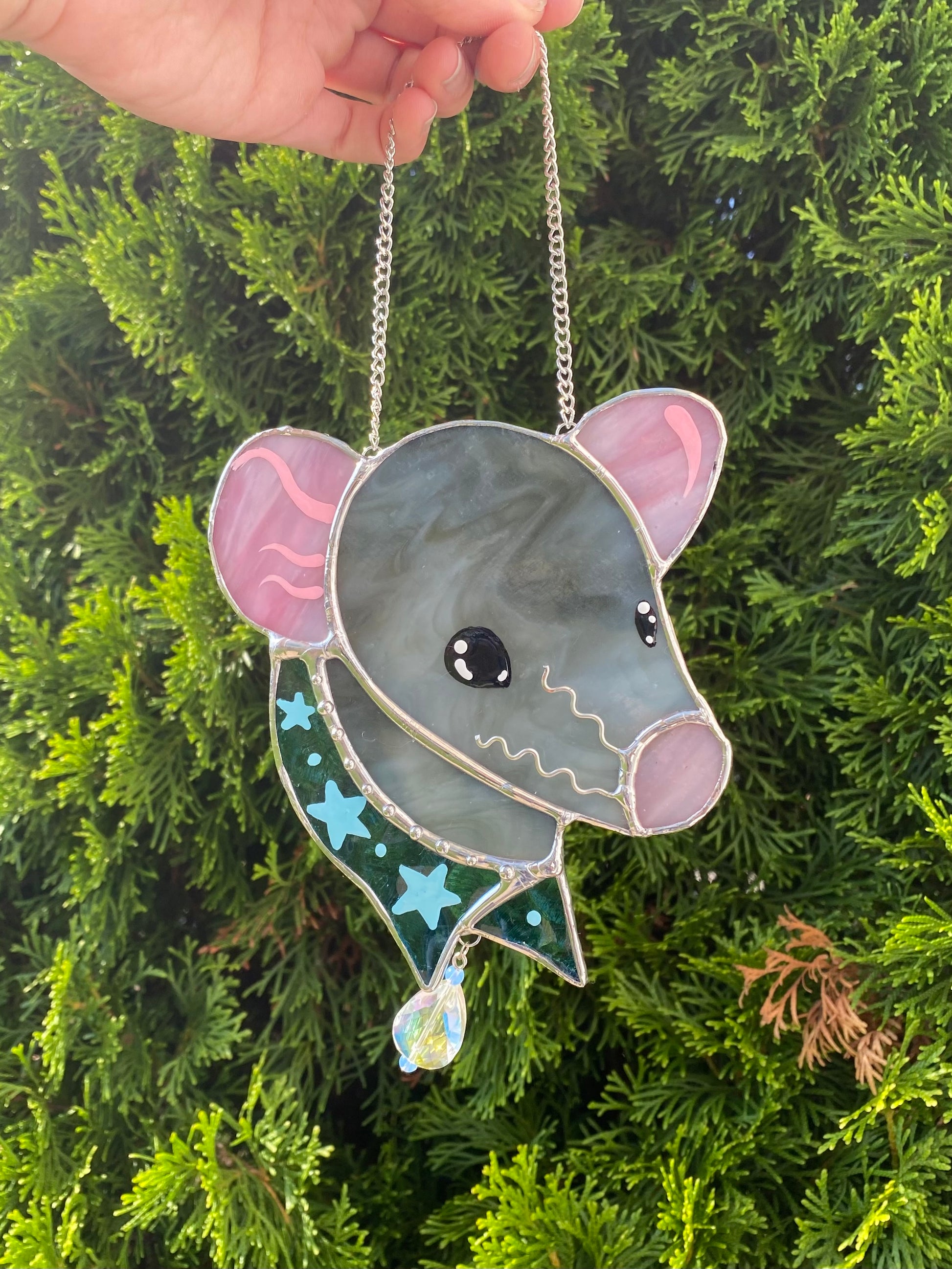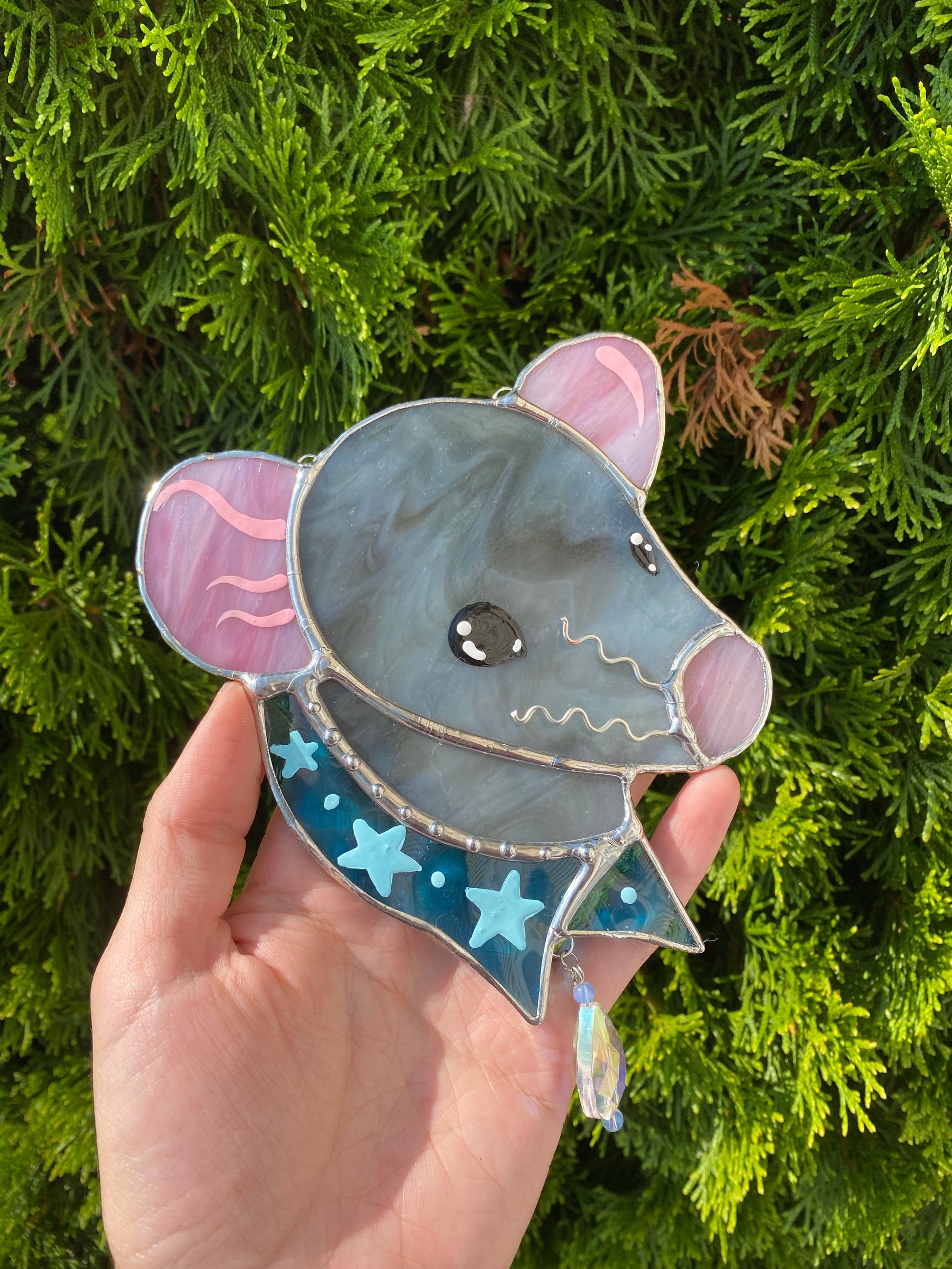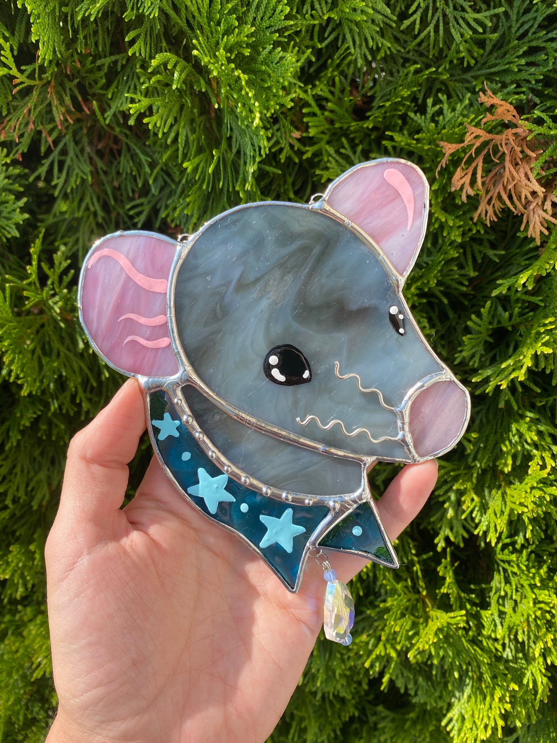 Gray Bandana Rat Stained Glass Suncatcher