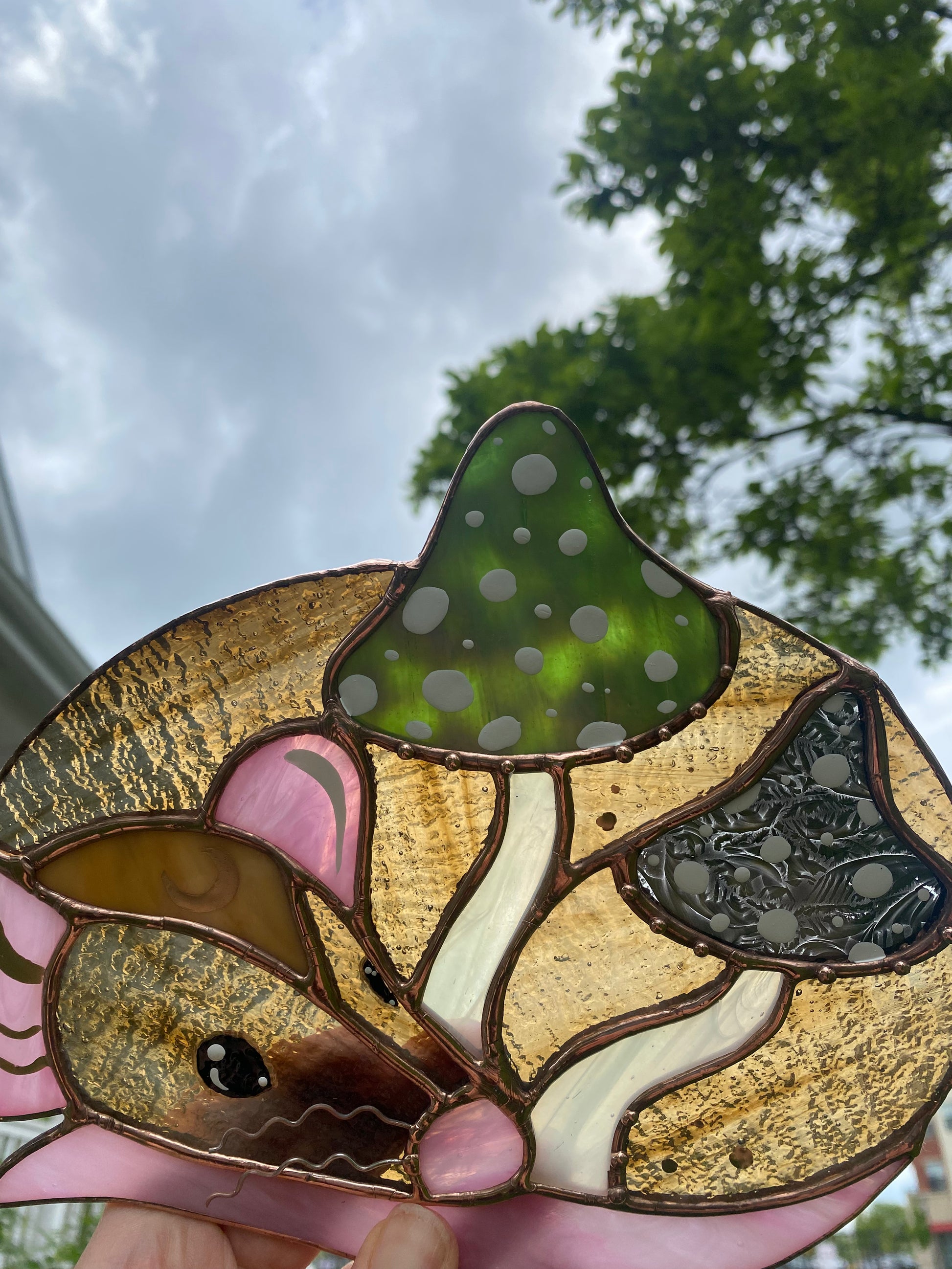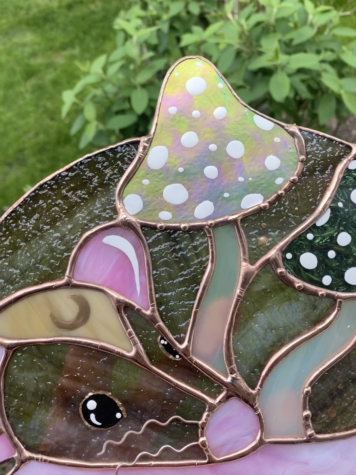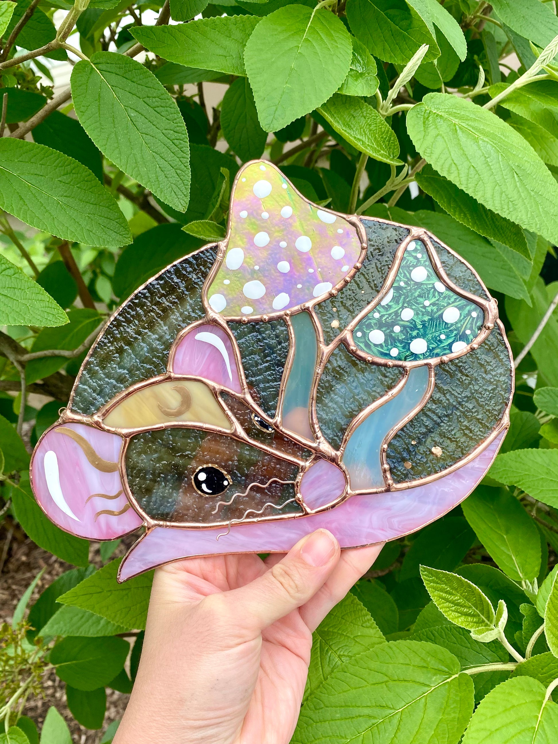 Green Forest Mushroom Rat Stained Glass Suncatcher