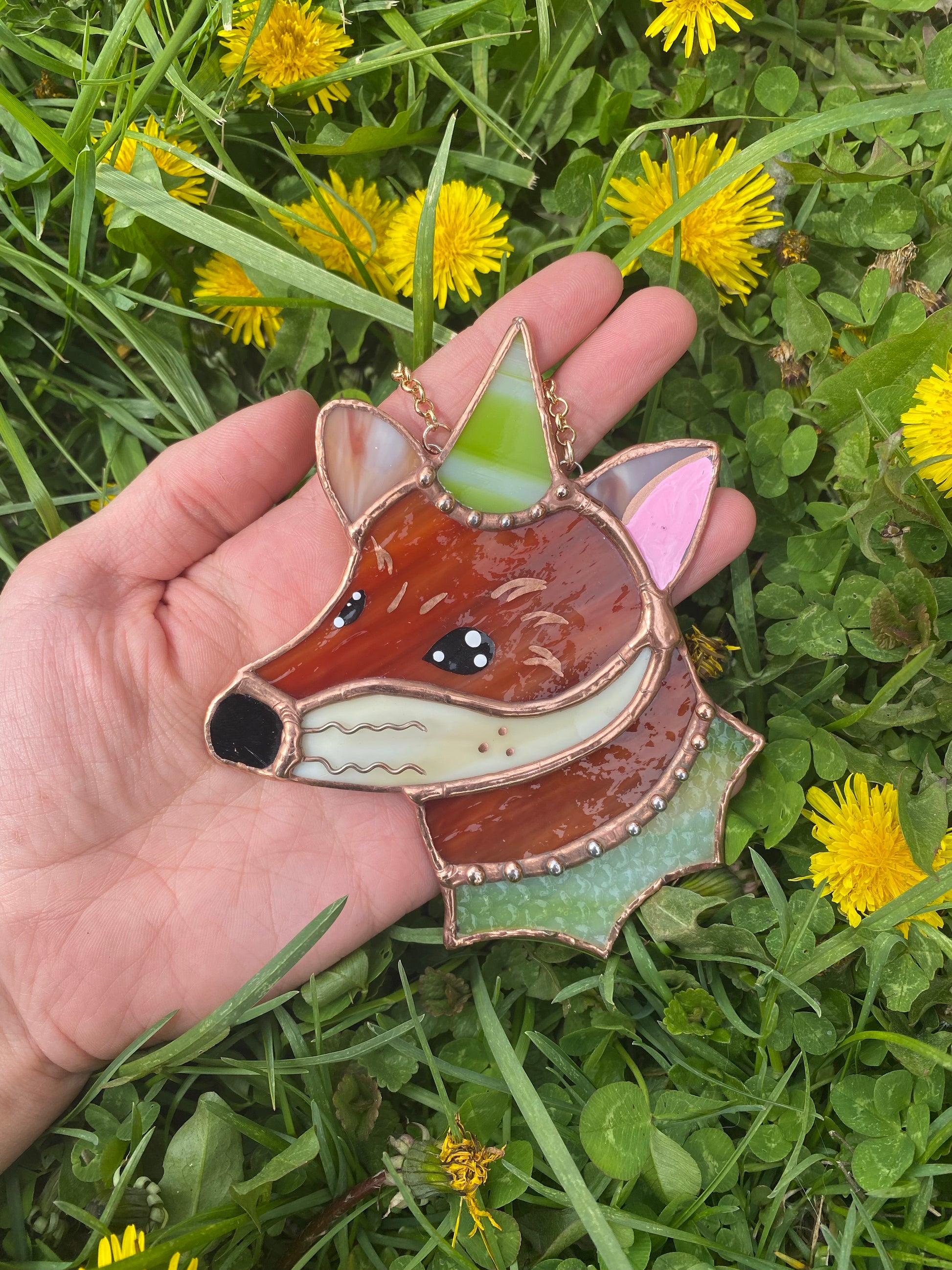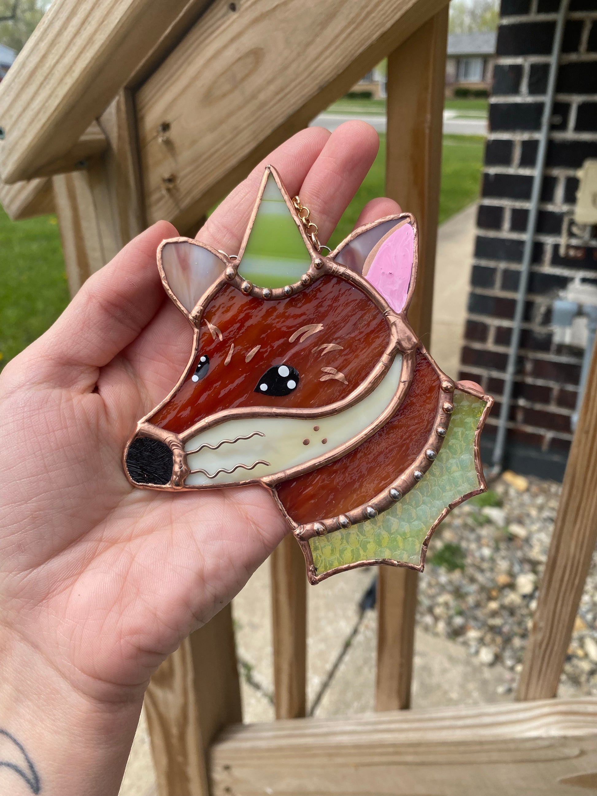 Green Stripes Mini Wizard Fox Stained Glass Suncatcher