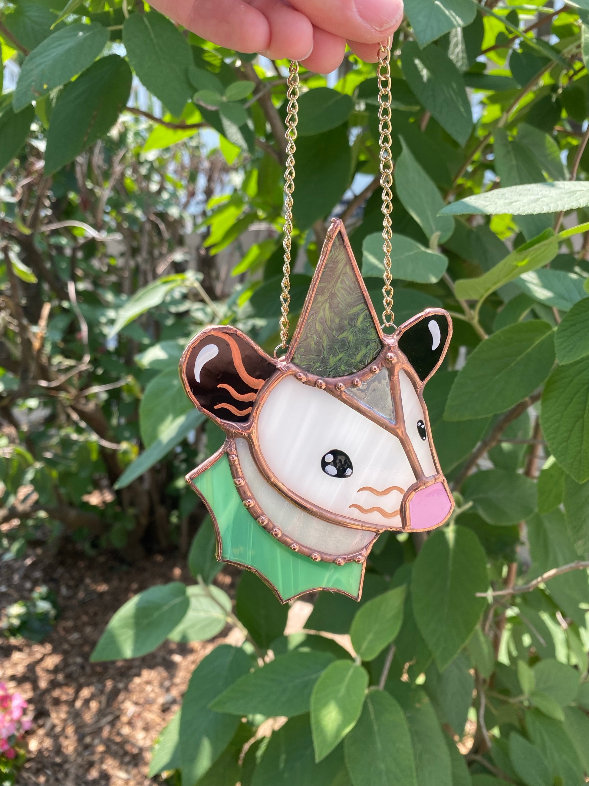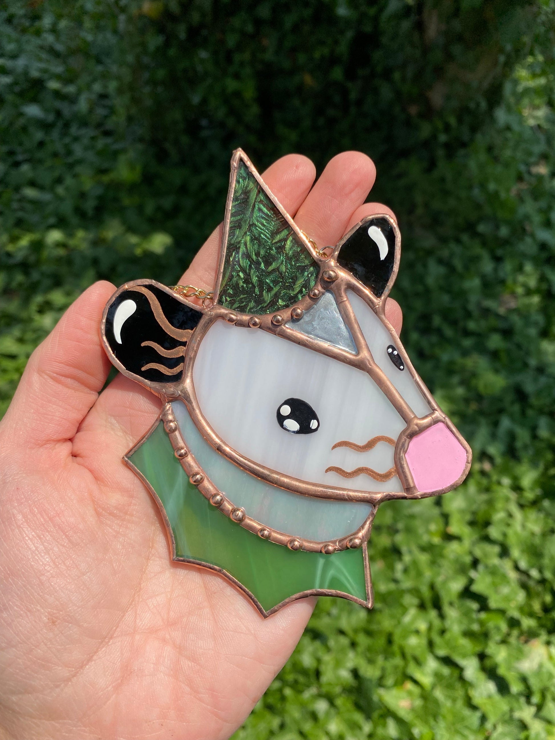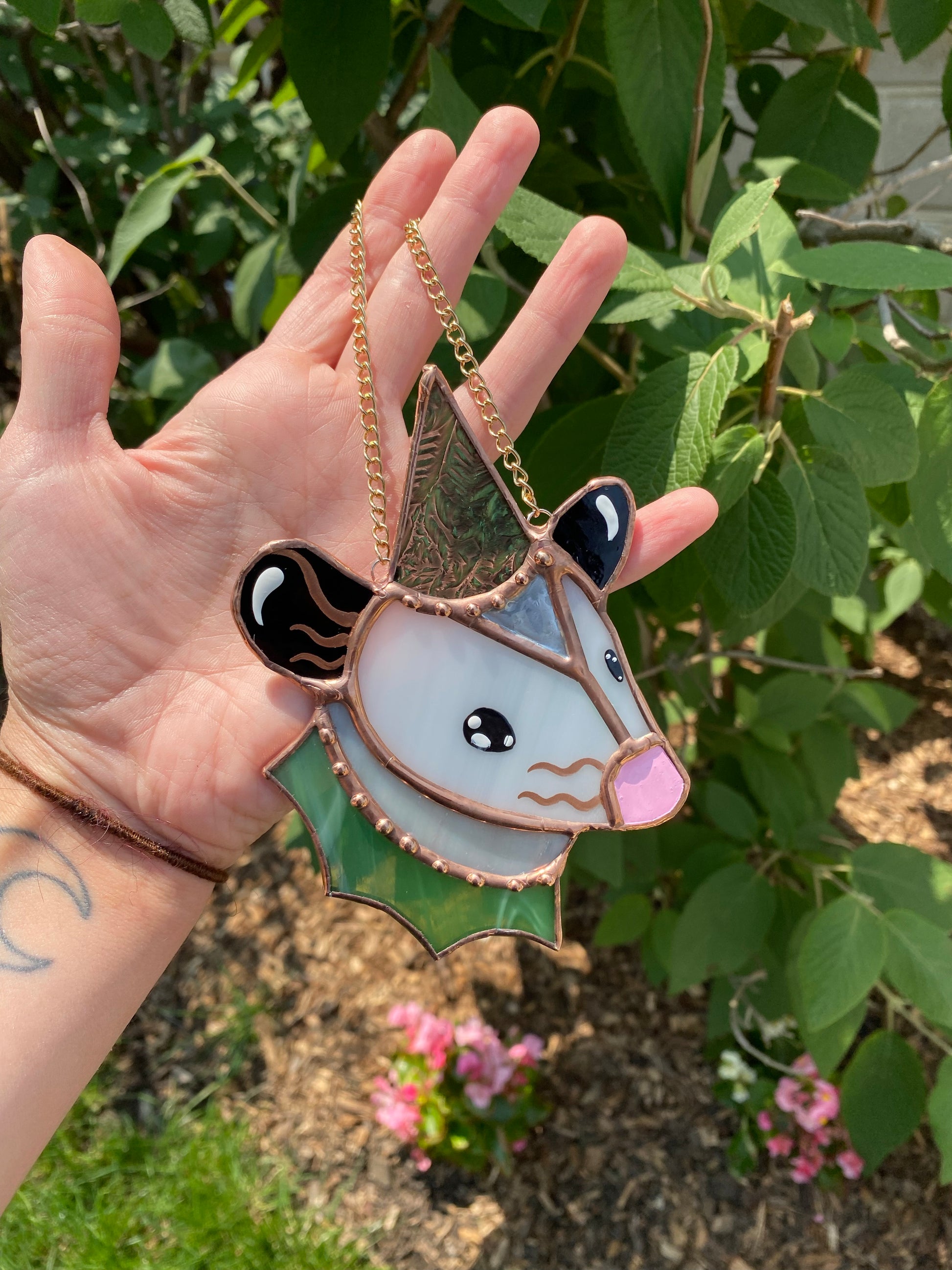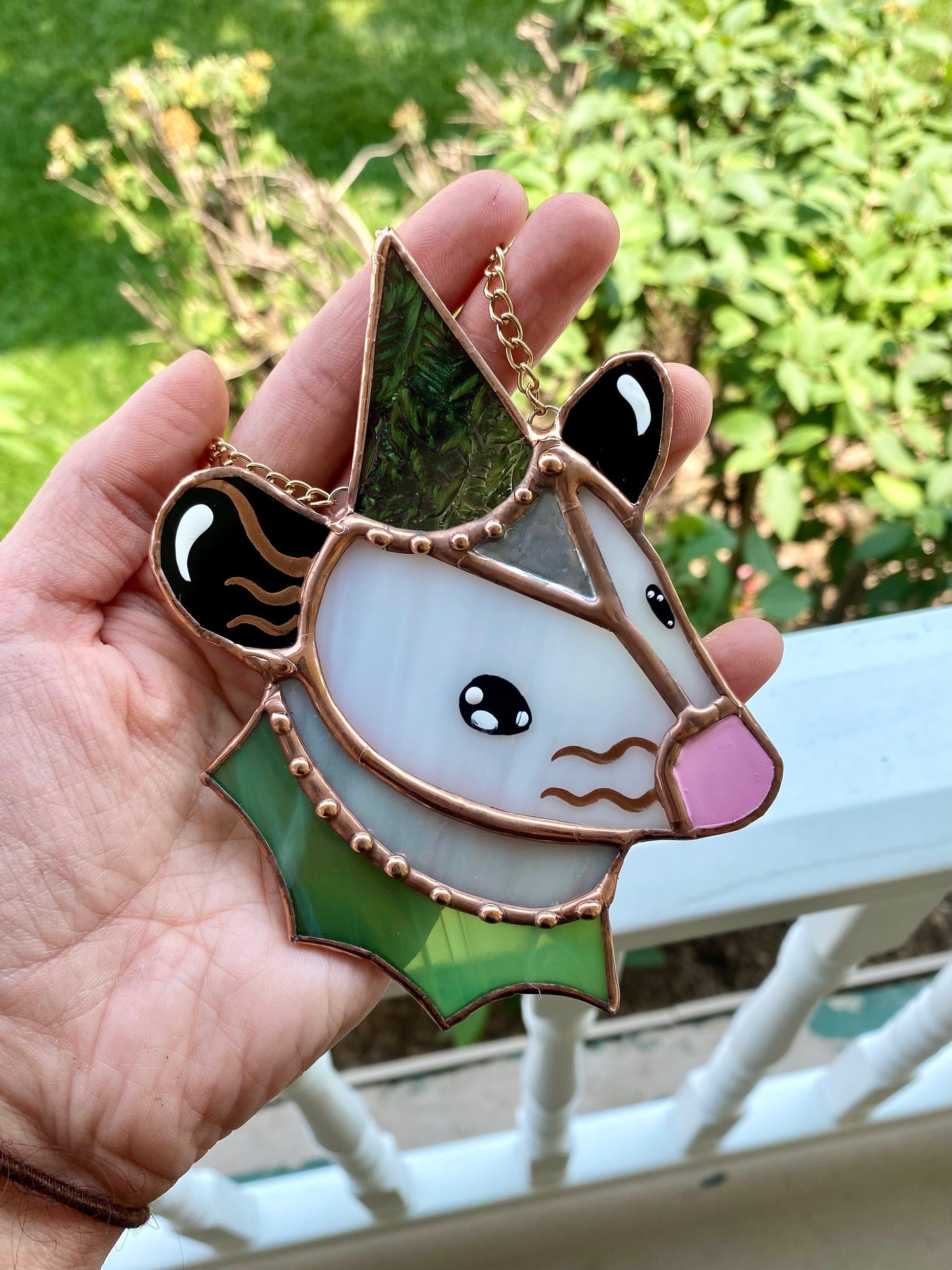 Green Van Gogh Wizard Opossum Stained Glass Suncatcher