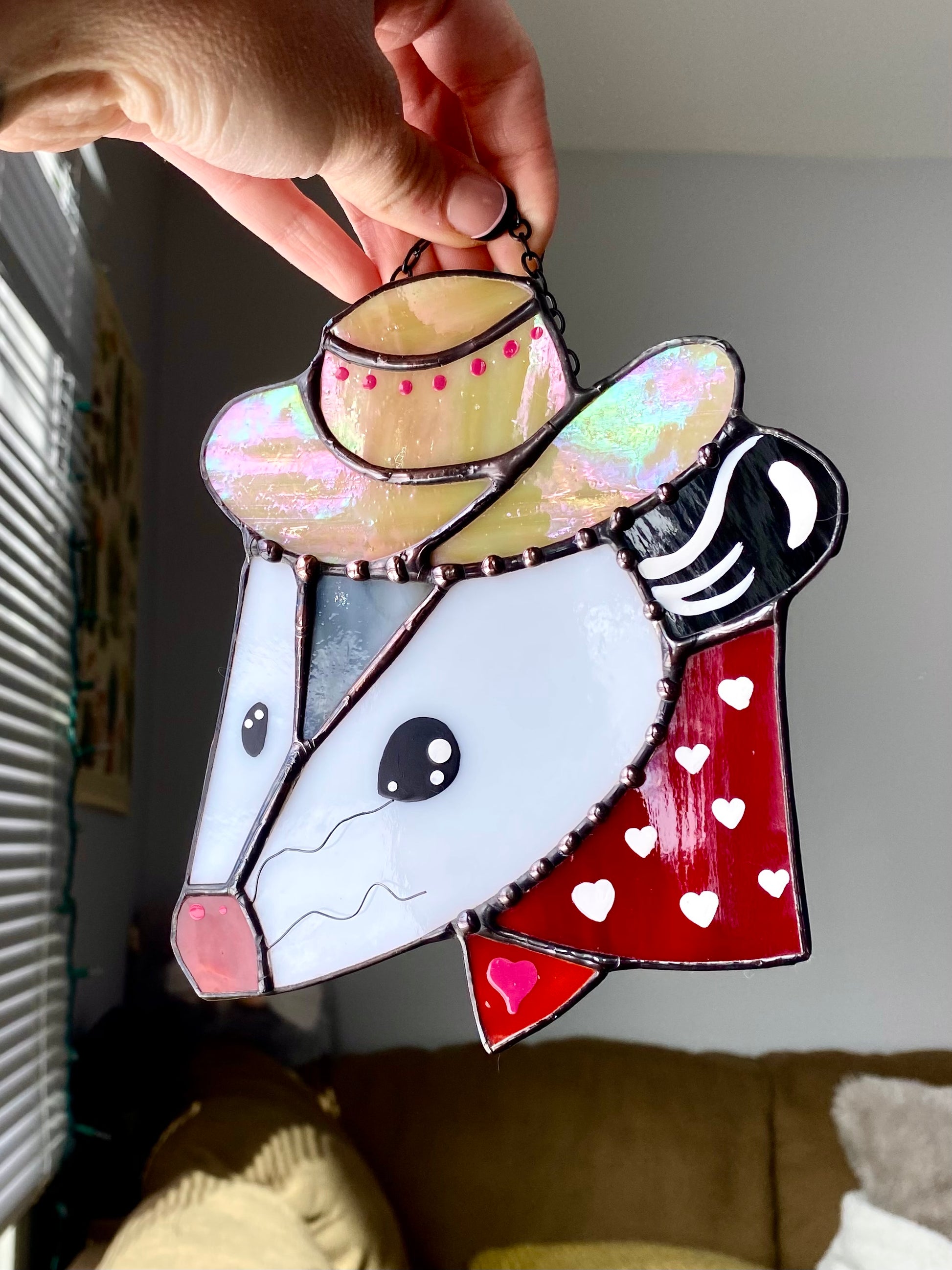 Colors may vary slightly due to monitor differences. Glass naturally has bubbles, color variations, as well as small crevasses, so each piece will be unique. Each opossum is polished and waxed to ensure it will shine and last a lifetime.