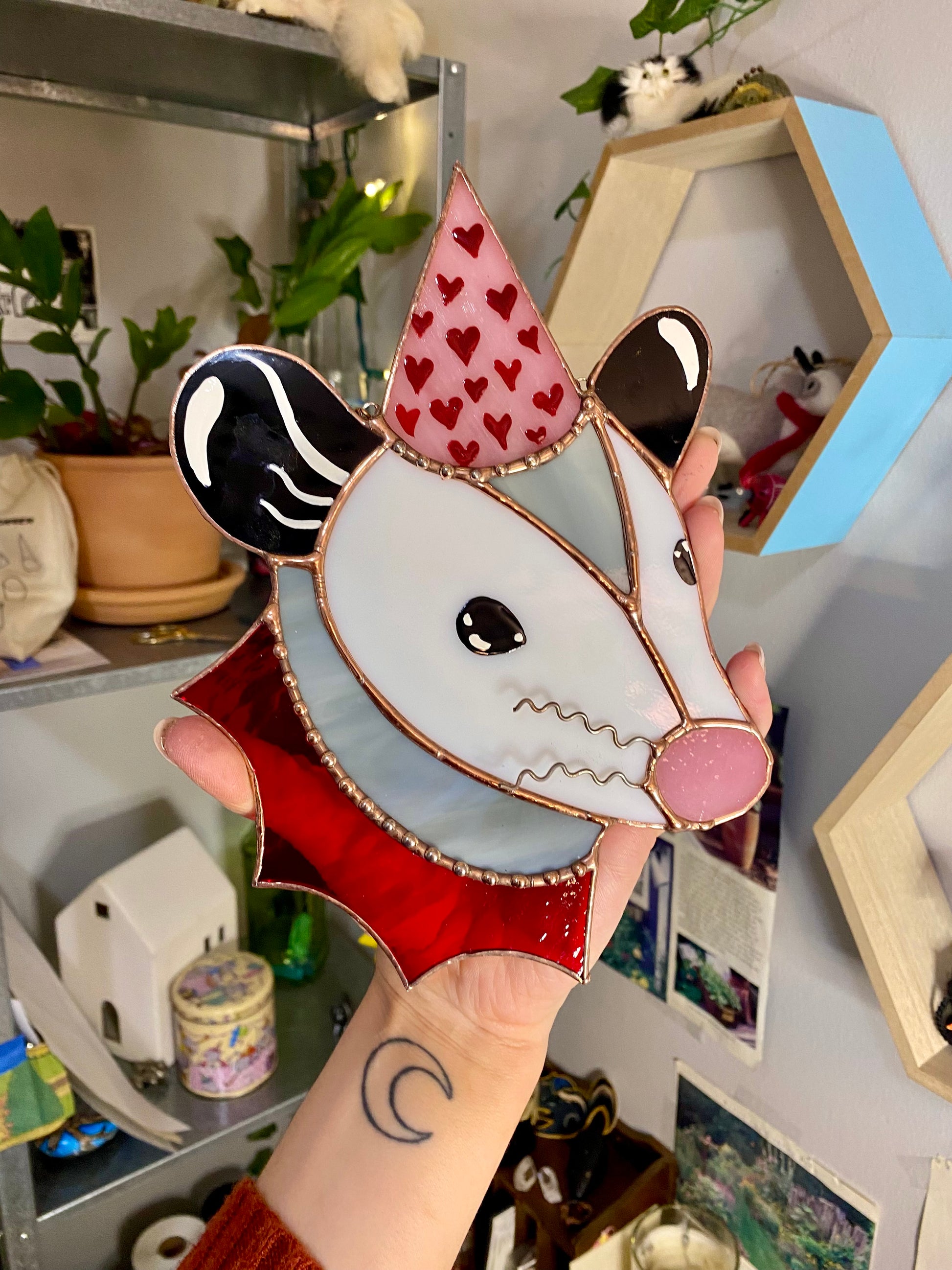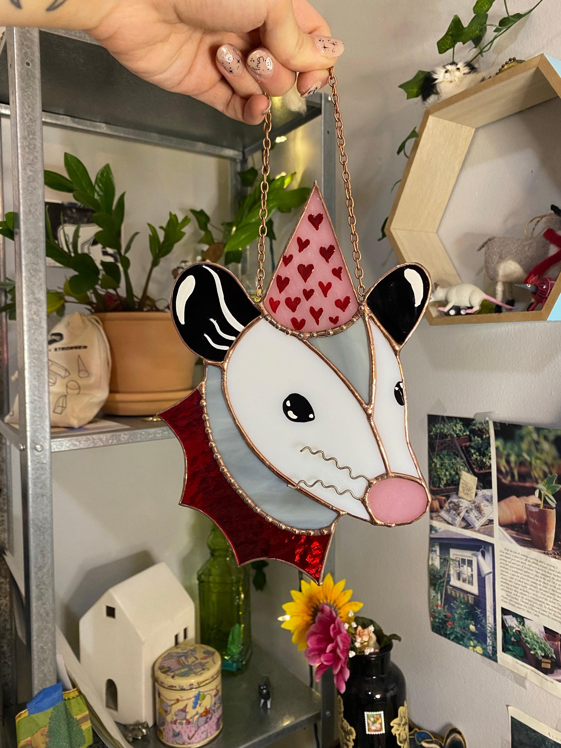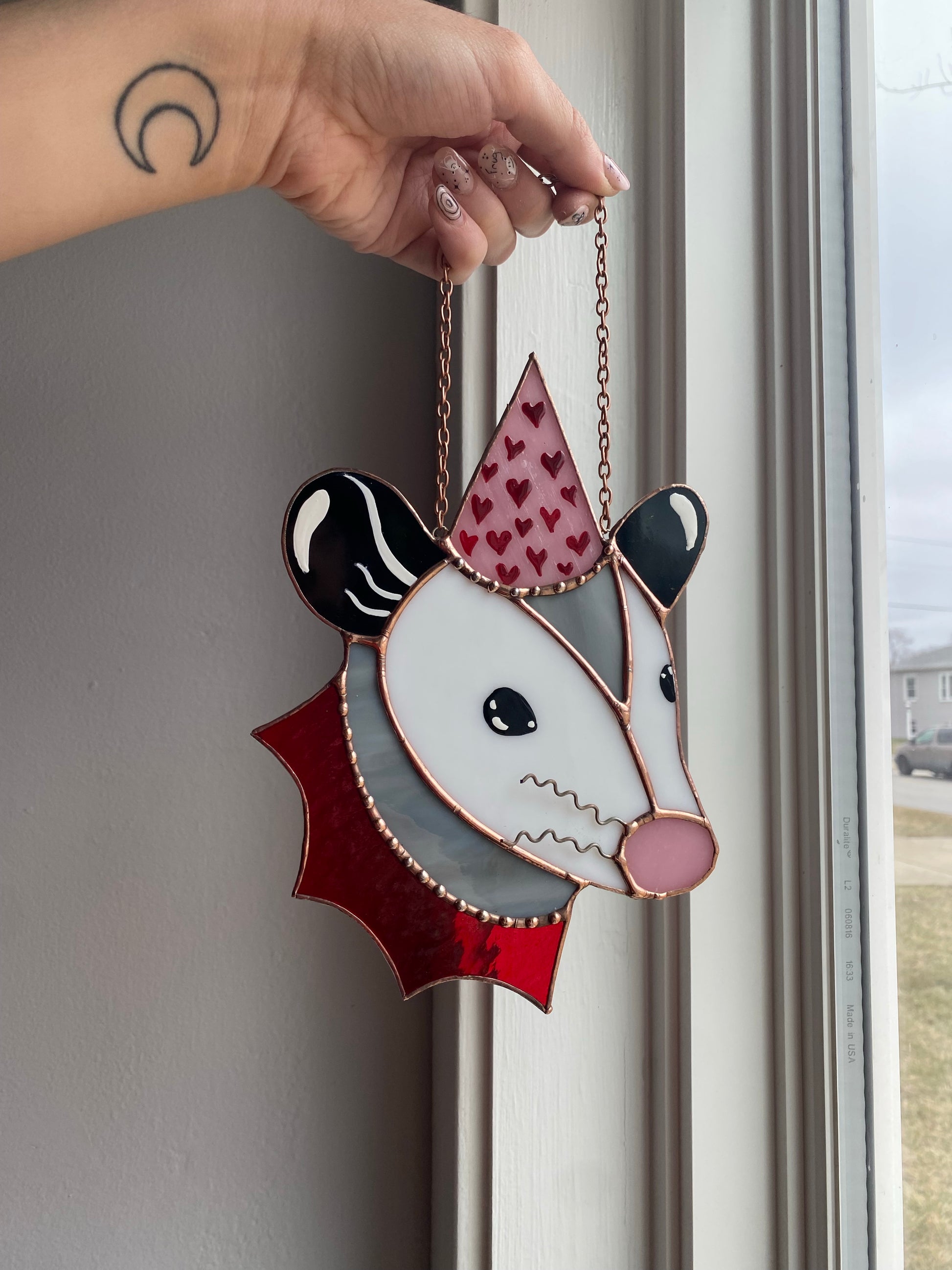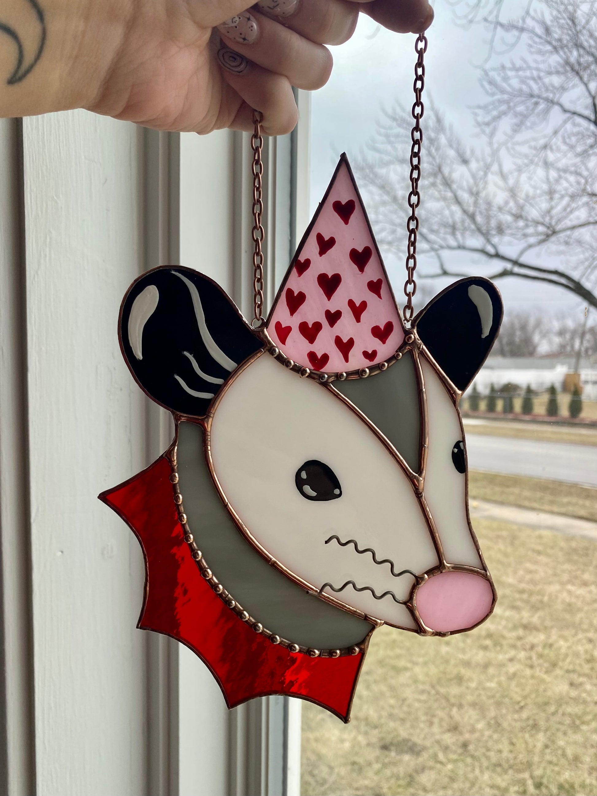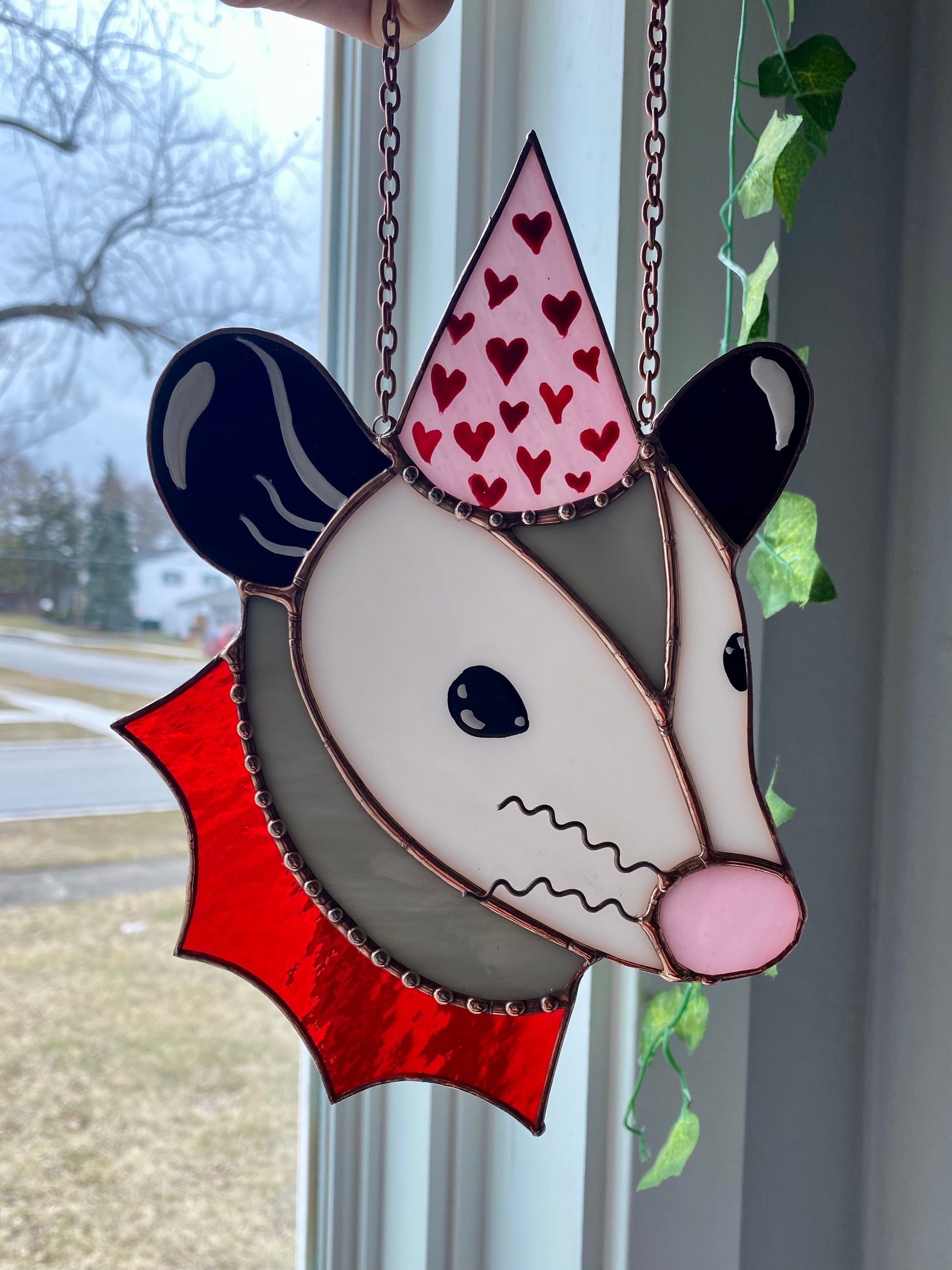 Measures 8.5” tall and 6” wide. Has a black chain to hang him up wherever you please!