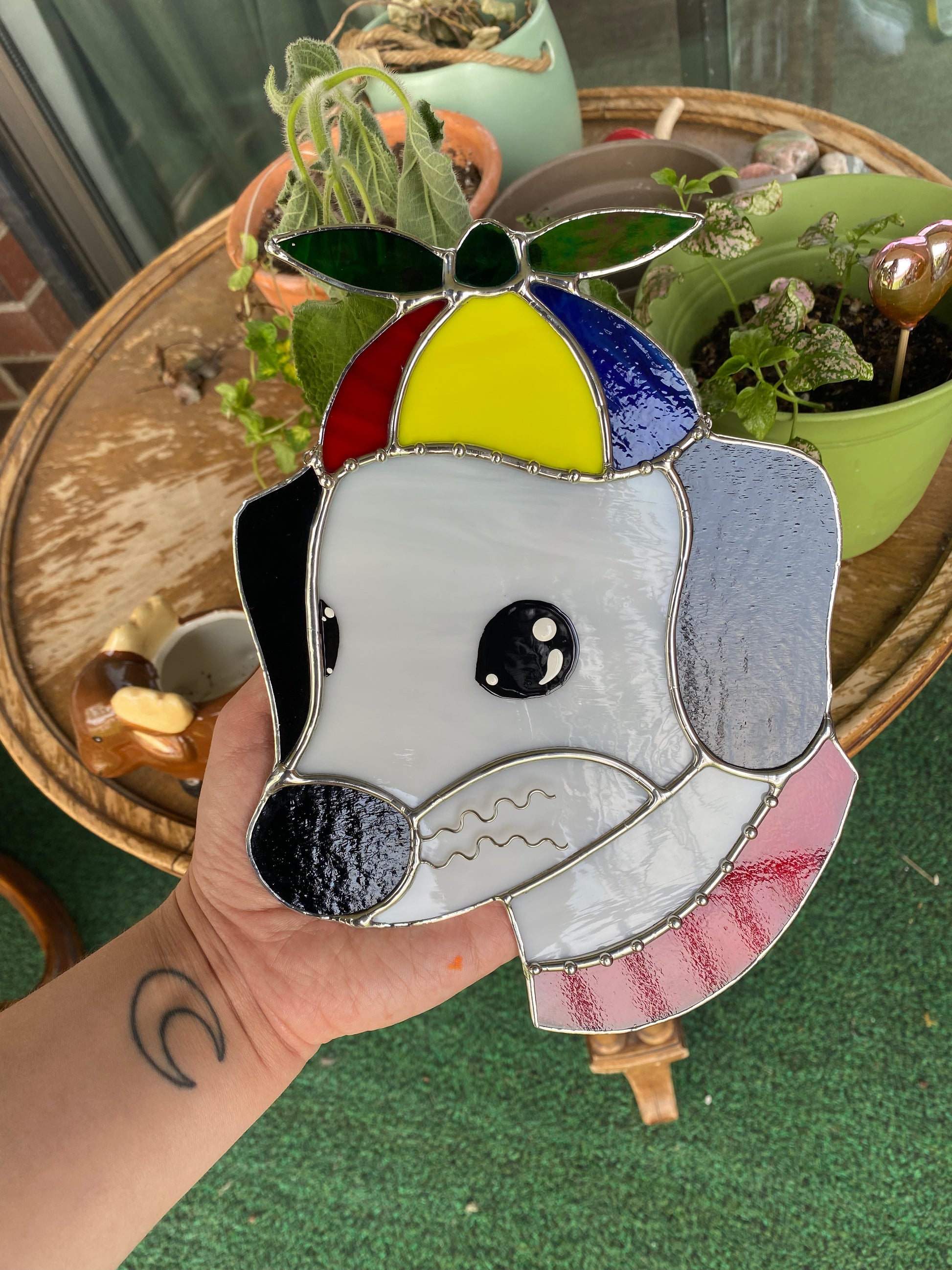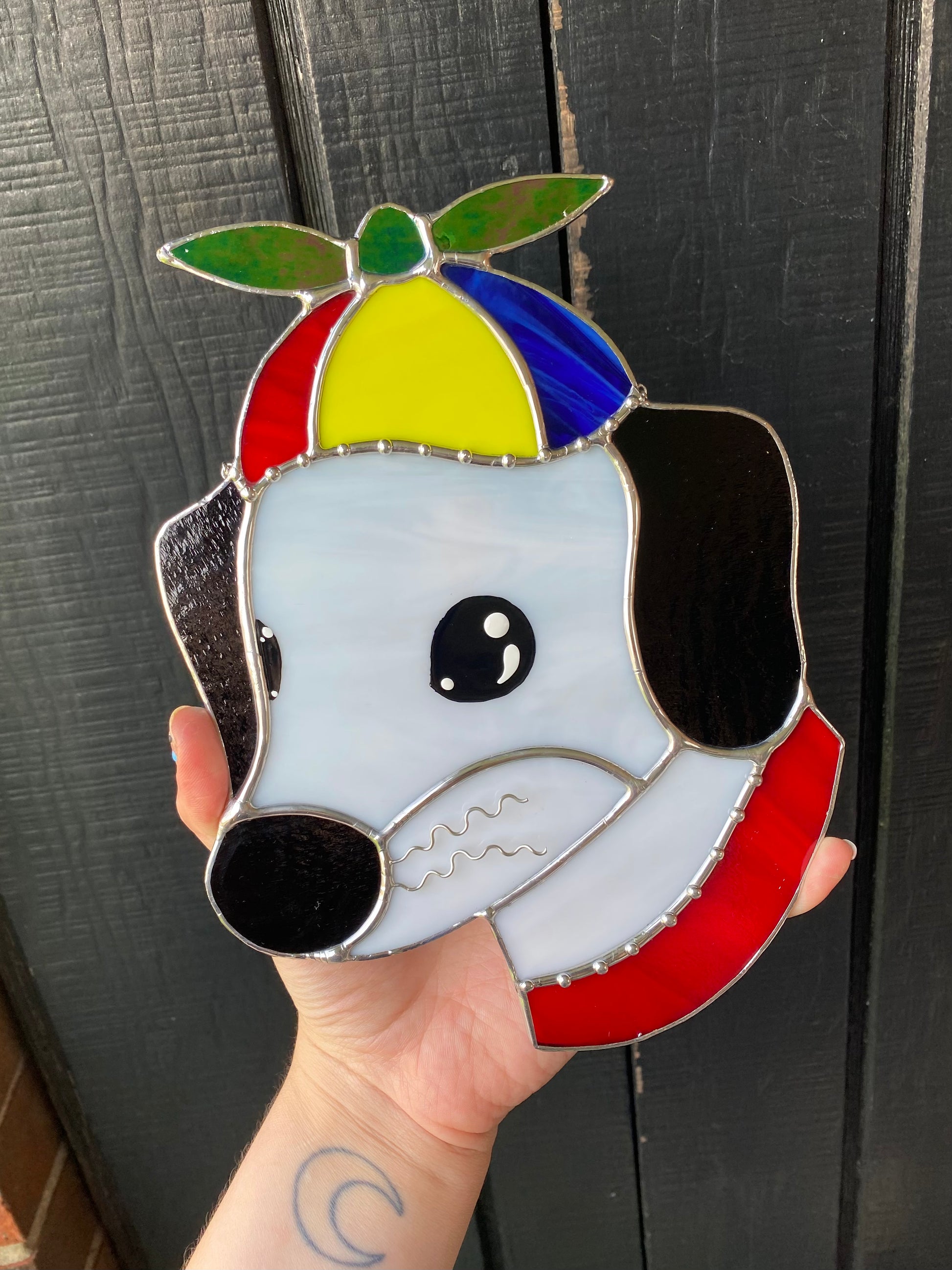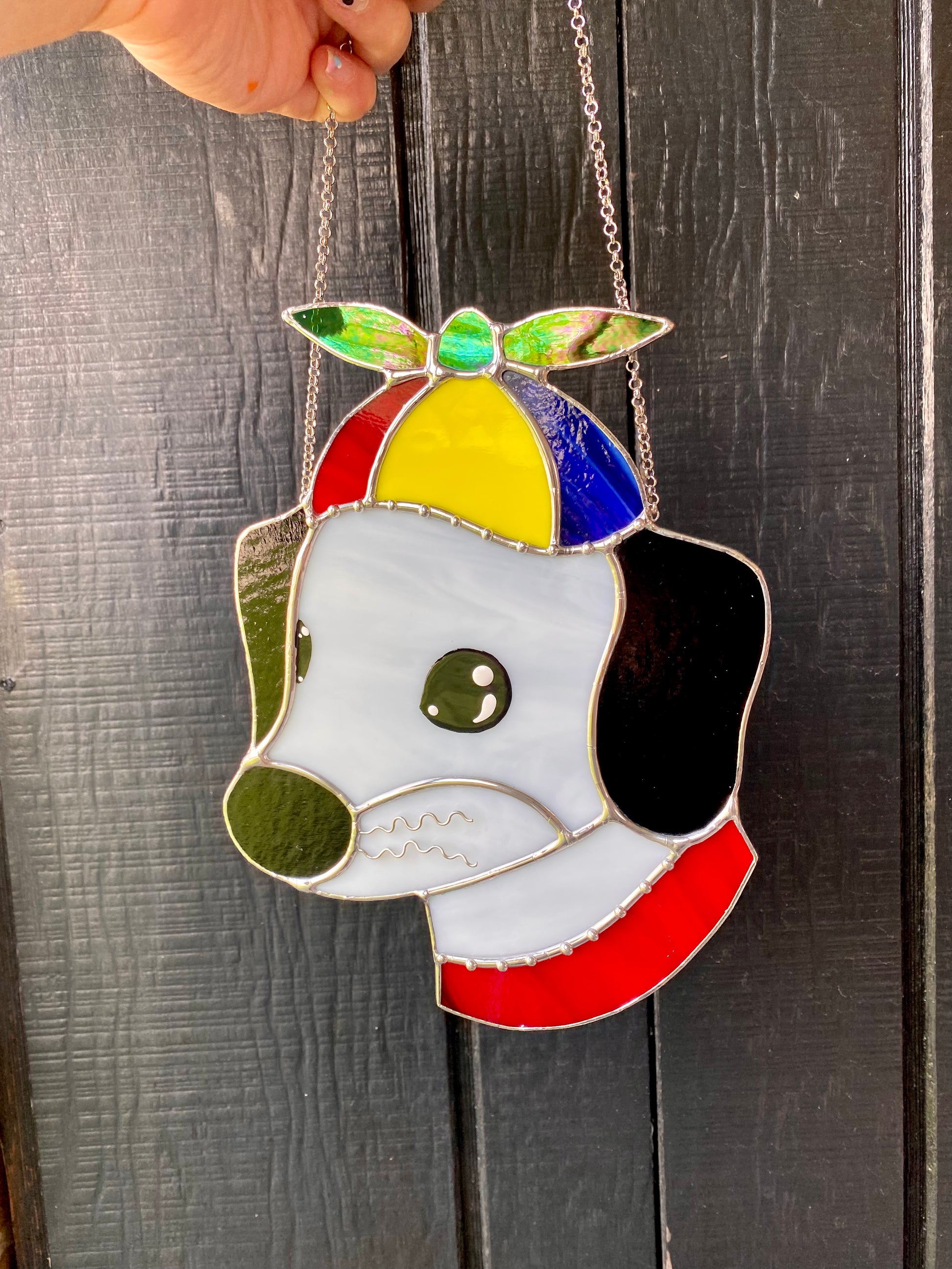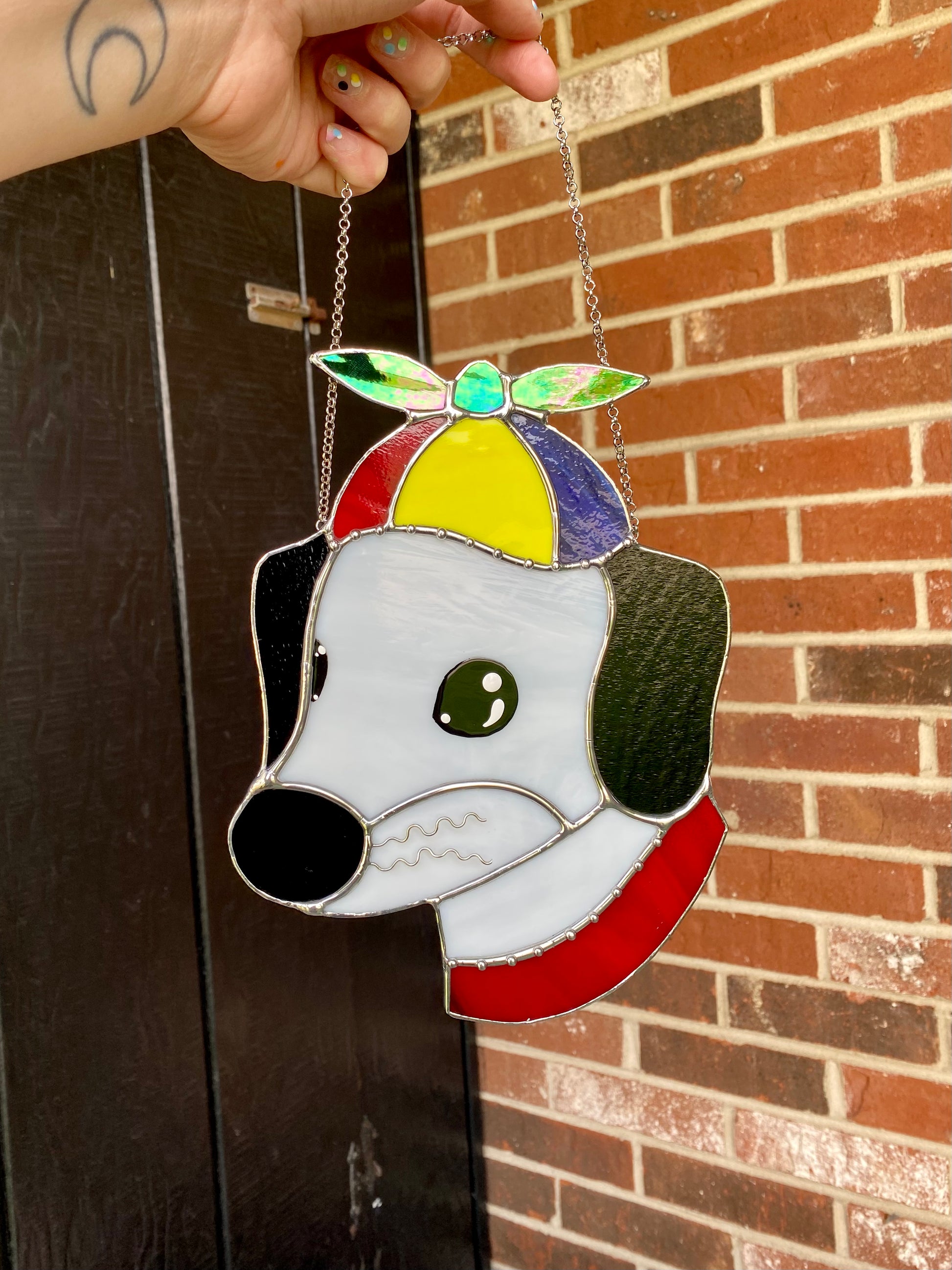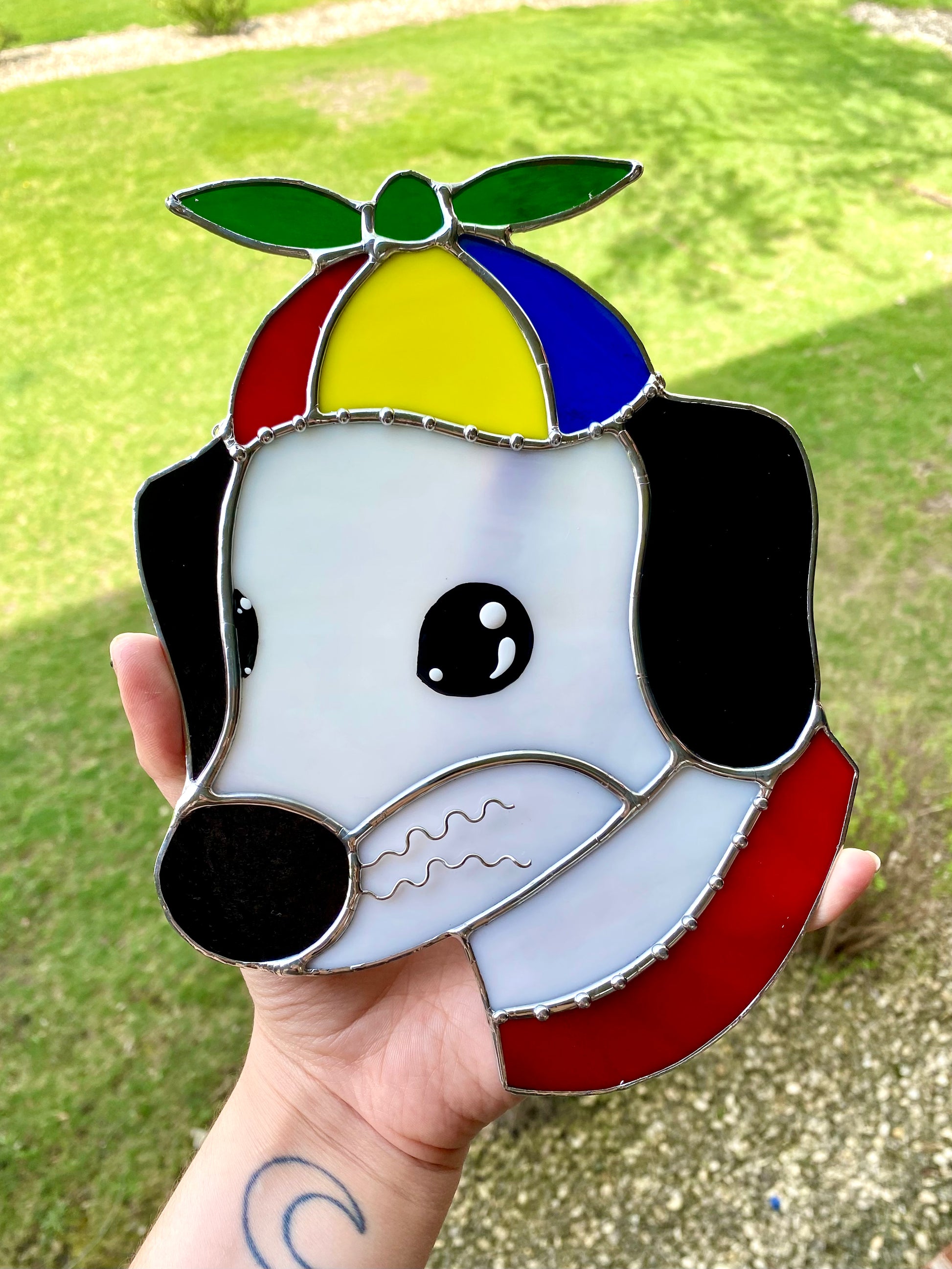 Helicopter Hat Puppy Stained Glass Suncatcher