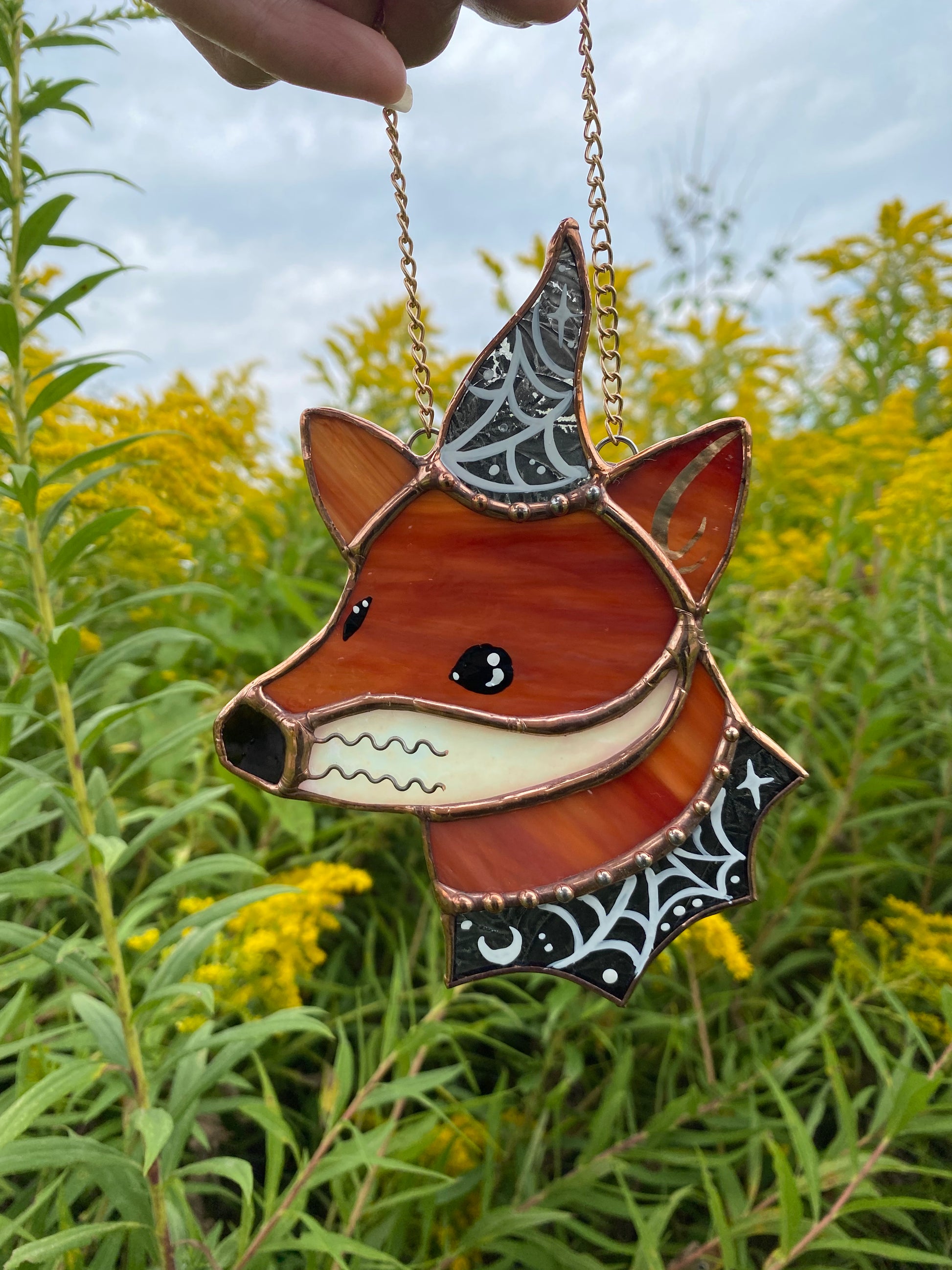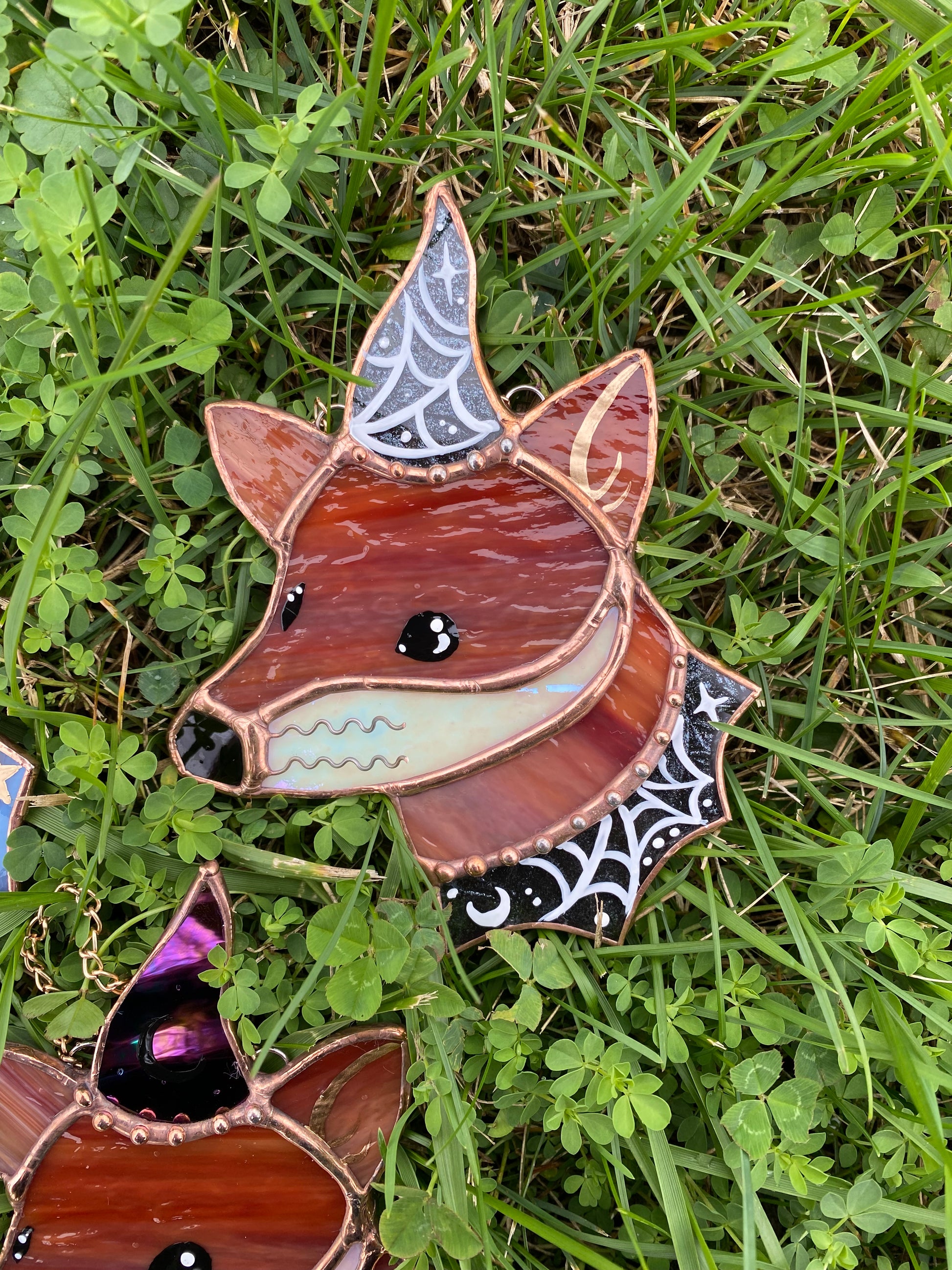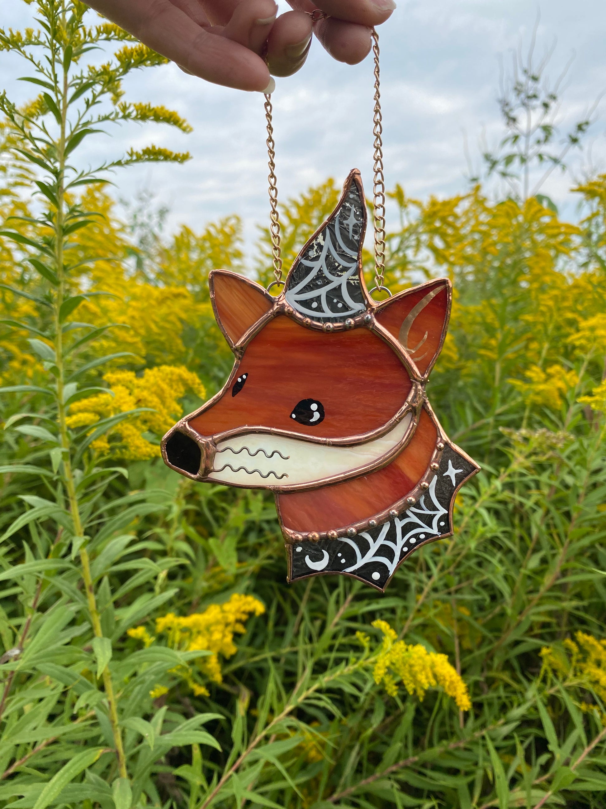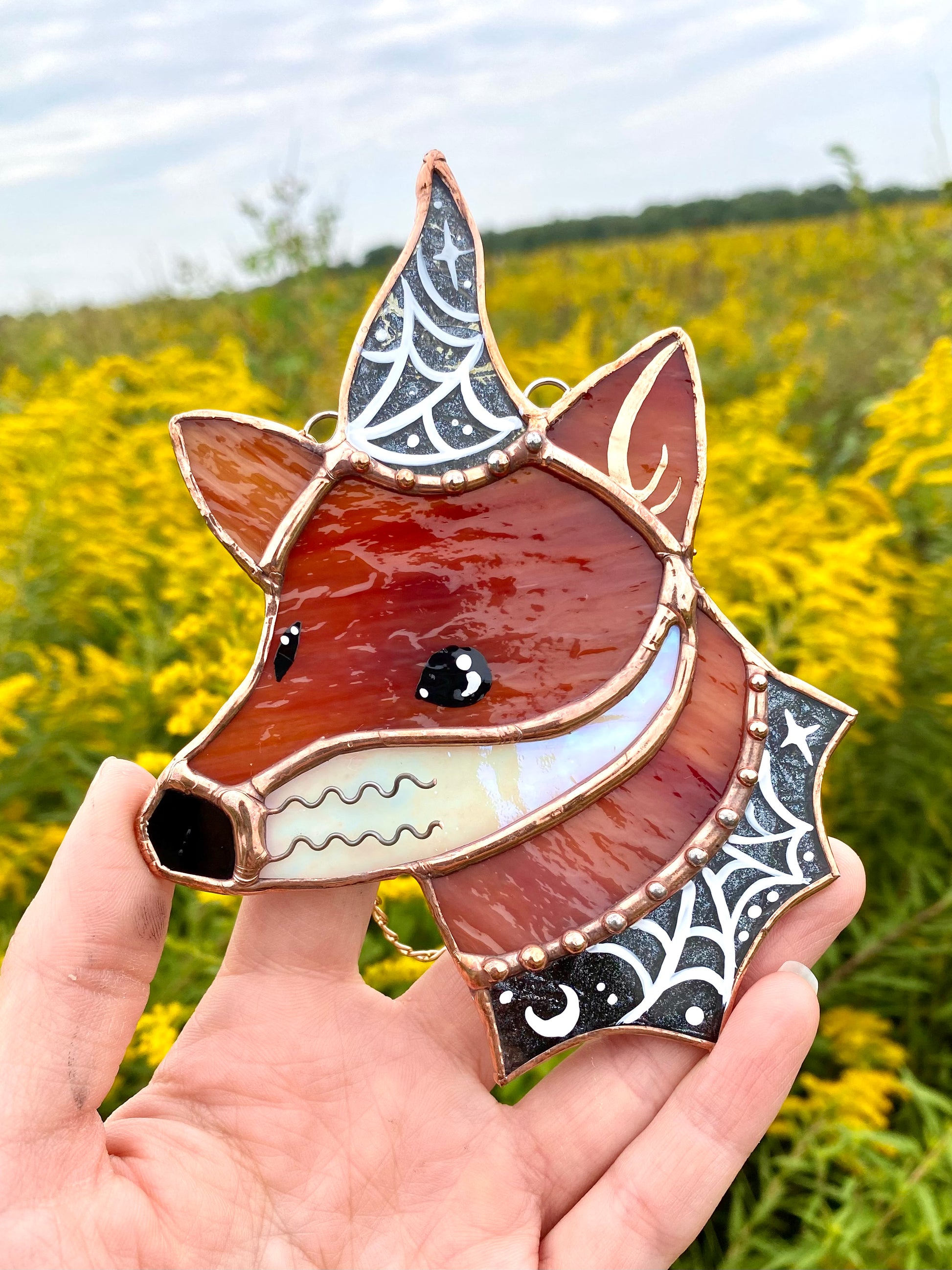 Spiderweb Mini Wizard Fox Stained Glass Suncatcher