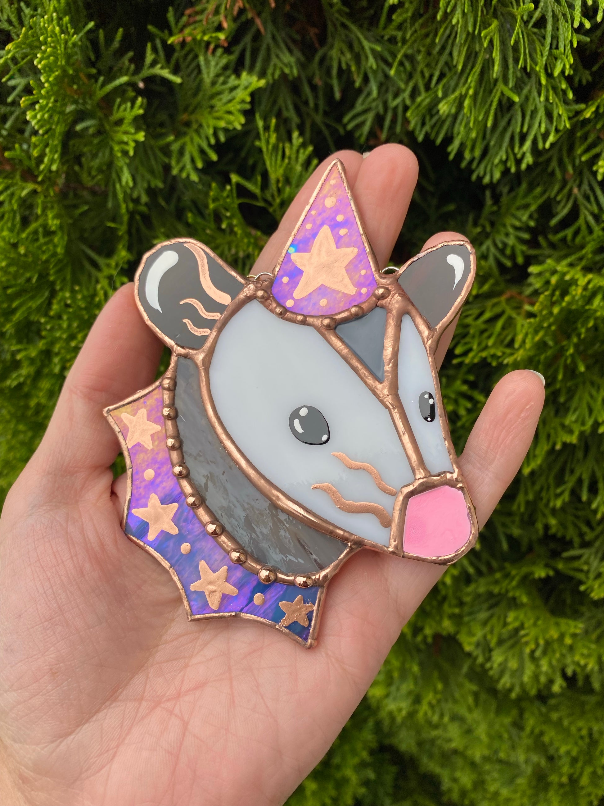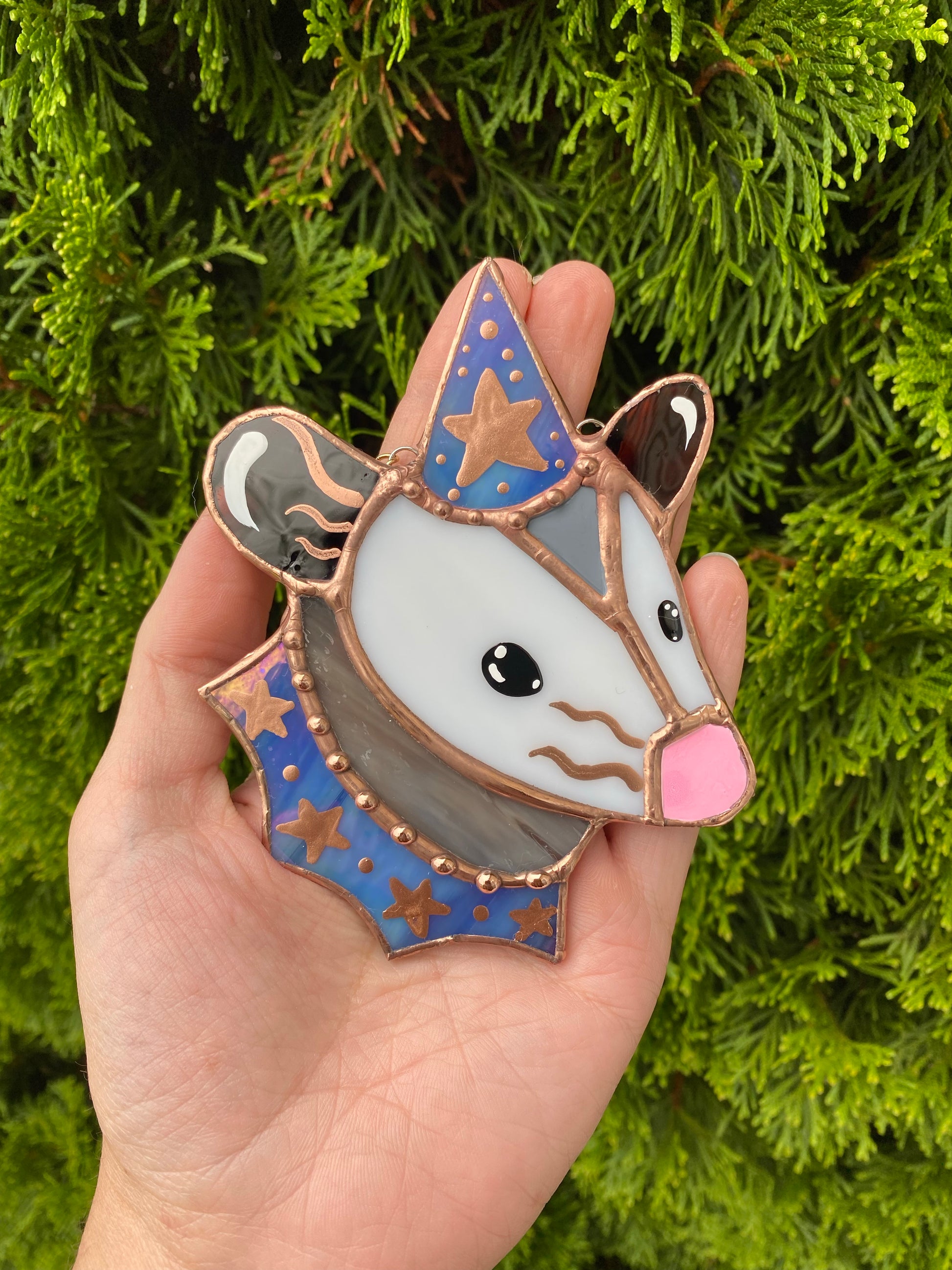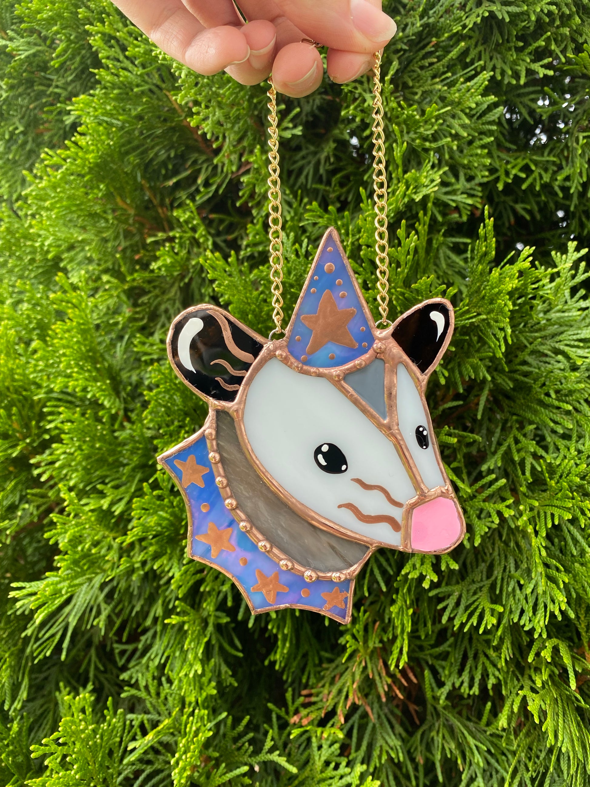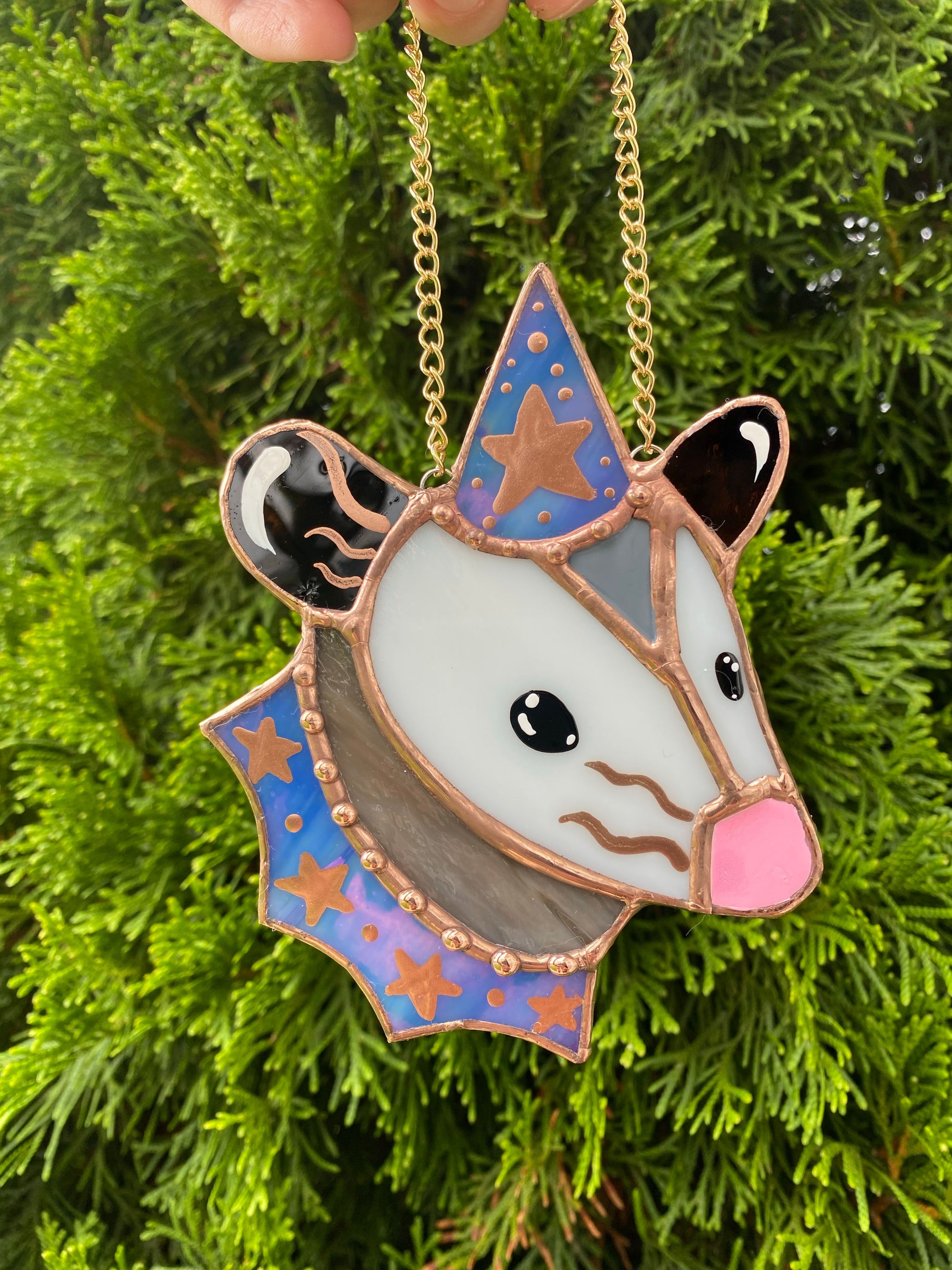 Iridescent Periwinkle Mini Wizard Opossum Stained Glass Suncatcher