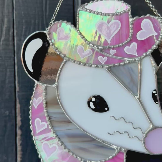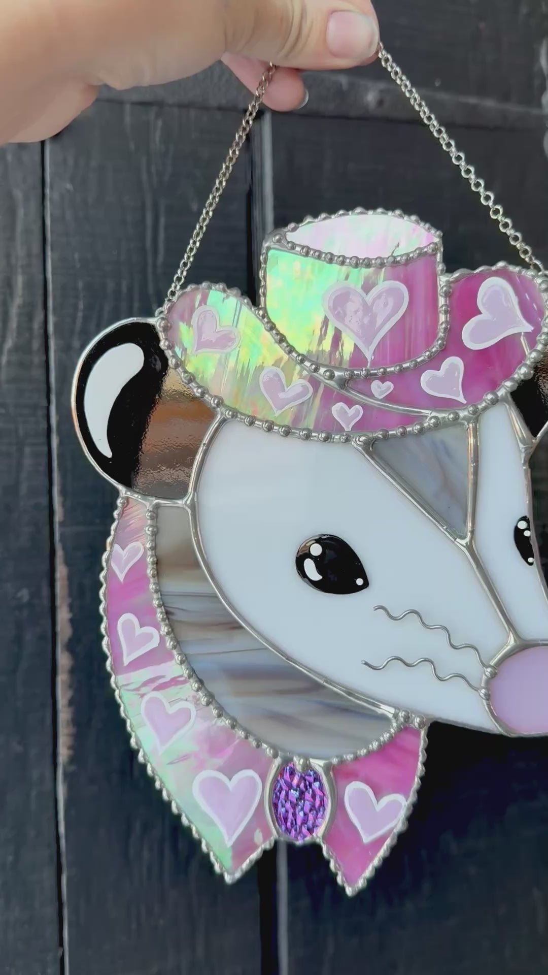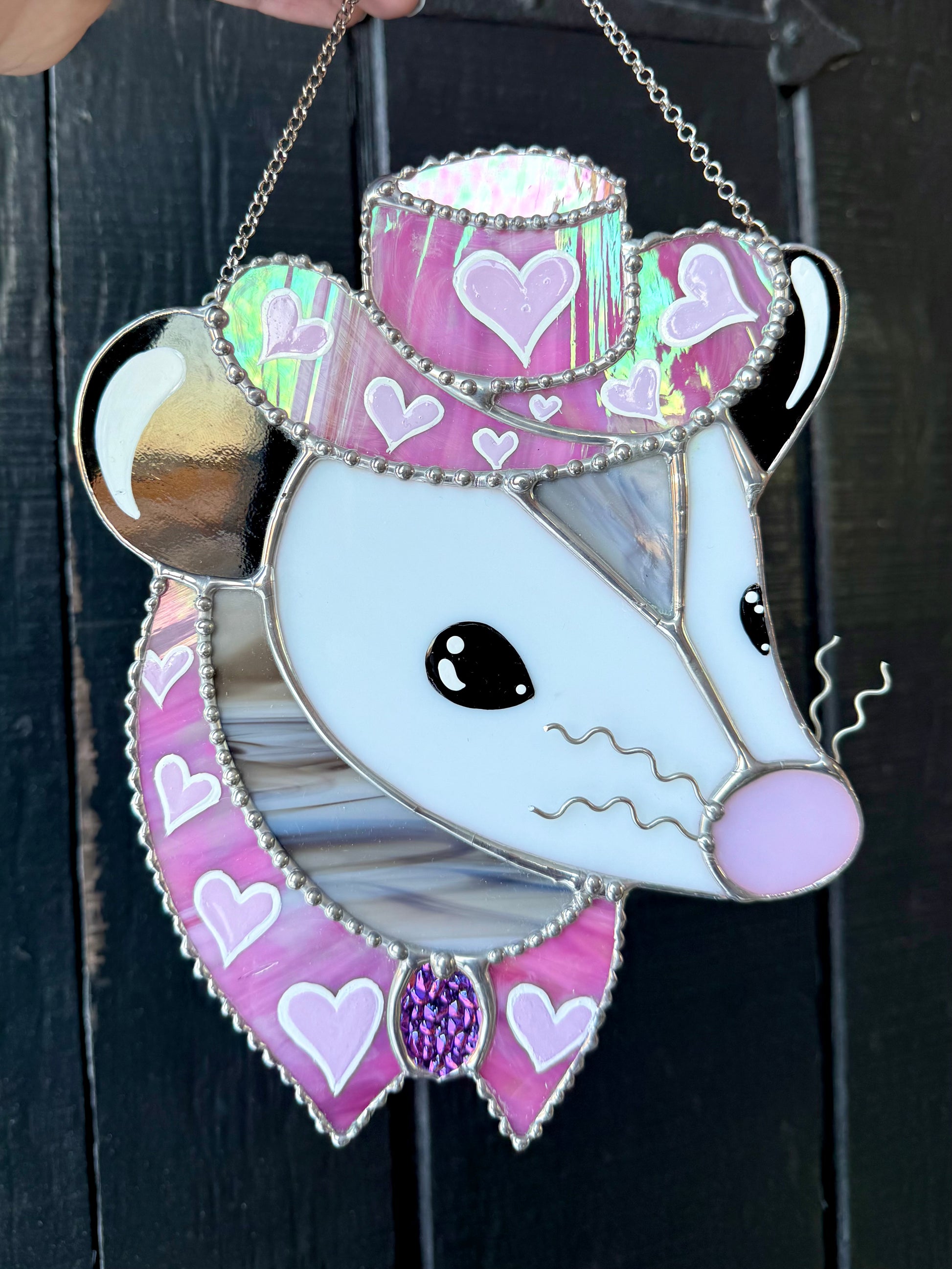 Iridescent Pink Pony Cowboy Opossum Stained Glass
