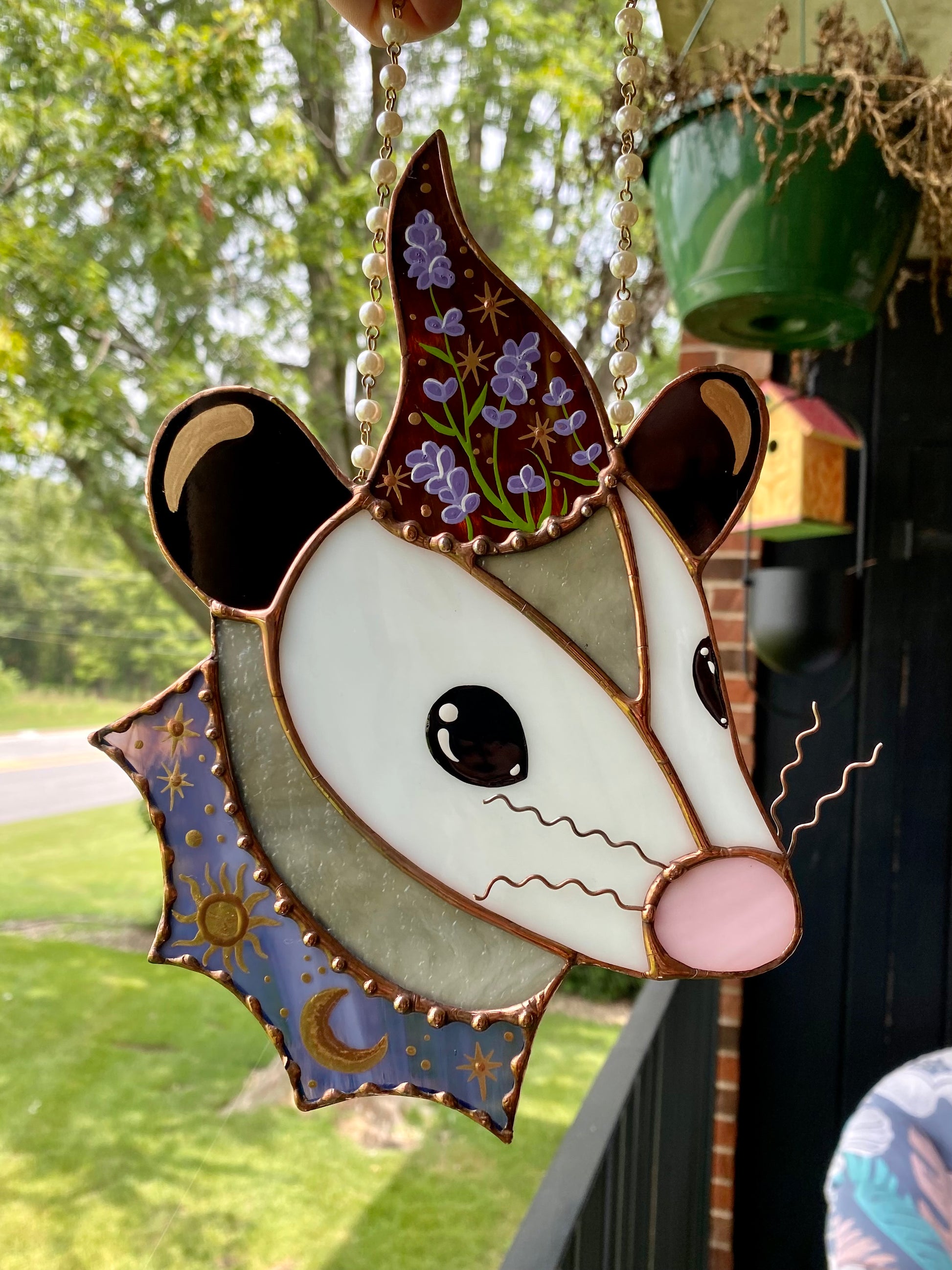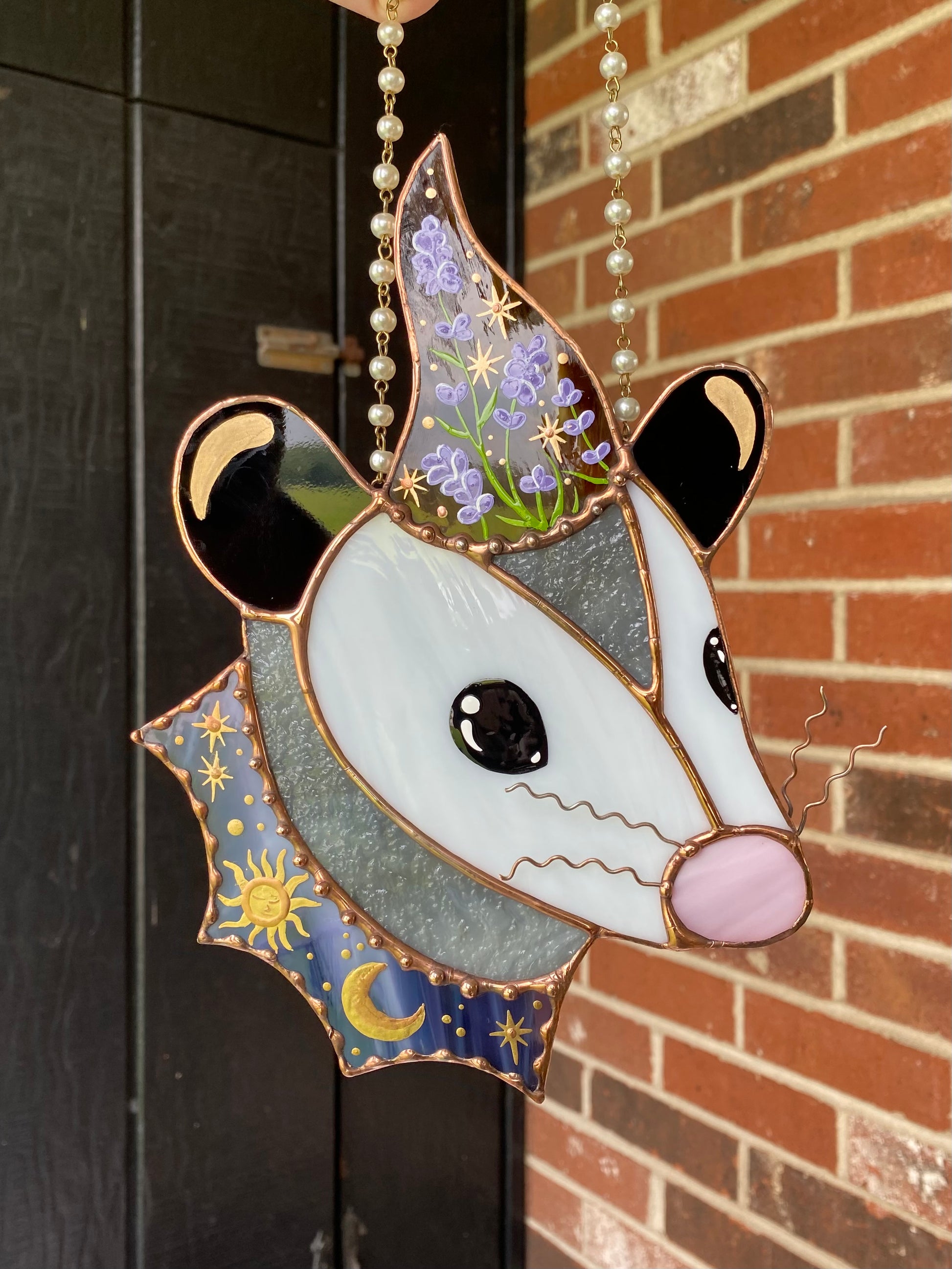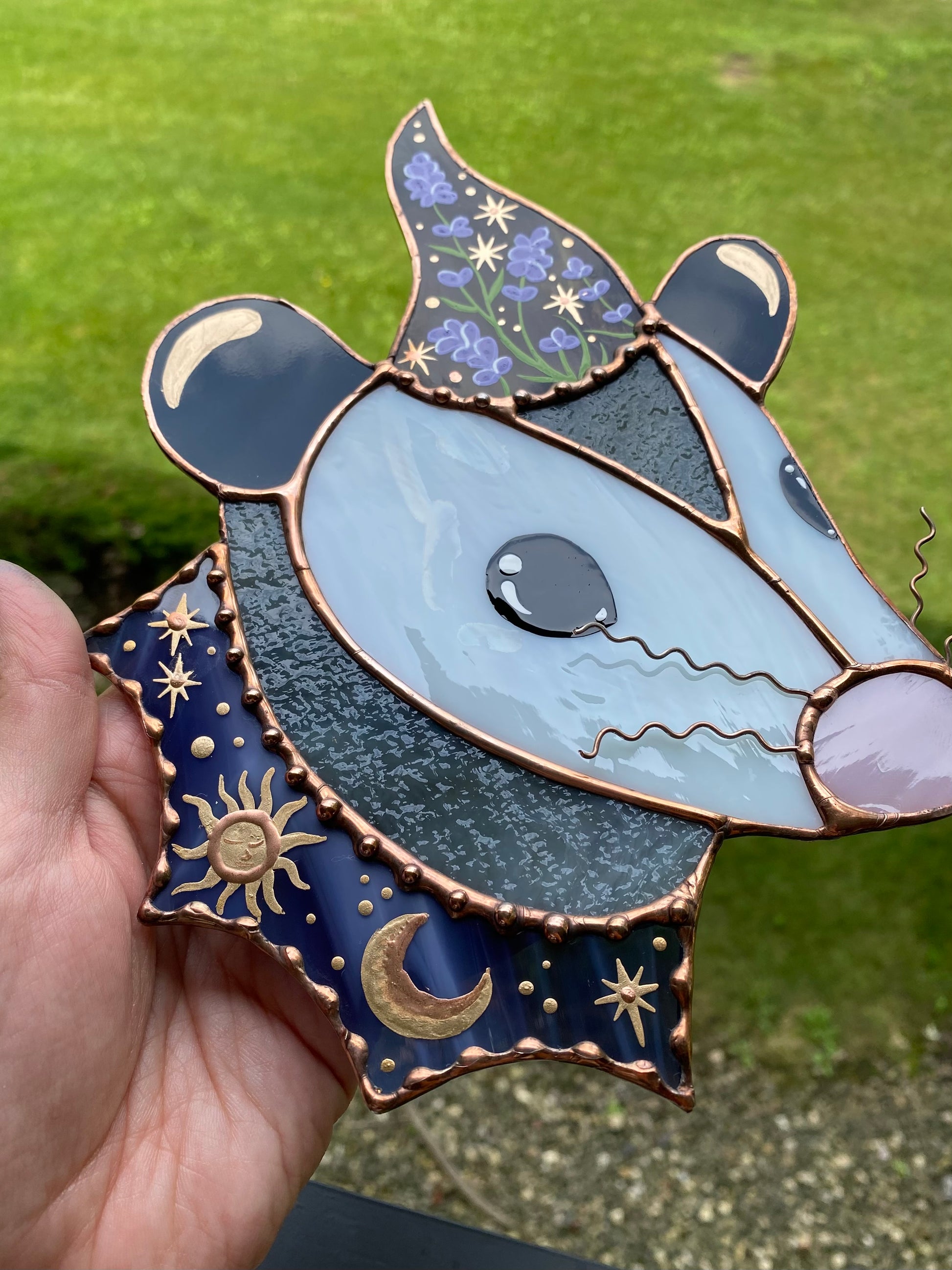 Lavender Wizard Opossum Stained Glass Suncatcher