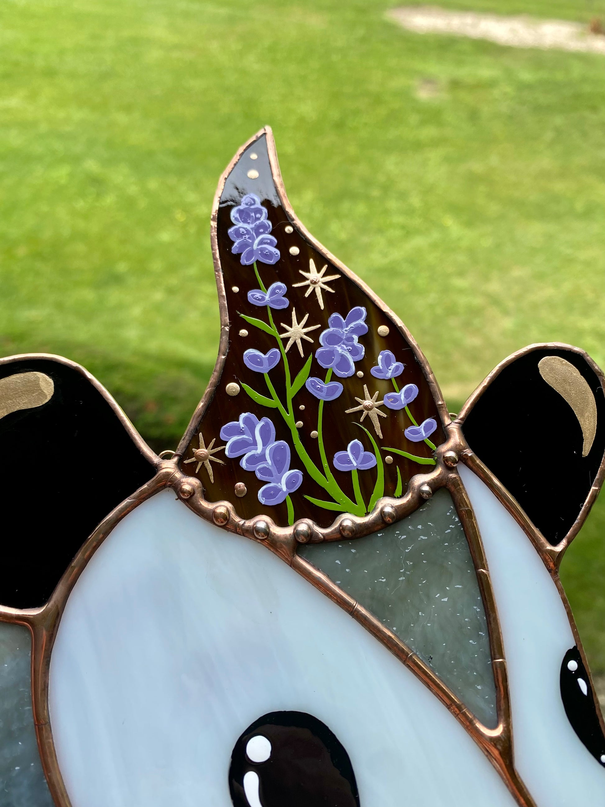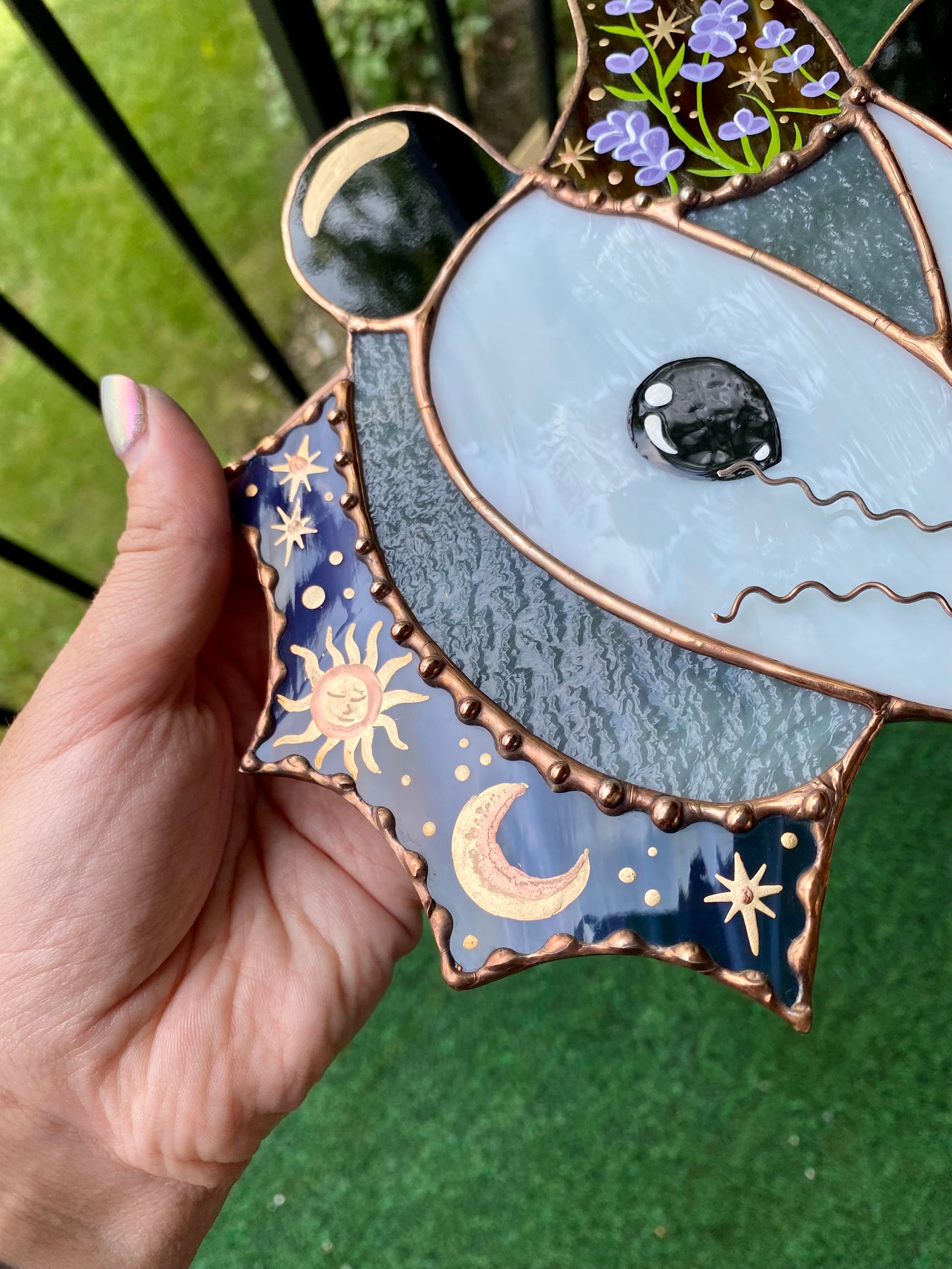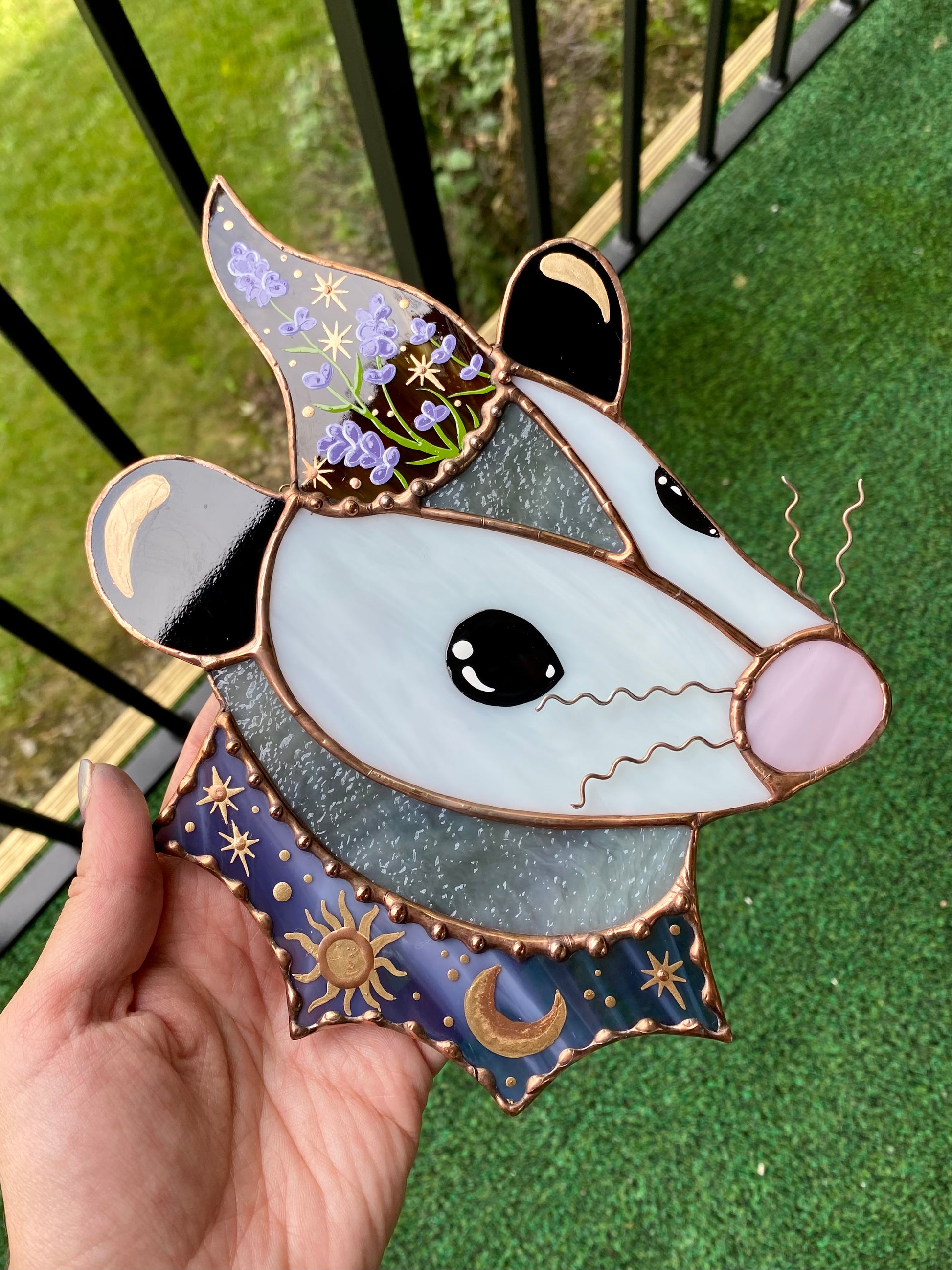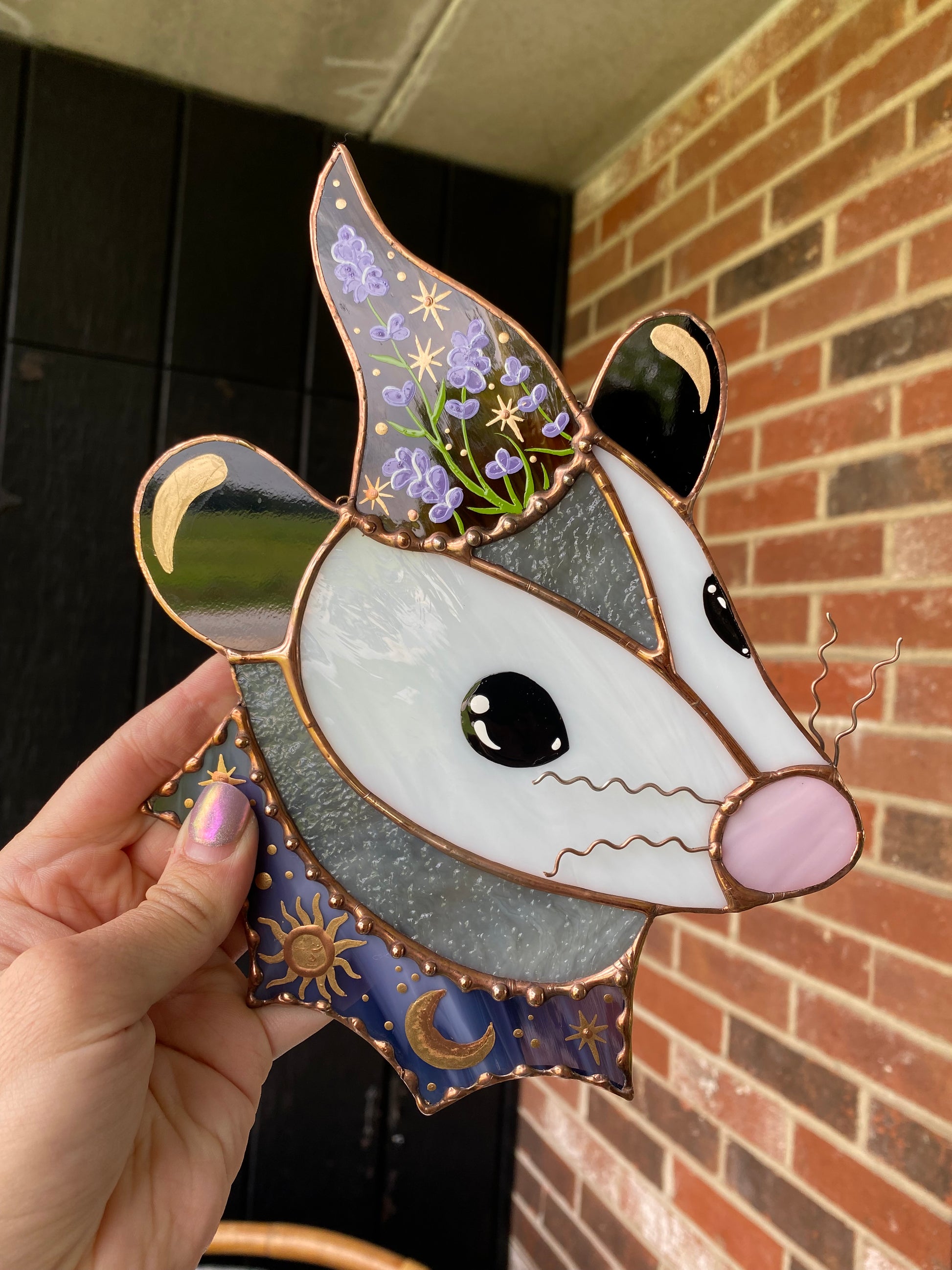 Lavender Wizard Opossum Stained Glass Suncatcher