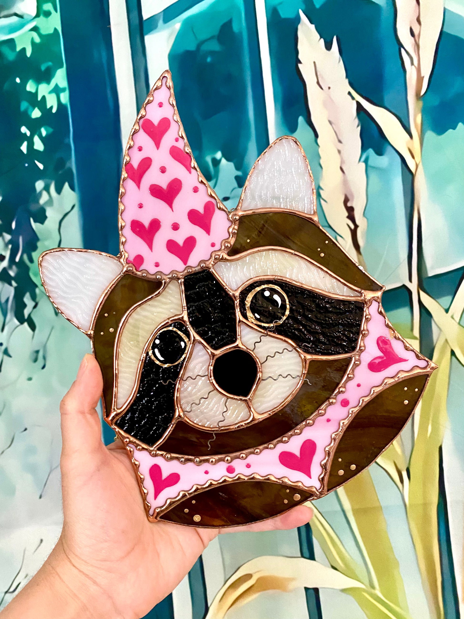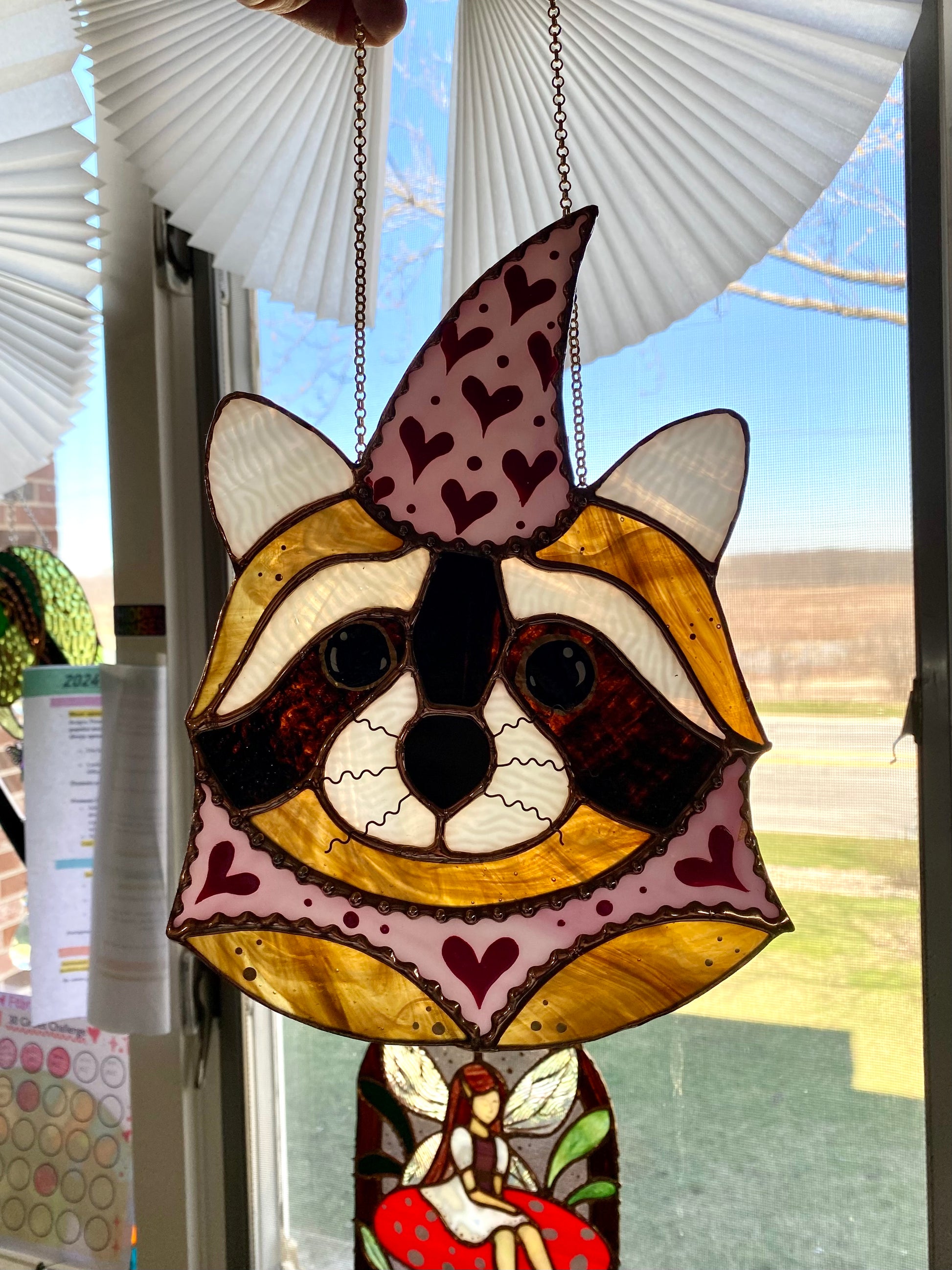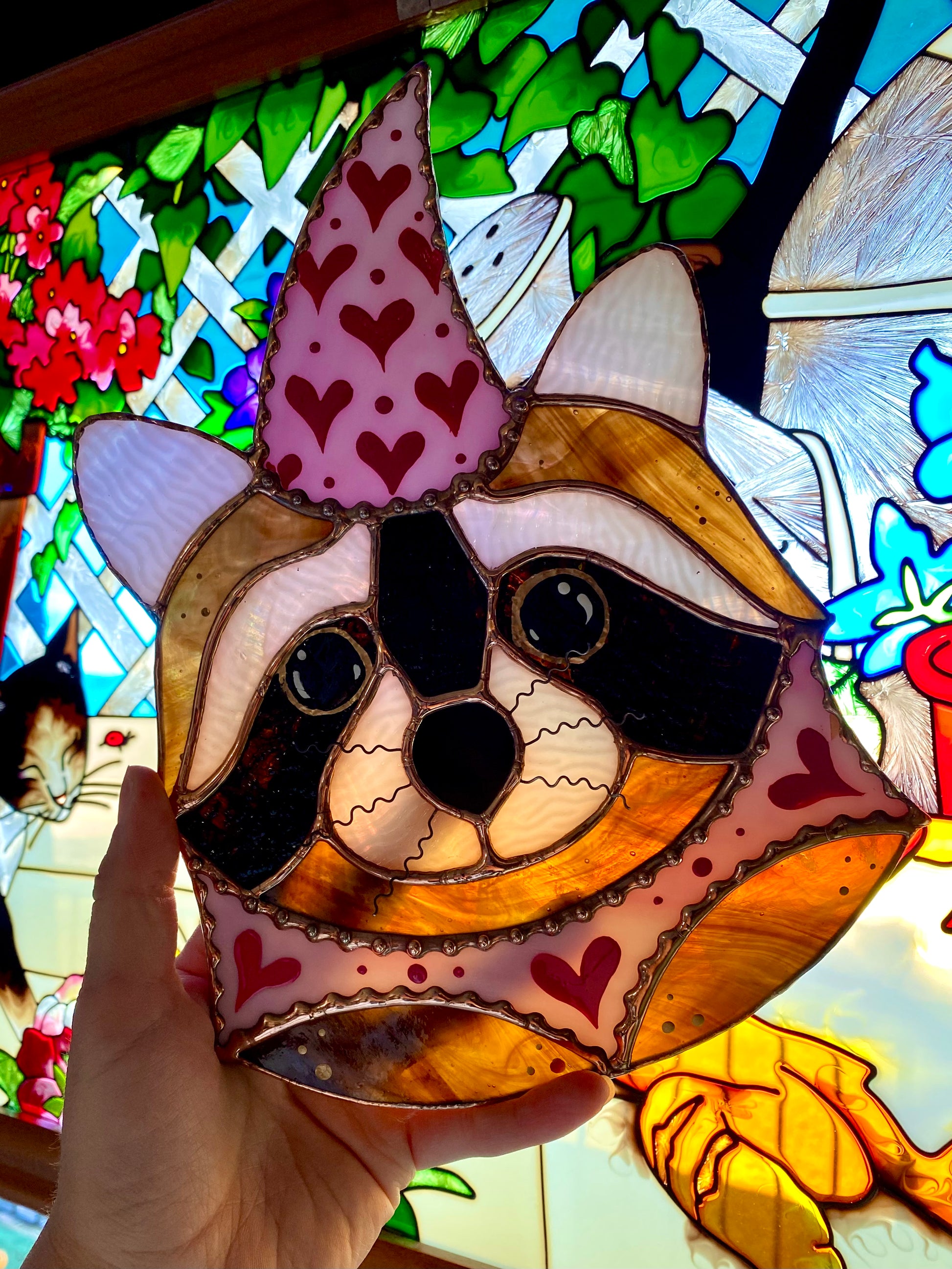 Lovely Wizard Raccoon Stained Glass Suncatcher