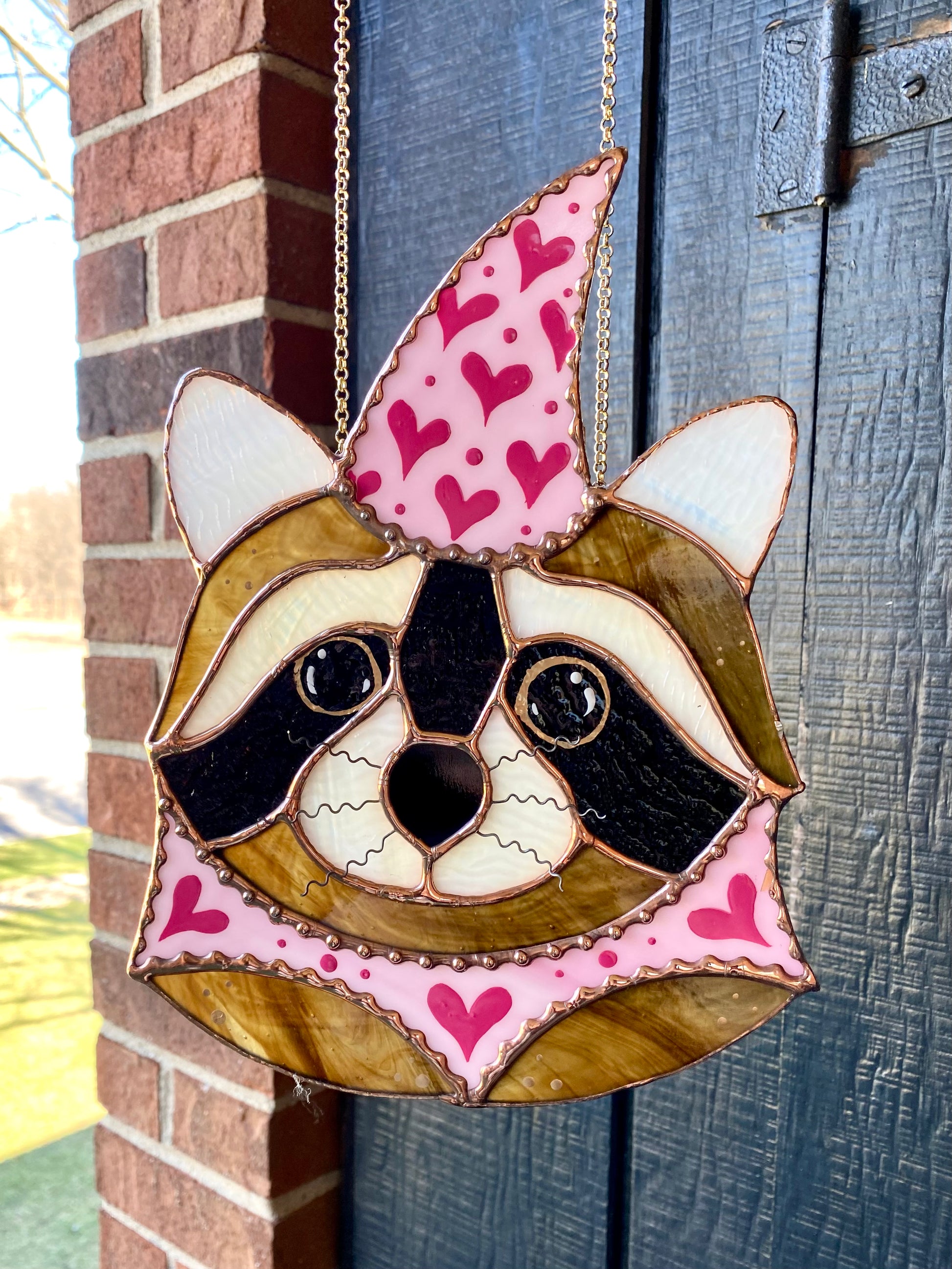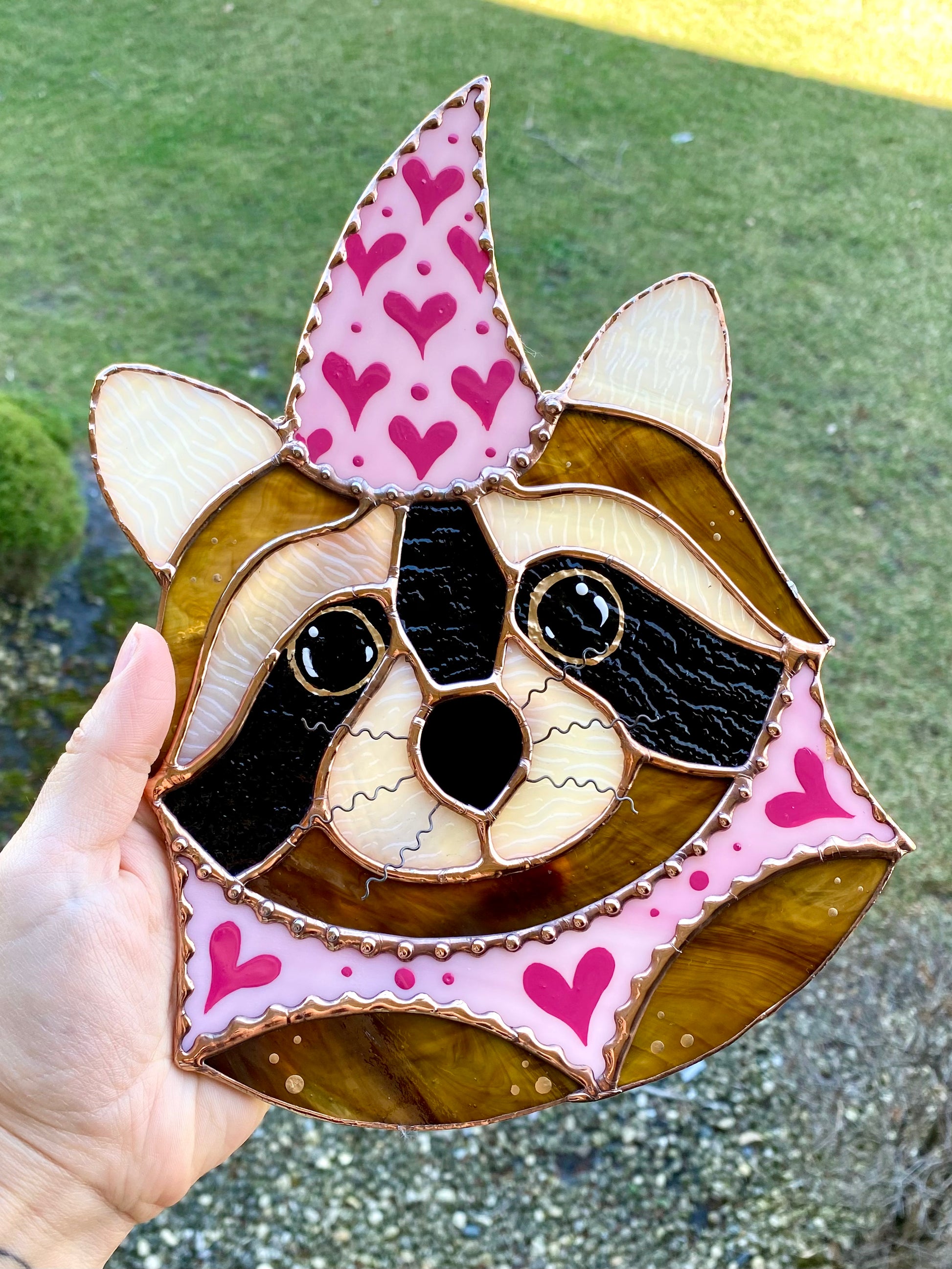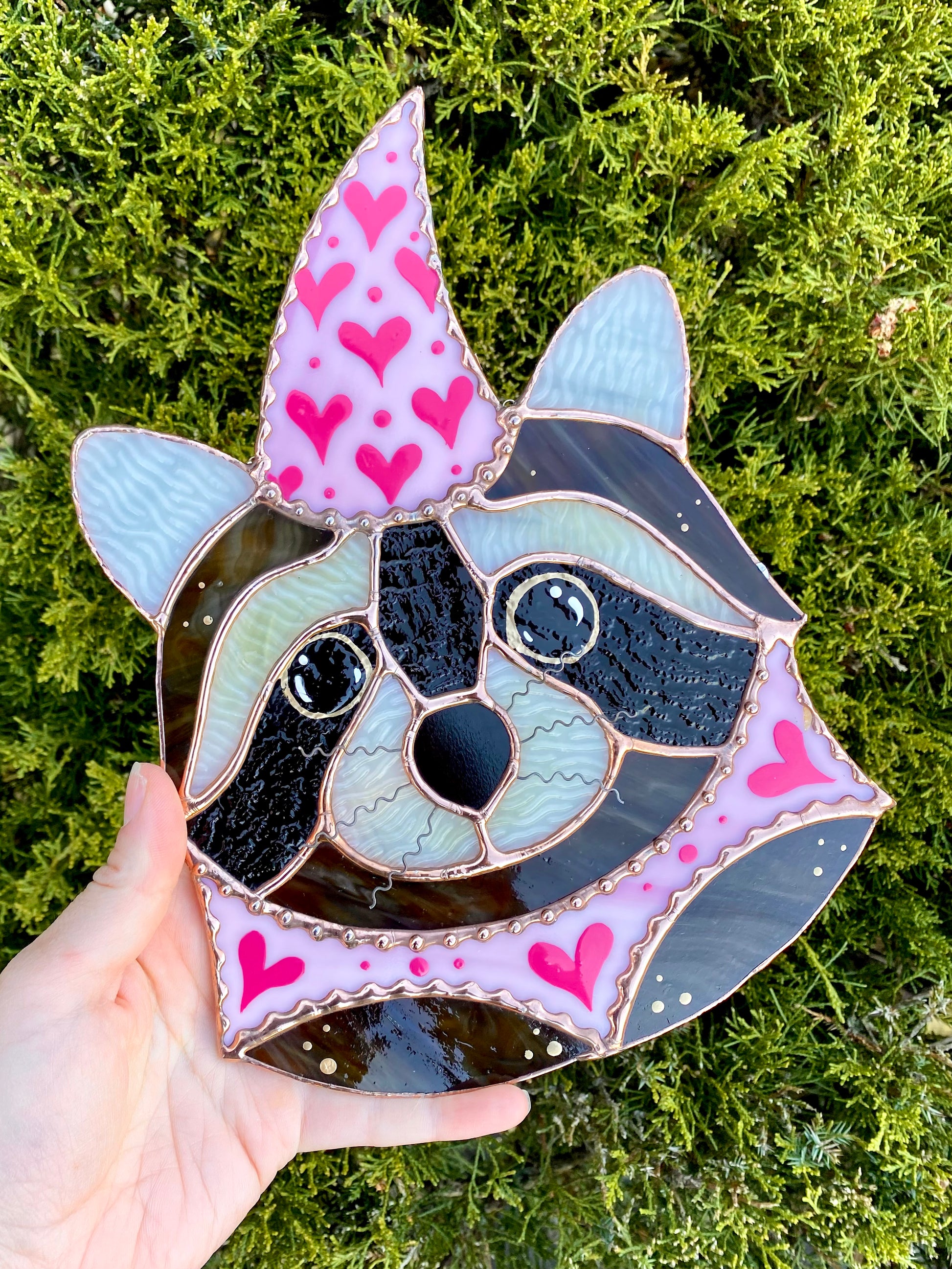 Lovely Wizard Raccoon Stained Glass Suncatcher