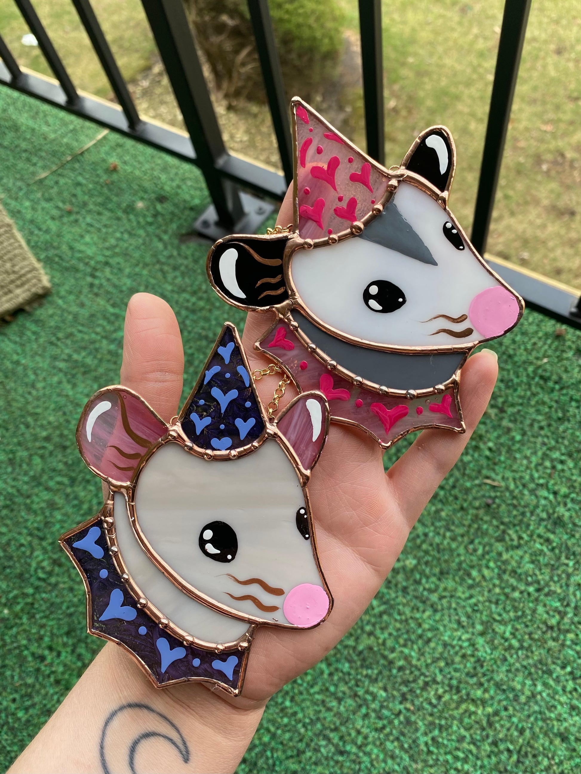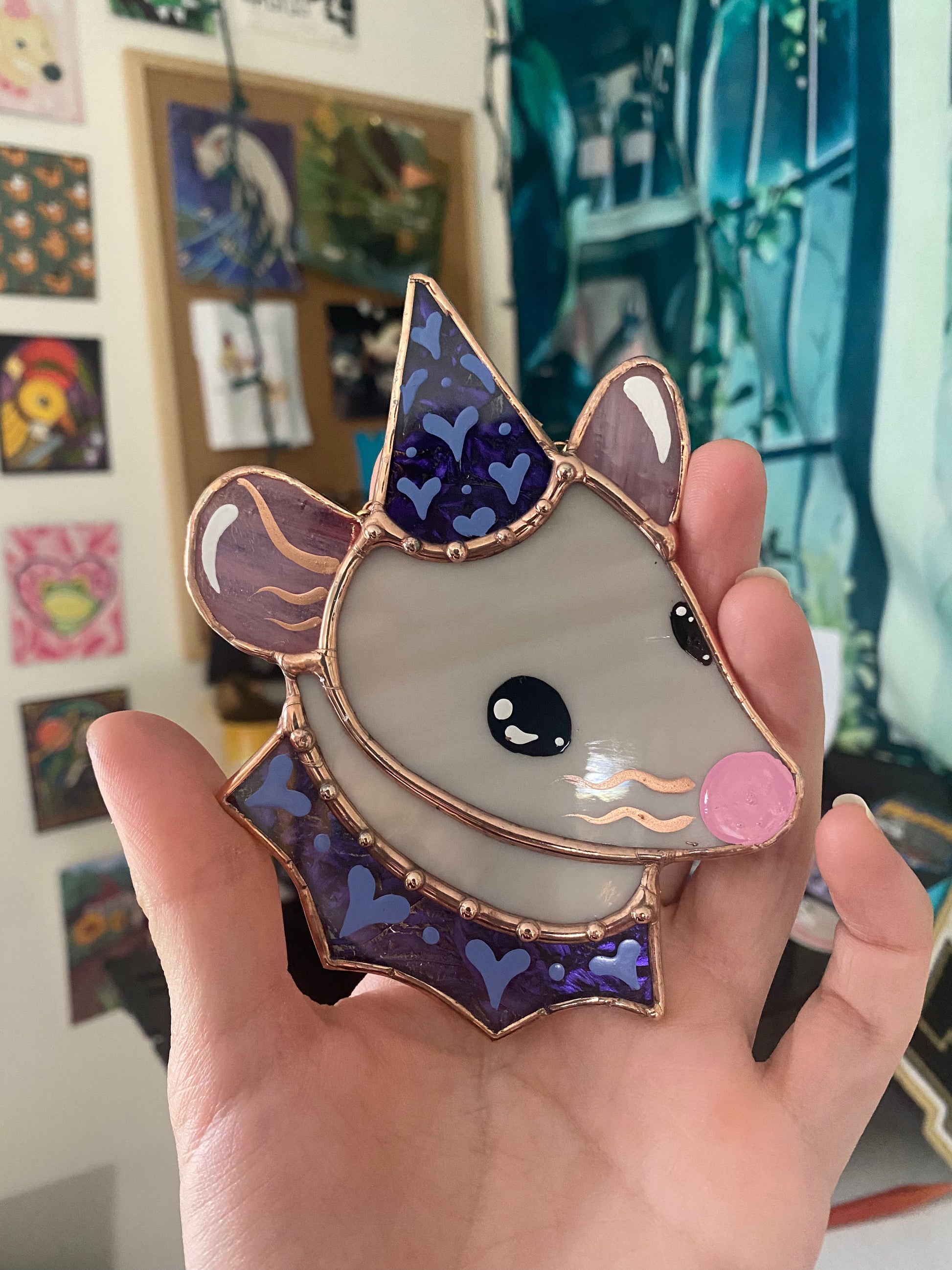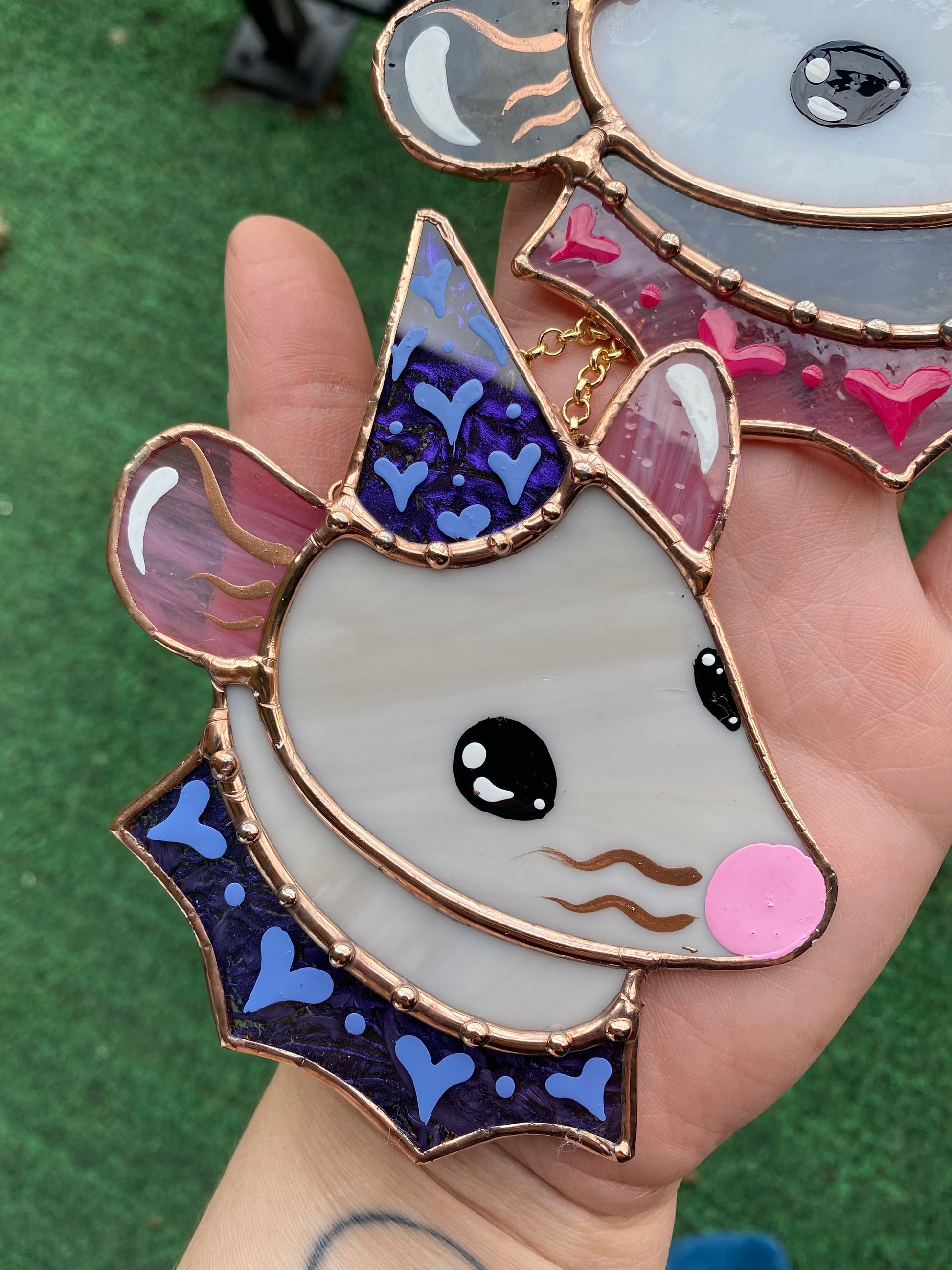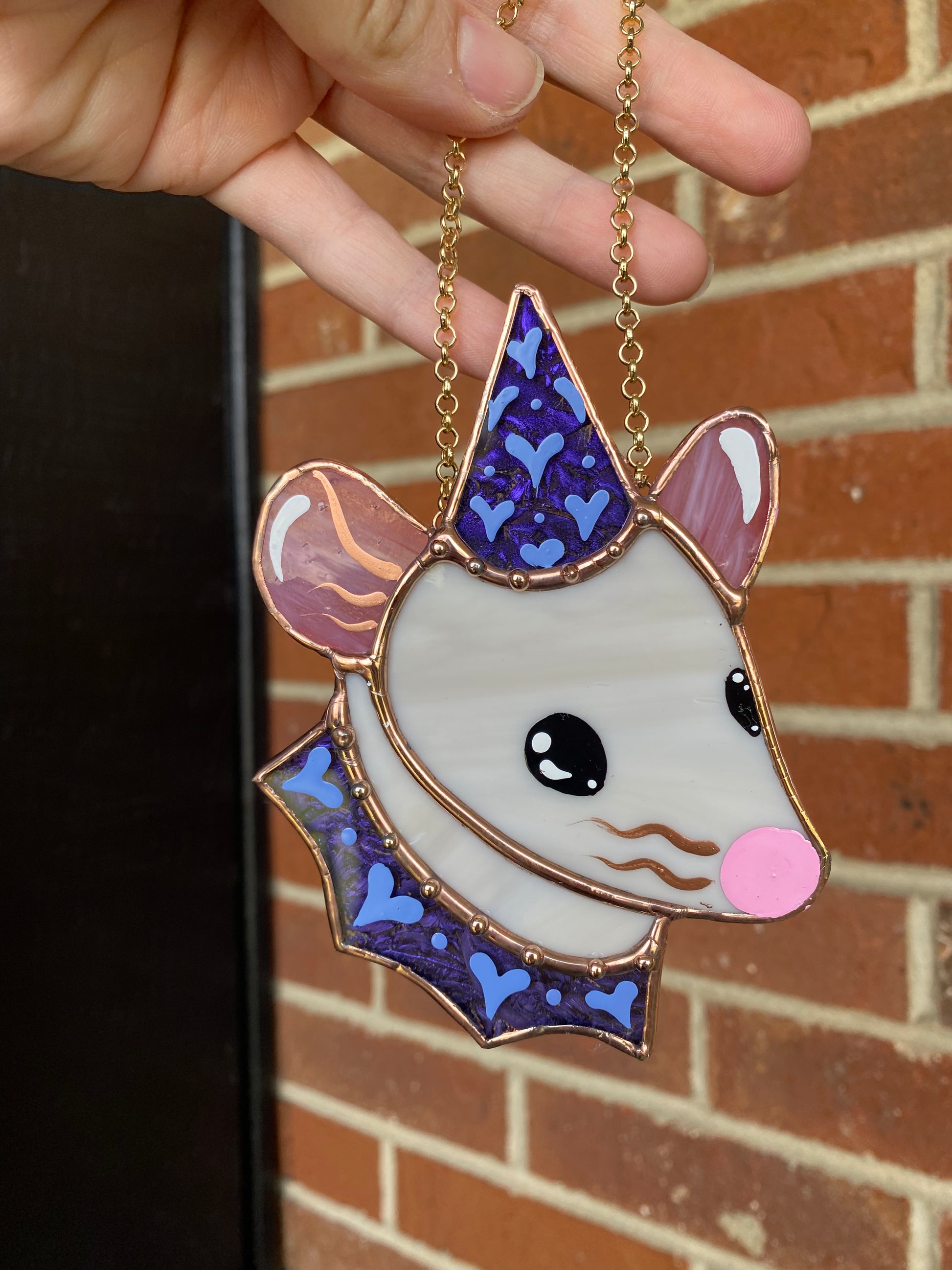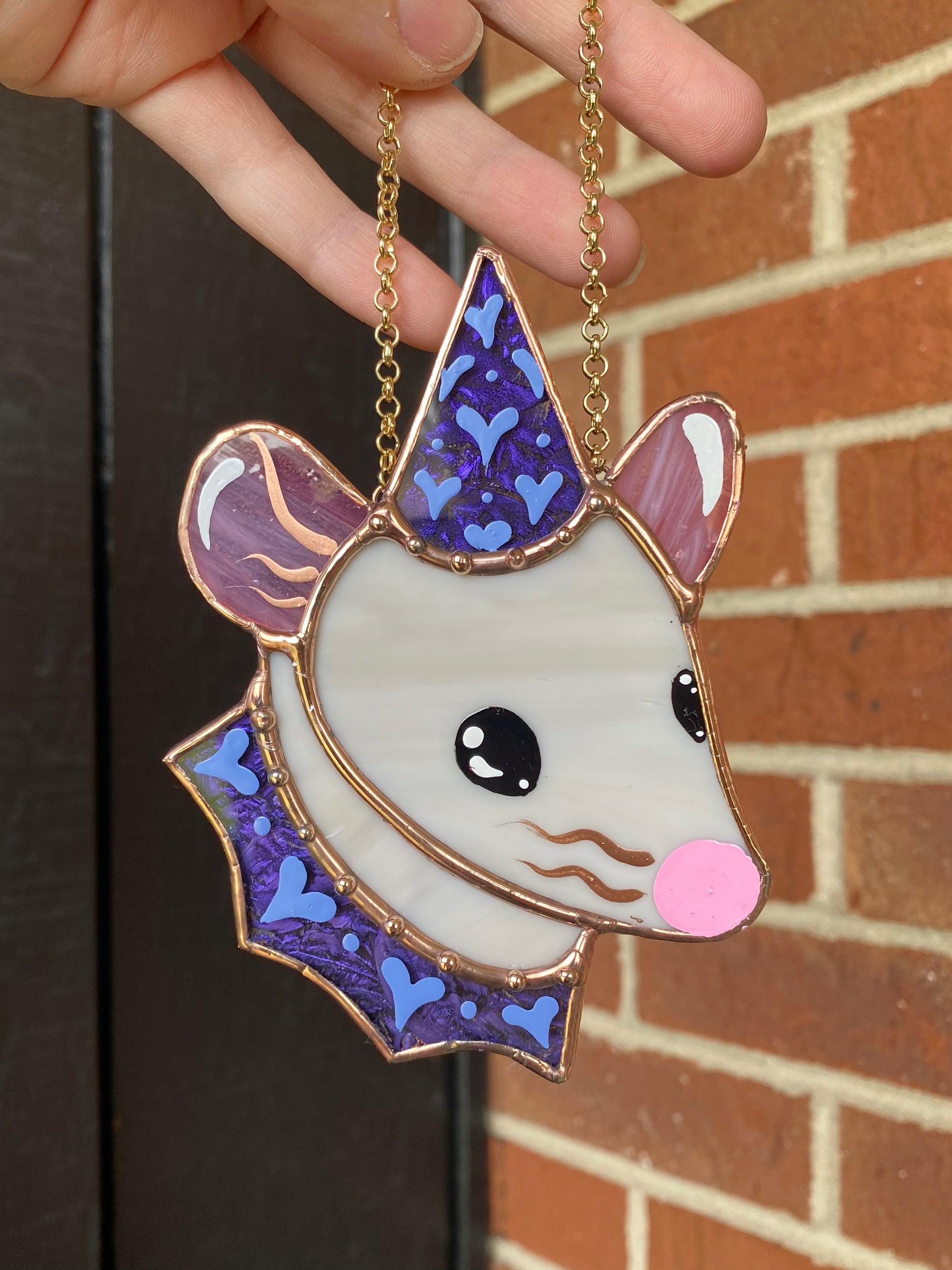 Mini Grey Rat Stained Glass Ornament