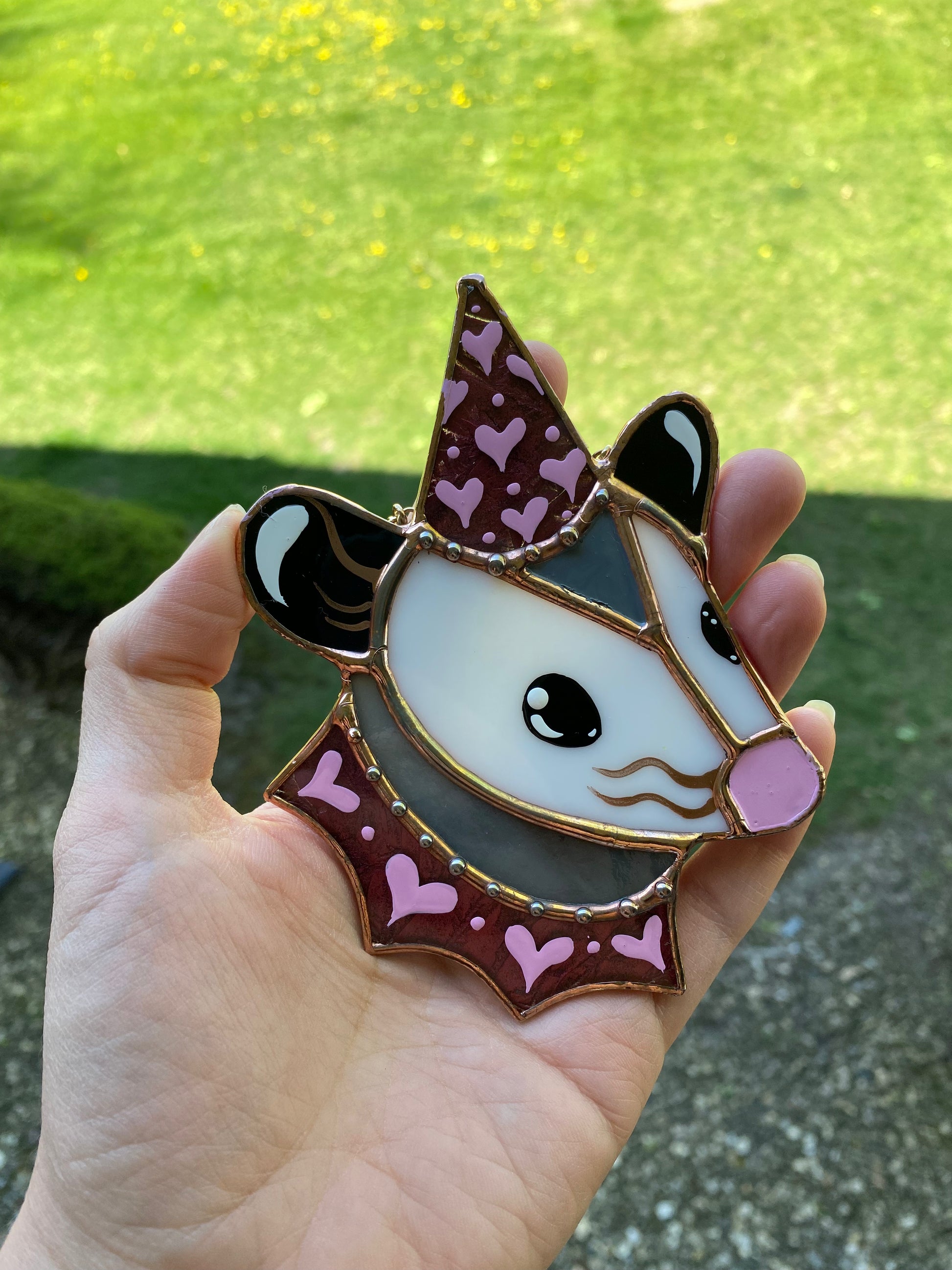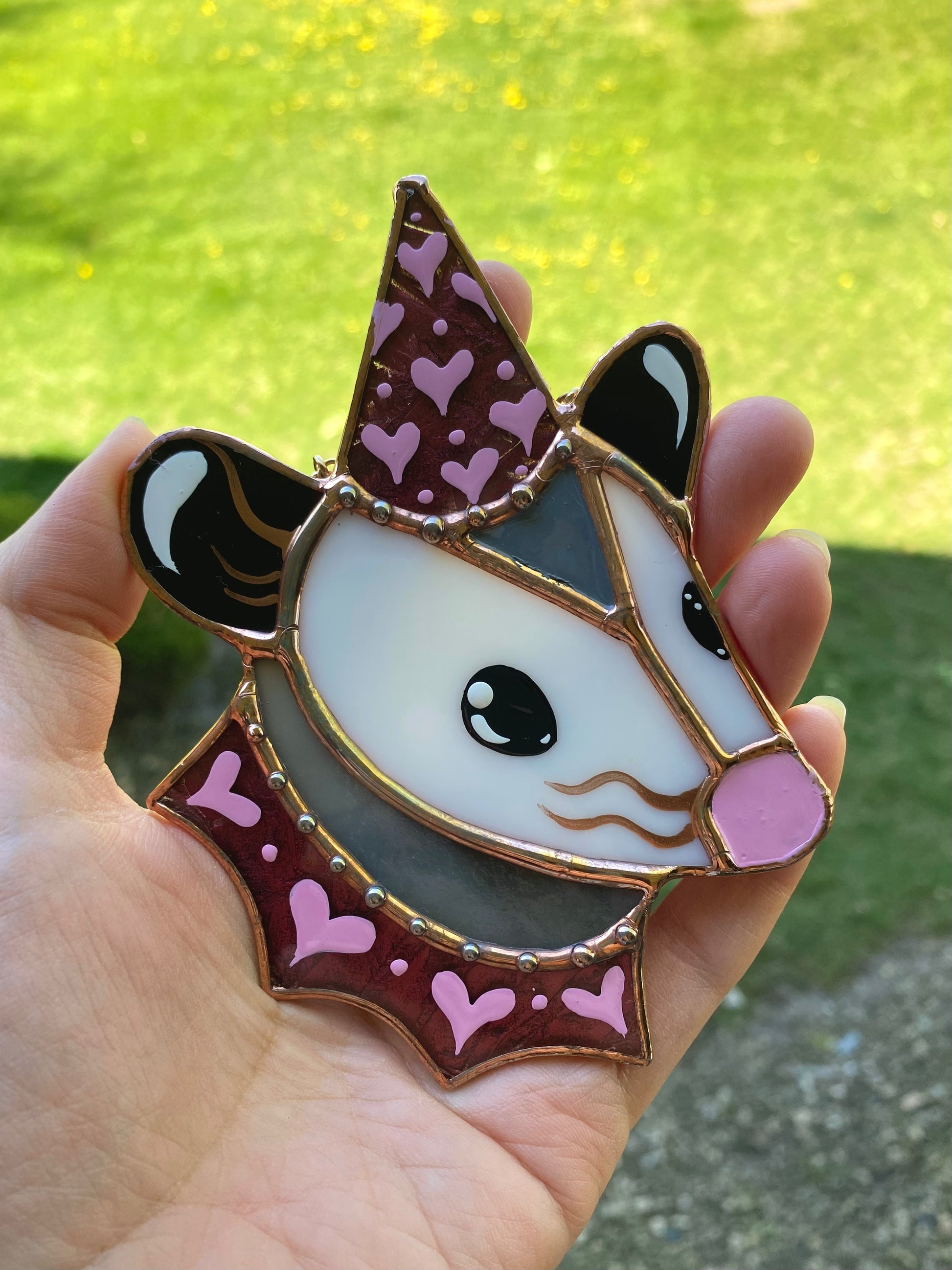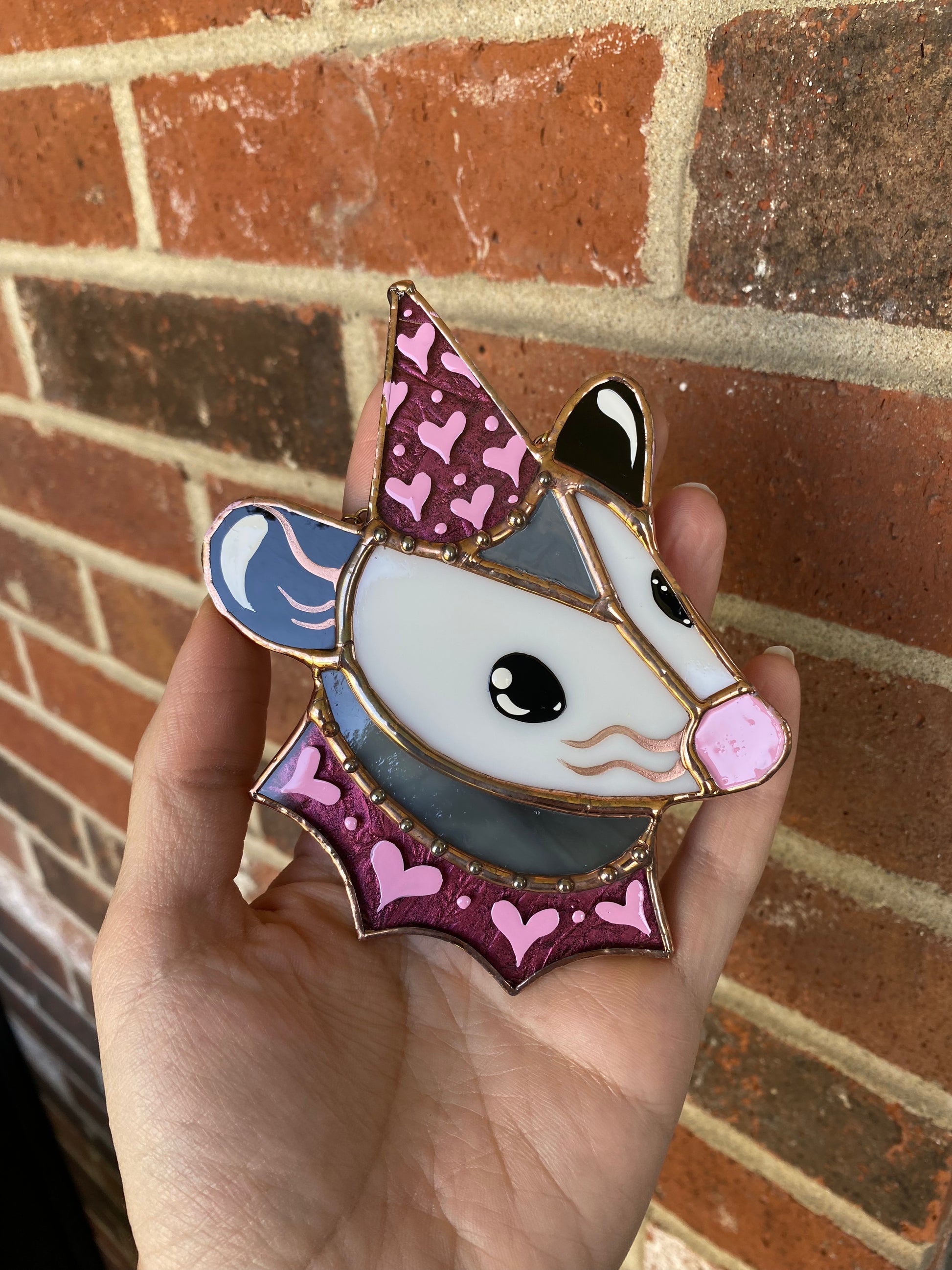 Mini Lovely Opossum Stained Glass Ornament