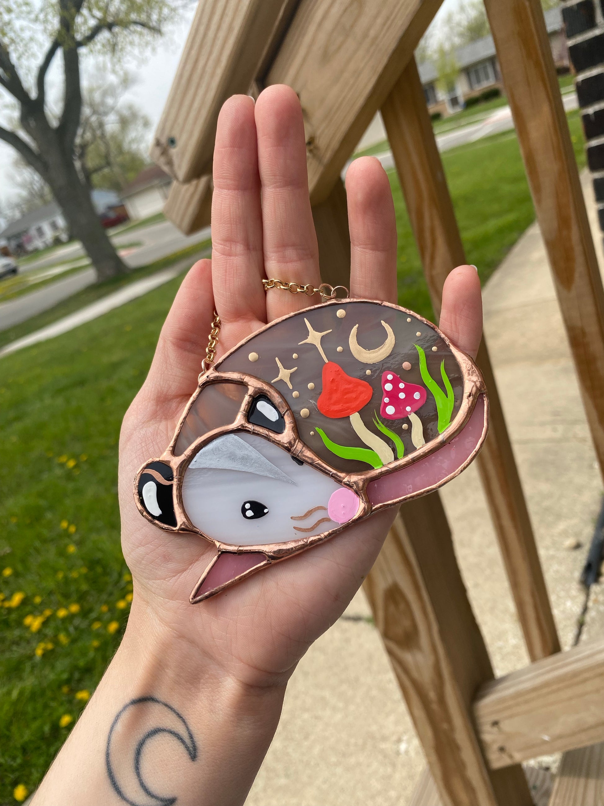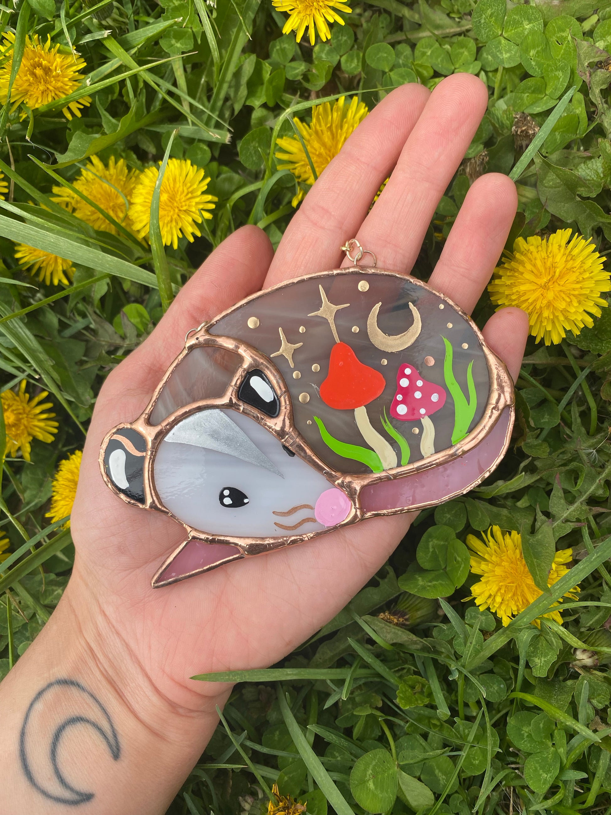 Mini Mushrooms Sleepy Opossum Suncatcher
