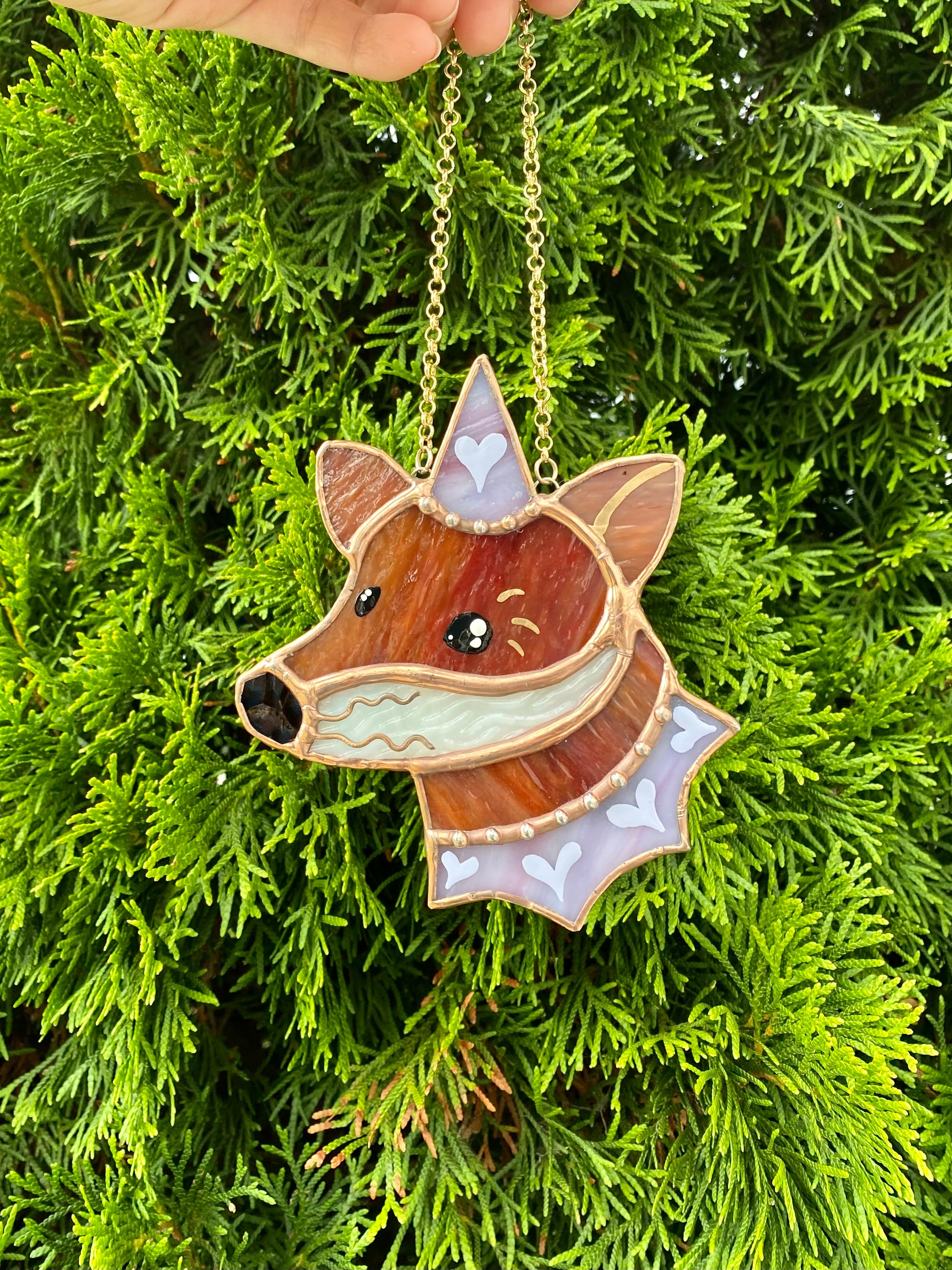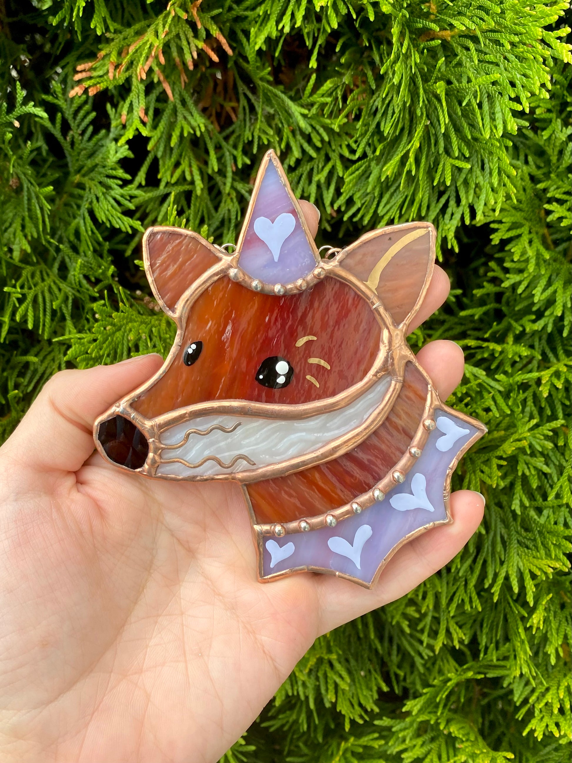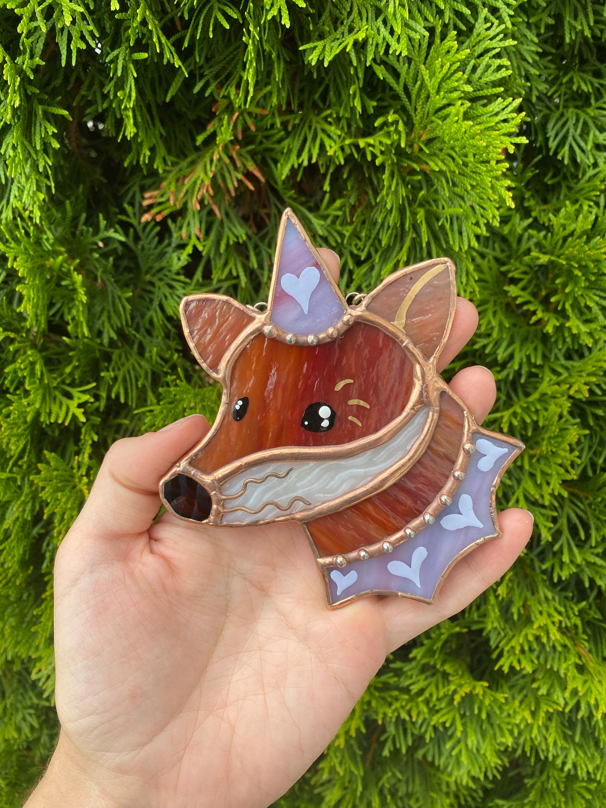Mini Purple Heart Wizard Fox Stained Glass Suncatcher