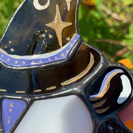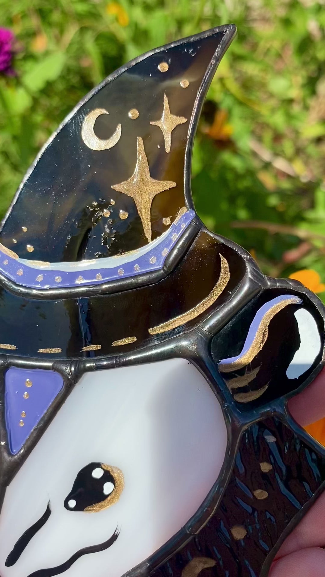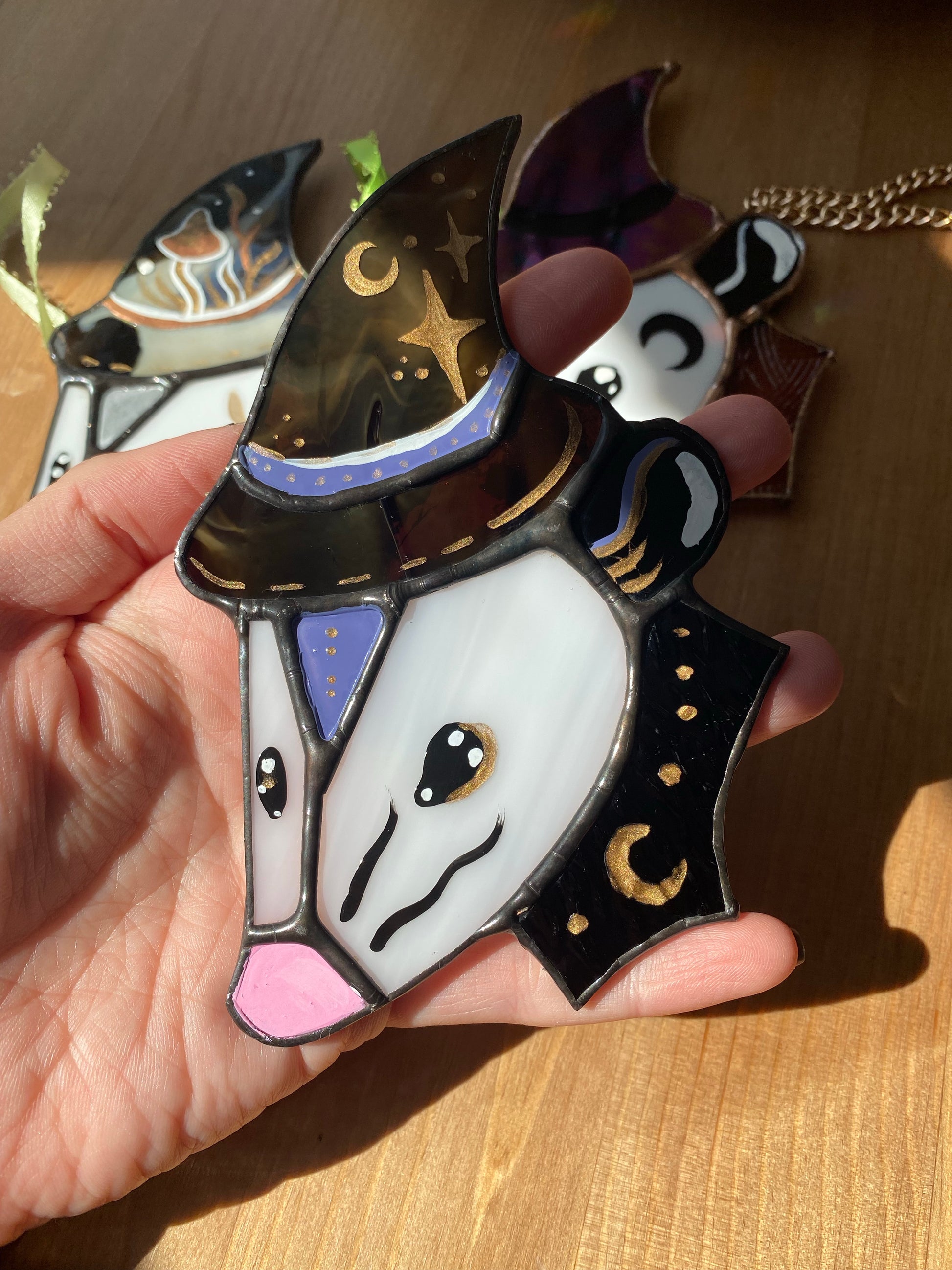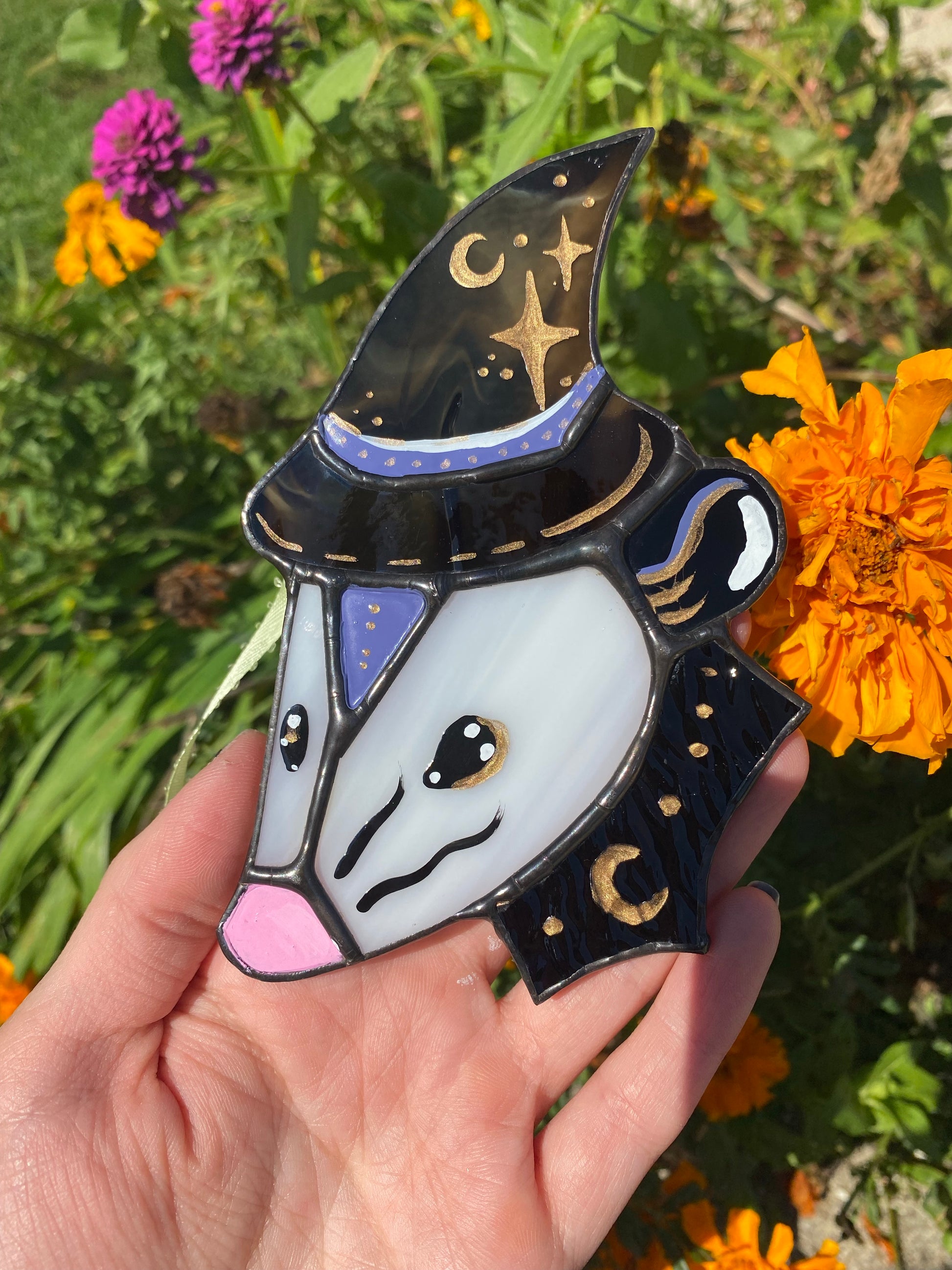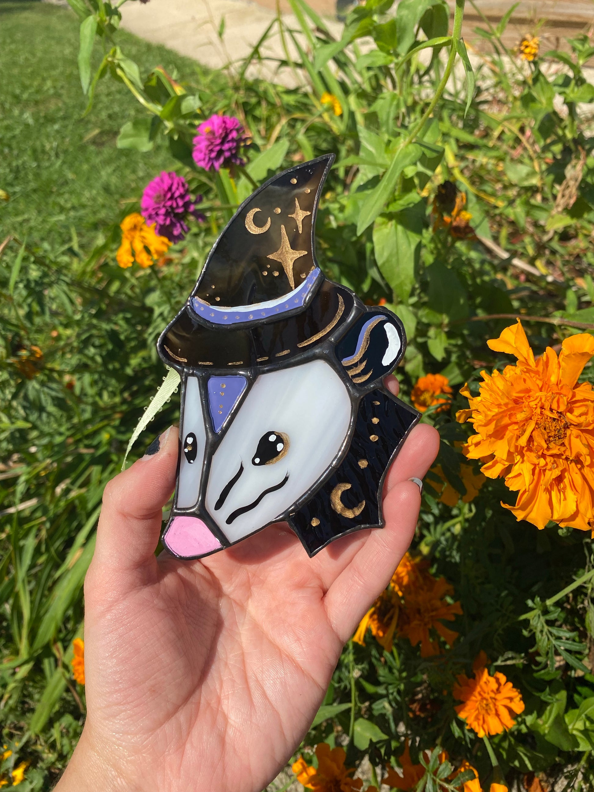 Mini Purple Wizard Opossum Stained Glass Suncatcher
