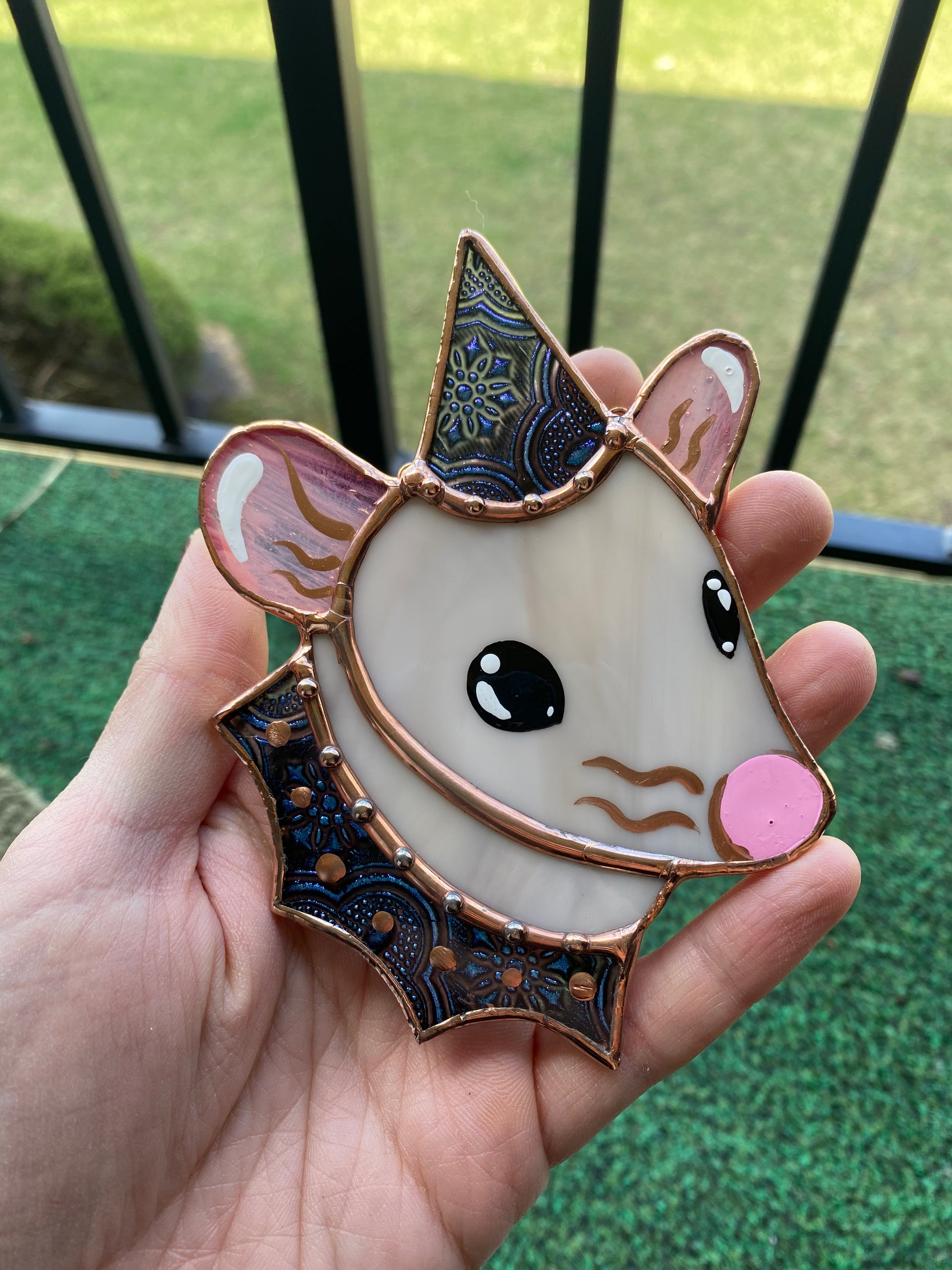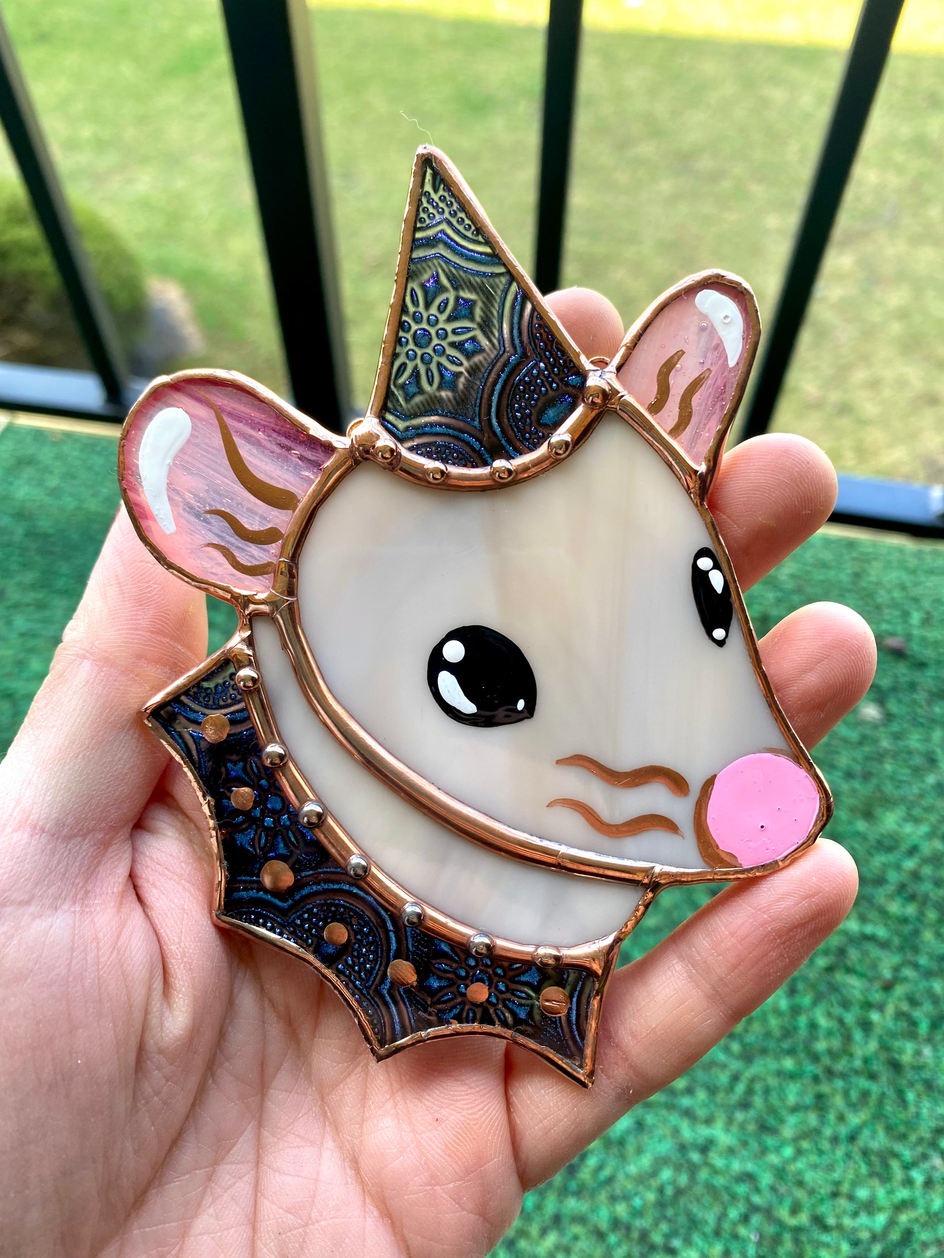 Mini Van Gogh Wizard Rat Stained Glass Ornament