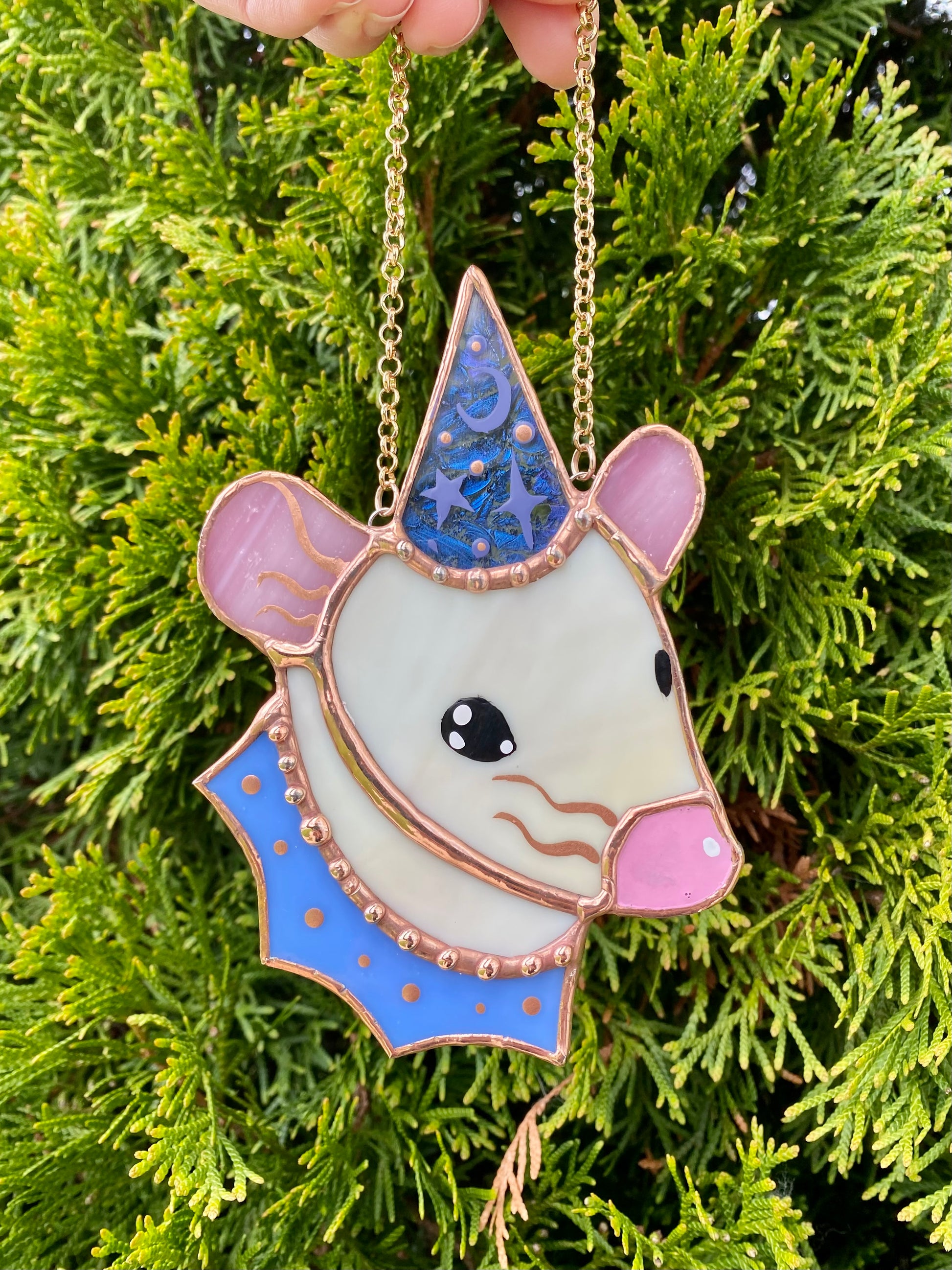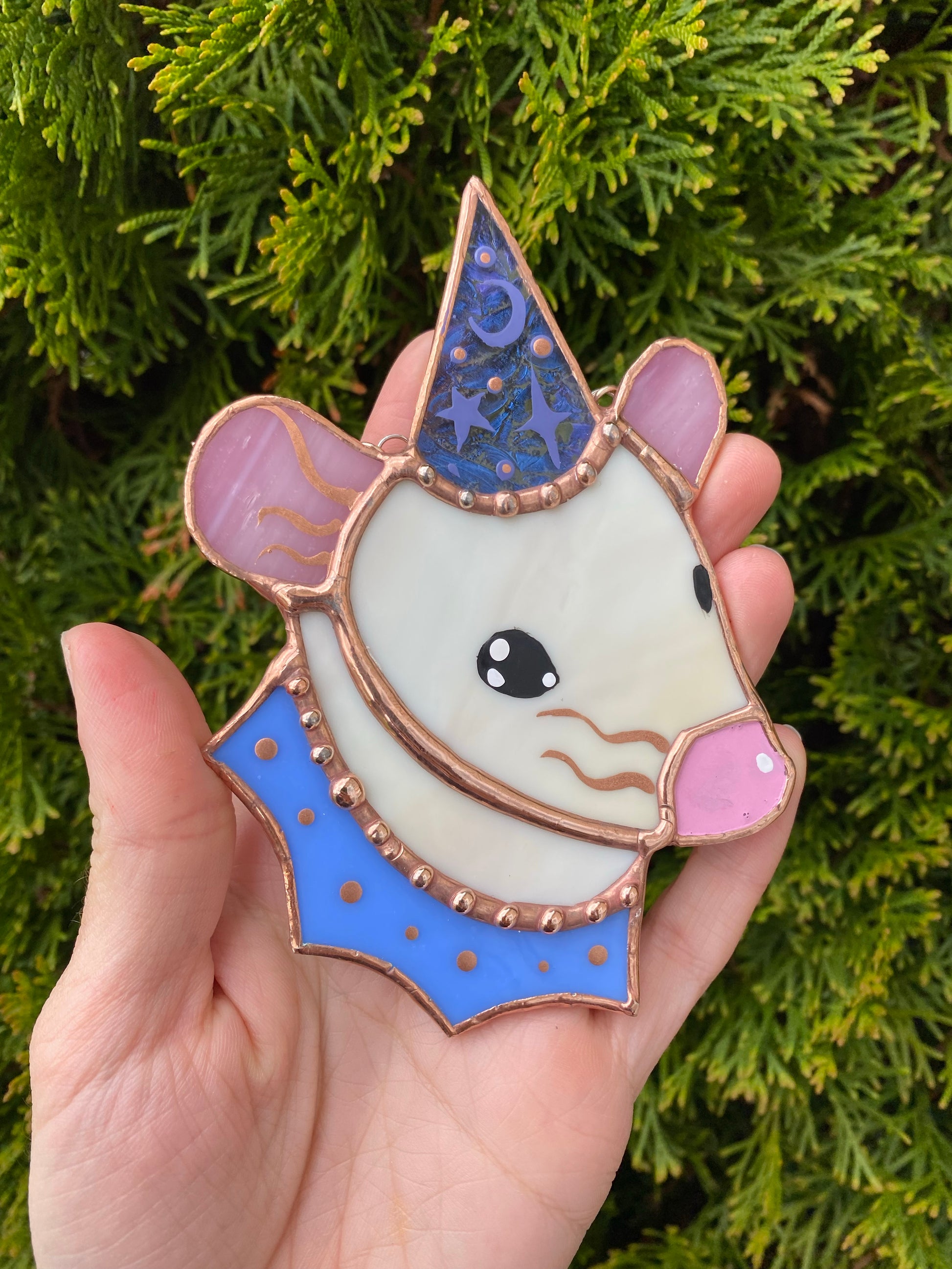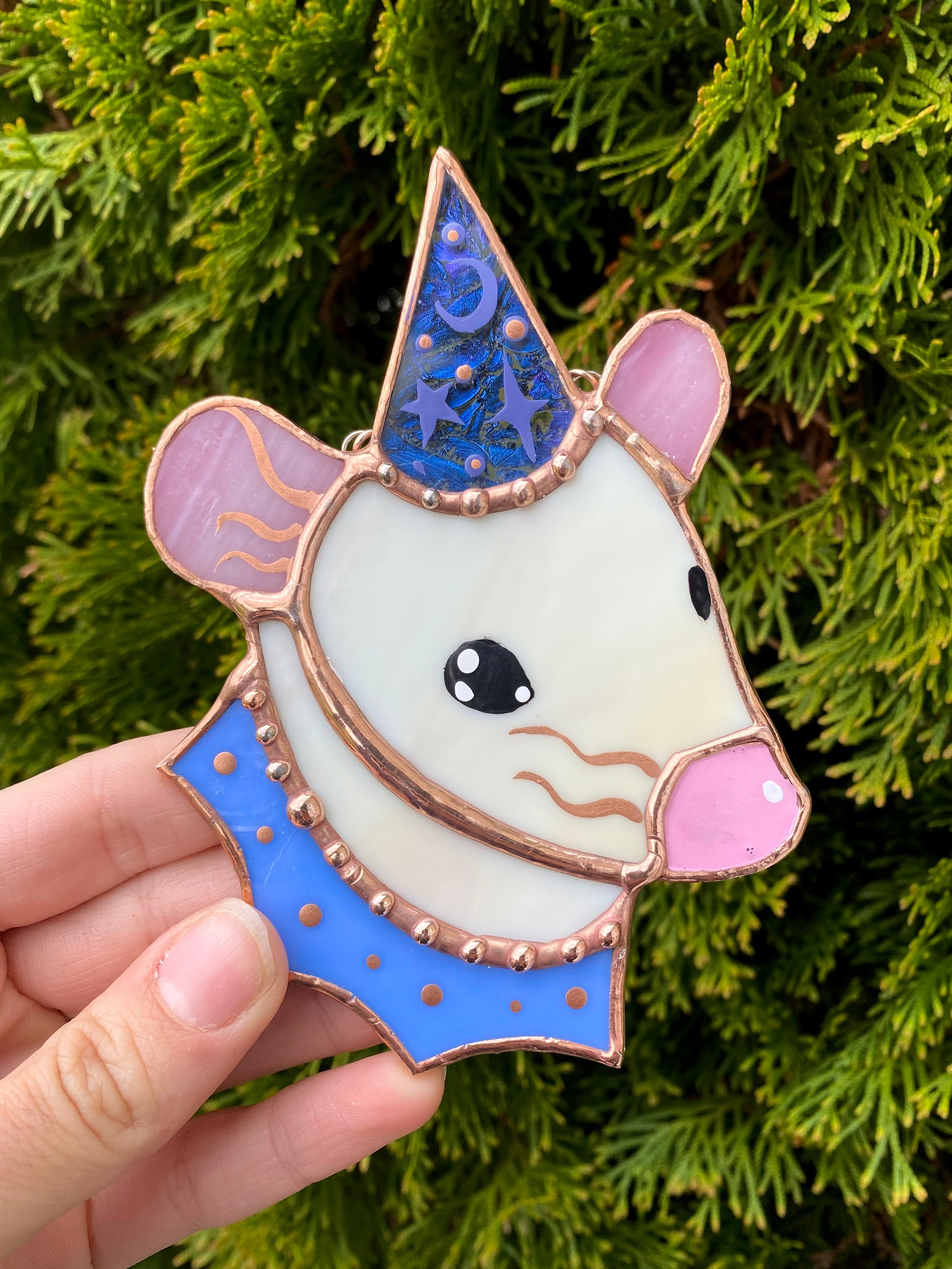 Periwinkle Wizard Rat Mini Stained Glass Suncatcher