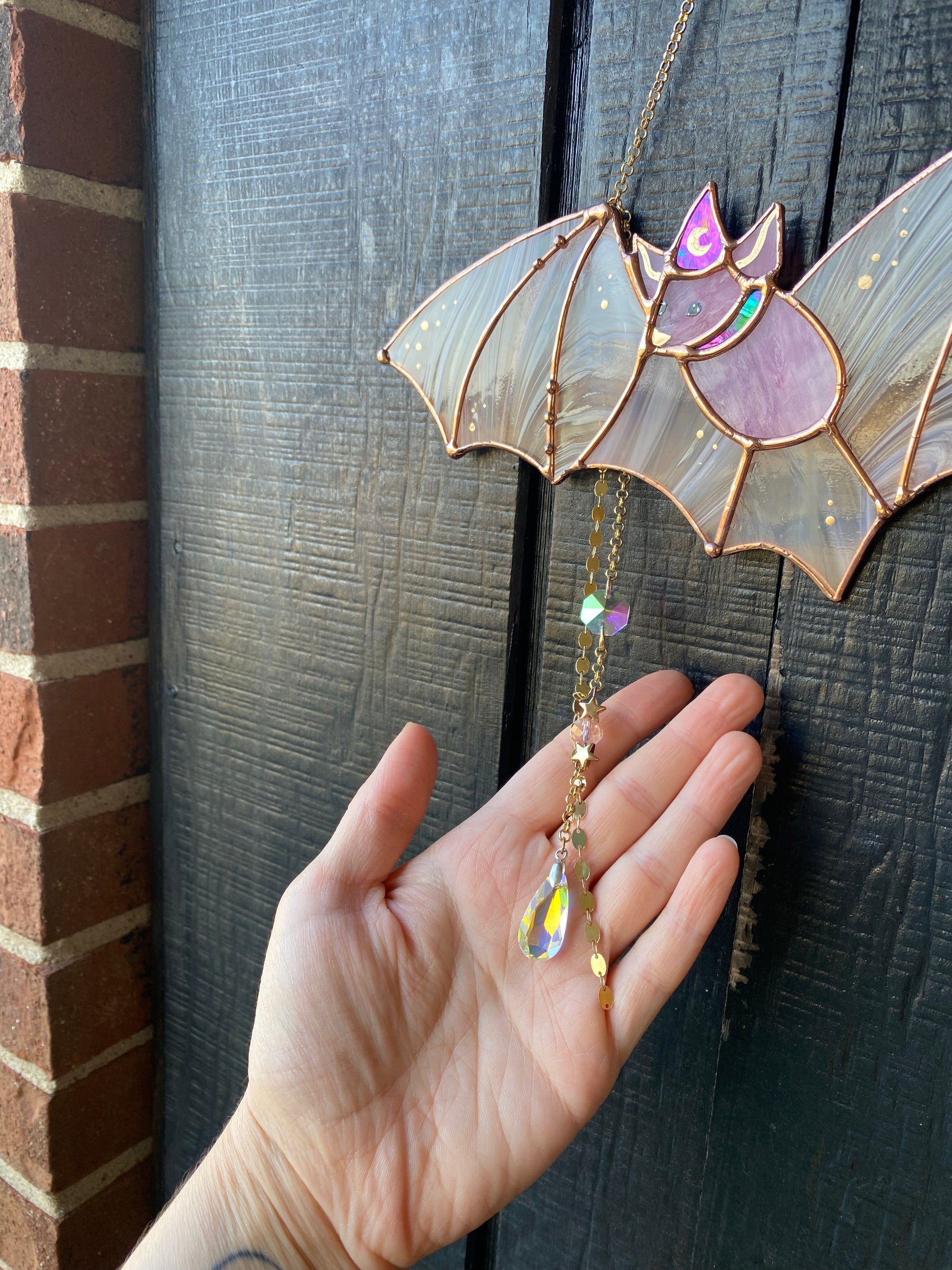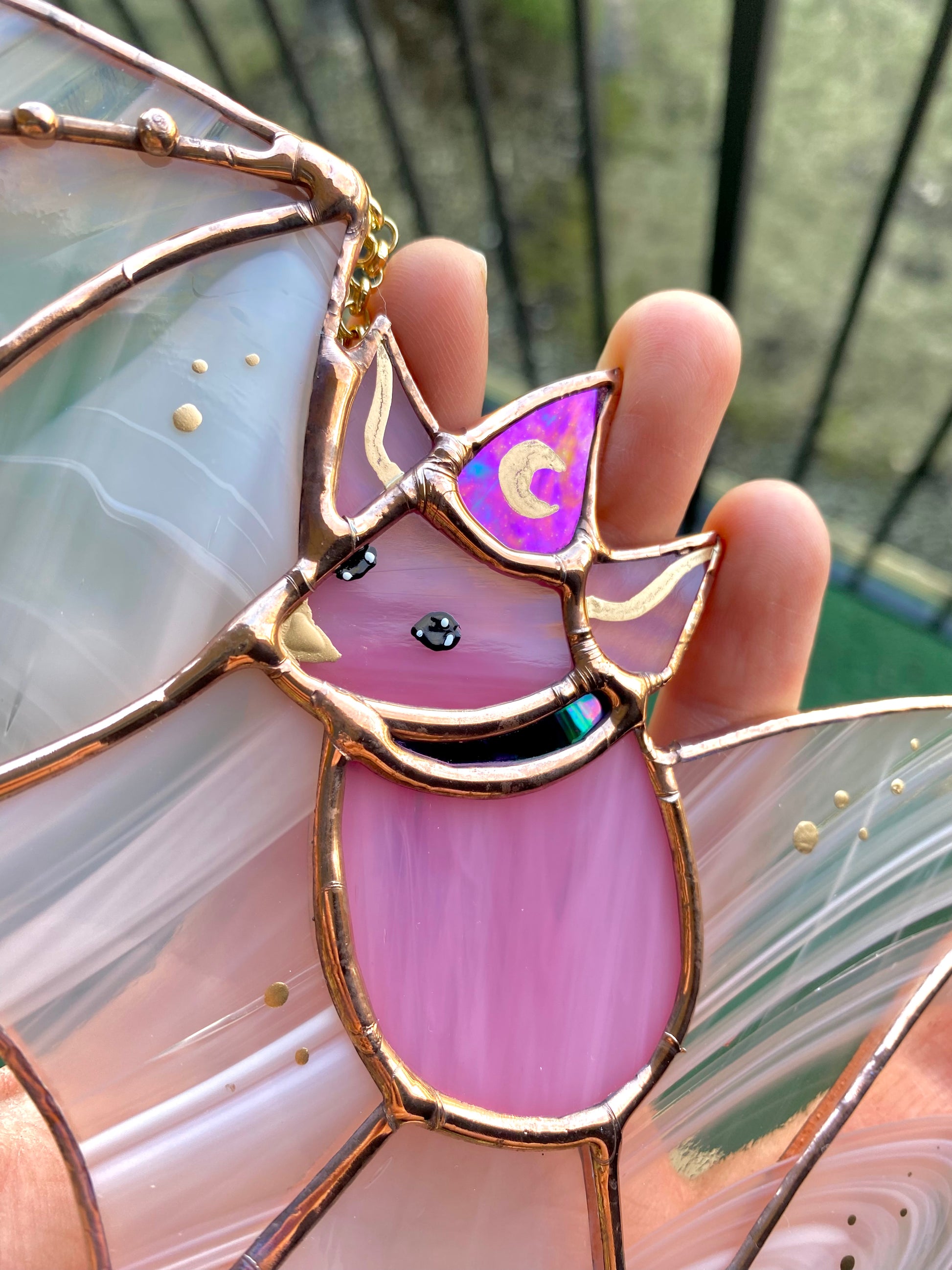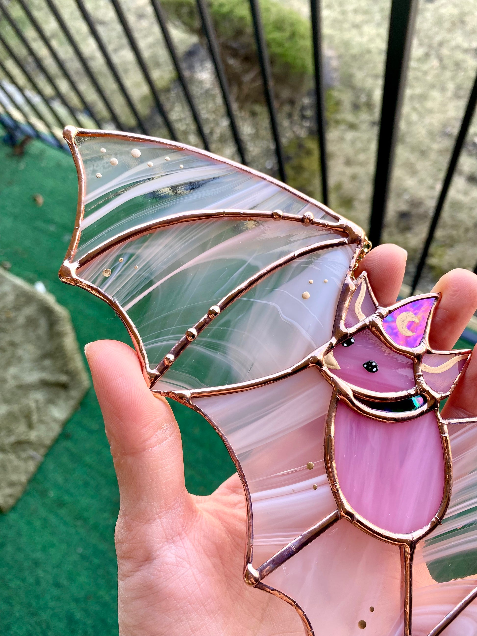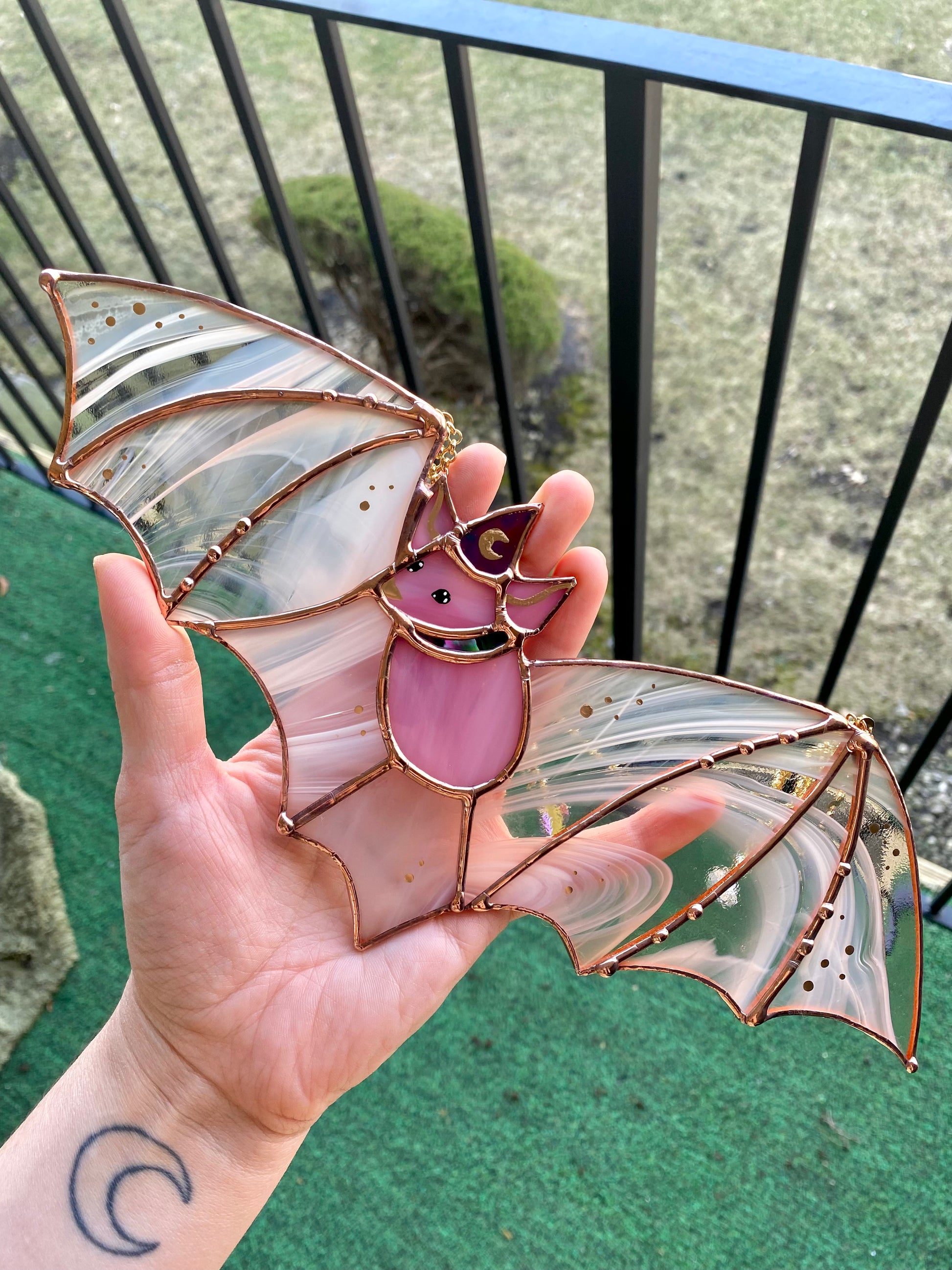 Pink Haze Wizard Bat Stained Glass Suncatcher